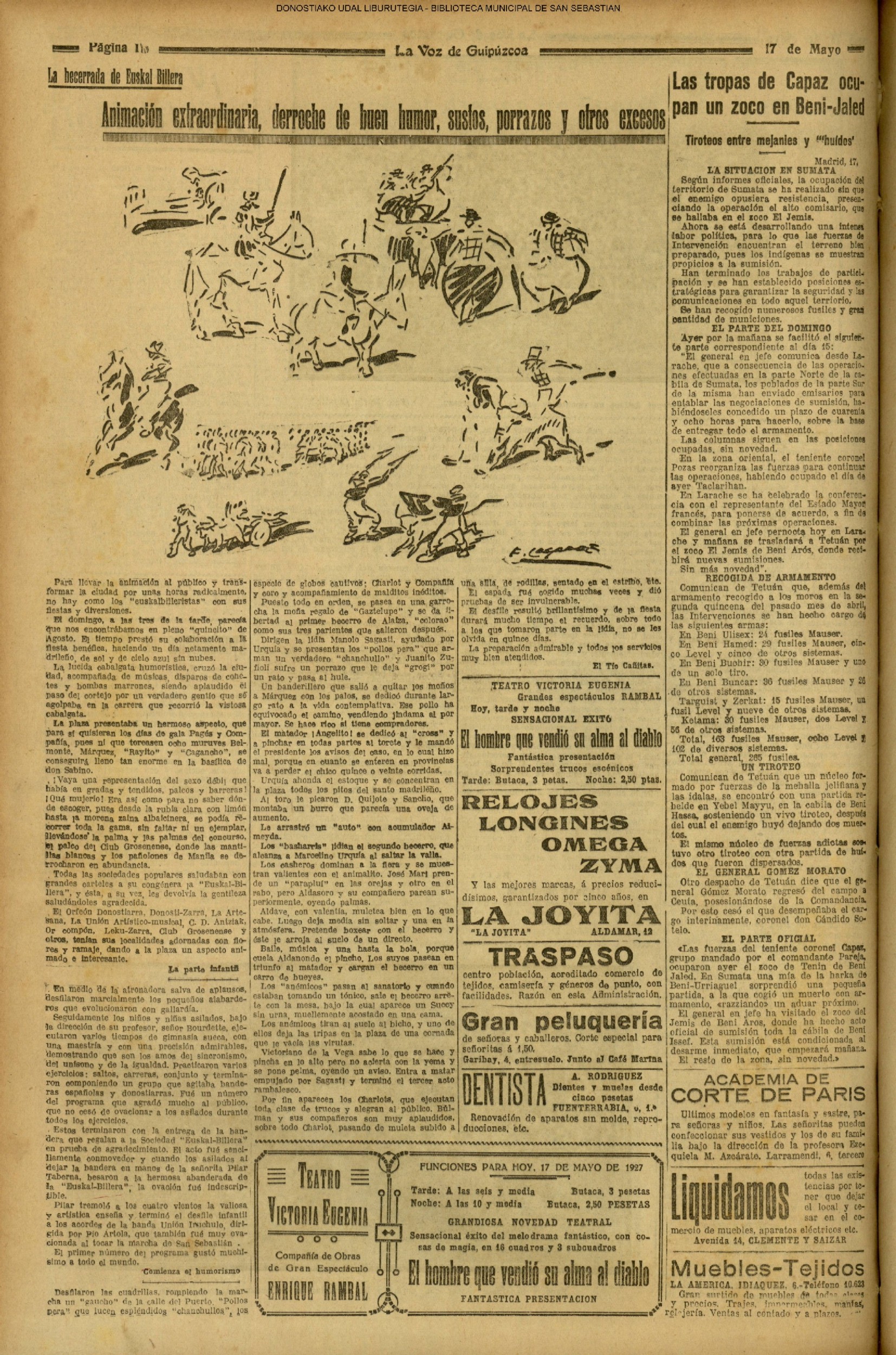 5 muchachos de 16 años cargaron contra 7 franceses que estaban hurtando habas en la casería de Aldaco, matando a tres, y retirándose el resto. Como consecuencia, un coronel francés, con un grupo considerable de franceses se presentó en el barrio de Alcibar, llamando a uno de los alcaldes de Oyarzun, se lo llevó preso, soltándolo más tarde tras argumentar que no quedaba en su jurisdicción el contener a los milicianos alistados en las filas del rey y previniendo al coronel impidiera a sus tropas hacer "corsos" en Oyarzun (en la foto), "de donde salían siempre descalabrados".