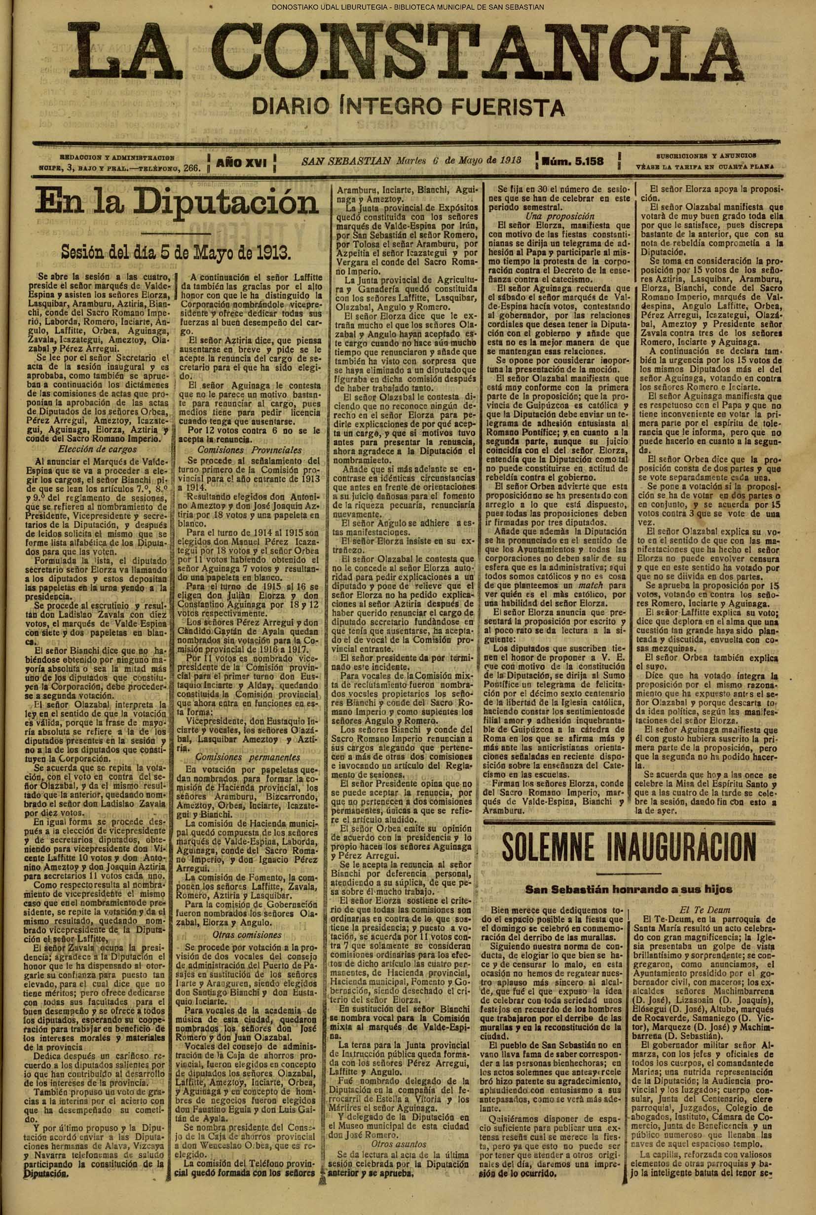 # Queda constituida la Sociedad popular recreativa «Amara-Txoko», cuya primera Directiva era ésta: Presidente, don Julián Peña; tesorero, don José Aguirre; contador, don José San Sebastián; secretario, don Manuel Hernández; vocales, don Fulgencio Frechilla, don Cipriano UrceIay, don José Antín, don Pedro Irazábal, don Hipólito García, don Guillermo Berruezo, don Rafael Frechosa y don Eustaquio Ochandarena.