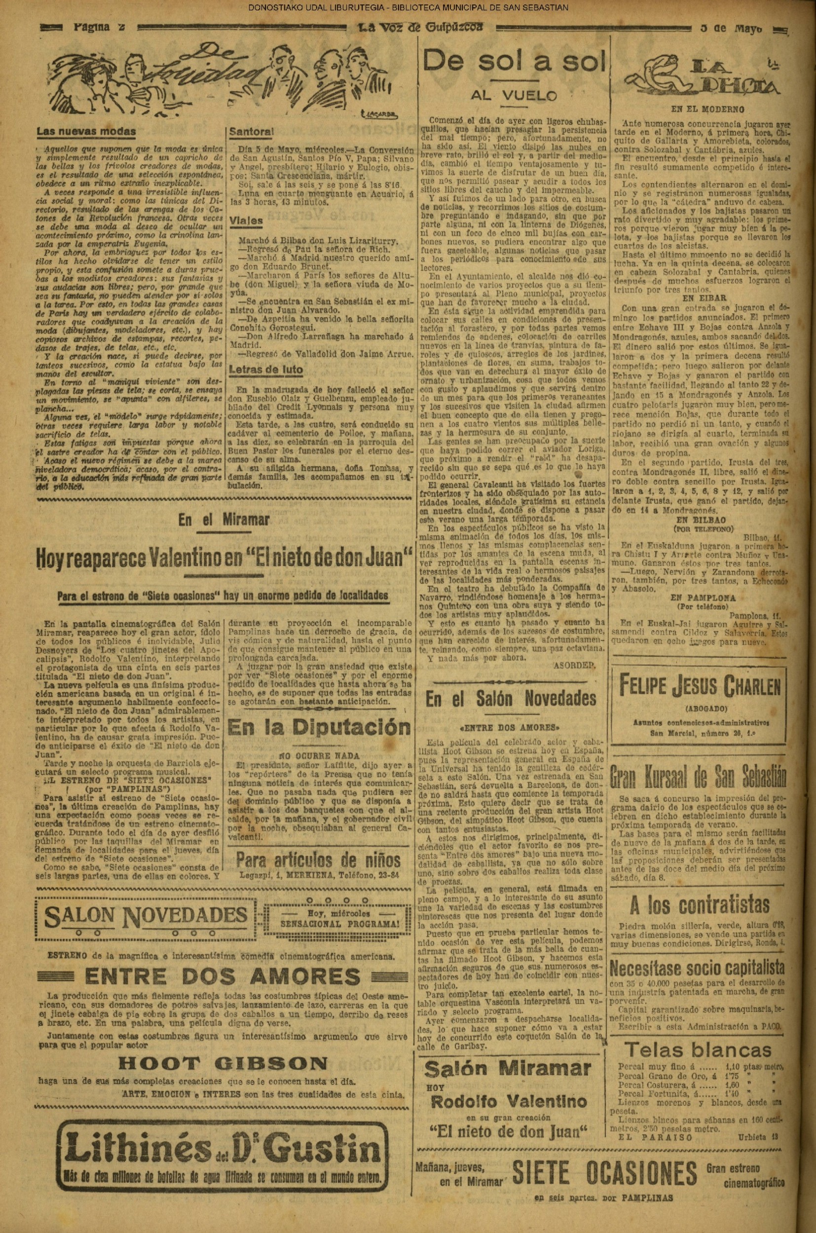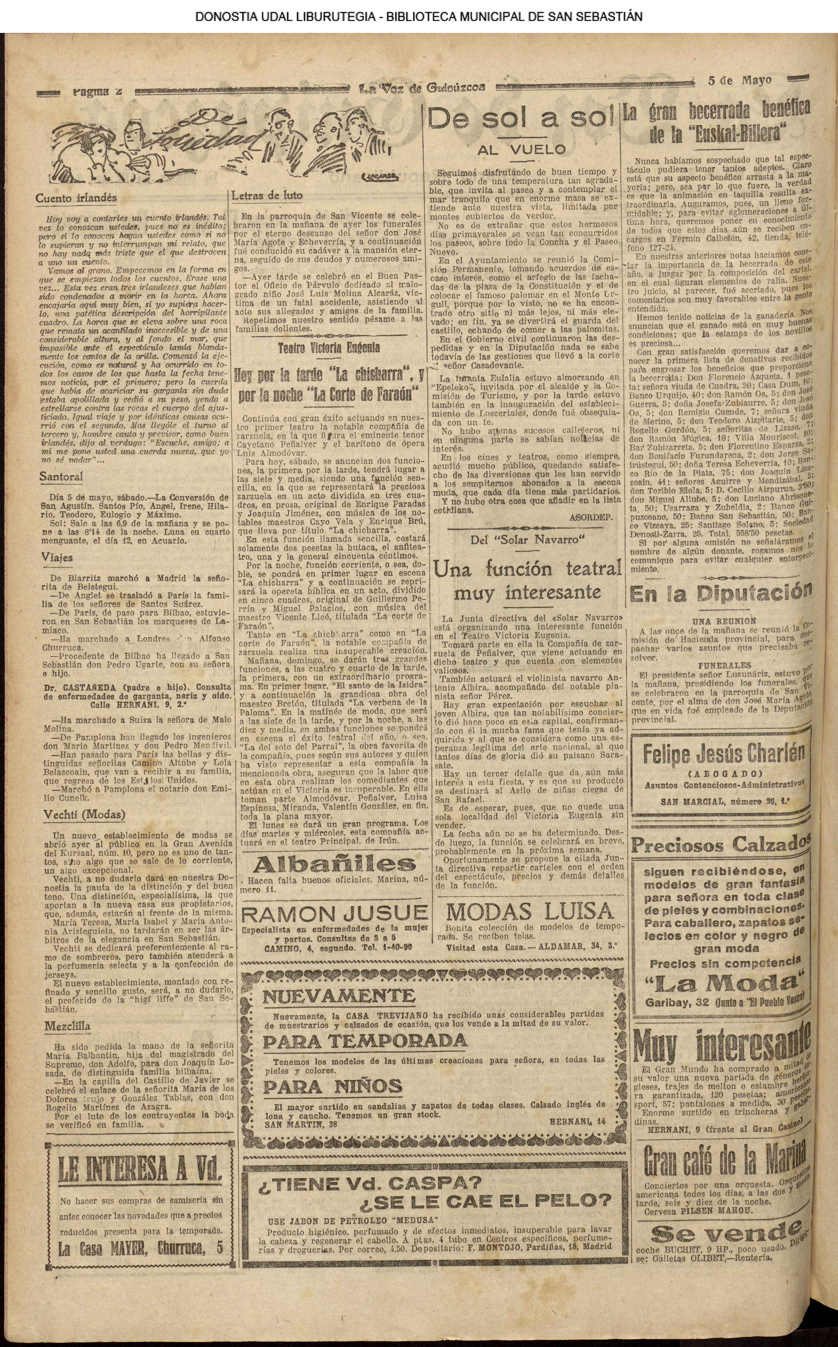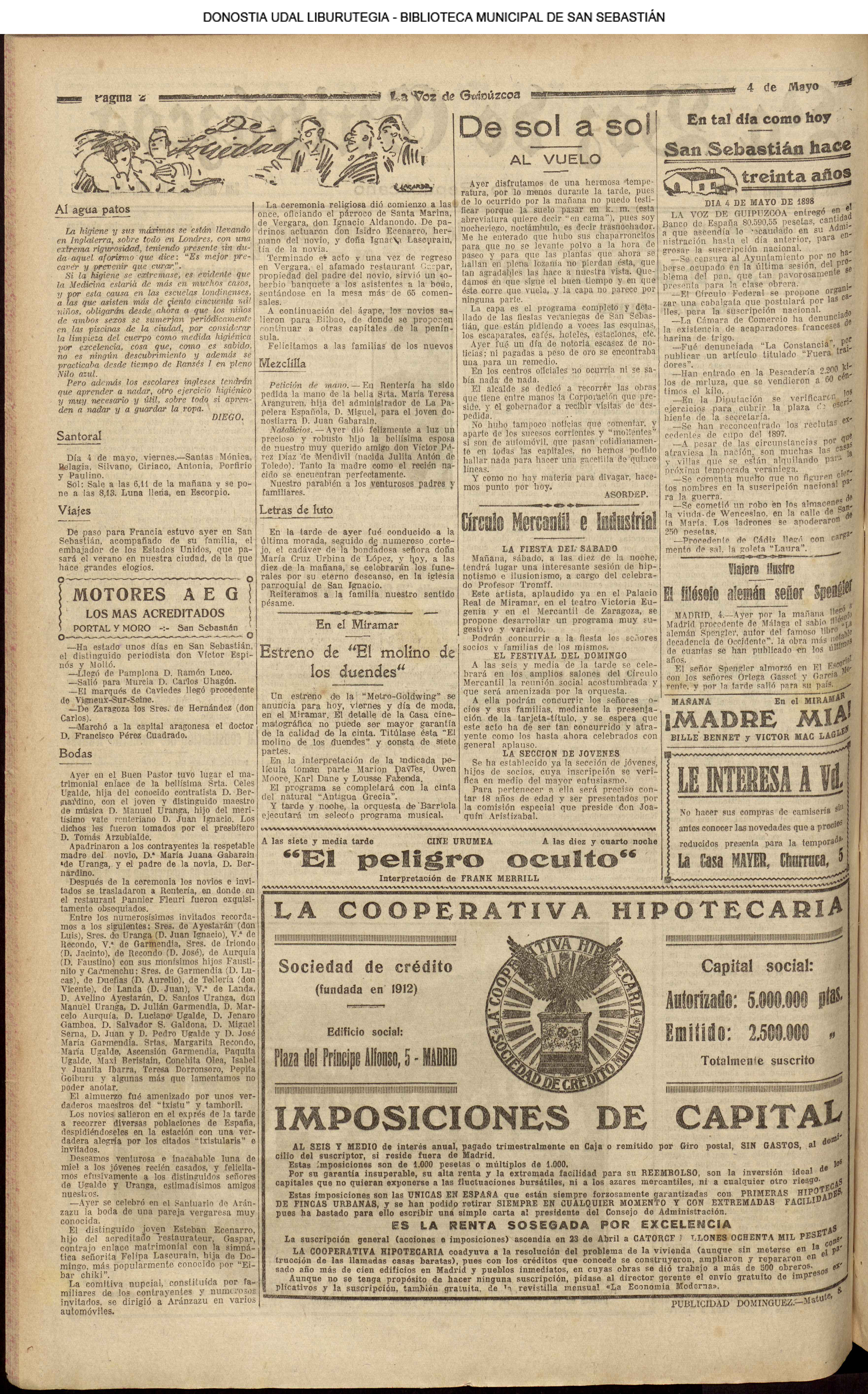 (1924) DE SOL A SOL - El domingo(04.05) fue día de fiesta entera, de verdadera fiesta en nuestra hermosa Dоnostia, que presentaba aspecto deslumbrador