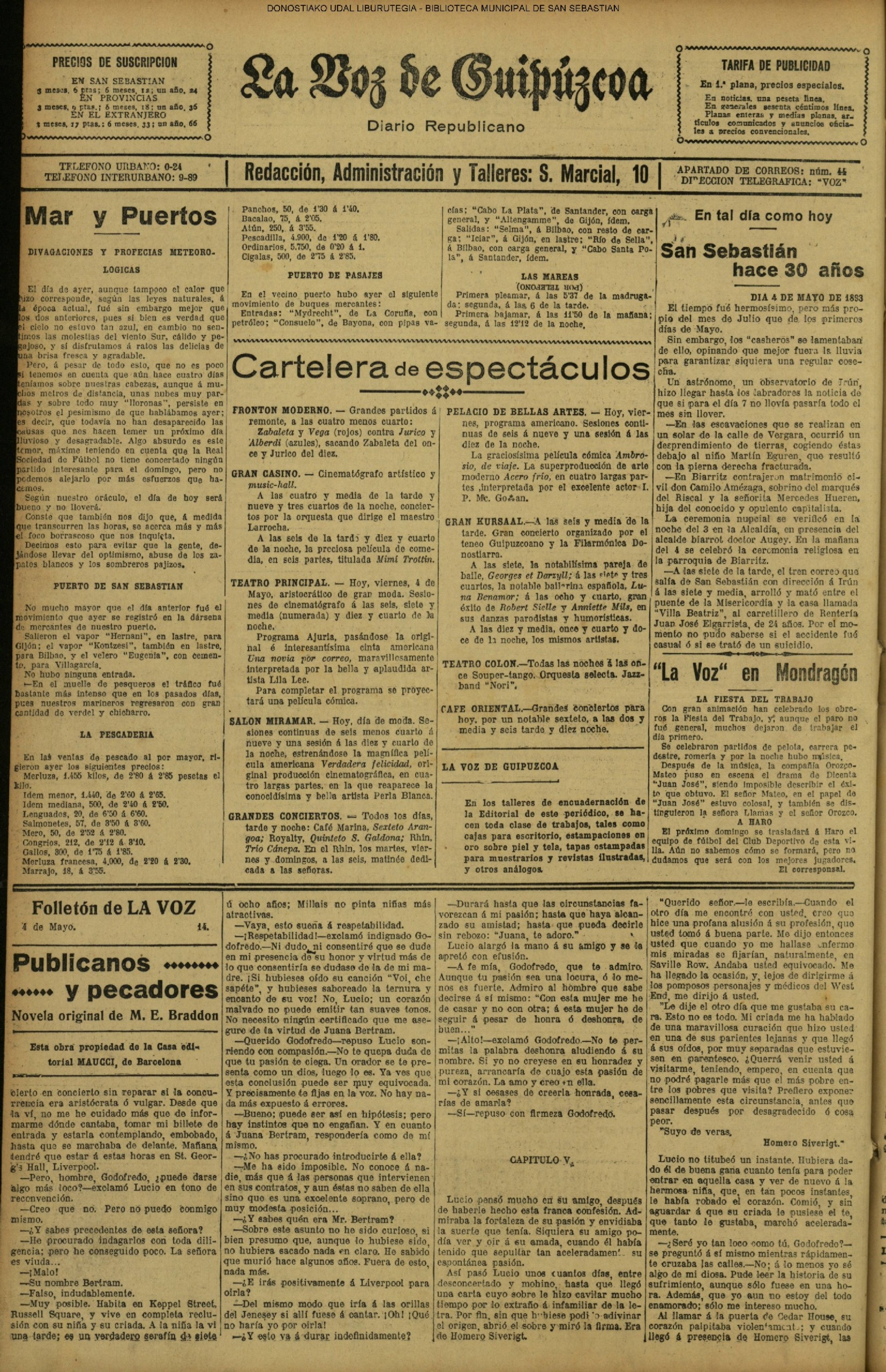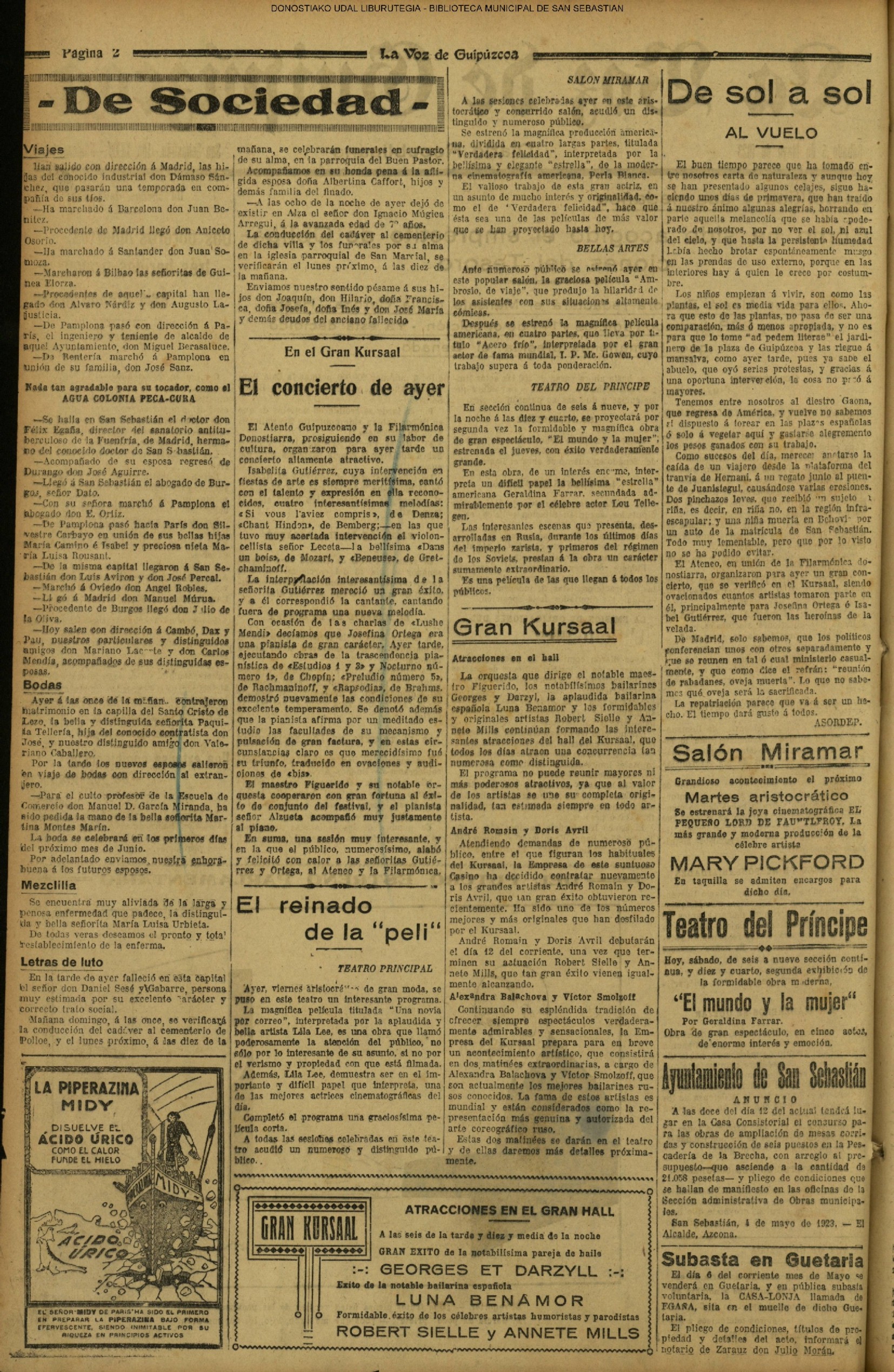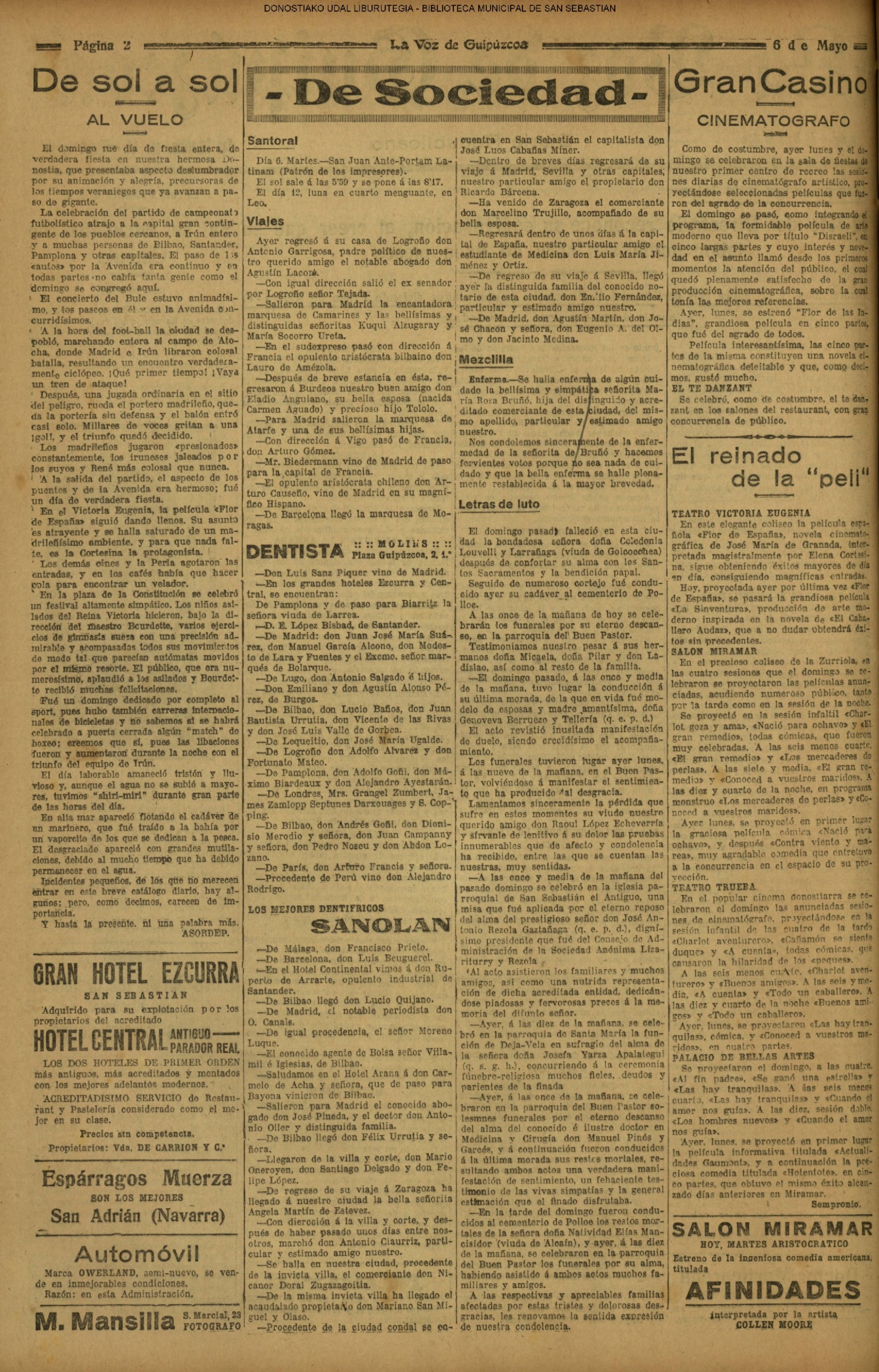 (1924) DE SOL A SOL - El domingo(04.05) fue día de fiesta entera, de verdadera fiesta en nuestra hermosa Dоnostia, que presentaba aspecto deslumbrador