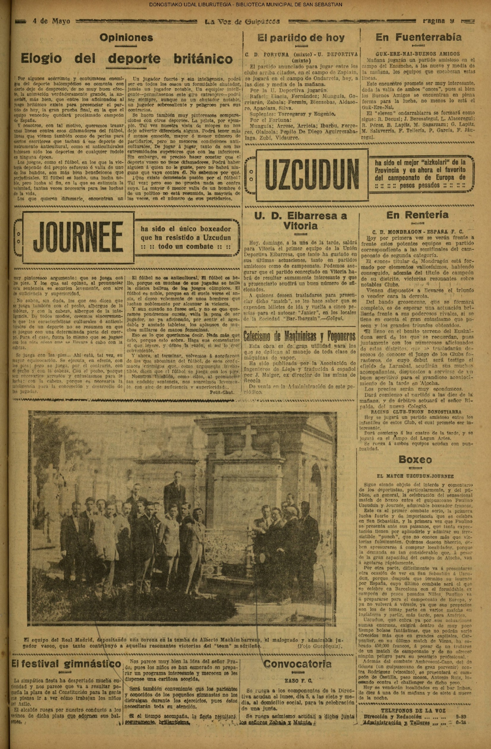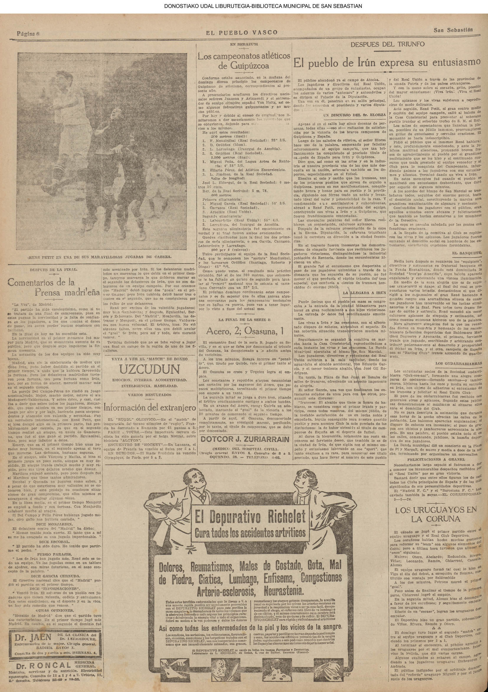 Los madrileños subieron Polloe, depositando una corona en la tumba de Alberto Machimbarrena.(La Voz de Guipúzcoa)# y exhibición de Gimnasia en la Plaza de la Constitución