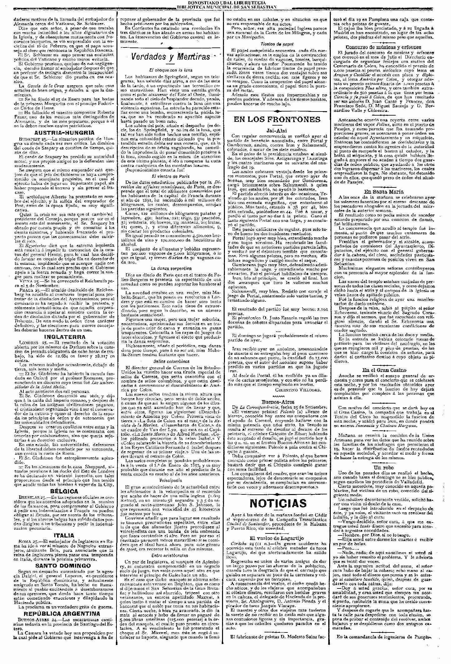 (La Voz de Guipuzcoa)(El Pueblo Vasco)(El Pais Vasco)(La Constancia) |