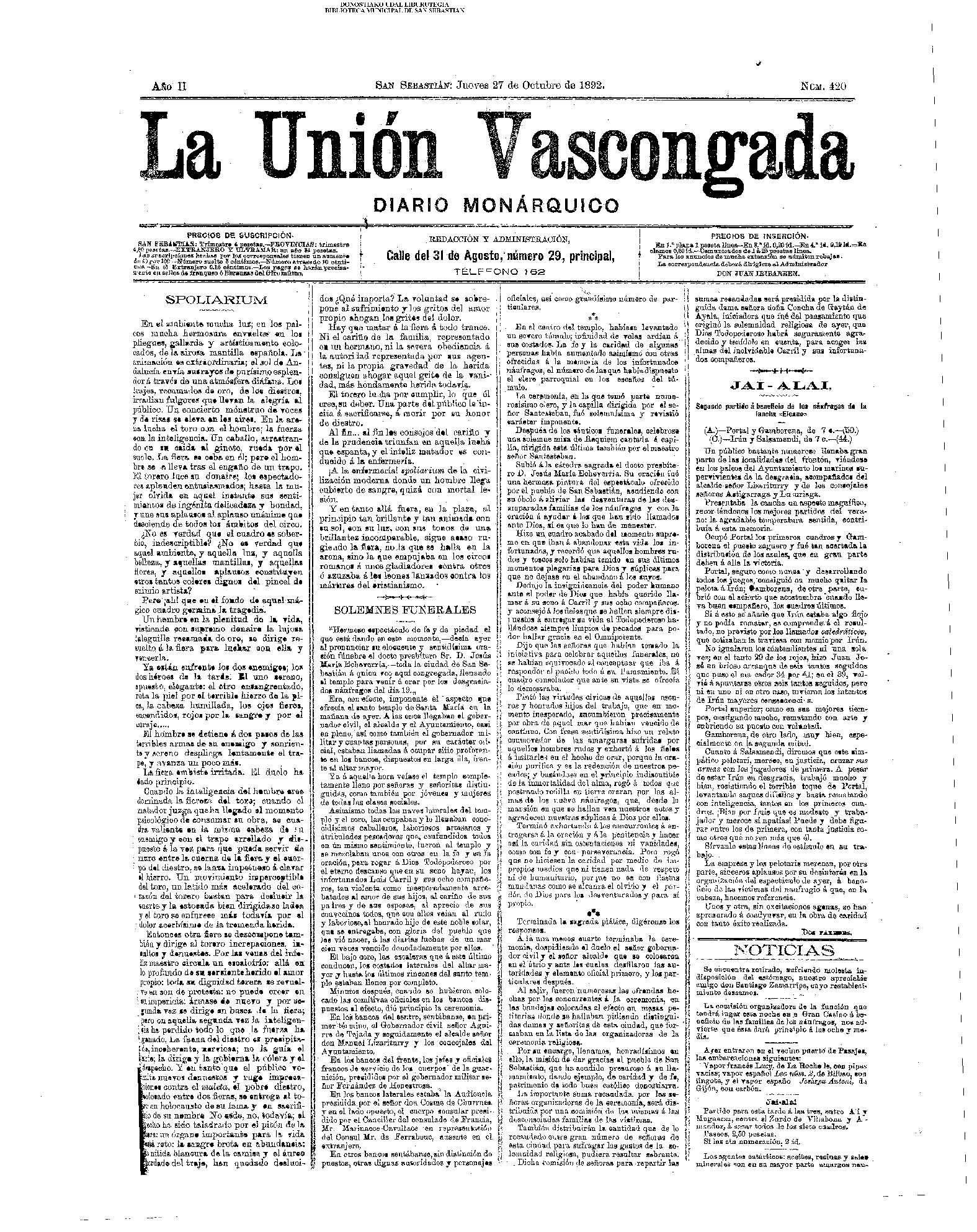 (La Voz de Guipuzcoa/cont)(El Pueblo Vasco)(El Pais Vasco)(La Constancia) |