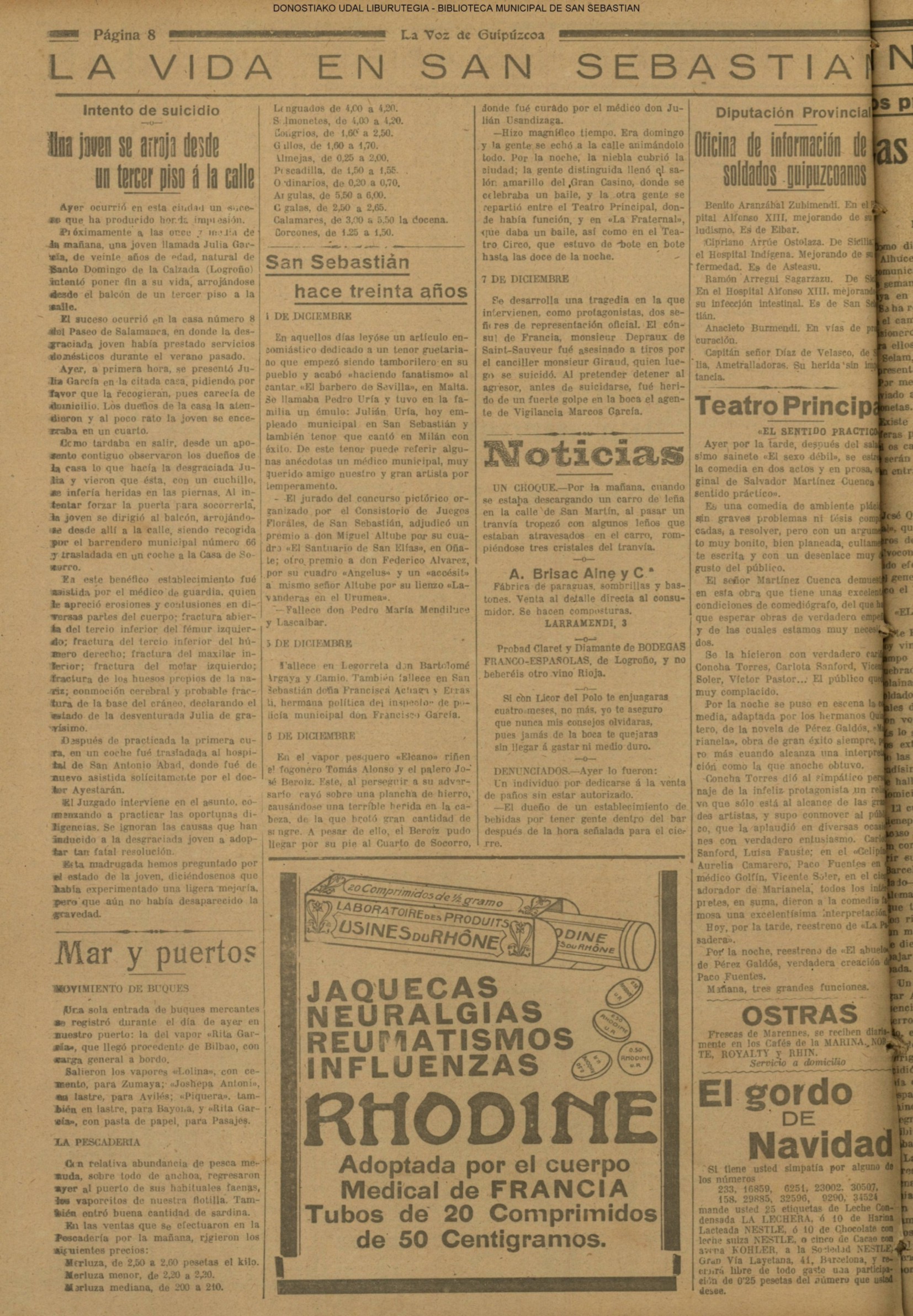 (1921)(M) INTENTO DE SUICIDIO - Una joven se arroja desde un tercer piso a la calle. El suceso ocurrió en el número 8 del Paseo de Salamanca.