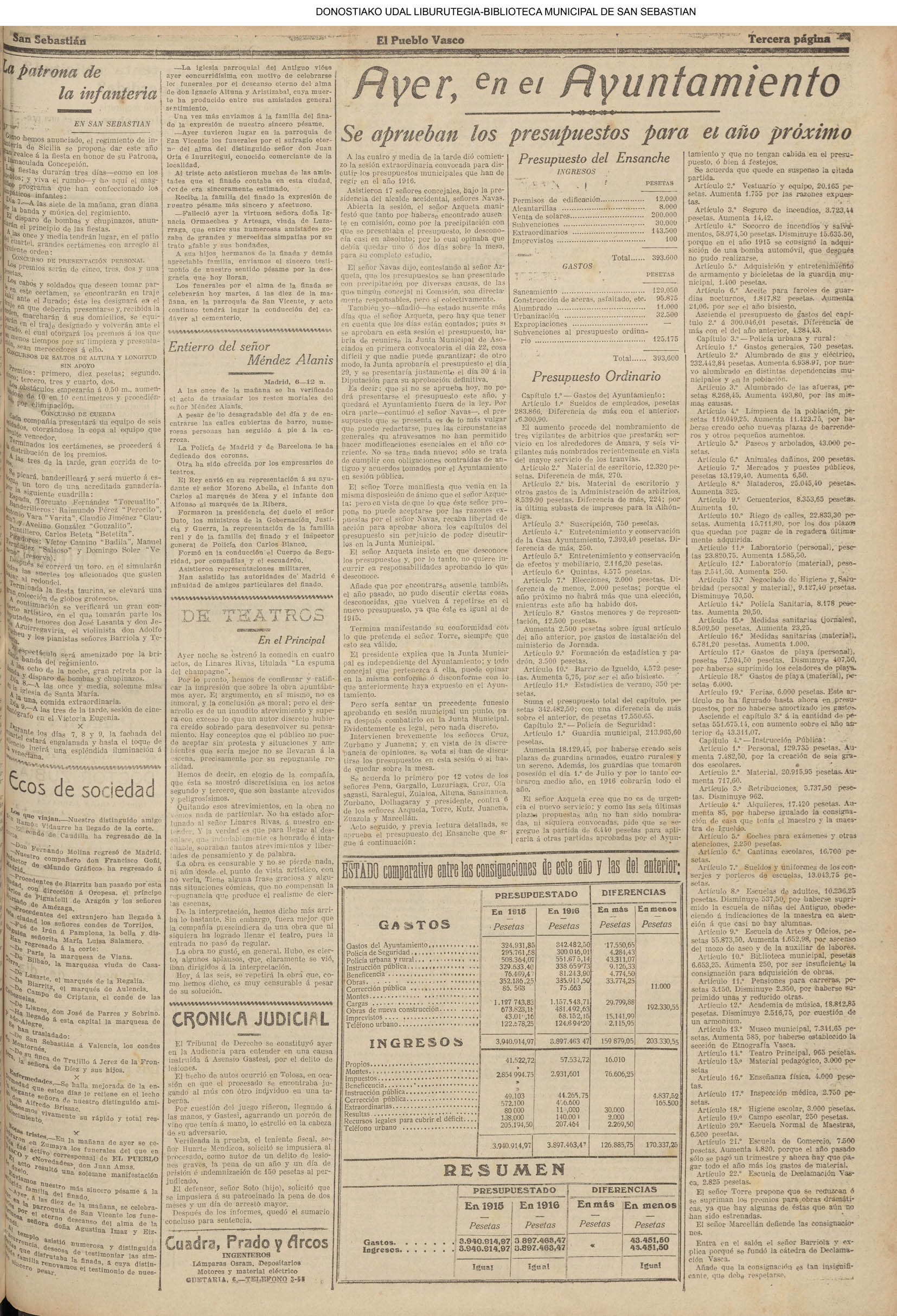 # Presidiendo el alcalde accidental, D. Adrián Navas, se aprueba el presupuesto municipal para 1916, importante pesetas 3.897.463,47; 43.451,50 menos que en 1915.