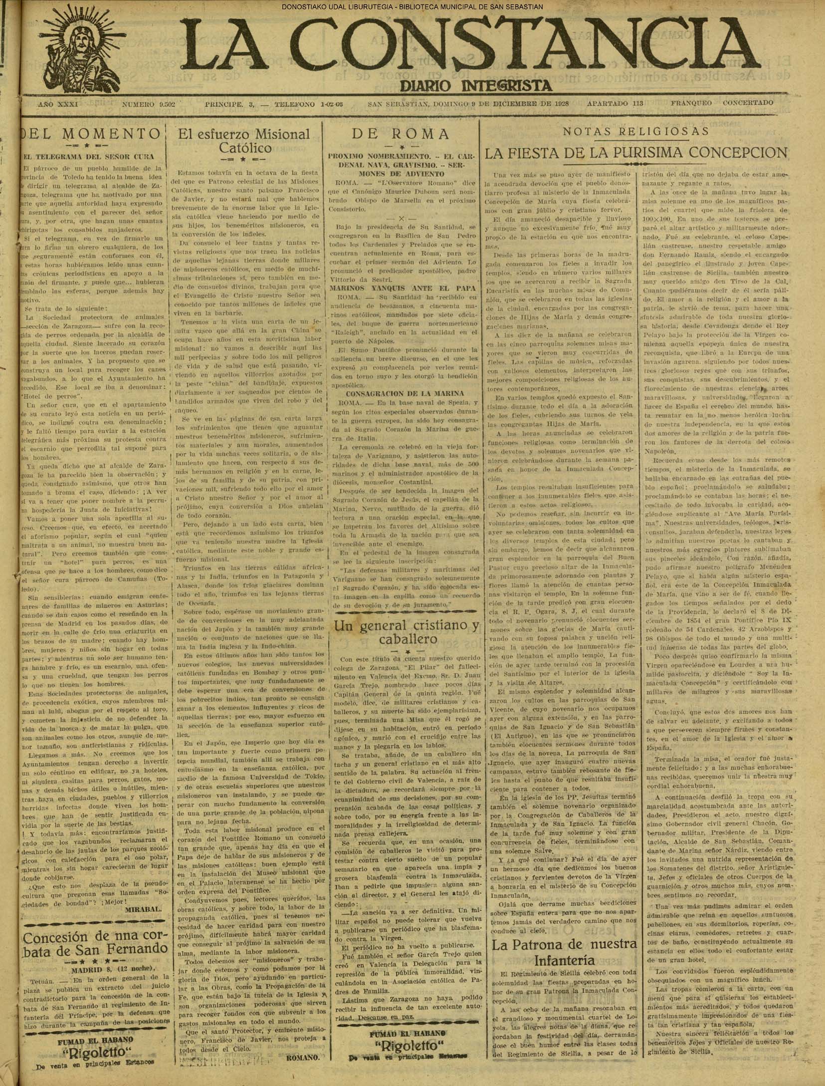 # Después de los años de laicismo oficial, San Sebastián volvió a celebrar con más esplendor que nunca la fiesta de la Inmaculada