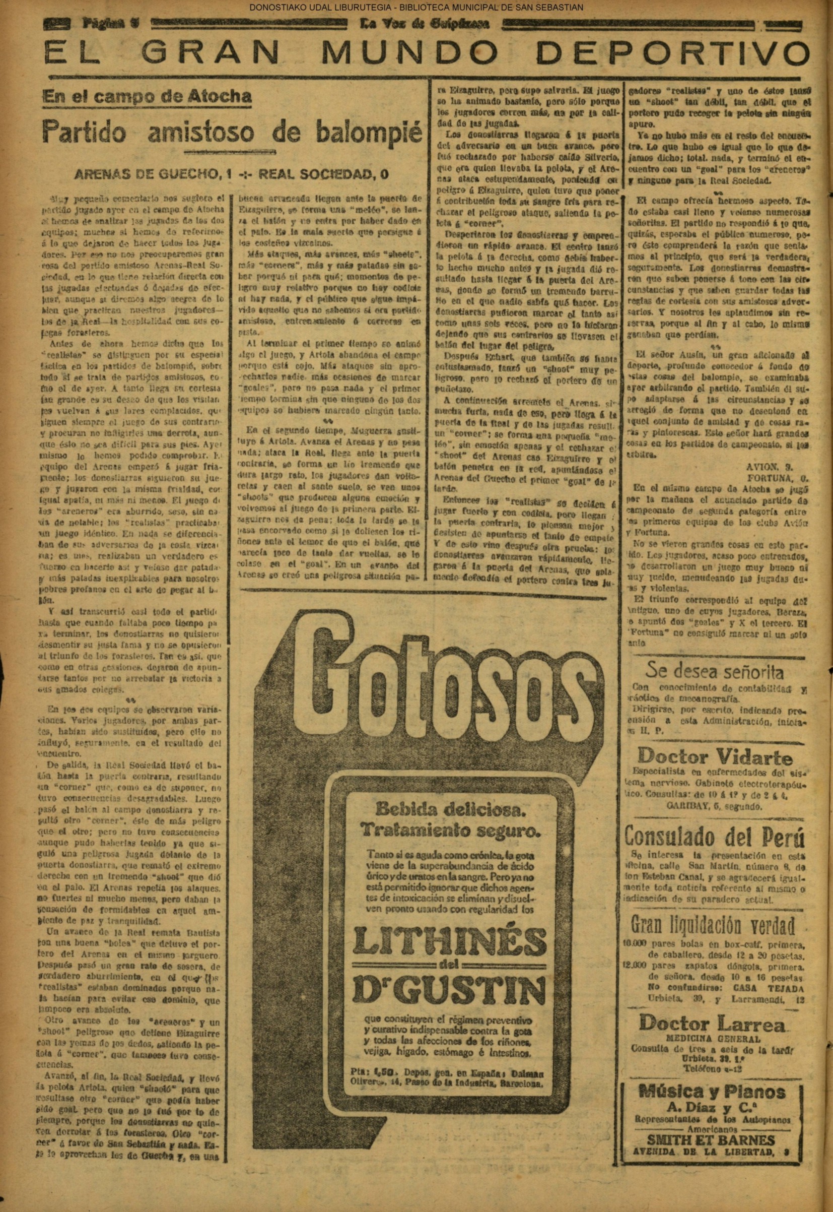 (1920)(X) FOOTBALL - Amistoso - REAL SOCIEDAD (0-1) ARENAS DE GUECHO