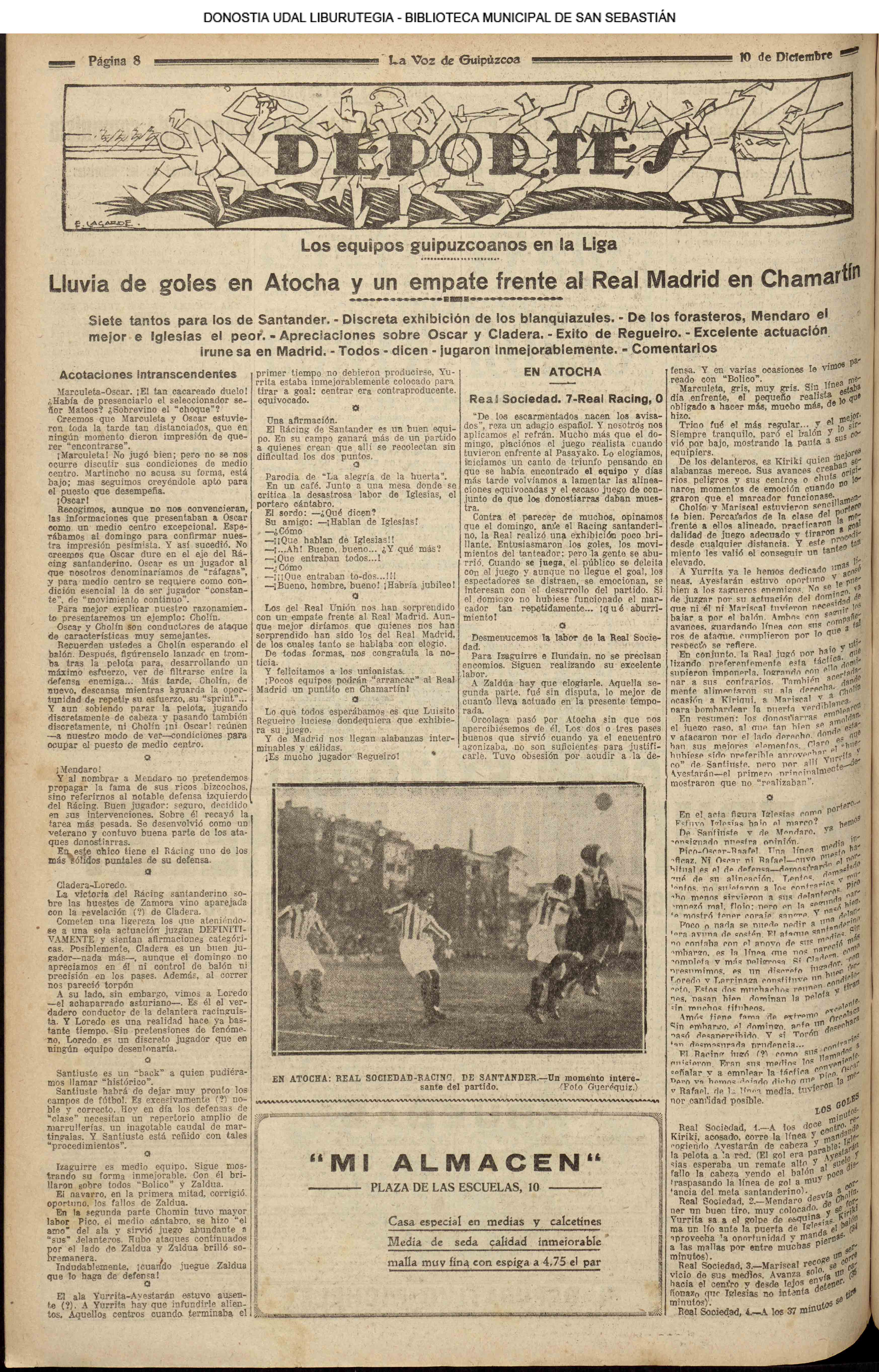 (1929) FOOTBALL - REAL SOCIEDAD (7-0) RACING DE SANTANDER