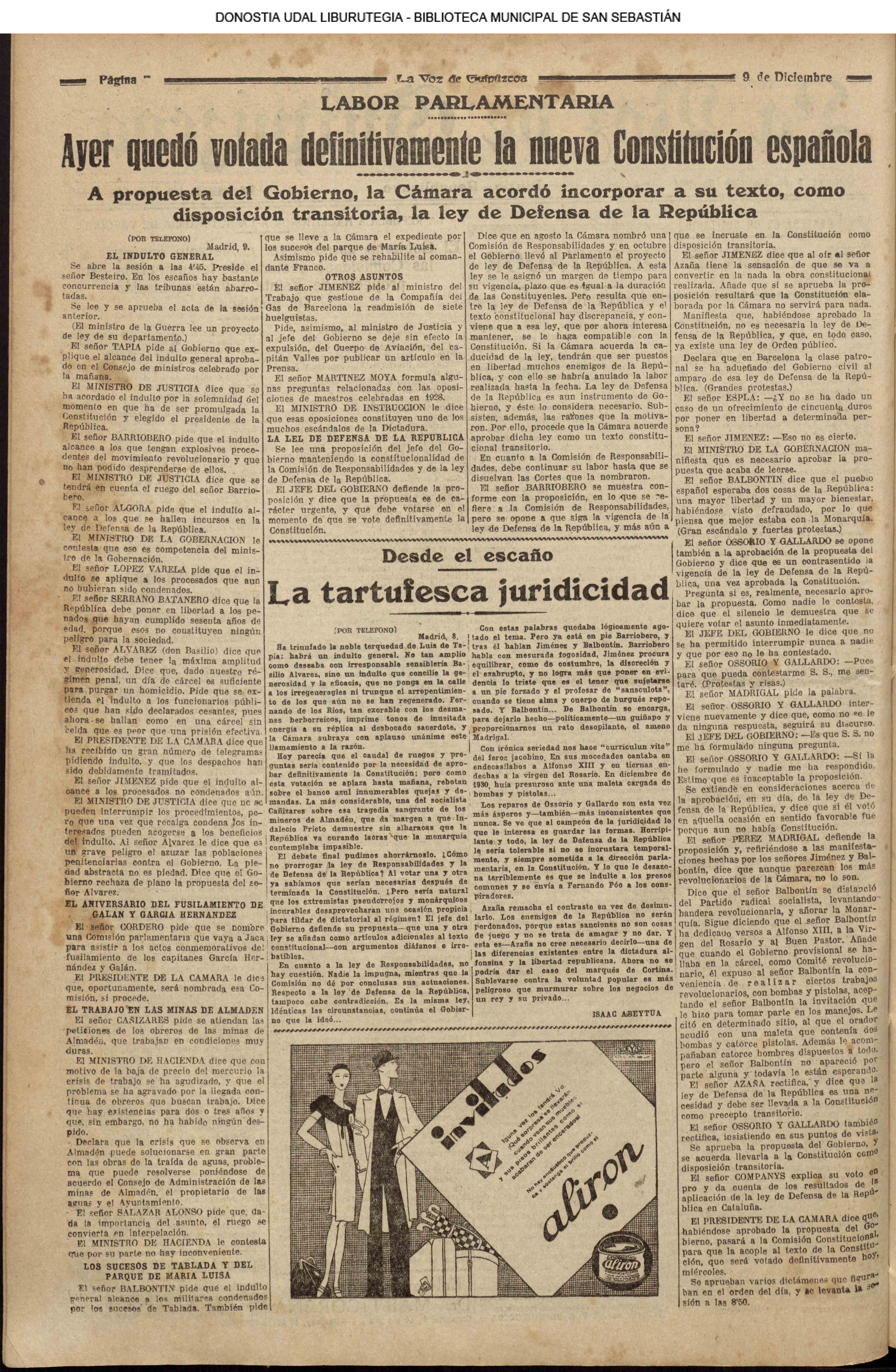 (1931) # LABOR PARLAMENTARIA- Quedó votada definitivamente la nueva Constitución española