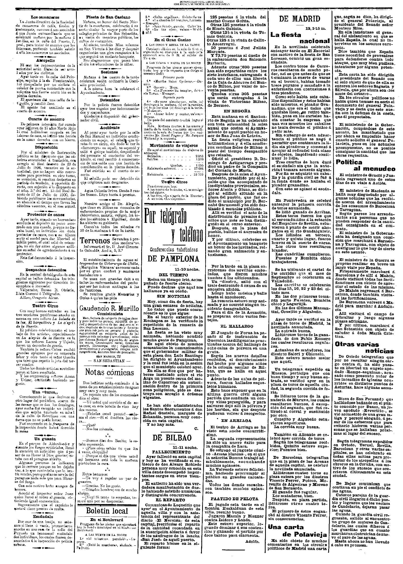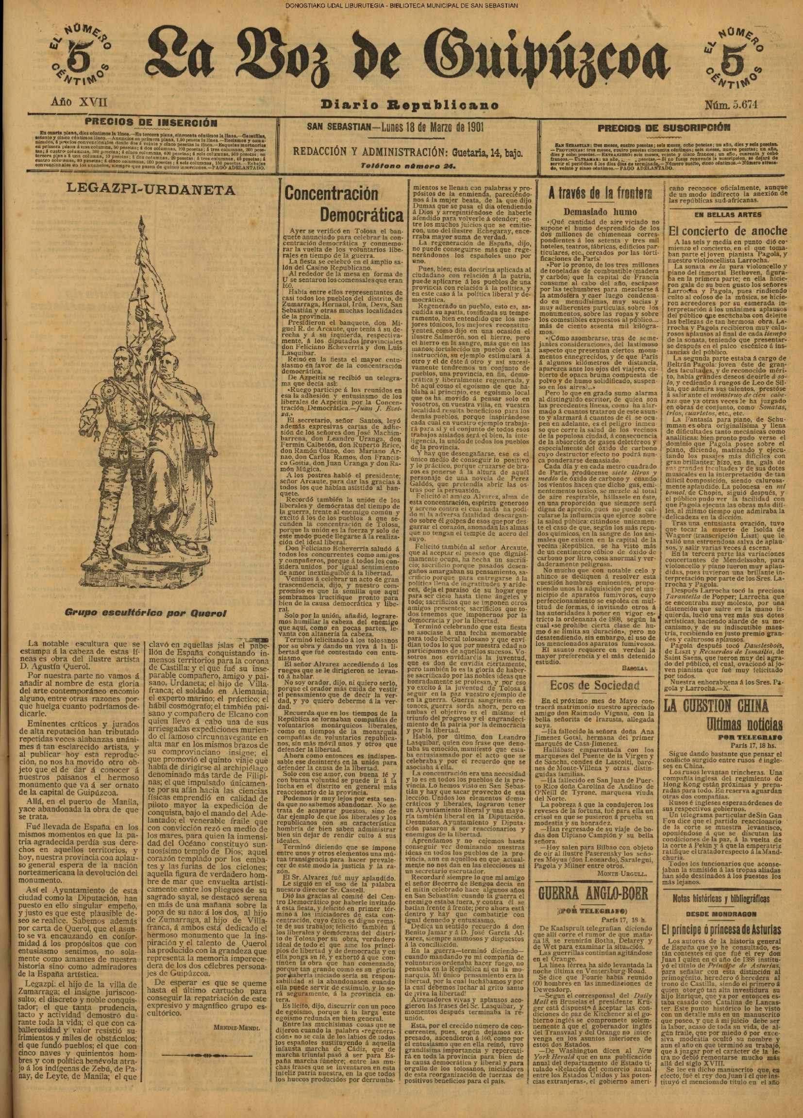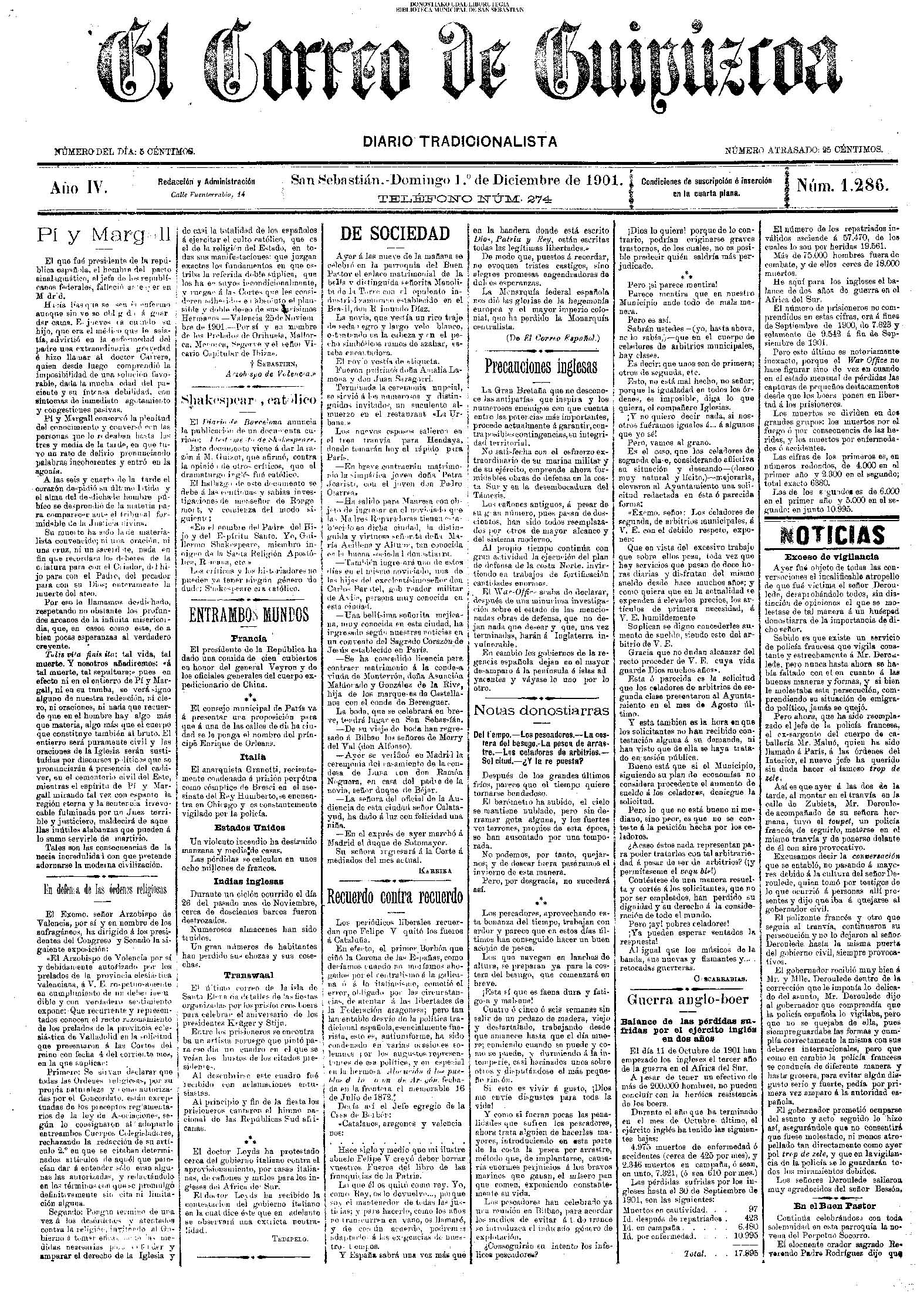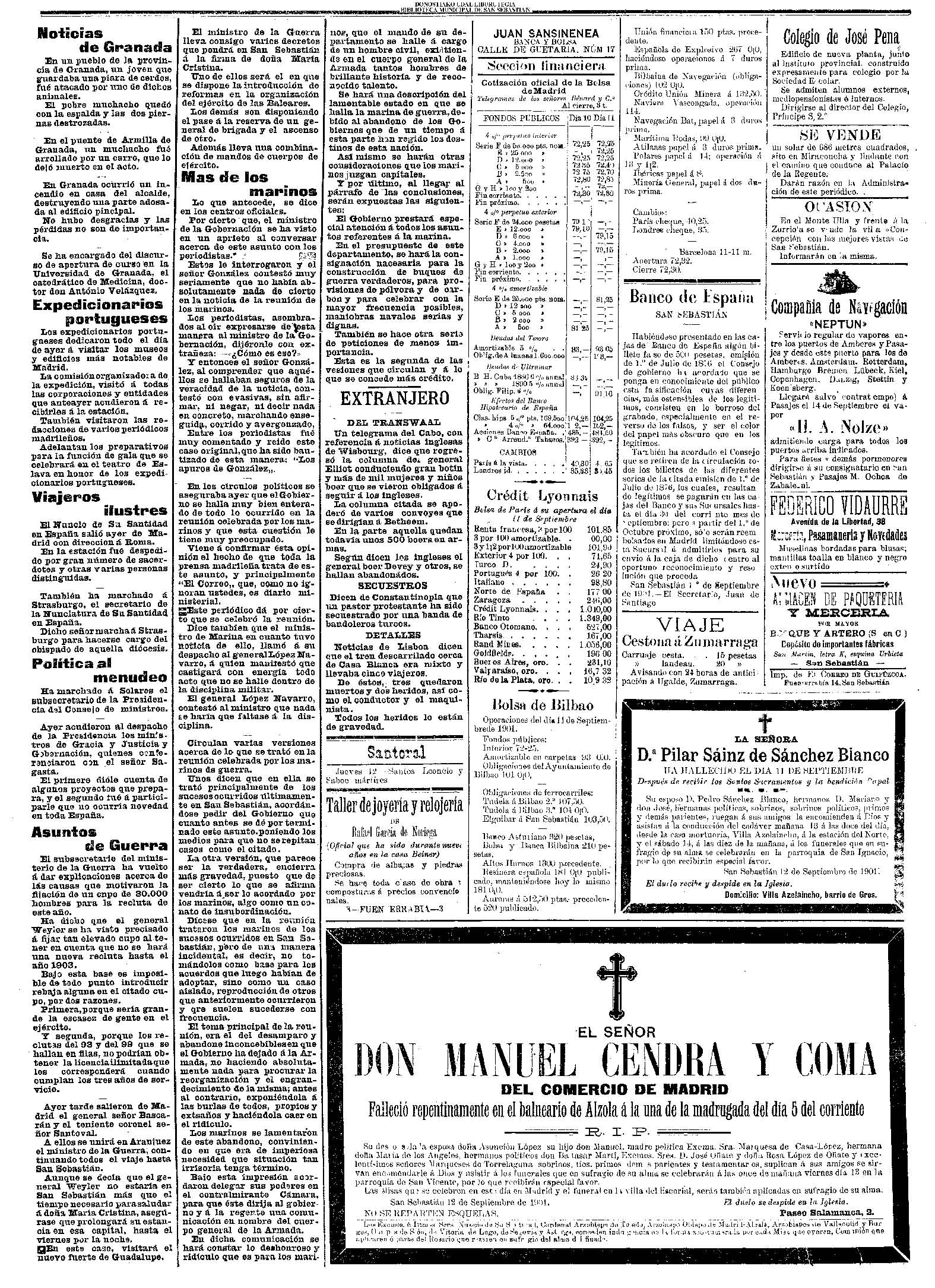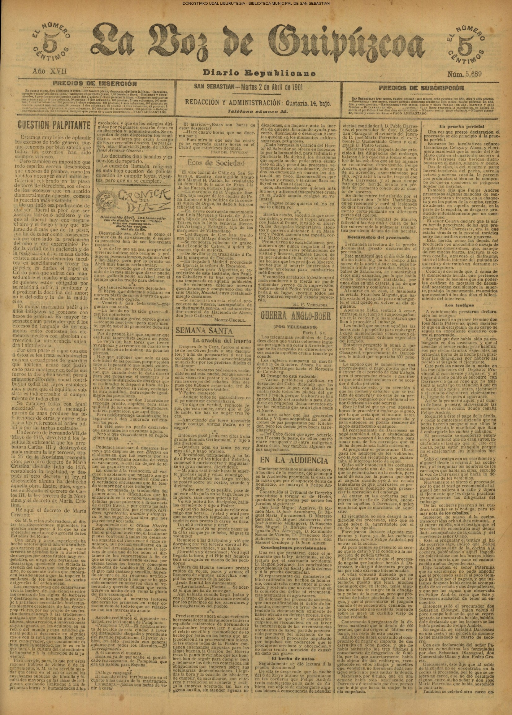 .- Nuevo Asilo de San José. En el magnifico paseo de los Fueros se está levantando el nuevo y hermoso Asilo en terrenos cedidos por el excelentísimo Ayuntamiento a la Junta de Señoras presidida por doña Desideria Petit Jean, viuda de Elosegui, que en unión de las demás señoras, y luchando con muchos inconvenientes, gracias a su constancia y amor å lacaridad, consiguieron fundar un asilo para niños pobres, que admirablemente administrado, llegó á la mayor perfección. Pero haciase demasiado reducido para las presentes necesidades el local que ocupaban, y solicitaron del excelentísimo Ayuntamiento la concesión de otro terreno más amplio, y nuestro ilustre municipio, como no podía menos, tratándose de señoras que tantos sacrificios han hecho por la doliente humanidad, el dió terreno indicado en el que van á levantar un magnífico edificio en el que quedarán satisfechas todas las necesidades y las aspiraciones propias para un establecimiento mentado según los adelantos del día. Felicitamos a las señoras que componen la referida Junta, y rogamos à Dios les conceda muchos años de salud para que con la misma solicitud y empeño puedan dedicarse á los muchos trabajos que tienen que emprender para ver coronada su obra de recibir las bendiciones de Dios y de los pobres. .- El observatorio del Mendizorrotz Gran Casino El Banco Guipuzcoano El Palacio de Justicia Notable progreso Súplica Felicitaciones