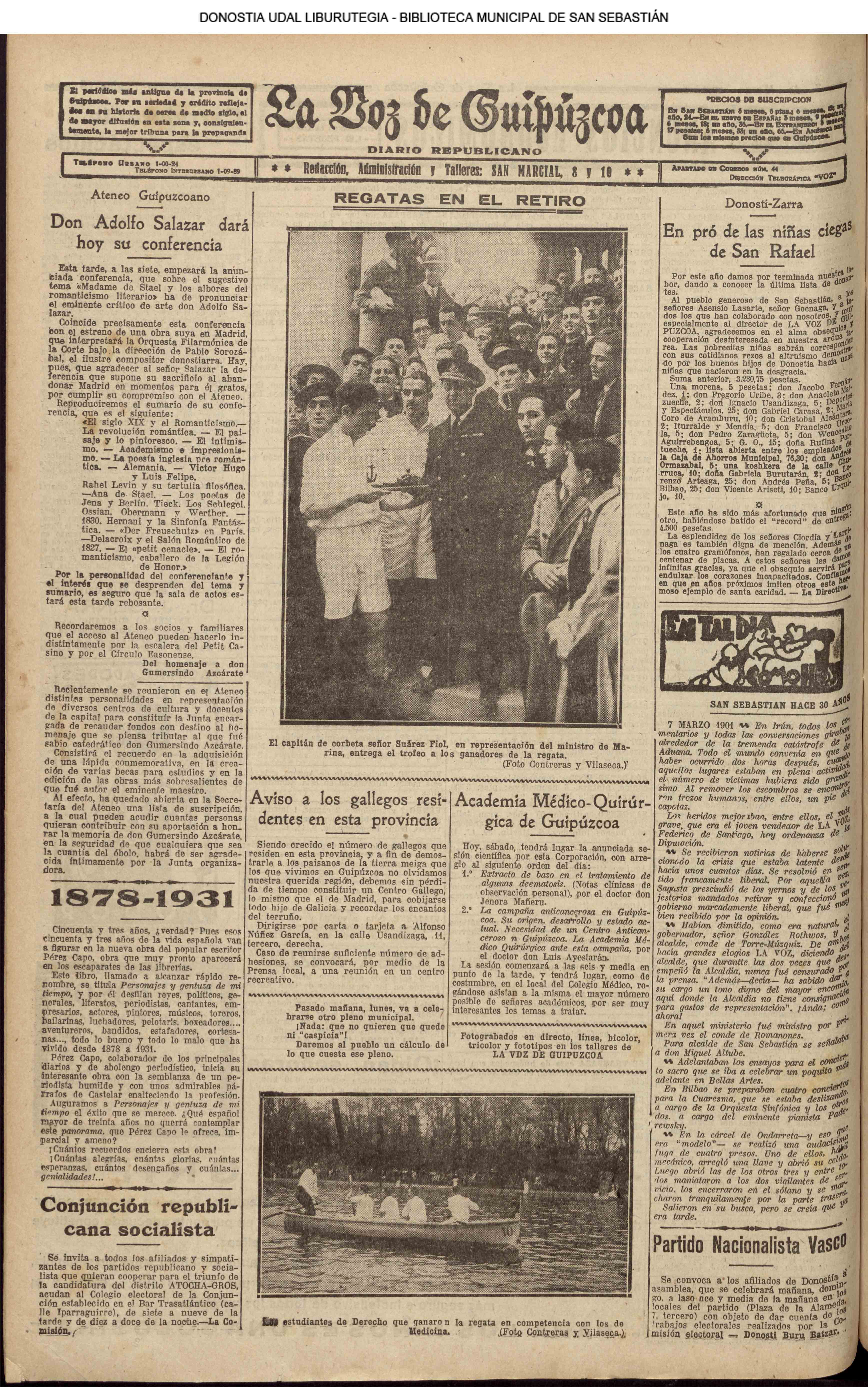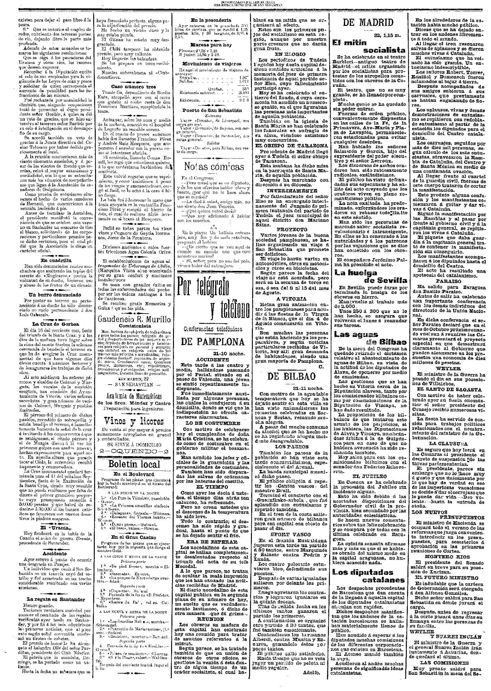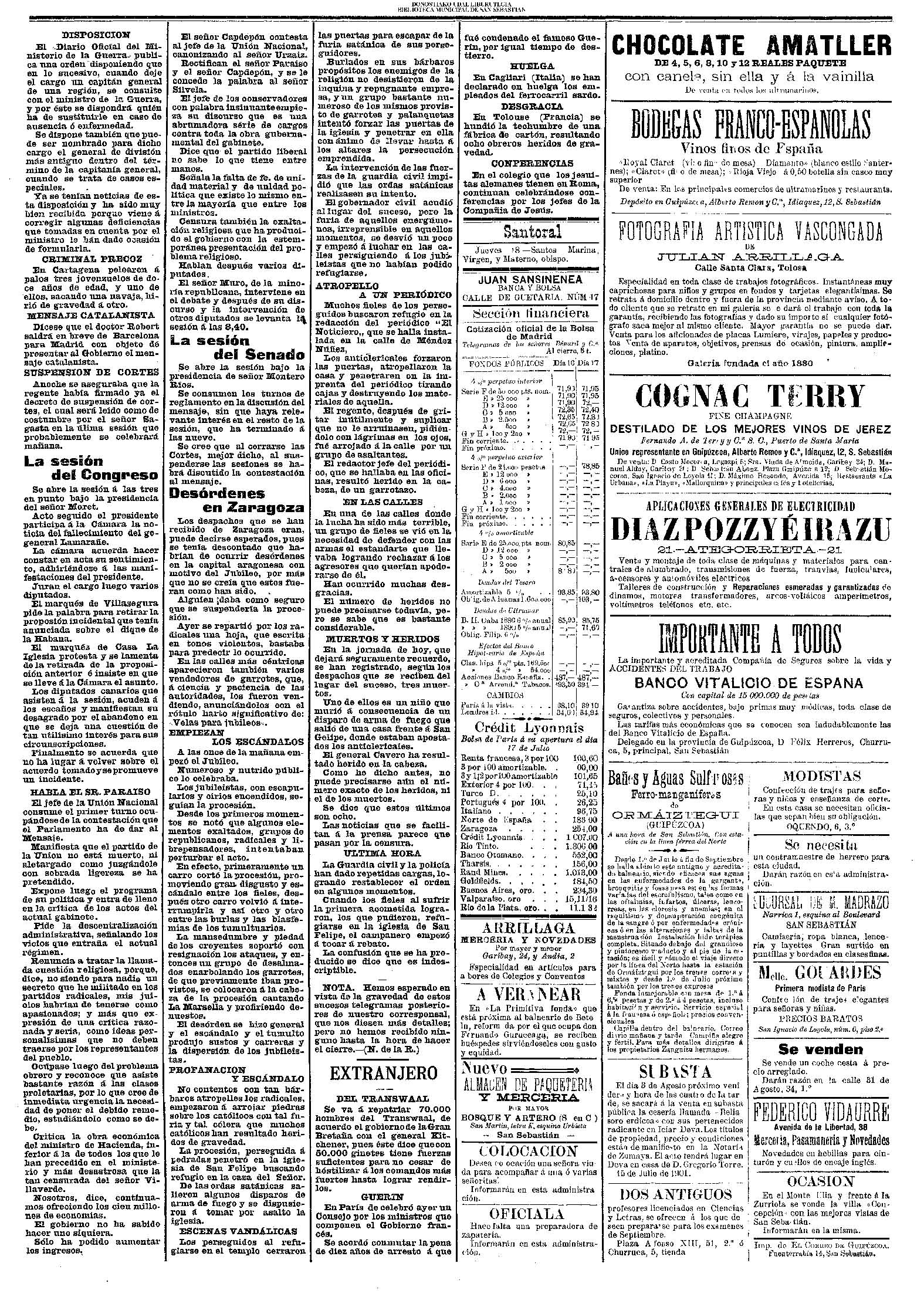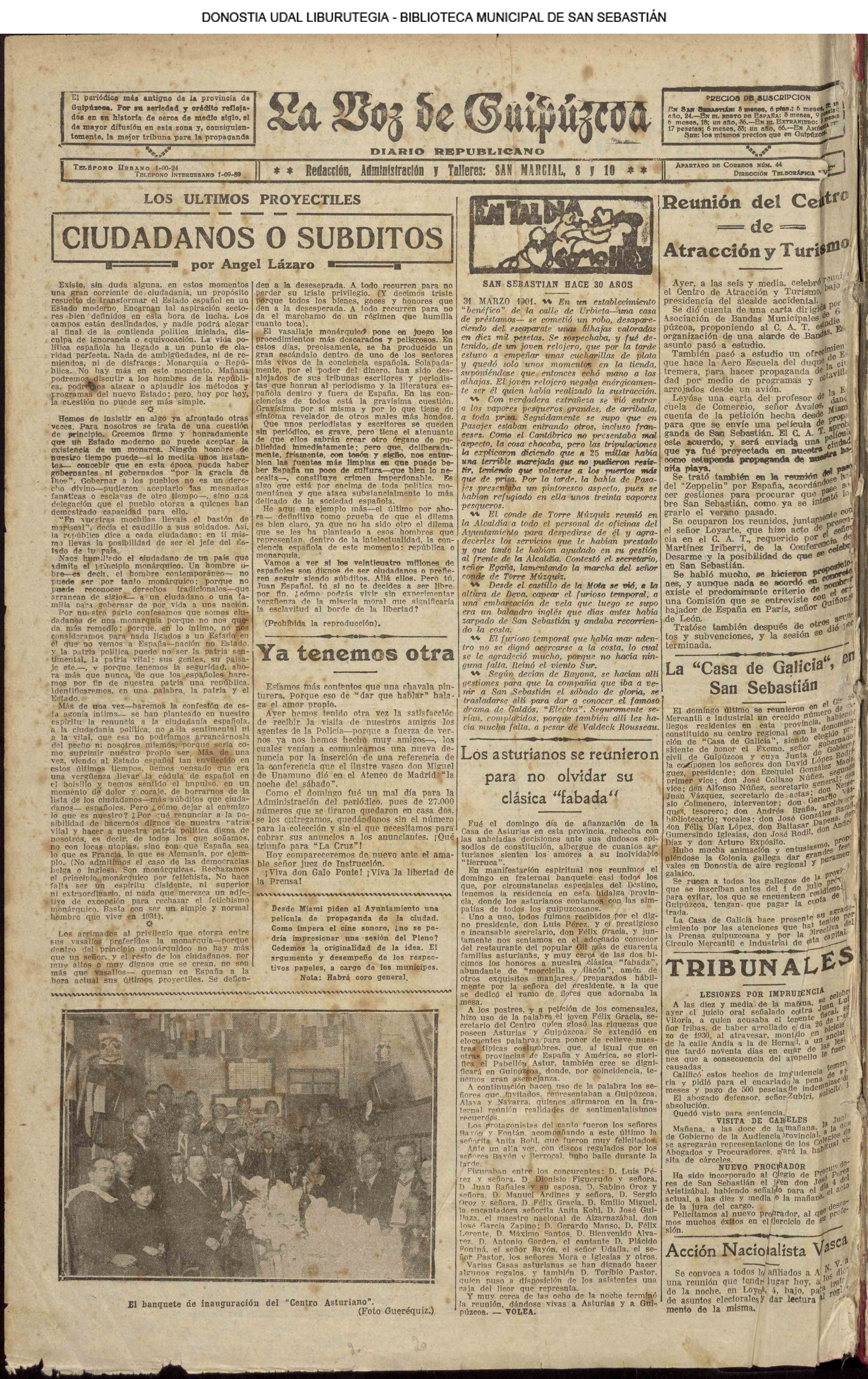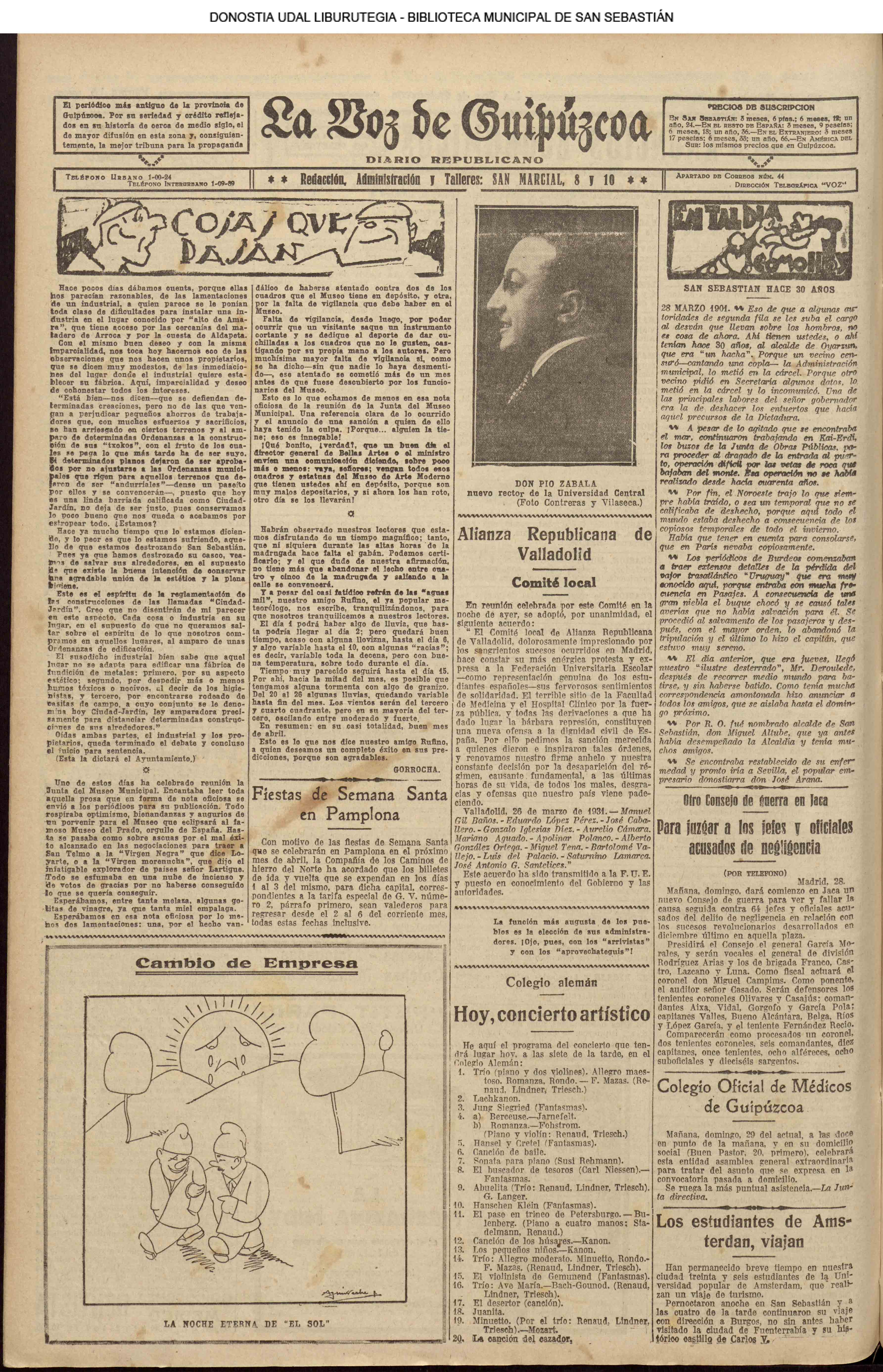 .- Nuevo Asilo de San José. En el magnifico paseo de los Fueros se está levantando el nuevo y hermoso Asilo en terrenos cedidos por el excelentísimo Ayuntamiento a la Junta de Señoras presidida por doña Desideria Petit Jean, viuda de Elosegui, que en unión de las demás señoras, y luchando con muchos inconvenientes, gracias a su constancia y amor å lacaridad, consiguieron fundar un asilo para niños pobres, que admirablemente administrado, llegó á la mayor perfección. Pero haciase demasiado reducido para las presentes necesidades el local que ocupaban, y solicitaron del excelentísimo Ayuntamiento la concesión de otro terreno más amplio, y nuestro ilustre municipio, como no podía menos, tratándose de señoras que tantos sacrificios han hecho por la doliente humanidad, el dió terreno indicado en el que van á levantar un magnífico edificio en el que quedarán satisfechas todas las necesidades y las aspiraciones propias para un establecimiento mentado según los adelantos del día. Felicitamos a las señoras que componen la referida Junta, y rogamos à Dios les conceda muchos años de salud para que con la misma solicitud y empeño puedan dedicarse á los muchos trabajos que tienen que emprender para ver coronada su obra de recibir las bendiciones de Dios y de los pobres. .- El observatorio del Mendizorrotz Gran Casino El Banco Guipuzcoano El Palacio de Justicia Notable progreso Súplica Felicitaciones