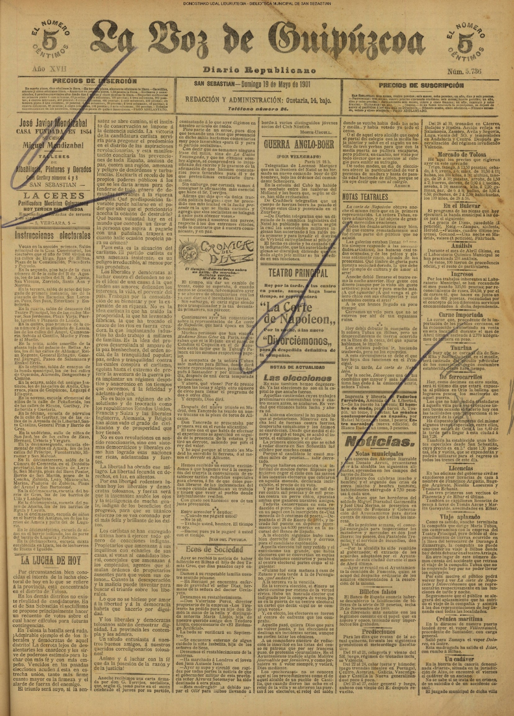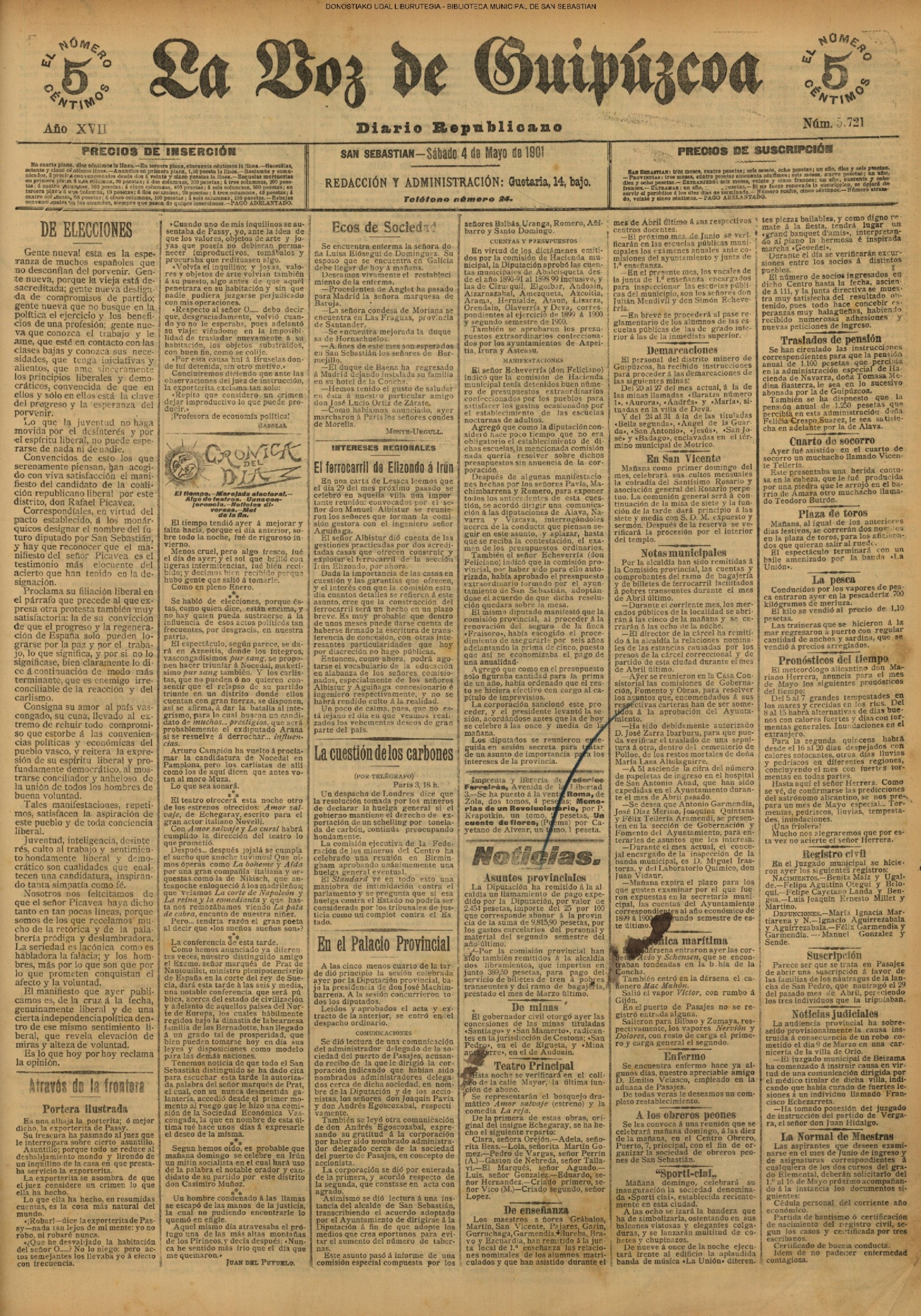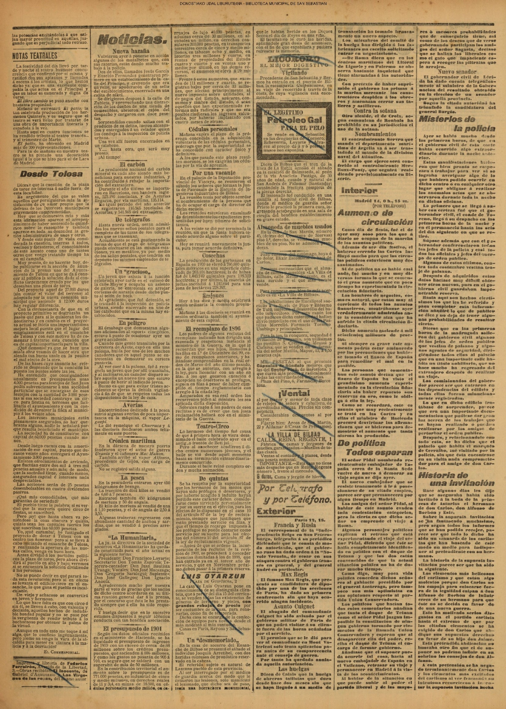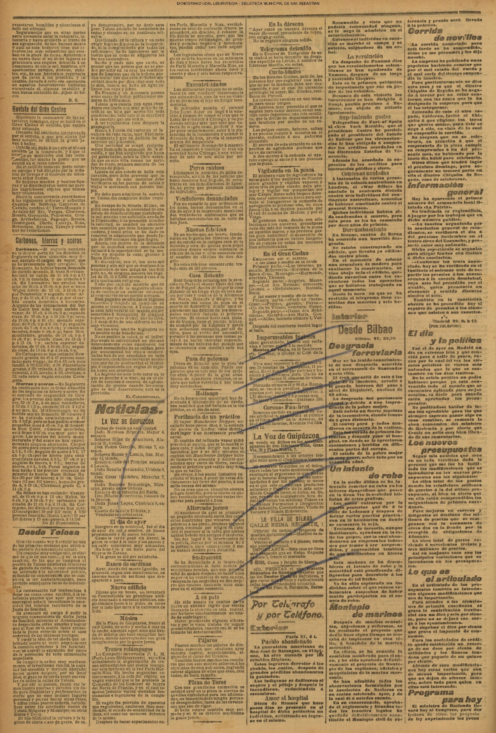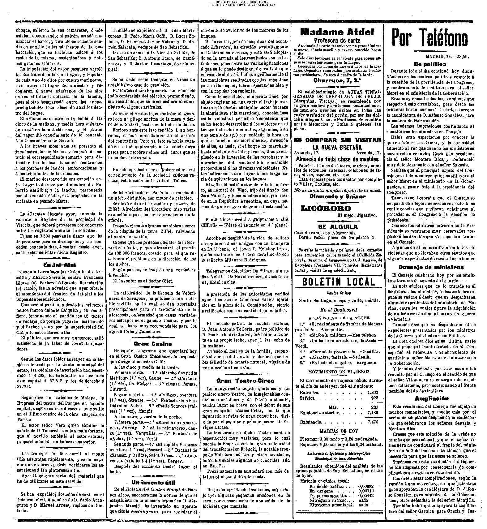 KOXKAS DONOSTIARRAS : "Curiosidades" El primer anuncio de la próxima llegada de las Navidades aparecía en los escaparates. Junto a otrsas golosinas, allí estaba en cajón o en barras el turrón, teniendo a su lado las olorosas aceitunas, las encendidas granadas, las peladillas bien envueltas en su capa de azúcar, los anises confitados, la garrapiñada, todo ese mundo de delicias. Al turrón le siguen el ejército de botellas y capones, de fiembres y pavos, de frutas sabrosísimas, de manjares incontables. Si en los días de Navidad sabe mejor el turrón, ¡qué deseado es siempre!¡Qué dulce es gustar siempre un cachito del azucarado postre!. La llegada del turrón era saludada en los periódicos de hace un siglo, que daban cuenta de que establecimiento había sido el primero en ponerlo en sus escaparates, como aviso urgente de que las Navidades estaban llegando. El cine llegó a nuestra ciudad hace un siglo. Entonces se llamaba Cinebiógrafo y las sesiones que daban eran cortas pero variadísimas. Vea el lector el programa que anunciaba el Cinebiógrafo Lumiére para el domingo 8 de diciembre de 1901. Primera sesión, a las 4 de la tarde : escenas cómicas. Magia moderna. Gabinete encantado. En la ratonera. El diablo en el convento. Regalo: rifa de una carabina Eureka. Segunda sesión, a las 5 de la tarde: Escenas marítimas. Seis retratos una peseta. Los apuros de don Cleto. Pirámides humanas. La luna, a un metro. Regalo: rifa de un servicio de porcelana para su muñeca. Tercera sesión, a las 6 de la tarde: Desfiles militares. Baile en el Olimpia. Entierro de la reina Victoria. Llegada de un tren. La Cenicienta. Regalo: rifa de un tren. Cuarta sesión, a las 7 de la tarde : Escenas infantiles. Danza de fuego. La portera burlada. Episodios del Fausto. Corrida de toros. Regalo: rifa de una preciosa muñeca. El cinebiógrafo de Bellas Artes, aquellos primeros días de diciembre de 1901, proyectaba Noel y anunciaba La caperuza roja, el popular cuento que todos los niños conocían, para los próximos días. Antes había proyectado la Cenicienta y Juana de Arco. Por aquellos días, en un par de escenarios hacían sus galas y su modo de retorcerse siete u ocho chiquillas "de esas que van de bellas". Con la cabeza coquetonamente cubierta por un sombrero, con la vistosa falta de colorines "previamente recogida como si estuviera pasando a pie un río, y el pañolón de Manila rodeado al cuerpo", comienza la suerte del tirabuzón, o sea, la del sacacorchos. Aquellas chicas se retuercen, hacen cosas raras con los pies, con las manos, con todo el cuerpo, volviendo locos a los espectadores. |