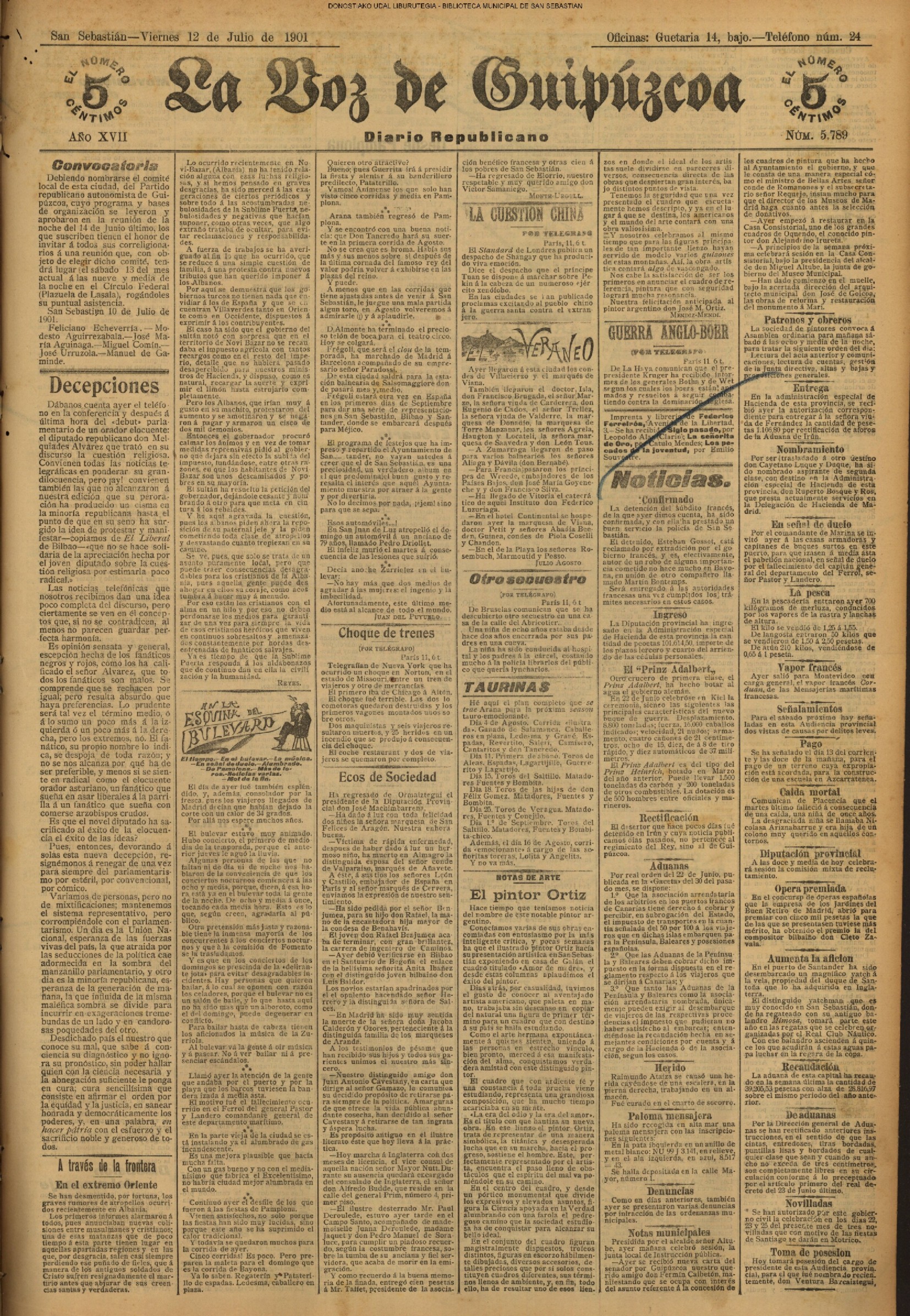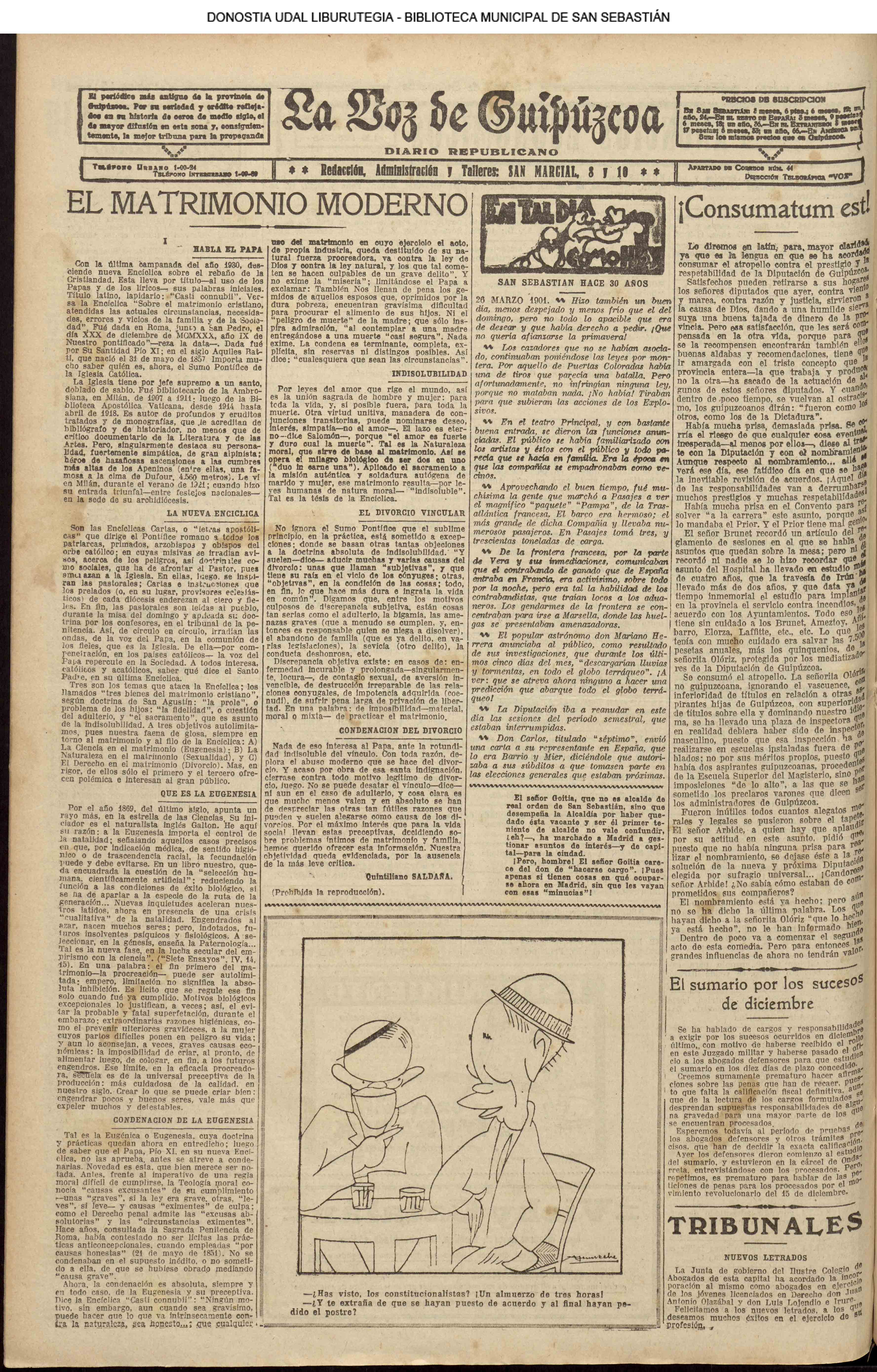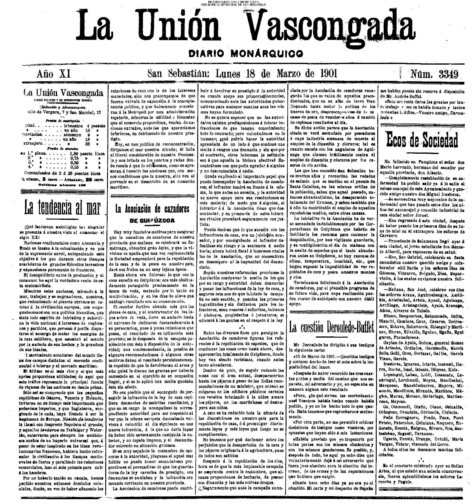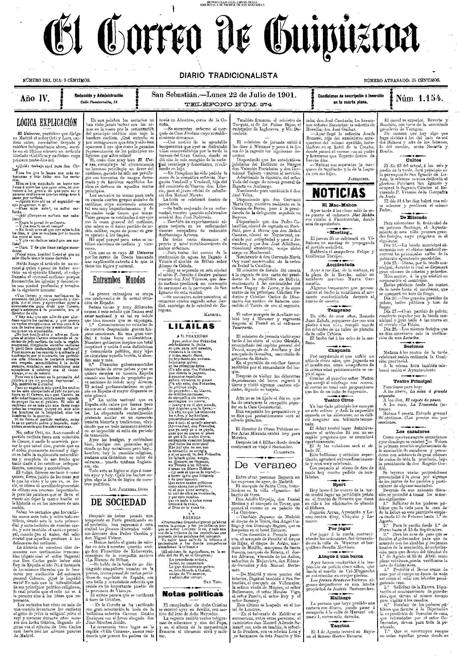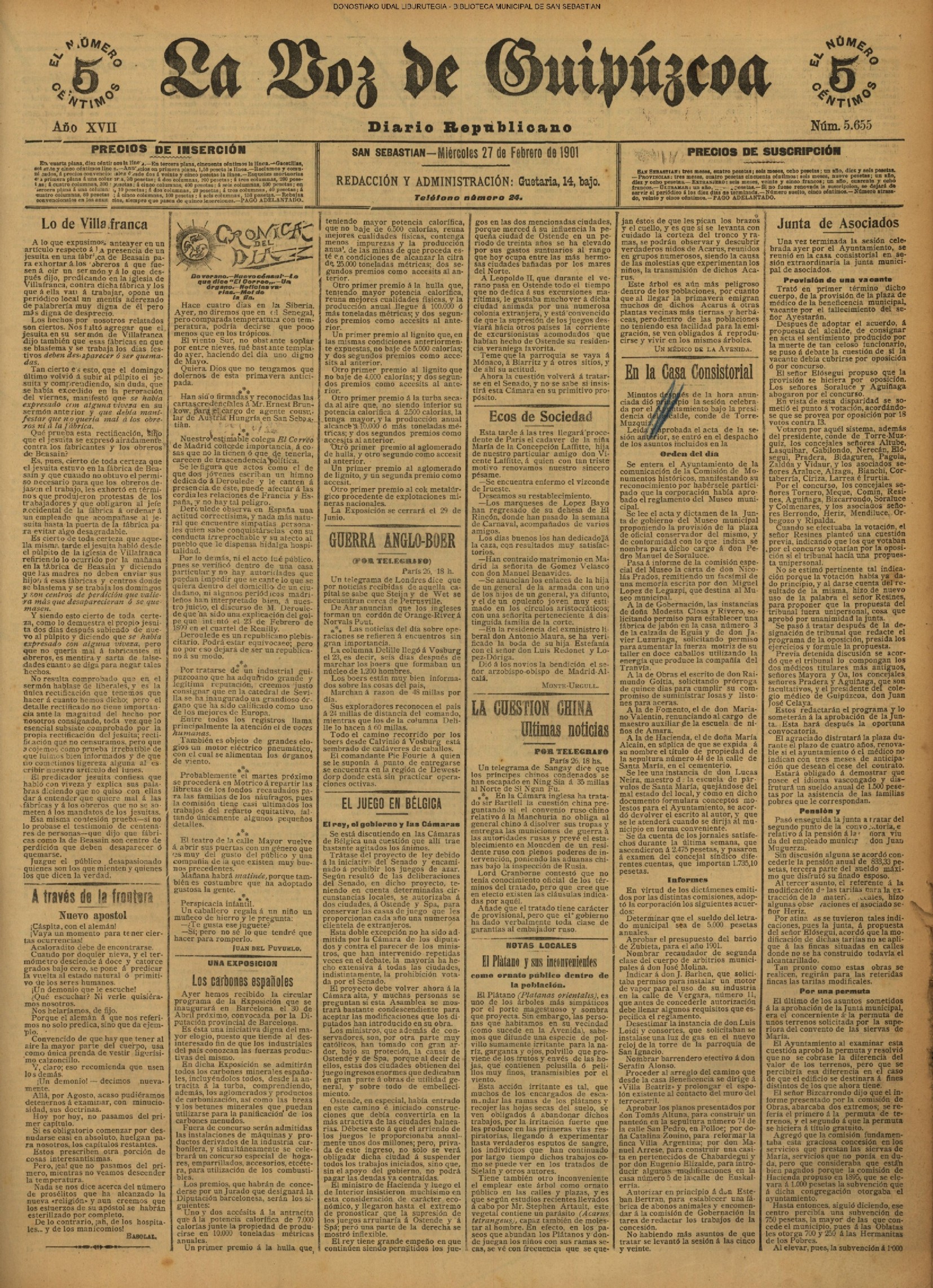 KOXKAS DONOSTIARRAS : "Curiosidades" El primer anuncio de la próxima llegada de las Navidades aparecía en los escaparates. Junto a otrsas golosinas, allí estaba en cajón o en barras el turrón, teniendo a su lado las olorosas aceitunas, las encendidas granadas, las peladillas bien envueltas en su capa de azúcar, los anises confitados, la garrapiñada, todo ese mundo de delicias. Al turrón le siguen el ejército de botellas y capones, de fiembres y pavos, de frutas sabrosísimas, de manjares incontables. Si en los días de Navidad sabe mejor el turrón, ¡qué deseado es siempre!¡Qué dulce es gustar siempre un cachito del azucarado postre!. La llegada del turrón era saludada en los periódicos de hace un siglo, que daban cuenta de que establecimiento había sido el primero en ponerlo en sus escaparates, como aviso urgente de que las Navidades estaban llegando. El cine llegó a nuestra ciudad hace un siglo. Entonces se llamaba Cinebiógrafo y las sesiones que daban eran cortas pero variadísimas. Vea el lector el programa que anunciaba el Cinebiógrafo Lumiére para el domingo 8 de diciembre de 1901. Primera sesión, a las 4 de la tarde : escenas cómicas. Magia moderna. Gabinete encantado. En la ratonera. El diablo en el convento. Regalo: rifa de una carabina Eureka. Segunda sesión, a las 5 de la tarde: Escenas marítimas. Seis retratos una peseta. Los apuros de don Cleto. Pirámides humanas. La luna, a un metro. Regalo: rifa de un servicio de porcelana para su muñeca. Tercera sesión, a las 6 de la tarde: Desfiles militares. Baile en el Olimpia. Entierro de la reina Victoria. Llegada de un tren. La Cenicienta. Regalo: rifa de un tren. Cuarta sesión, a las 7 de la tarde : Escenas infantiles. Danza de fuego. La portera burlada. Episodios del Fausto. Corrida de toros. Regalo: rifa de una preciosa muñeca. El cinebiógrafo de Bellas Artes, aquellos primeros días de diciembre de 1901, proyectaba Noel y anunciaba La caperuza roja, el popular cuento que todos los niños conocían, para los próximos días. Antes había proyectado la Cenicienta y Juana de Arco. Por aquellos días, en un par de escenarios hacían sus galas y su modo de retorcerse siete u ocho chiquillas "de esas que van de bellas". Con la cabeza coquetonamente cubierta por un sombrero, con la vistosa falta de colorines "previamente recogida como si estuviera pasando a pie un río, y el pañolón de Manila rodeado al cuerpo", comienza la suerte del tirabuzón, o sea, la del sacacorchos. Aquellas chicas se retuercen, hacen cosas raras con los pies, con las manos, con todo el cuerpo, volviendo locos a los espectadores. |
