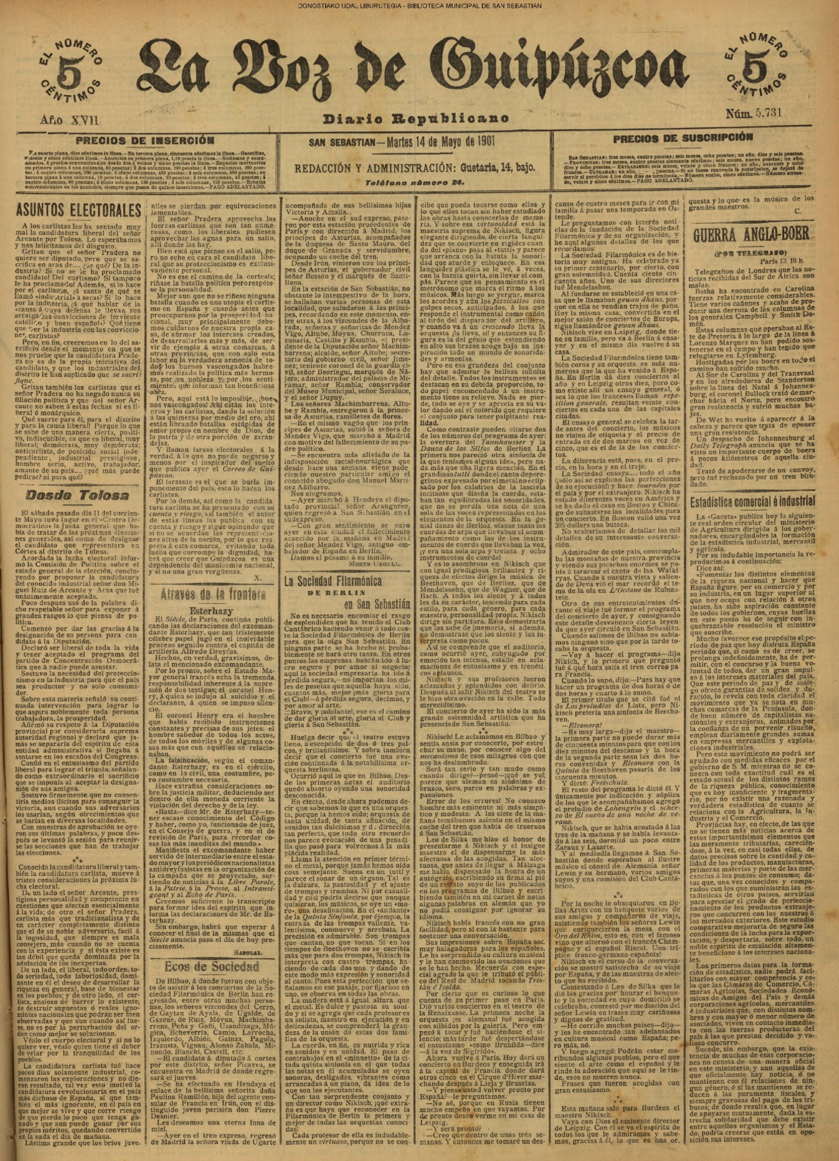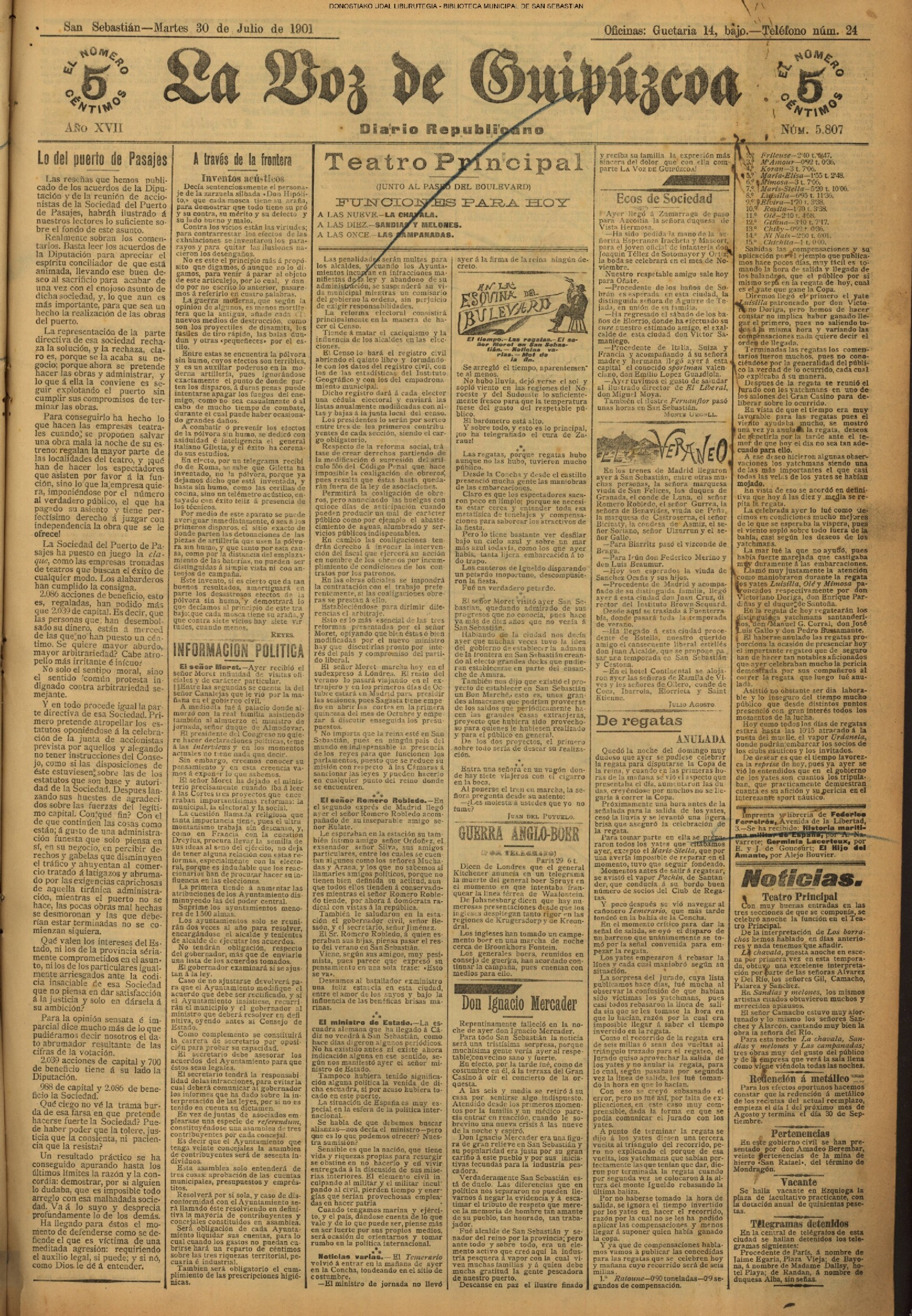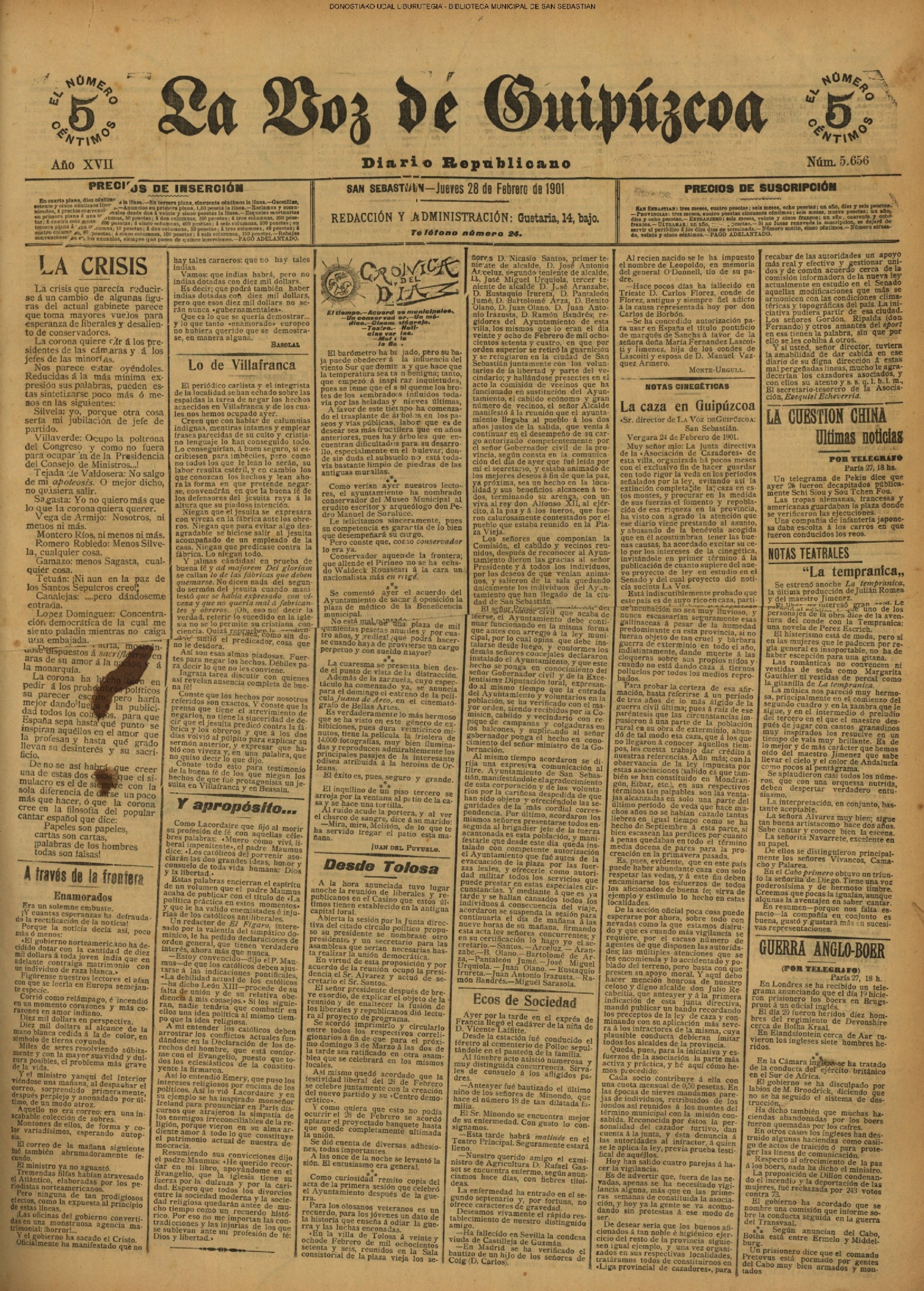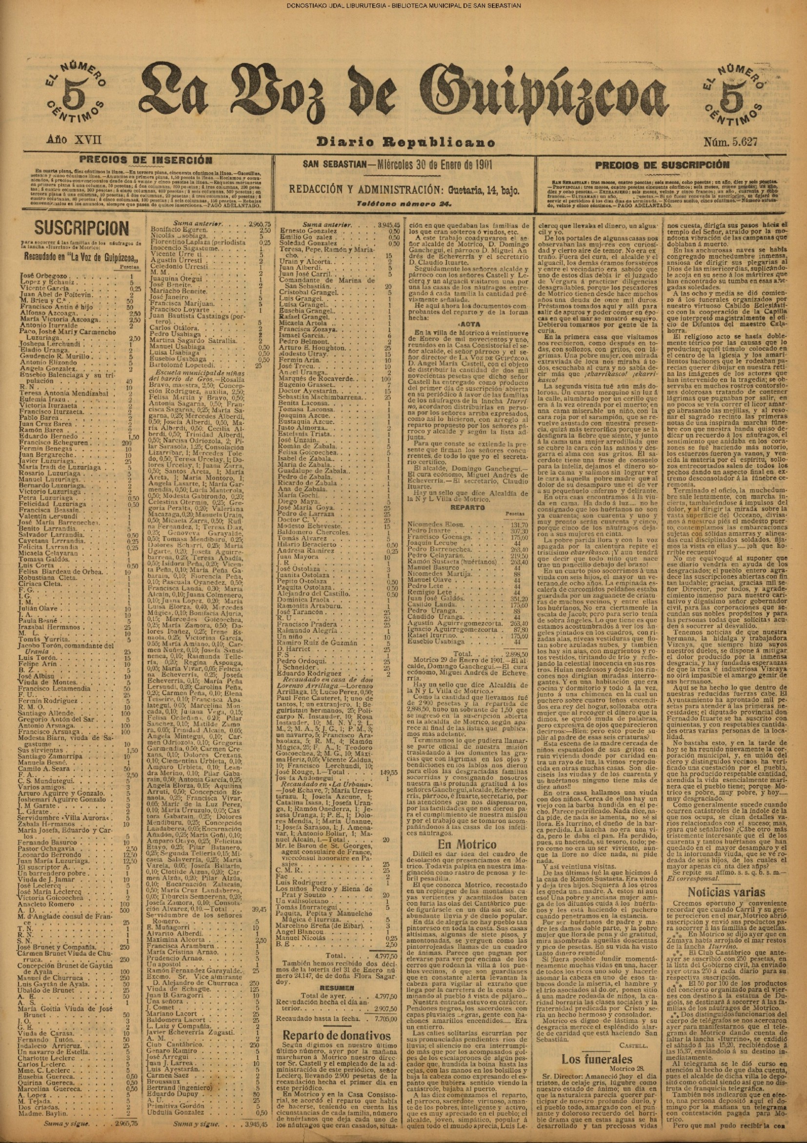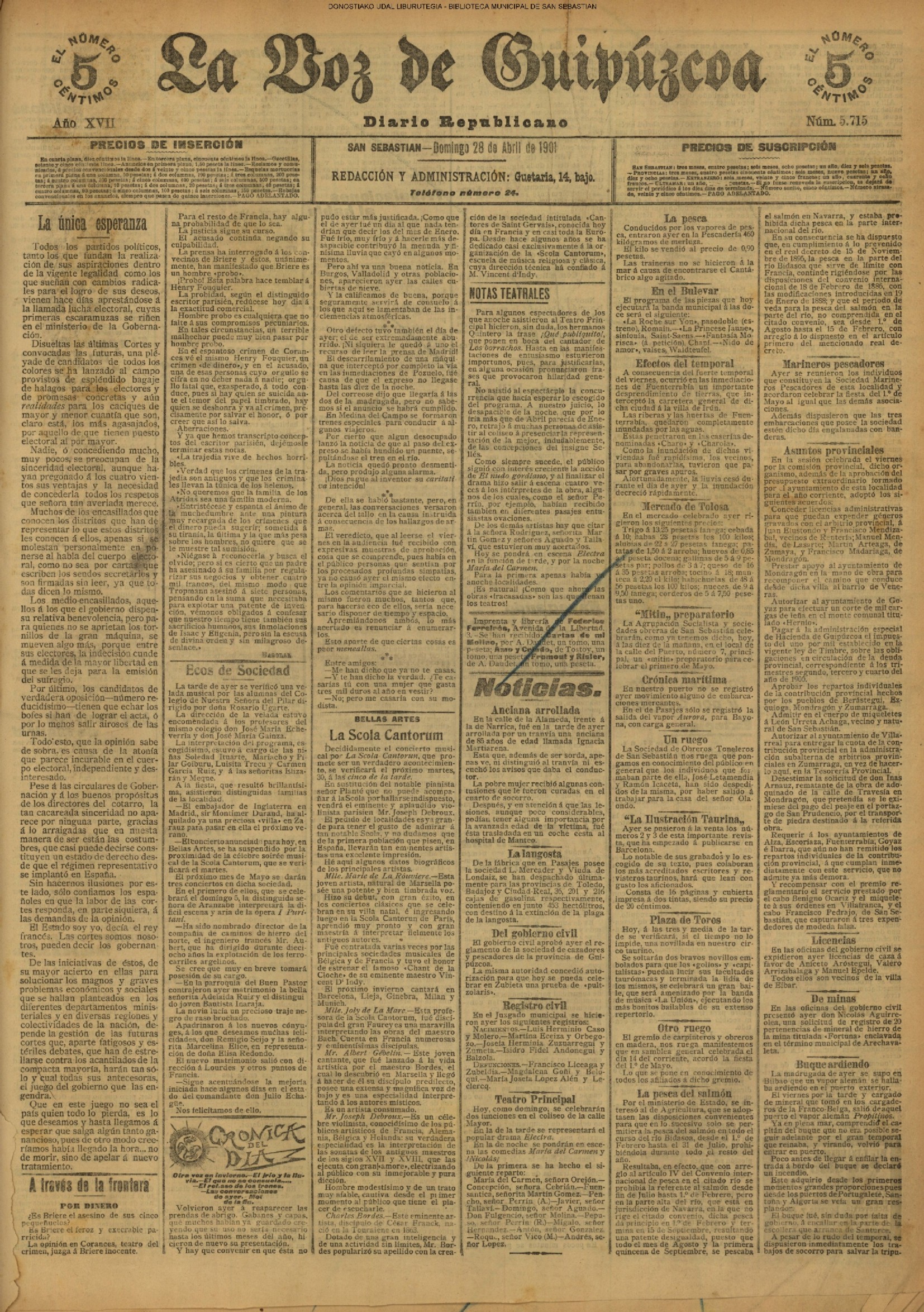 KOXKAS DONOSTIARRAS : "Curiosidades" El primer anuncio de la próxima llegada de las Navidades aparecía en los escaparates. Junto a otrsas golosinas, allí estaba en cajón o en barras el turrón, teniendo a su lado las olorosas aceitunas, las encendidas granadas, las peladillas bien envueltas en su capa de azúcar, los anises confitados, la garrapiñada, todo ese mundo de delicias. Al turrón le siguen el ejército de botellas y capones, de fiembres y pavos, de frutas sabrosísimas, de manjares incontables. Si en los días de Navidad sabe mejor el turrón, ¡qué deseado es siempre!¡Qué dulce es gustar siempre un cachito del azucarado postre!. La llegada del turrón era saludada en los periódicos de hace un siglo, que daban cuenta de que establecimiento había sido el primero en ponerlo en sus escaparates, como aviso urgente de que las Navidades estaban llegando. El cine llegó a nuestra ciudad hace un siglo. Entonces se llamaba Cinebiógrafo y las sesiones que daban eran cortas pero variadísimas. Vea el lector el programa que anunciaba el Cinebiógrafo Lumiére para el domingo 8 de diciembre de 1901. Primera sesión, a las 4 de la tarde : escenas cómicas. Magia moderna. Gabinete encantado. En la ratonera. El diablo en el convento. Regalo: rifa de una carabina Eureka. Segunda sesión, a las 5 de la tarde: Escenas marítimas. Seis retratos una peseta. Los apuros de don Cleto. Pirámides humanas. La luna, a un metro. Regalo: rifa de un servicio de porcelana para su muñeca. Tercera sesión, a las 6 de la tarde: Desfiles militares. Baile en el Olimpia. Entierro de la reina Victoria. Llegada de un tren. La Cenicienta. Regalo: rifa de un tren. Cuarta sesión, a las 7 de la tarde : Escenas infantiles. Danza de fuego. La portera burlada. Episodios del Fausto. Corrida de toros. Regalo: rifa de una preciosa muñeca. El cinebiógrafo de Bellas Artes, aquellos primeros días de diciembre de 1901, proyectaba Noel y anunciaba La caperuza roja, el popular cuento que todos los niños conocían, para los próximos días. Antes había proyectado la Cenicienta y Juana de Arco. Por aquellos días, en un par de escenarios hacían sus galas y su modo de retorcerse siete u ocho chiquillas "de esas que van de bellas". Con la cabeza coquetonamente cubierta por un sombrero, con la vistosa falta de colorines "previamente recogida como si estuviera pasando a pie un río, y el pañolón de Manila rodeado al cuerpo", comienza la suerte del tirabuzón, o sea, la del sacacorchos. Aquellas chicas se retuercen, hacen cosas raras con los pies, con las manos, con todo el cuerpo, volviendo locos a los espectadores. |