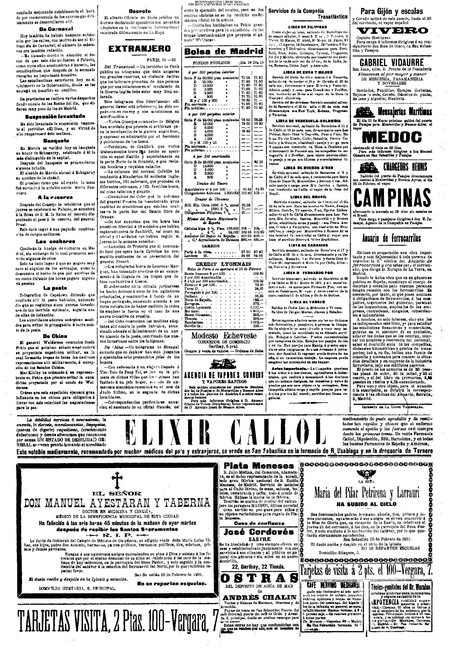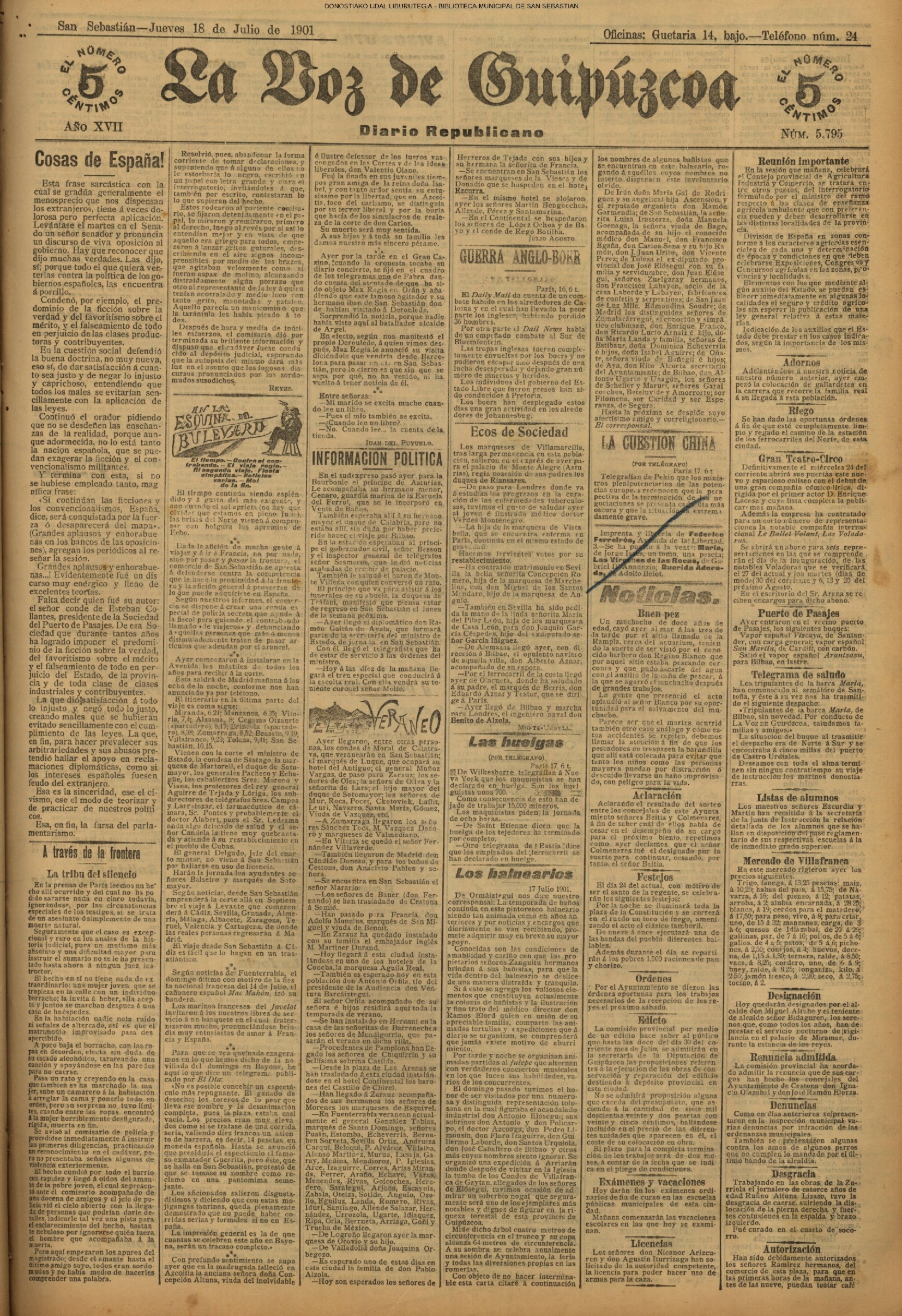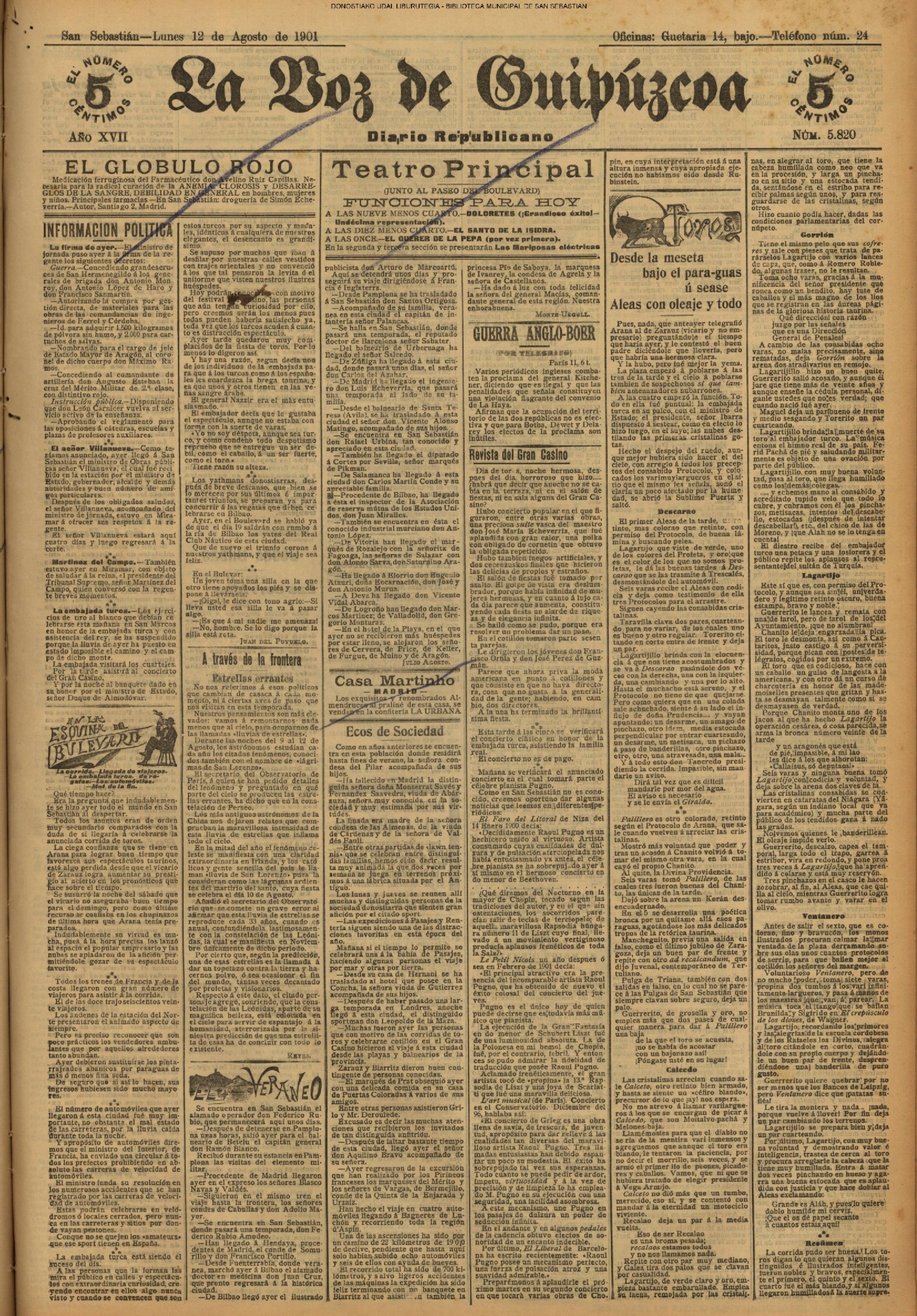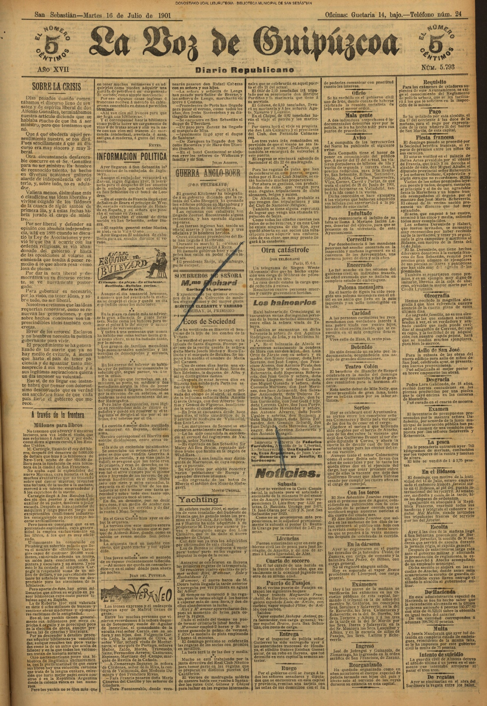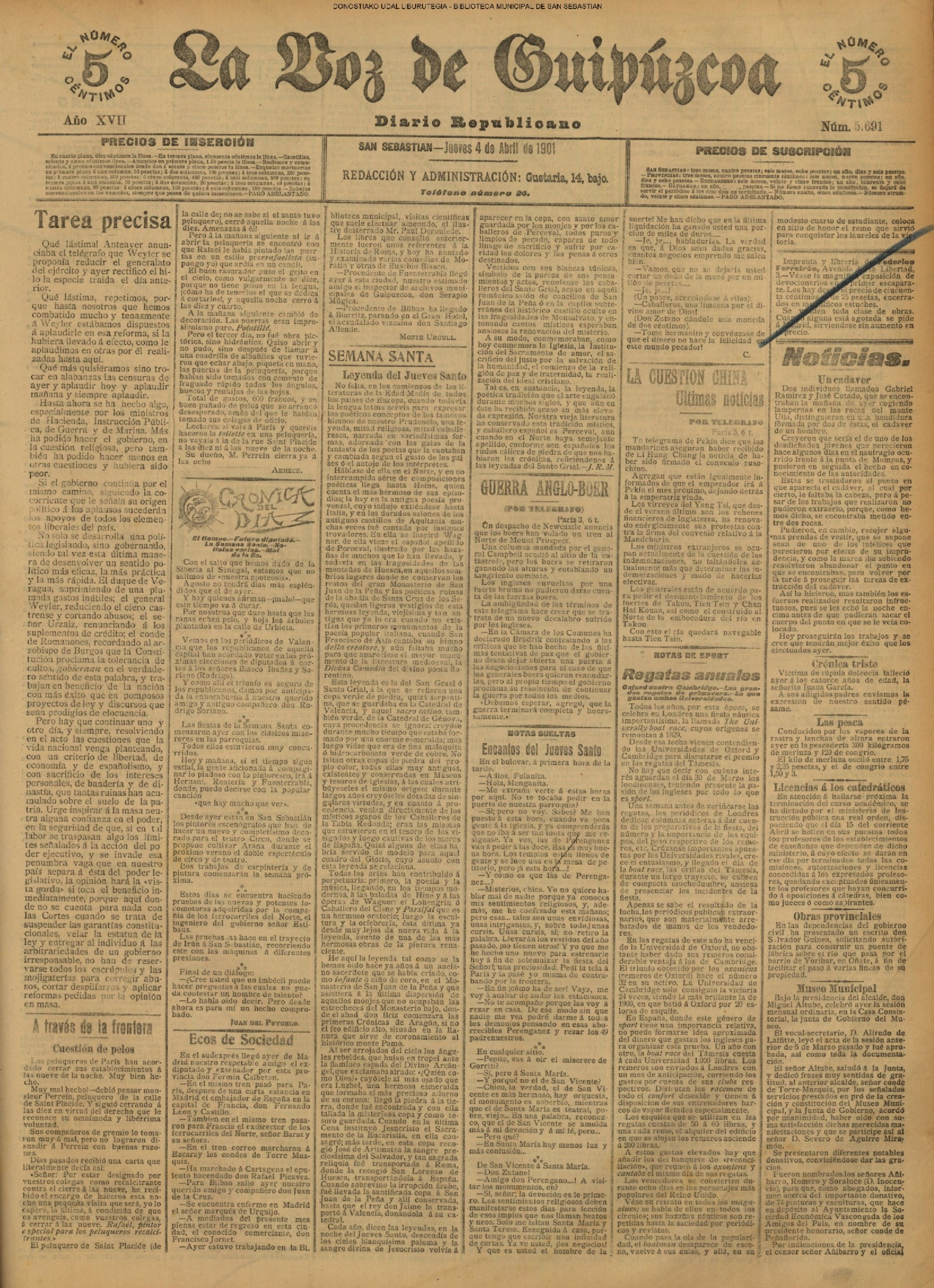 KOXKAS DONOSTIARRAS : "Curiosidades" El primer anuncio de la próxima llegada de las Navidades aparecía en los escaparates. Junto a otrsas golosinas, allí estaba en cajón o en barras el turrón, teniendo a su lado las olorosas aceitunas, las encendidas granadas, las peladillas bien envueltas en su capa de azúcar, los anises confitados, la garrapiñada, todo ese mundo de delicias. Al turrón le siguen el ejército de botellas y capones, de fiembres y pavos, de frutas sabrosísimas, de manjares incontables. Si en los días de Navidad sabe mejor el turrón, ¡qué deseado es siempre!¡Qué dulce es gustar siempre un cachito del azucarado postre!. La llegada del turrón era saludada en los periódicos de hace un siglo, que daban cuenta de que establecimiento había sido el primero en ponerlo en sus escaparates, como aviso urgente de que las Navidades estaban llegando. El cine llegó a nuestra ciudad hace un siglo. Entonces se llamaba Cinebiógrafo y las sesiones que daban eran cortas pero variadísimas. Vea el lector el programa que anunciaba el Cinebiógrafo Lumiére para el domingo 8 de diciembre de 1901. Primera sesión, a las 4 de la tarde : escenas cómicas. Magia moderna. Gabinete encantado. En la ratonera. El diablo en el convento. Regalo: rifa de una carabina Eureka. Segunda sesión, a las 5 de la tarde: Escenas marítimas. Seis retratos una peseta. Los apuros de don Cleto. Pirámides humanas. La luna, a un metro. Regalo: rifa de un servicio de porcelana para su muñeca. Tercera sesión, a las 6 de la tarde: Desfiles militares. Baile en el Olimpia. Entierro de la reina Victoria. Llegada de un tren. La Cenicienta. Regalo: rifa de un tren. Cuarta sesión, a las 7 de la tarde : Escenas infantiles. Danza de fuego. La portera burlada. Episodios del Fausto. Corrida de toros. Regalo: rifa de una preciosa muñeca. El cinebiógrafo de Bellas Artes, aquellos primeros días de diciembre de 1901, proyectaba Noel y anunciaba La caperuza roja, el popular cuento que todos los niños conocían, para los próximos días. Antes había proyectado la Cenicienta y Juana de Arco. Por aquellos días, en un par de escenarios hacían sus galas y su modo de retorcerse siete u ocho chiquillas "de esas que van de bellas". Con la cabeza coquetonamente cubierta por un sombrero, con la vistosa falta de colorines "previamente recogida como si estuviera pasando a pie un río, y el pañolón de Manila rodeado al cuerpo", comienza la suerte del tirabuzón, o sea, la del sacacorchos. Aquellas chicas se retuercen, hacen cosas raras con los pies, con las manos, con todo el cuerpo, volviendo locos a los espectadores. |