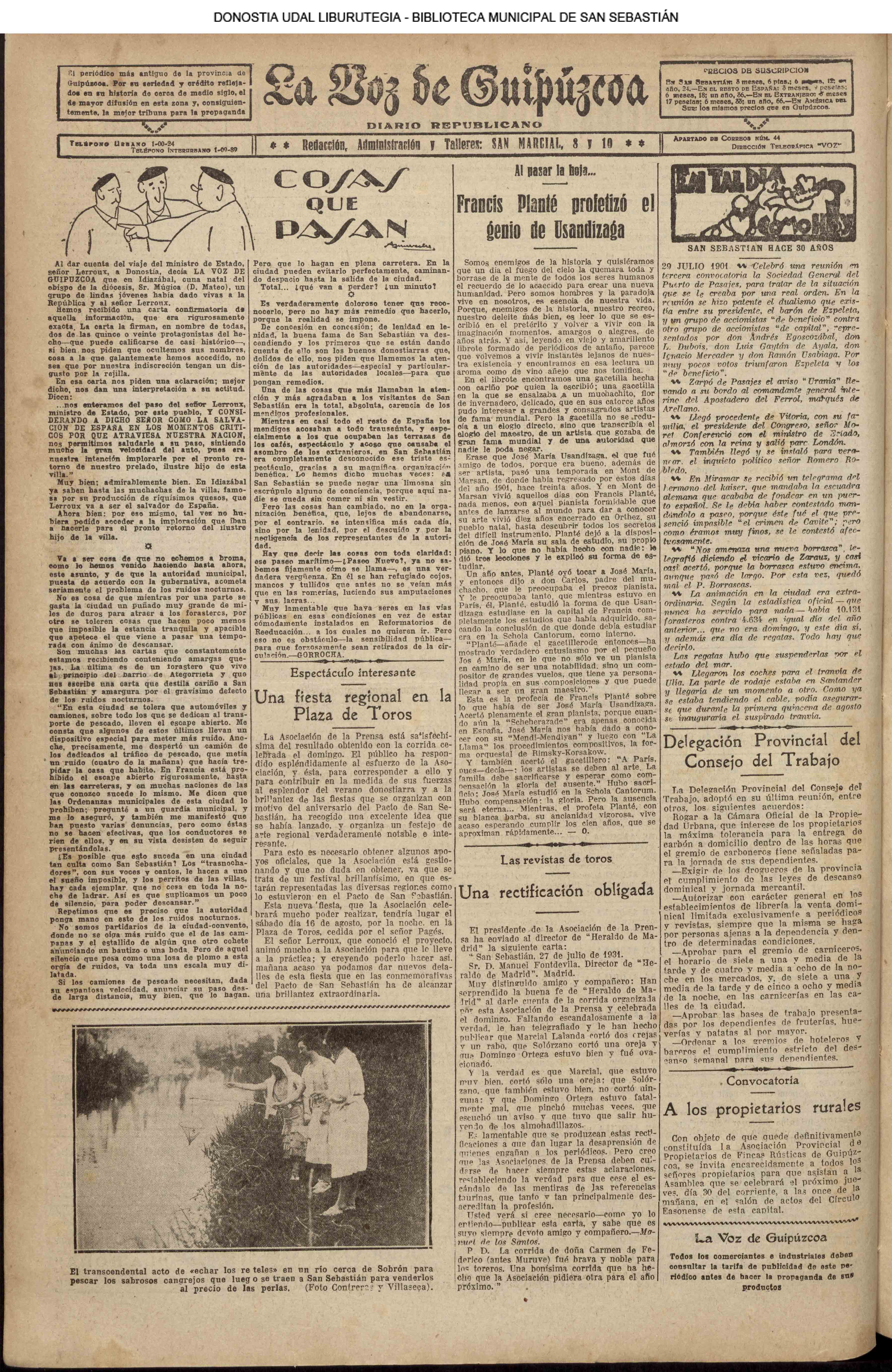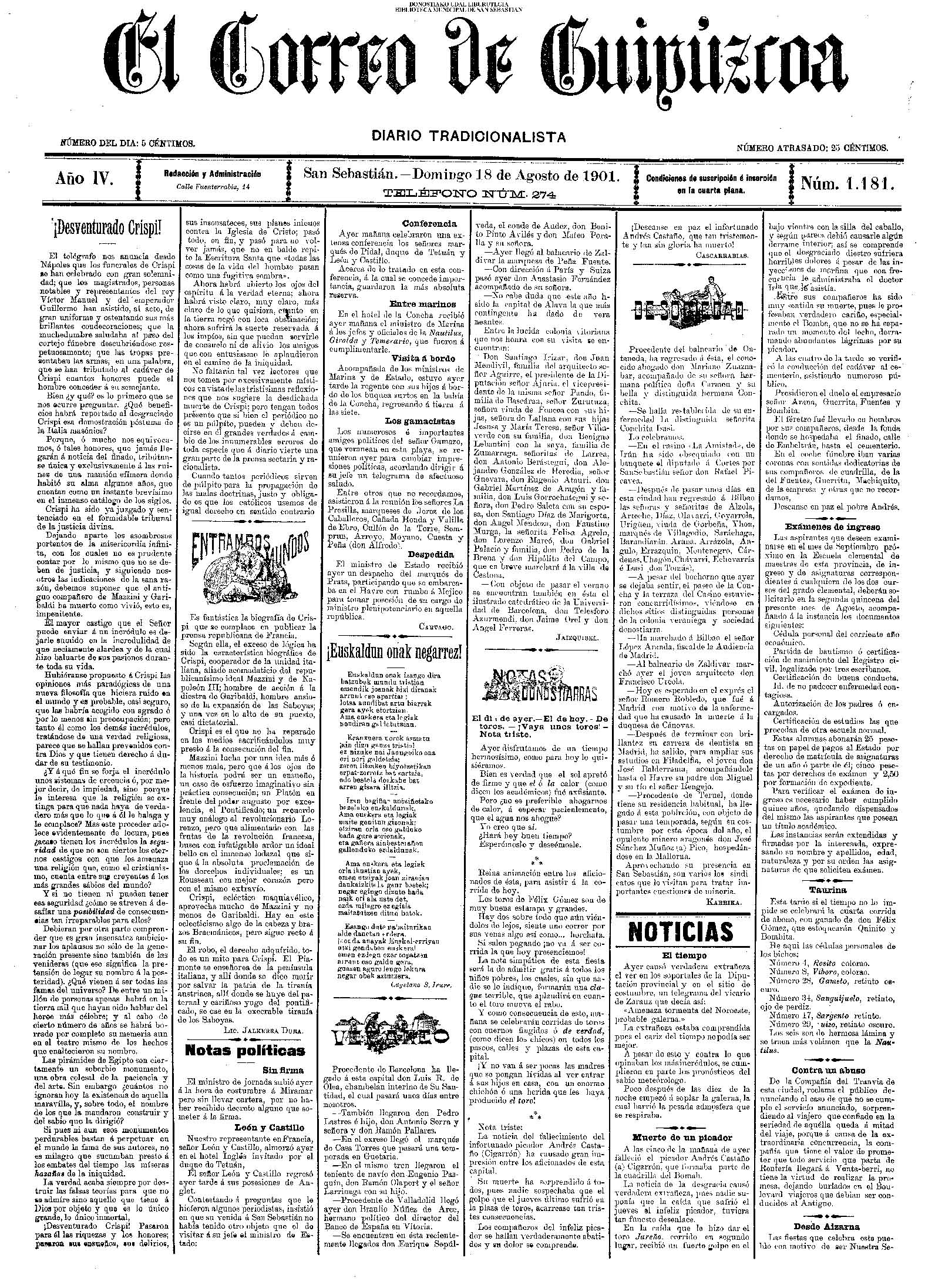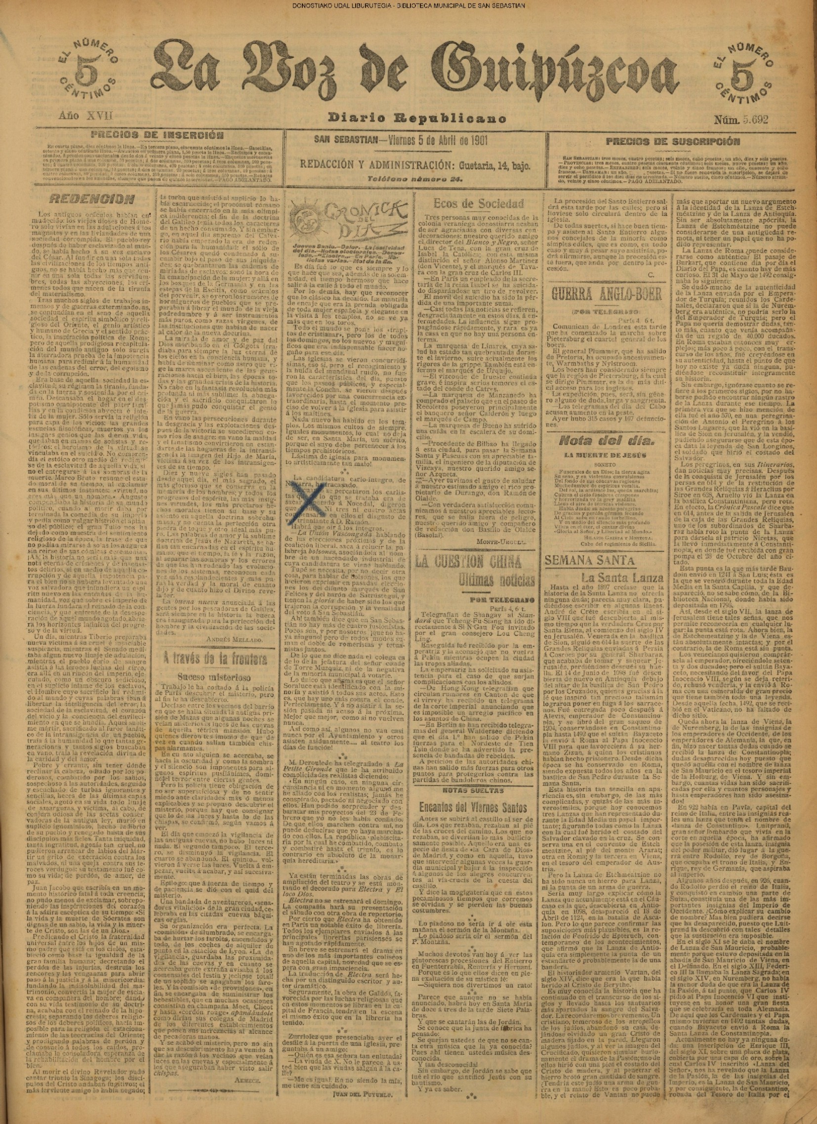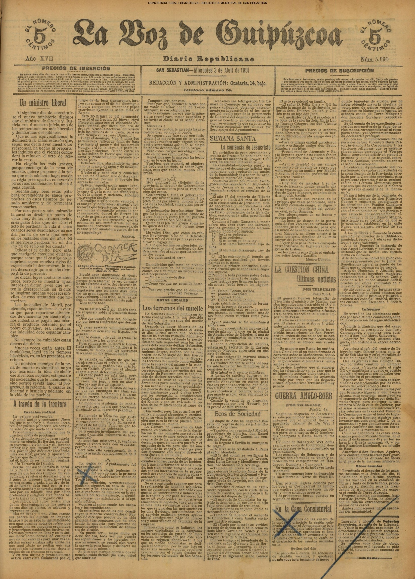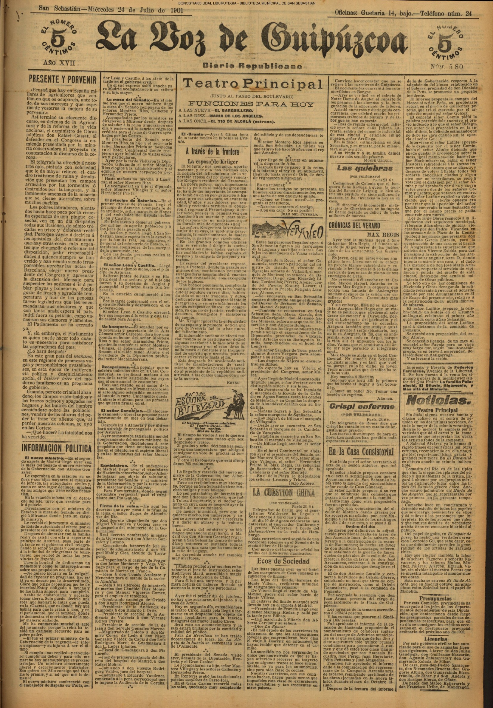 KOXKAS DONOSTIARRAS : "Curiosidades" El primer anuncio de la próxima llegada de las Navidades aparecía en los escaparates. Junto a otrsas golosinas, allí estaba en cajón o en barras el turrón, teniendo a su lado las olorosas aceitunas, las encendidas granadas, las peladillas bien envueltas en su capa de azúcar, los anises confitados, la garrapiñada, todo ese mundo de delicias. Al turrón le siguen el ejército de botellas y capones, de fiembres y pavos, de frutas sabrosísimas, de manjares incontables. Si en los días de Navidad sabe mejor el turrón, ¡qué deseado es siempre!¡Qué dulce es gustar siempre un cachito del azucarado postre!. La llegada del turrón era saludada en los periódicos de hace un siglo, que daban cuenta de que establecimiento había sido el primero en ponerlo en sus escaparates, como aviso urgente de que las Navidades estaban llegando. El cine llegó a nuestra ciudad hace un siglo. Entonces se llamaba Cinebiógrafo y las sesiones que daban eran cortas pero variadísimas. Vea el lector el programa que anunciaba el Cinebiógrafo Lumiére para el domingo 8 de diciembre de 1901. Primera sesión, a las 4 de la tarde : escenas cómicas. Magia moderna. Gabinete encantado. En la ratonera. El diablo en el convento. Regalo: rifa de una carabina Eureka. Segunda sesión, a las 5 de la tarde: Escenas marítimas. Seis retratos una peseta. Los apuros de don Cleto. Pirámides humanas. La luna, a un metro. Regalo: rifa de un servicio de porcelana para su muñeca. Tercera sesión, a las 6 de la tarde: Desfiles militares. Baile en el Olimpia. Entierro de la reina Victoria. Llegada de un tren. La Cenicienta. Regalo: rifa de un tren. Cuarta sesión, a las 7 de la tarde : Escenas infantiles. Danza de fuego. La portera burlada. Episodios del Fausto. Corrida de toros. Regalo: rifa de una preciosa muñeca. El cinebiógrafo de Bellas Artes, aquellos primeros días de diciembre de 1901, proyectaba Noel y anunciaba La caperuza roja, el popular cuento que todos los niños conocían, para los próximos días. Antes había proyectado la Cenicienta y Juana de Arco. Por aquellos días, en un par de escenarios hacían sus galas y su modo de retorcerse siete u ocho chiquillas "de esas que van de bellas". Con la cabeza coquetonamente cubierta por un sombrero, con la vistosa falta de colorines "previamente recogida como si estuviera pasando a pie un río, y el pañolón de Manila rodeado al cuerpo", comienza la suerte del tirabuzón, o sea, la del sacacorchos. Aquellas chicas se retuercen, hacen cosas raras con los pies, con las manos, con todo el cuerpo, volviendo locos a los espectadores. |