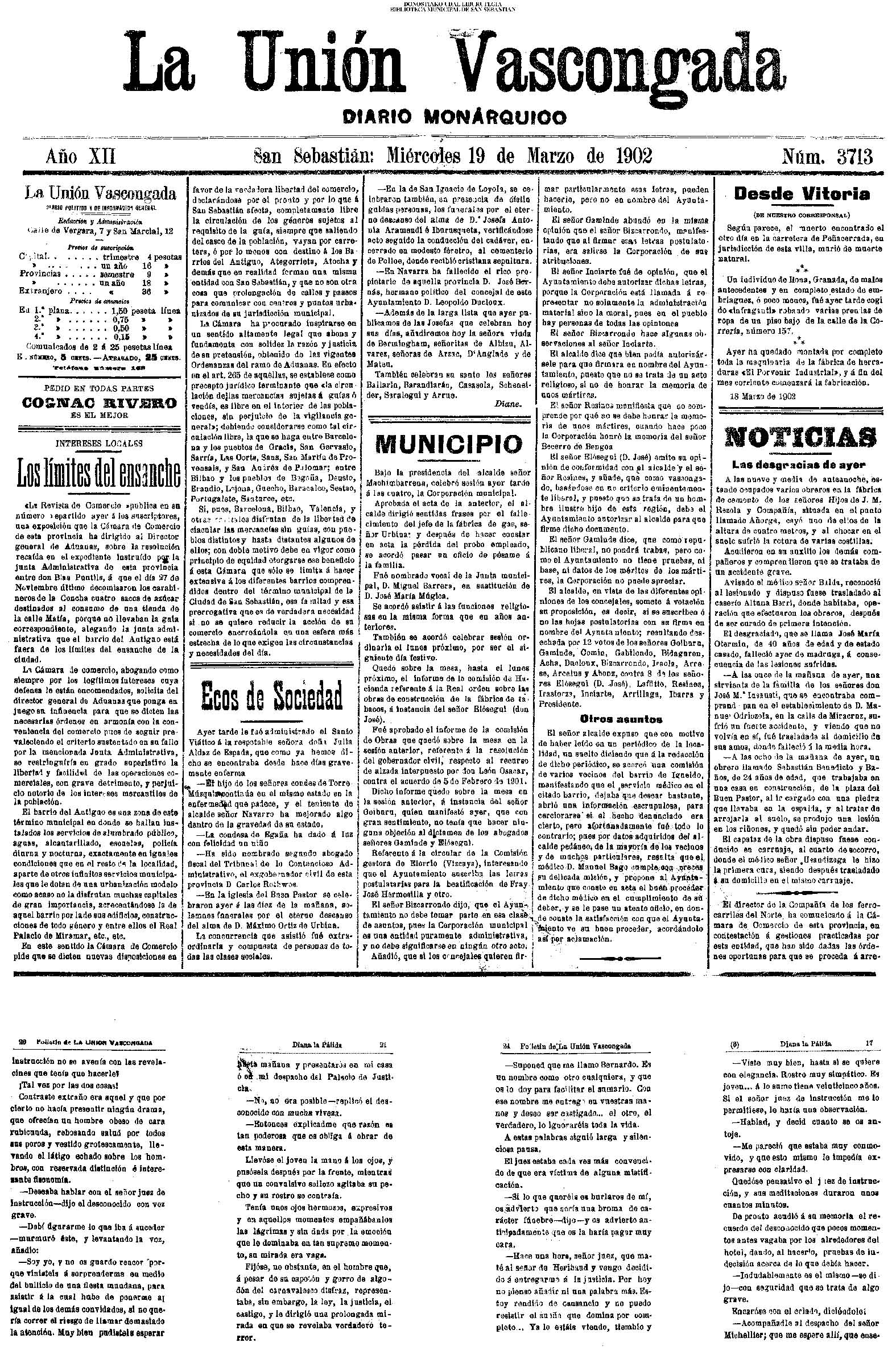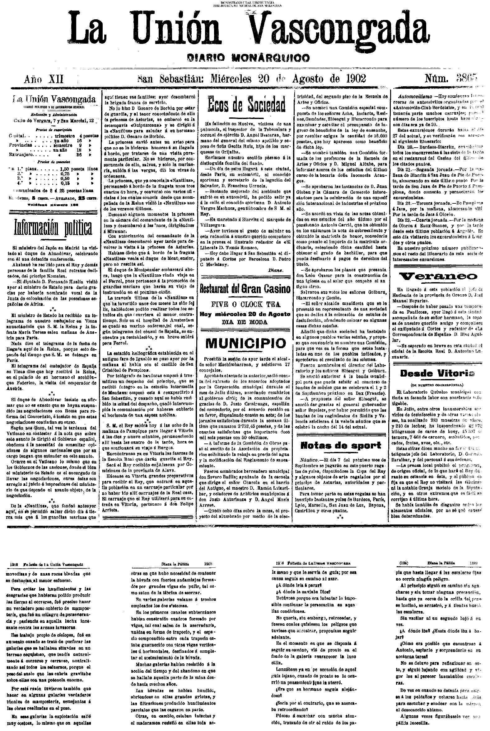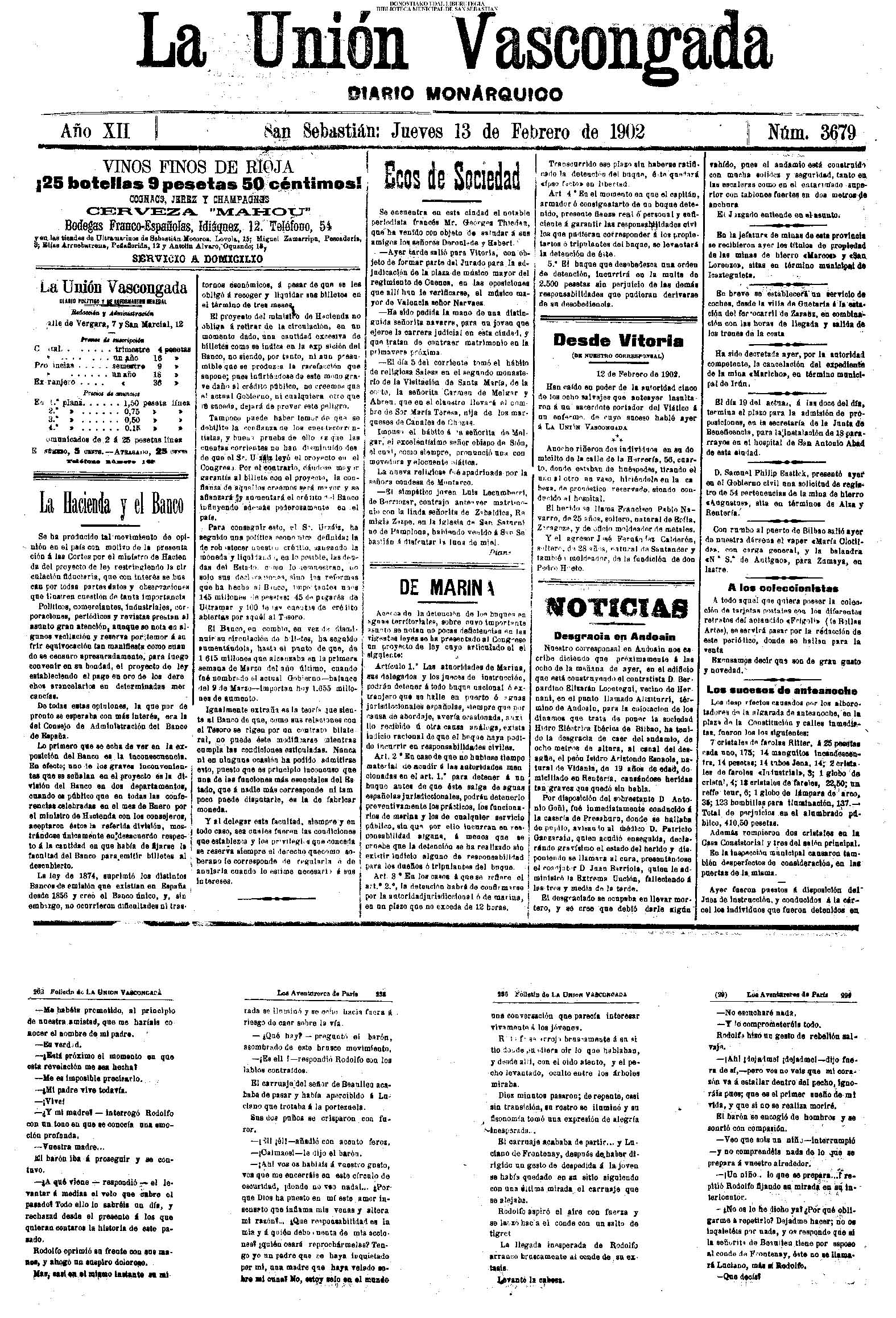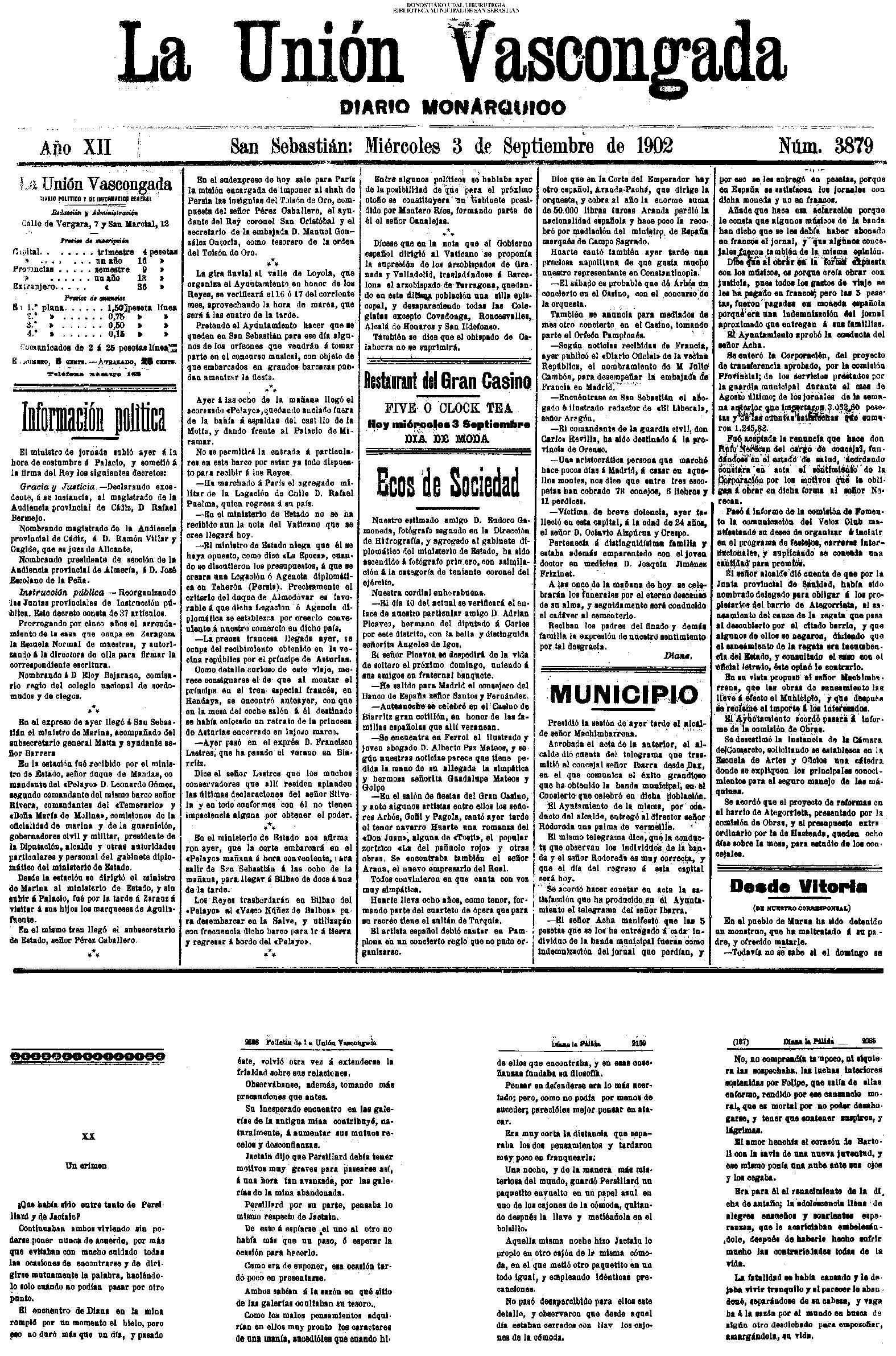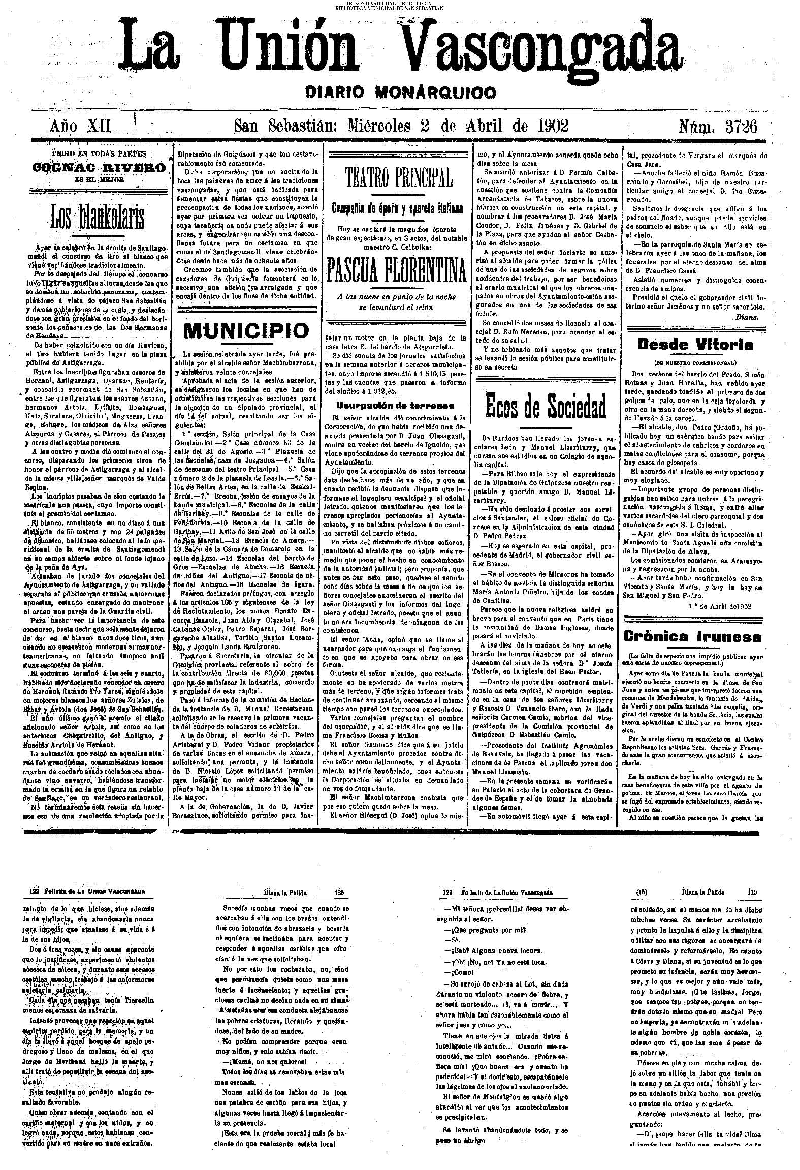 Uno de estos niños apareció el 9 de diciembre de 1902... en un confesonario de la parroquia de San Vicente, el que normalmente ocupaba el reverendo Iturrioz. Representaba tener unos ocho días de vida, siendo su constitución buena. En sus ojos aparecían unas pequeñas placas purulentas que denotaban que su madre había padecido alguna enfermedad. La criatura estaba envuelta en unos pañales, y a juzgar por la forma que se hallaba vestido se creyó que la madre sería extranjera, pues no era usual aquí aquella manera de empañar al recién nacido.