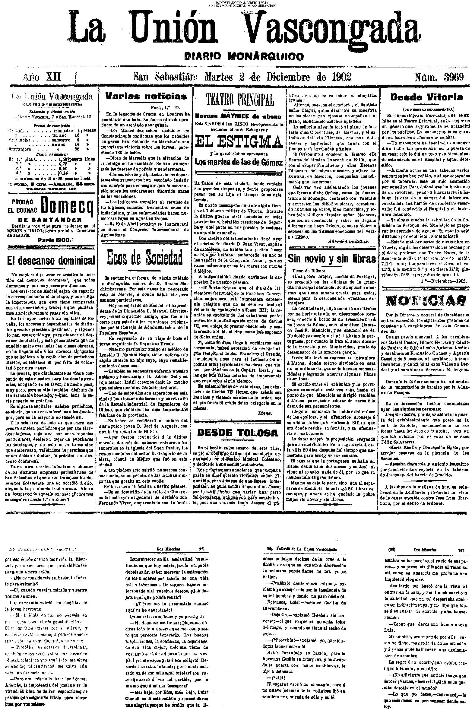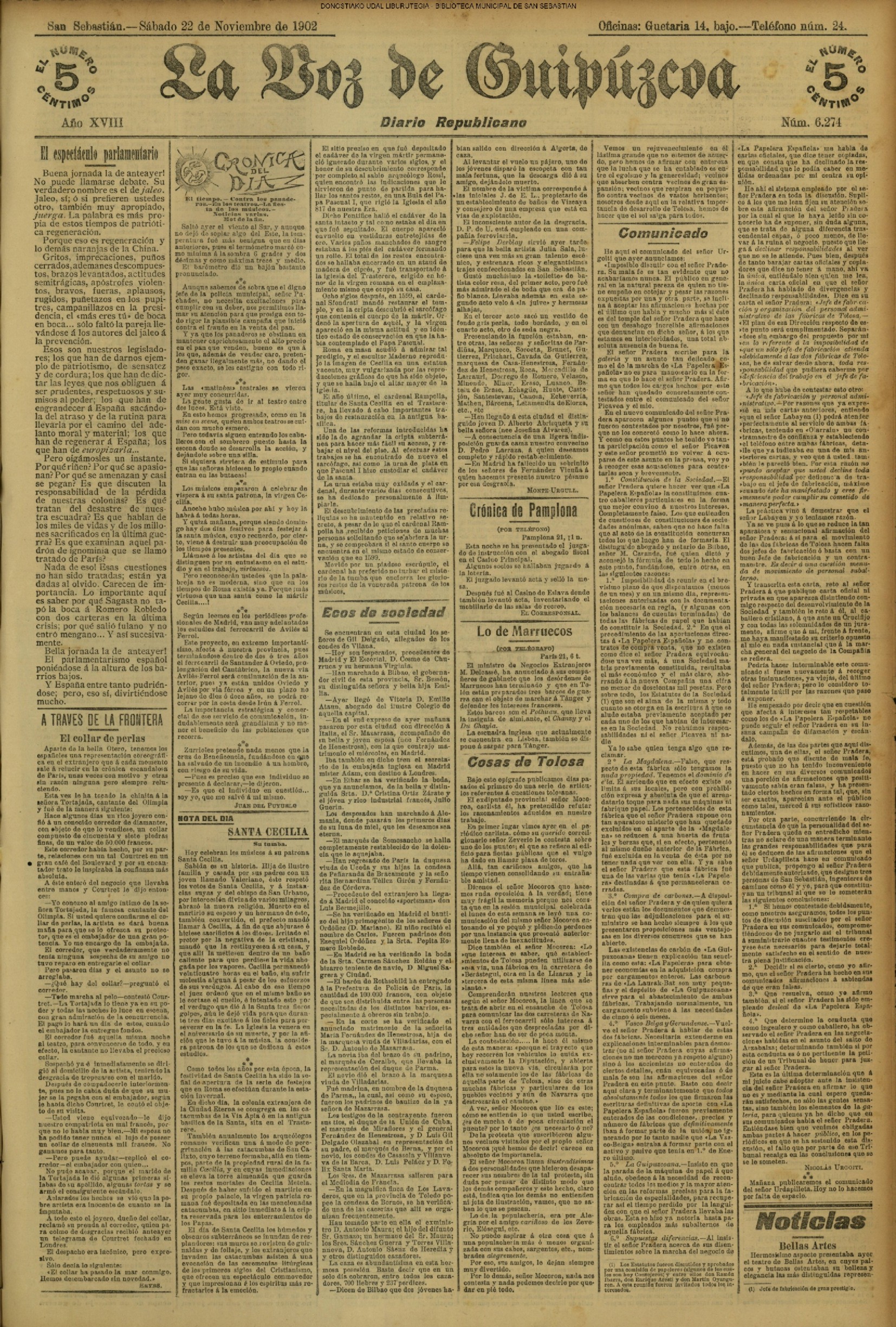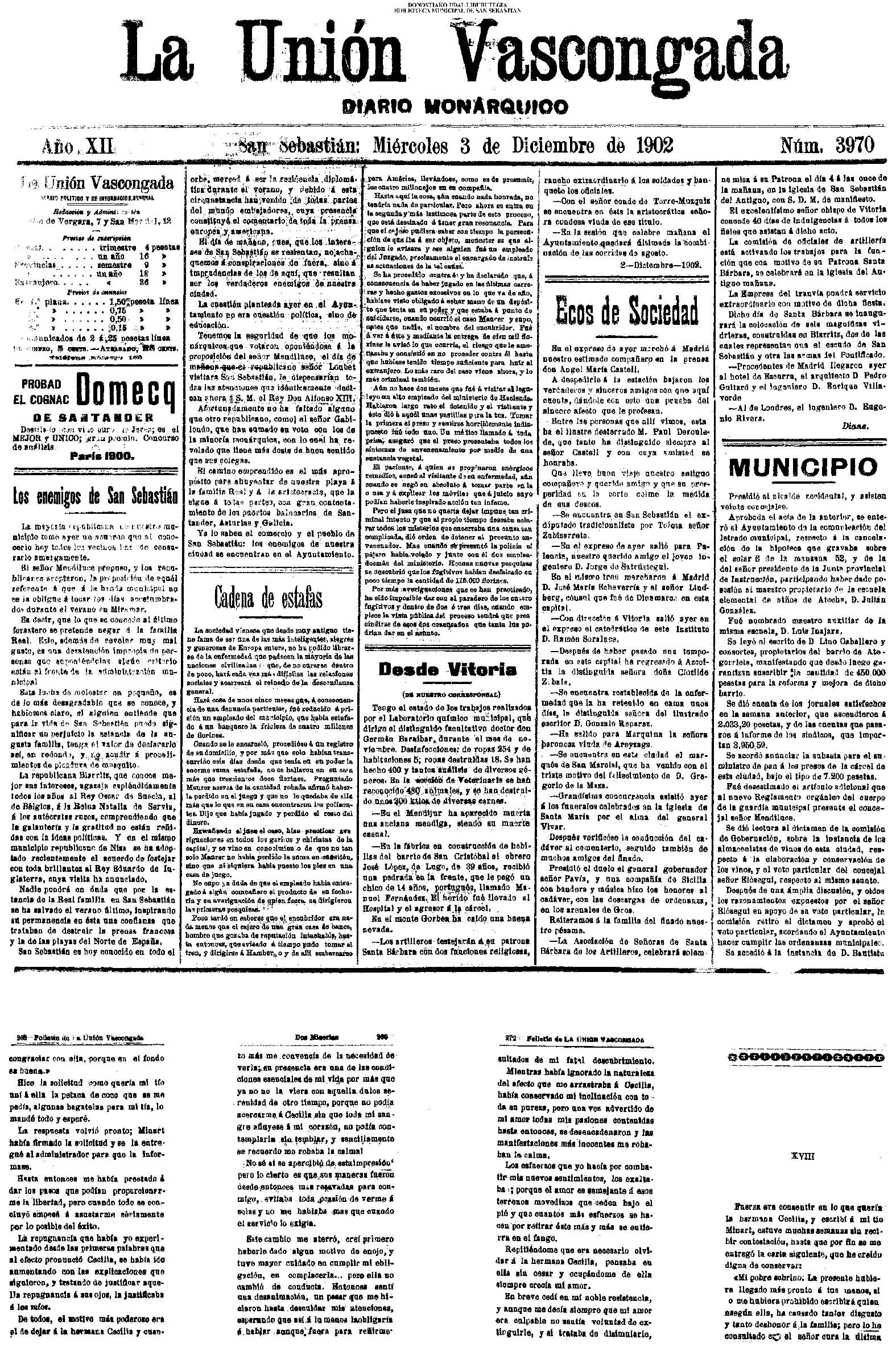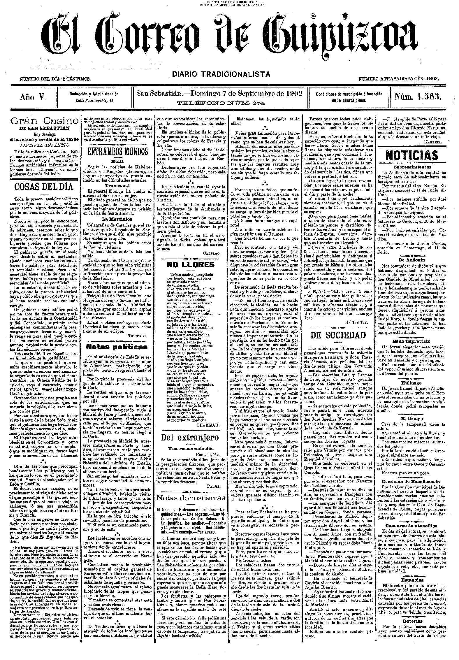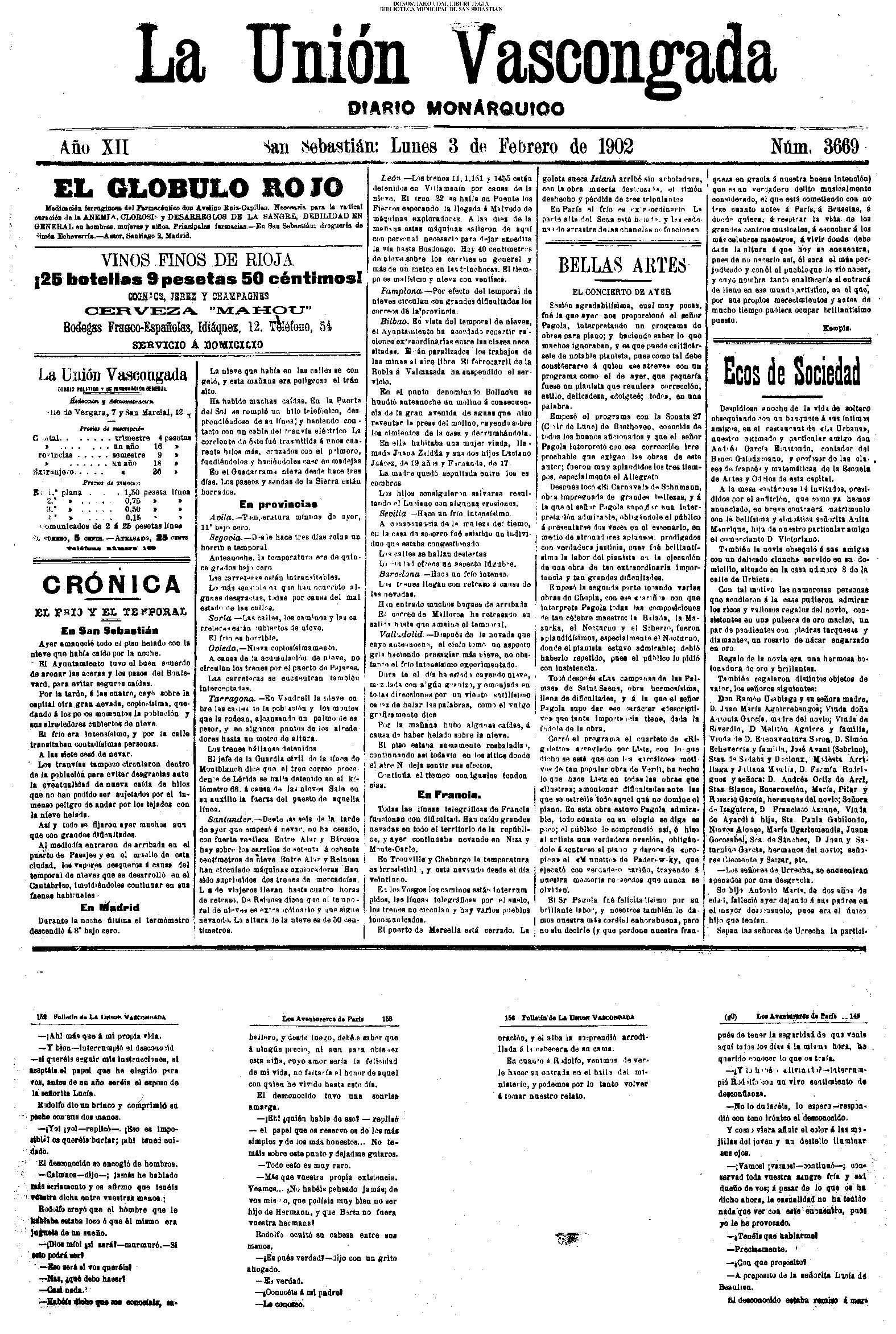 Uno de estos niños apareció el 9 de diciembre de 1902... en un confesonario de la parroquia de San Vicente, el que normalmente ocupaba el reverendo Iturrioz. Representaba tener unos ocho días de vida, siendo su constitución buena. En sus ojos aparecían unas pequeñas placas purulentas que denotaban que su madre había padecido alguna enfermedad. La criatura estaba envuelta en unos pañales, y a juzgar por la forma que se hallaba vestido se creyó que la madre sería extranjera, pues no era usual aquí aquella manera de empañar al recién nacido.