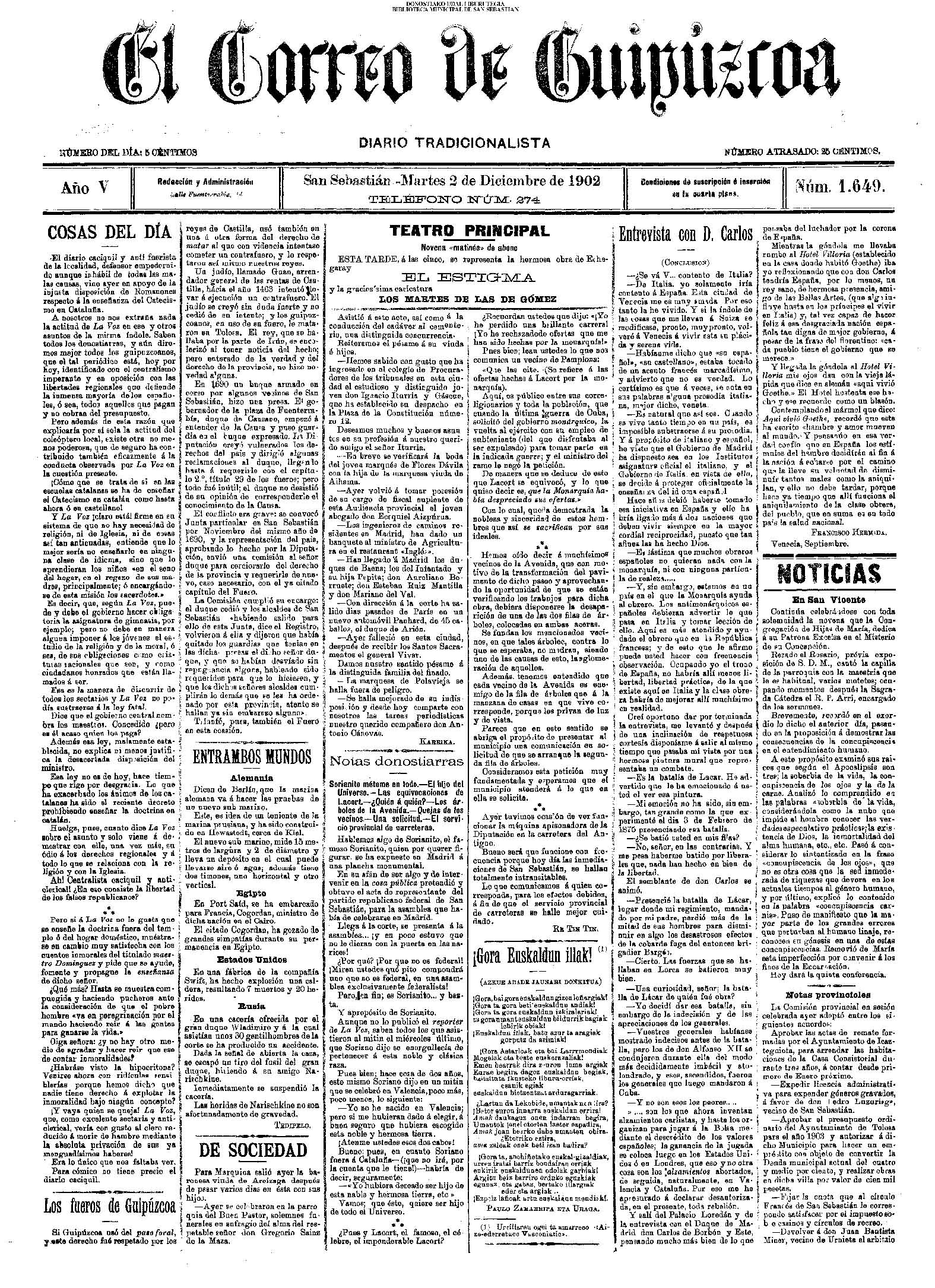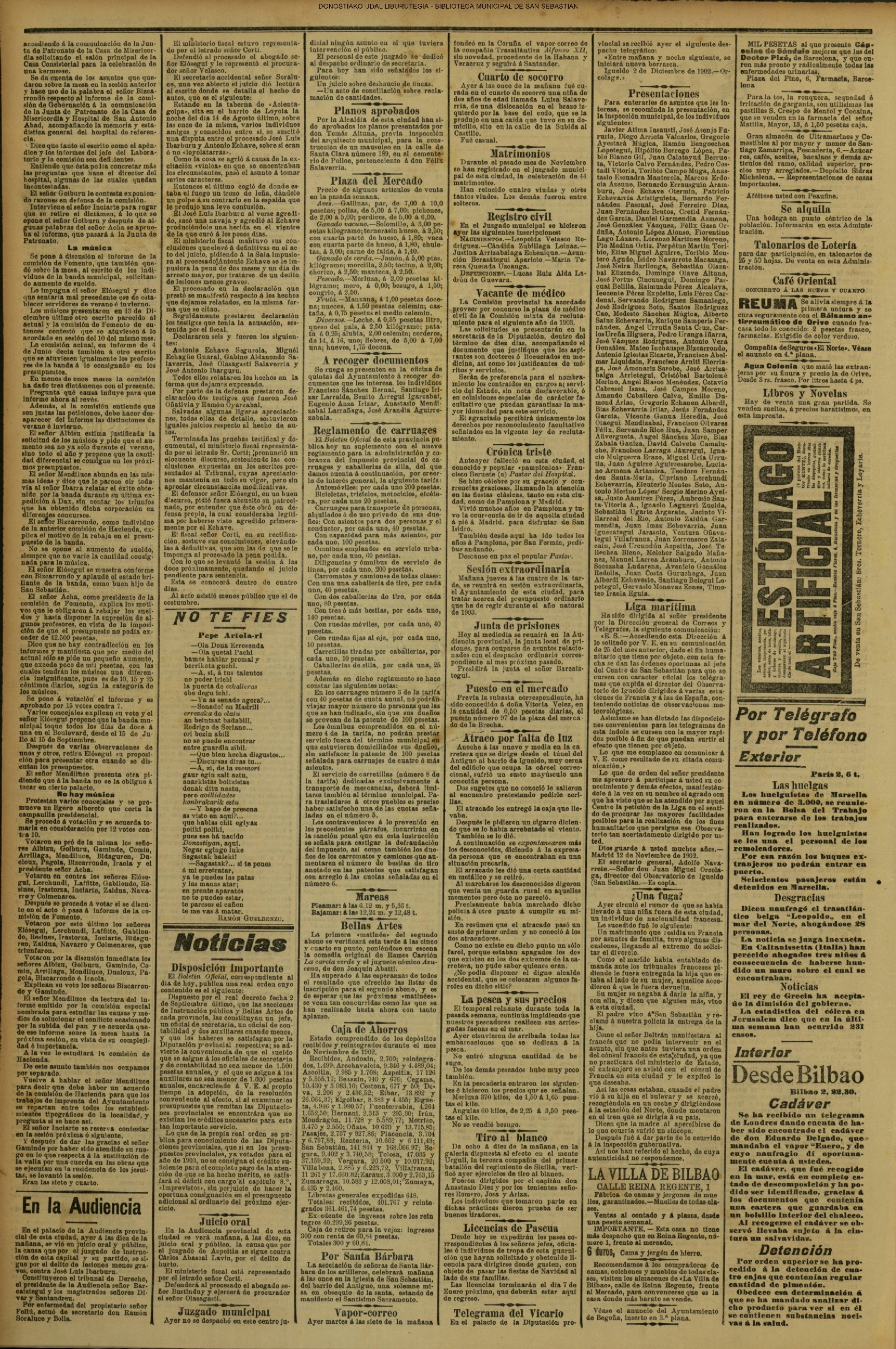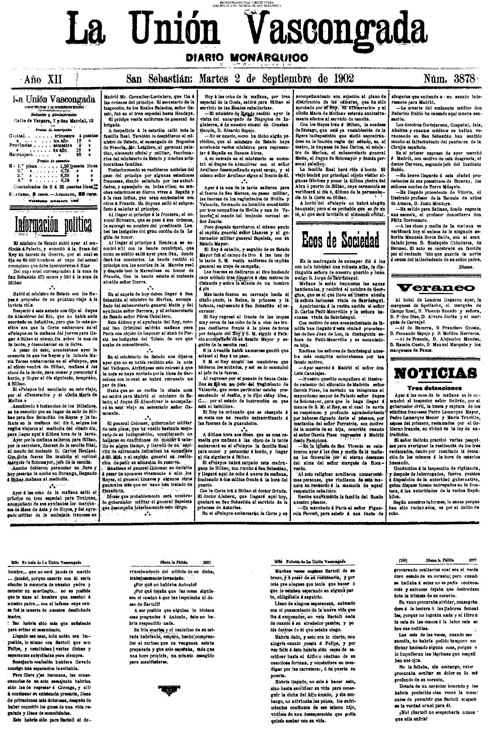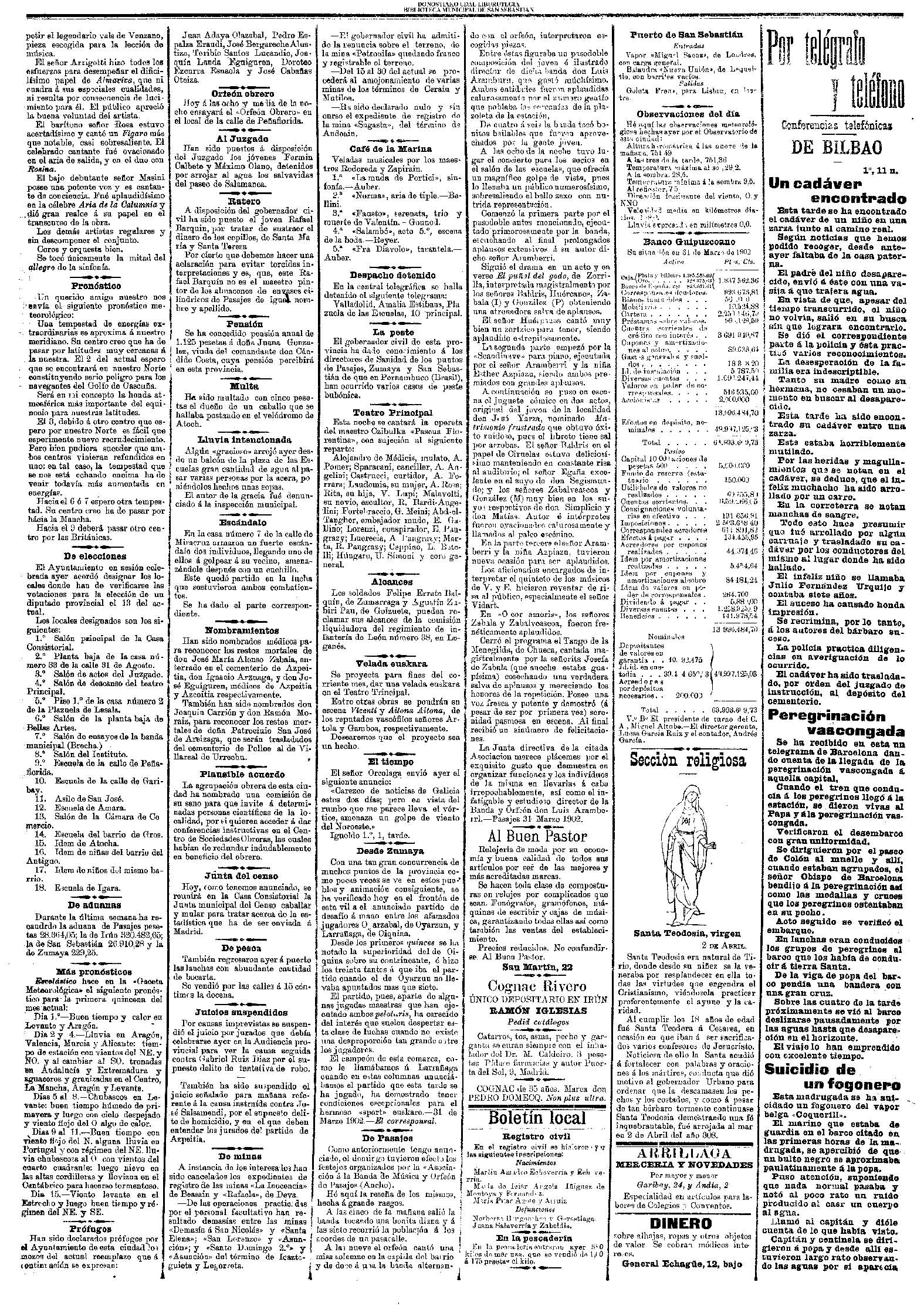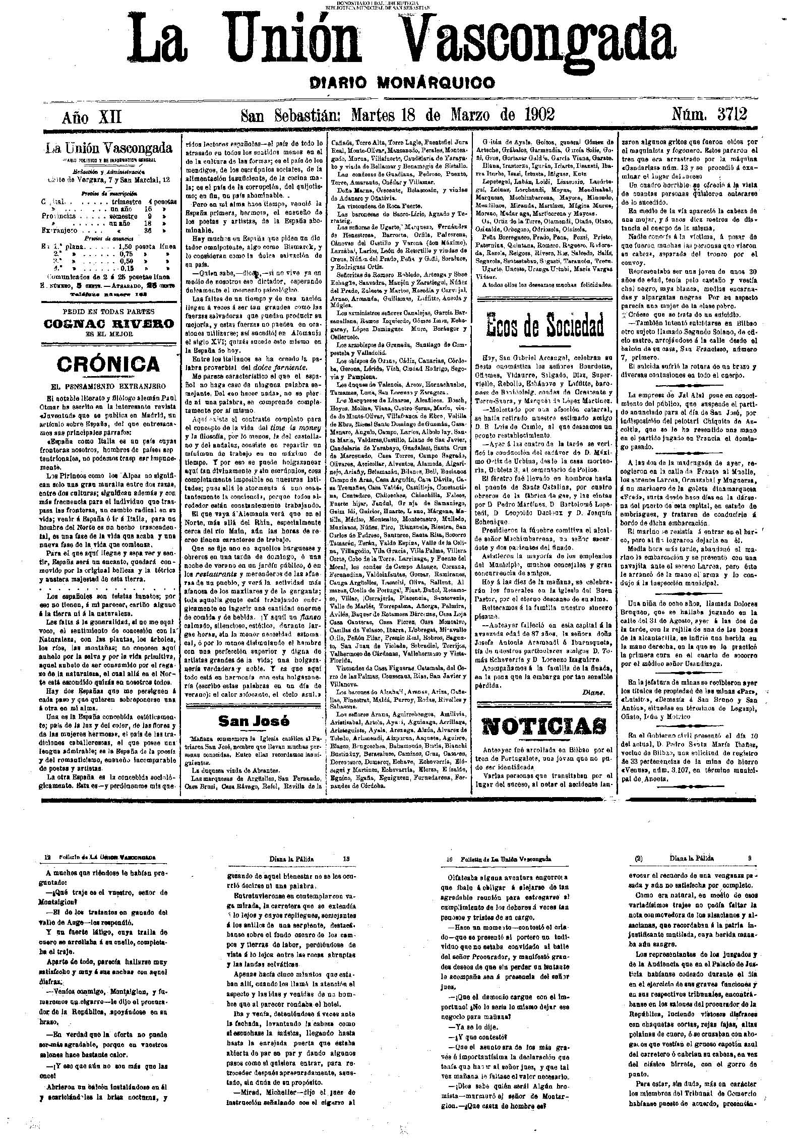 Uno de estos niños apareció el 9 de diciembre de 1902... en un confesonario de la parroquia de San Vicente, el que normalmente ocupaba el reverendo Iturrioz. Representaba tener unos ocho días de vida, siendo su constitución buena. En sus ojos aparecían unas pequeñas placas purulentas que denotaban que su madre había padecido alguna enfermedad. La criatura estaba envuelta en unos pañales, y a juzgar por la forma que se hallaba vestido se creyó que la madre sería extranjera, pues no era usual aquí aquella manera de empañar al recién nacido.