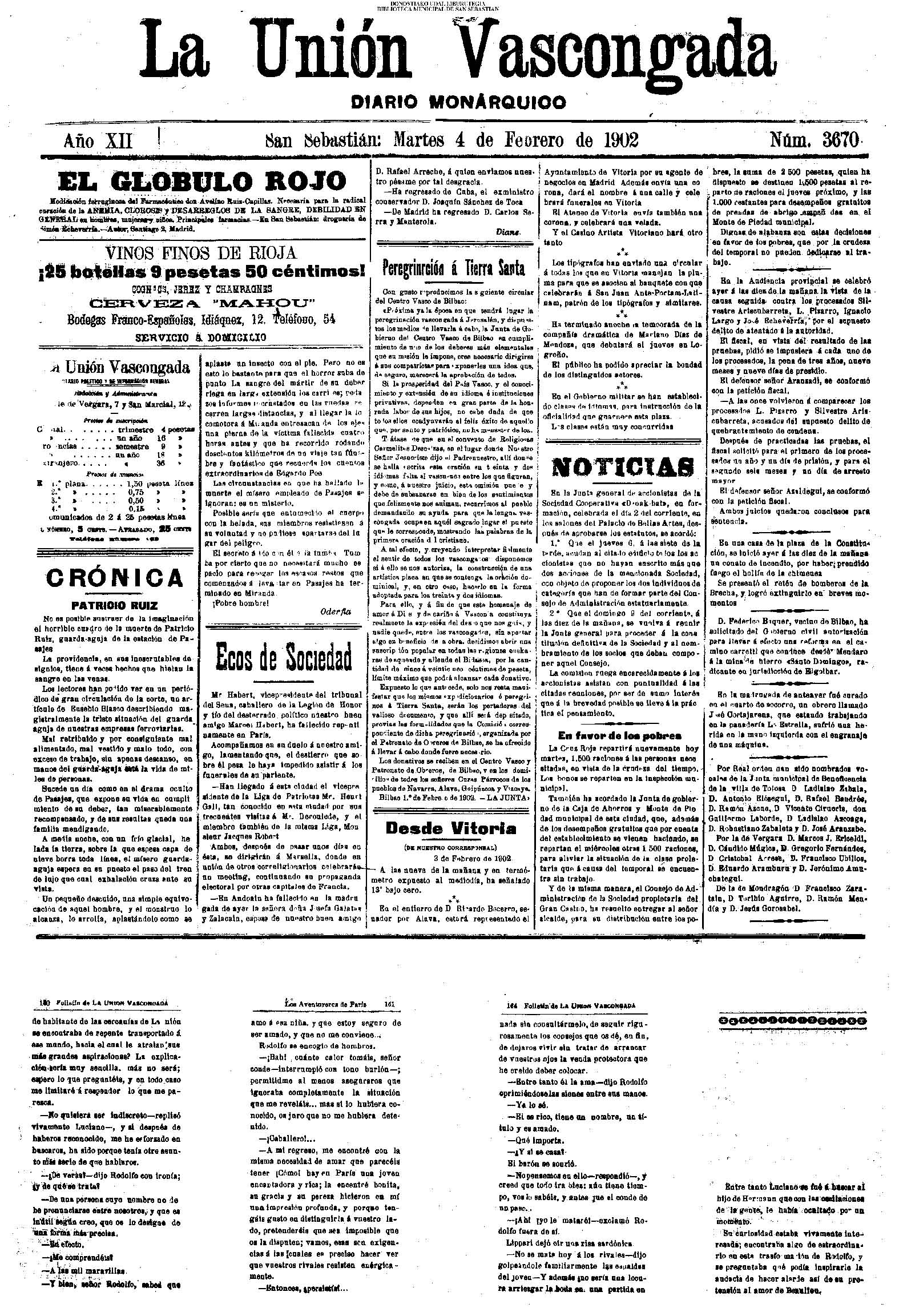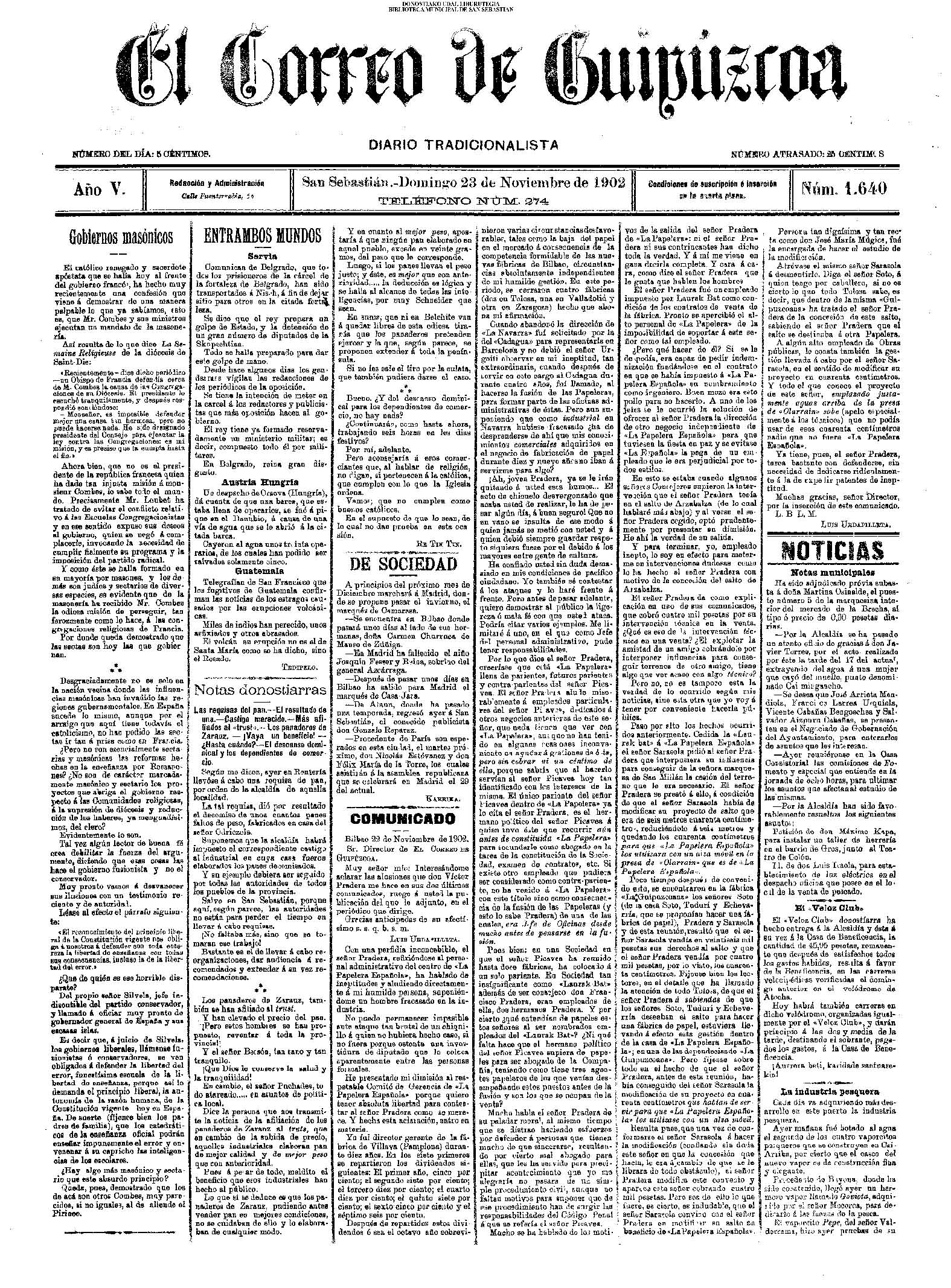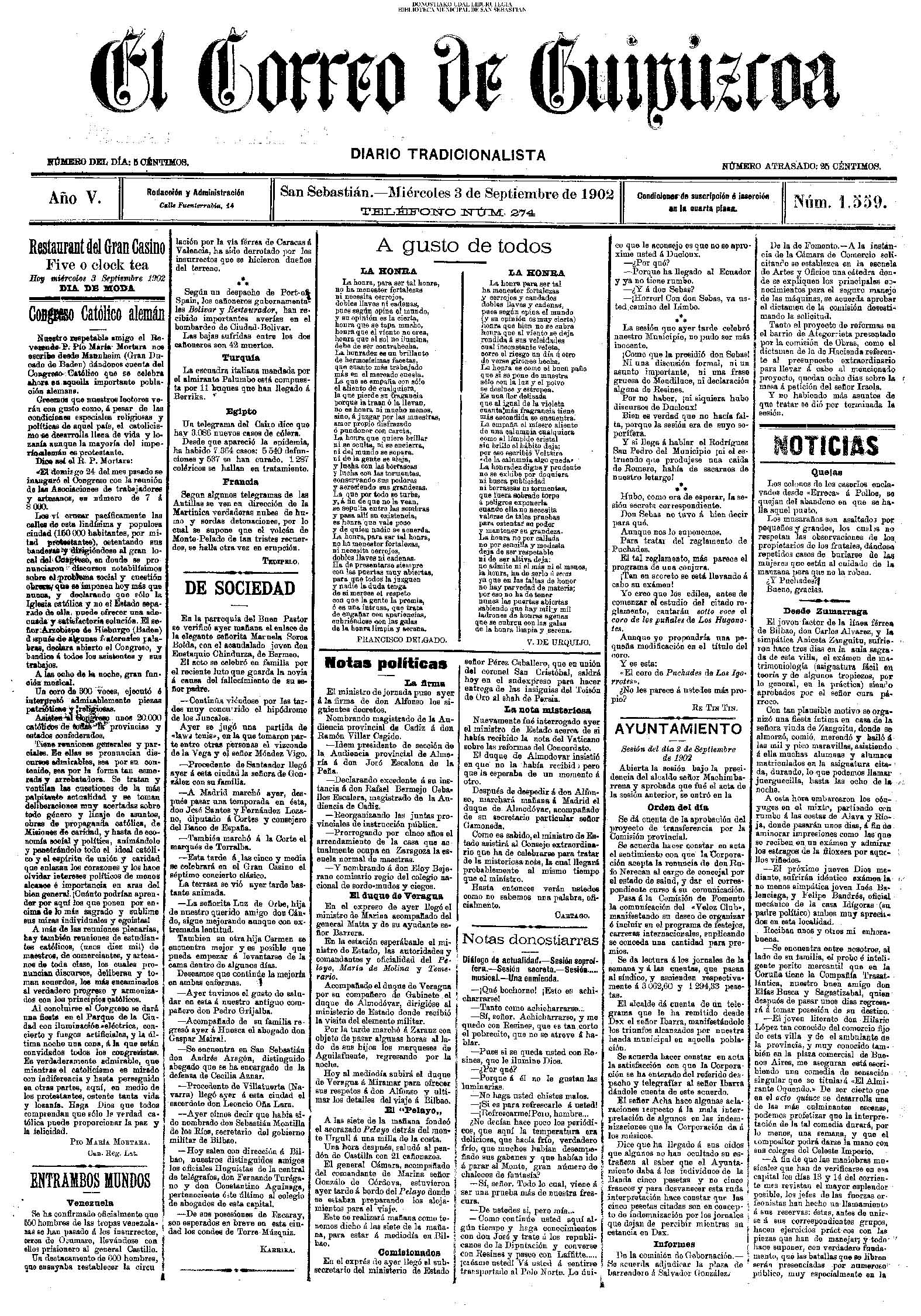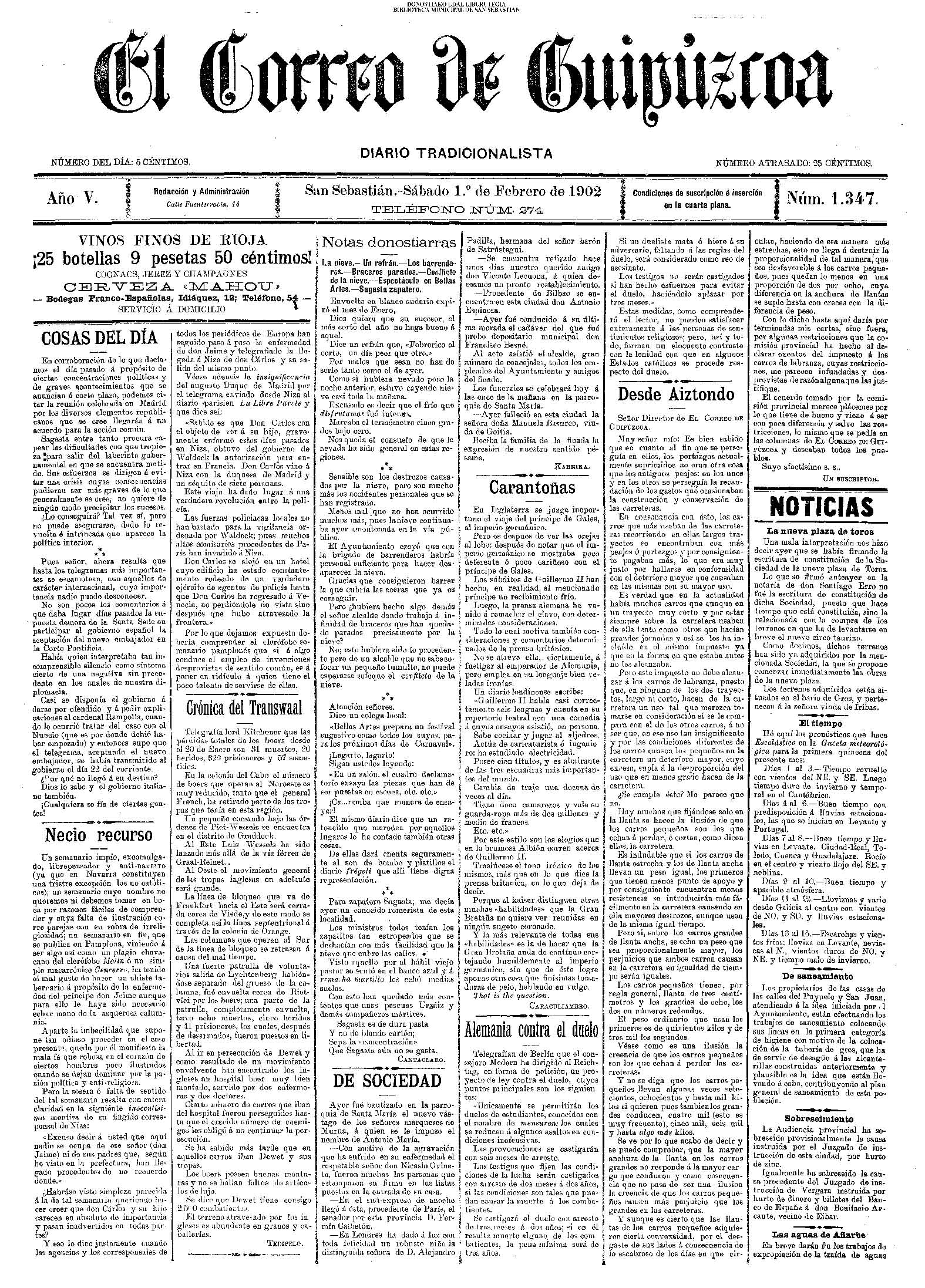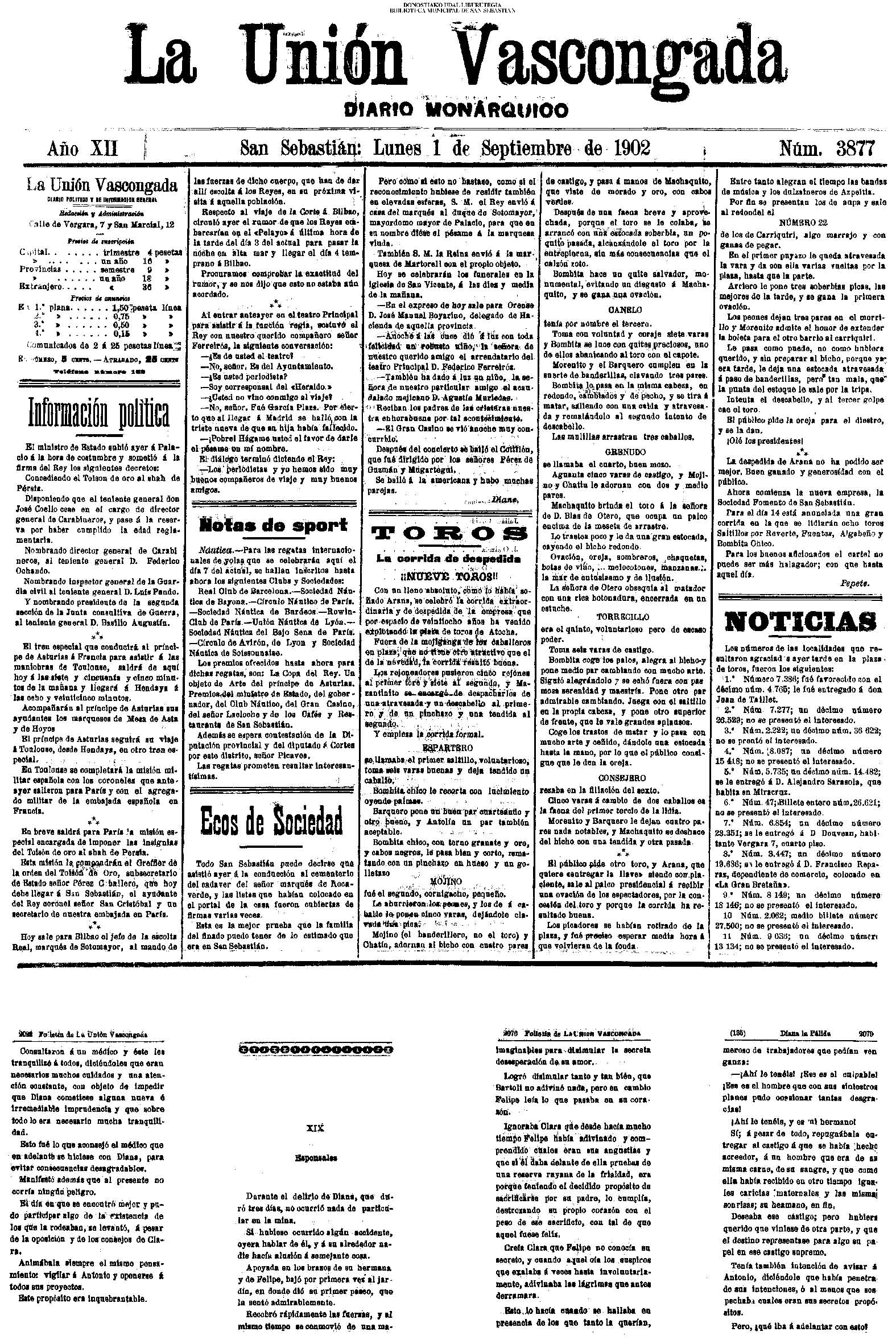 Uno de estos niños apareció el 9 de diciembre de 1902... en un confesonario de la parroquia de San Vicente, el que normalmente ocupaba el reverendo Iturrioz. Representaba tener unos ocho días de vida, siendo su constitución buena. En sus ojos aparecían unas pequeñas placas purulentas que denotaban que su madre había padecido alguna enfermedad. La criatura estaba envuelta en unos pañales, y a juzgar por la forma que se hallaba vestido se creyó que la madre sería extranjera, pues no era usual aquí aquella manera de empañar al recién nacido.