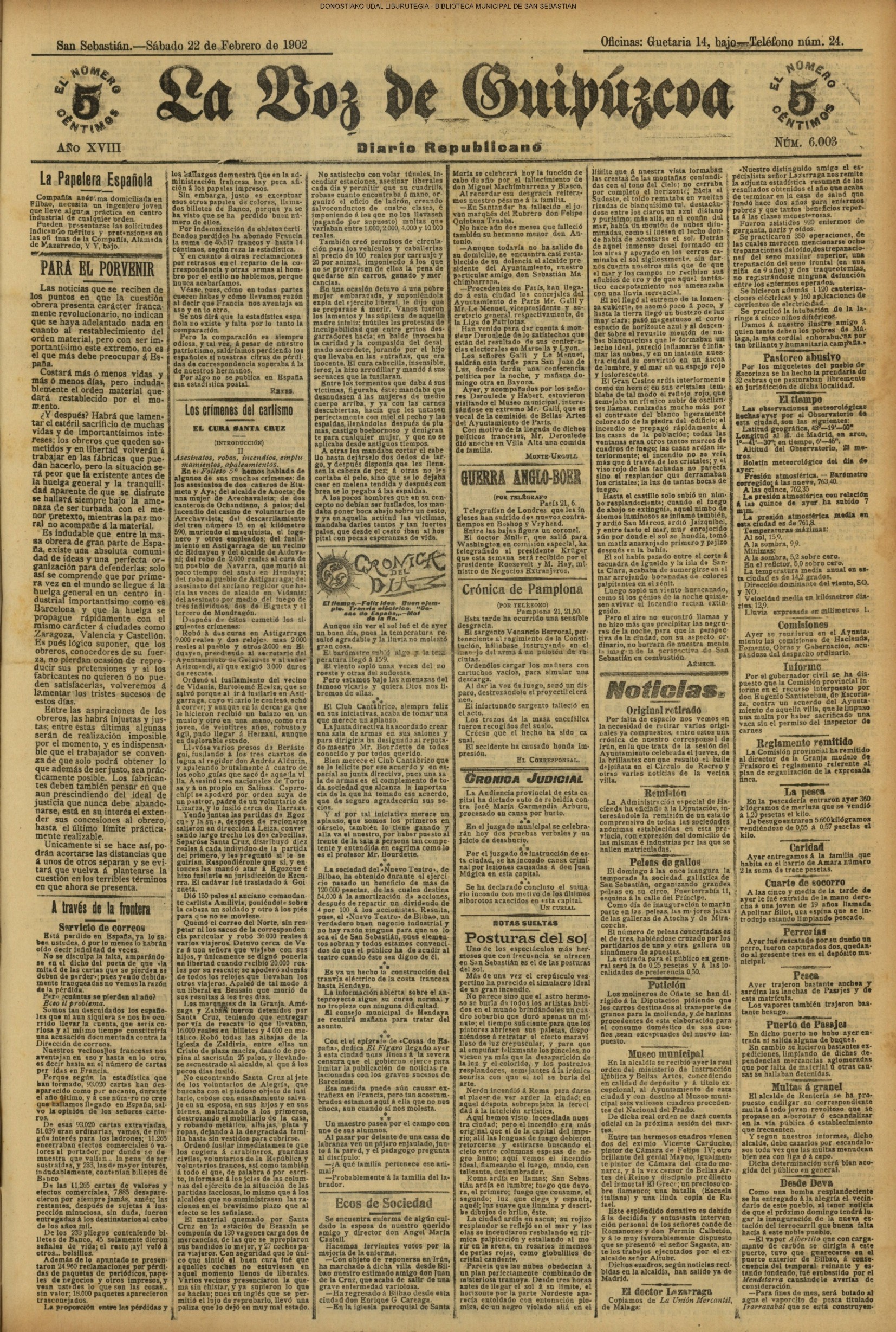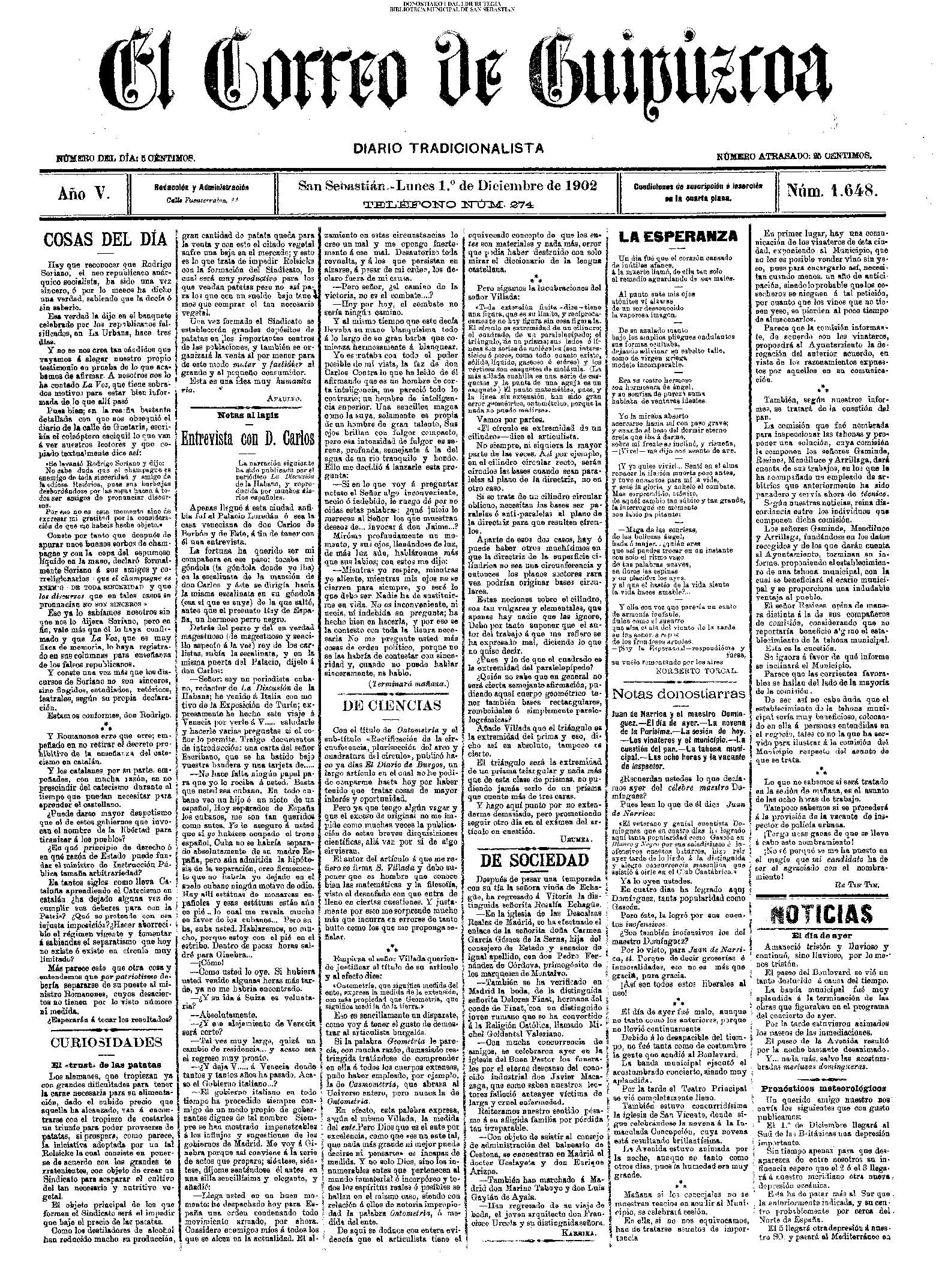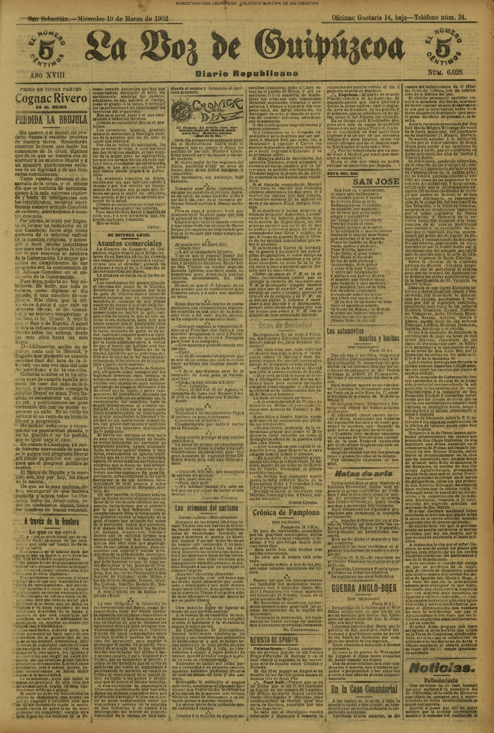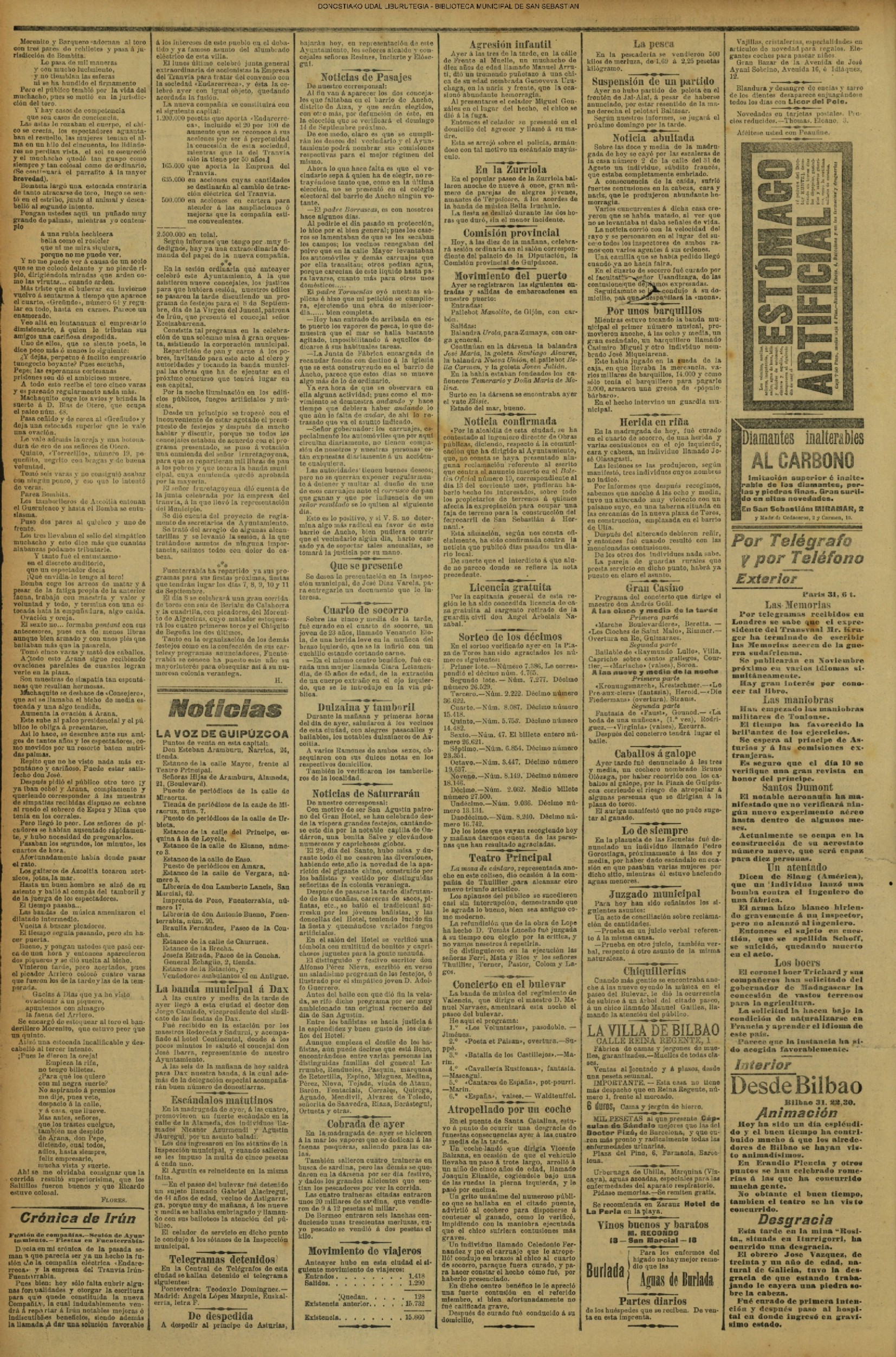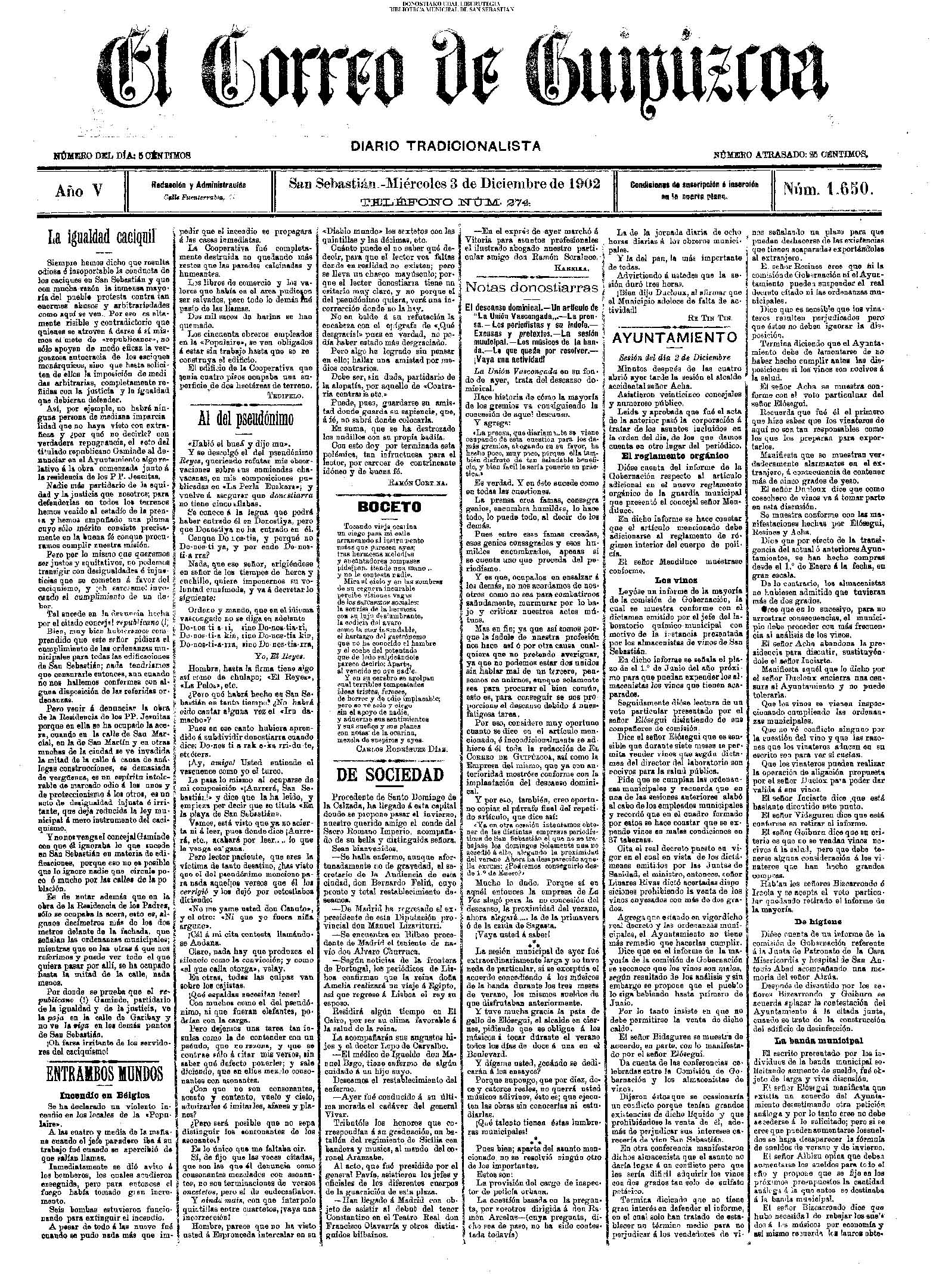 Uno de estos niños apareció el 9 de diciembre de 1902... en un confesonario de la parroquia de San Vicente, el que normalmente ocupaba el reverendo Iturrioz. Representaba tener unos ocho días de vida, siendo su constitución buena. En sus ojos aparecían unas pequeñas placas purulentas que denotaban que su madre había padecido alguna enfermedad. La criatura estaba envuelta en unos pañales, y a juzgar por la forma que se hallaba vestido se creyó que la madre sería extranjera, pues no era usual aquí aquella manera de empañar al recién nacido.