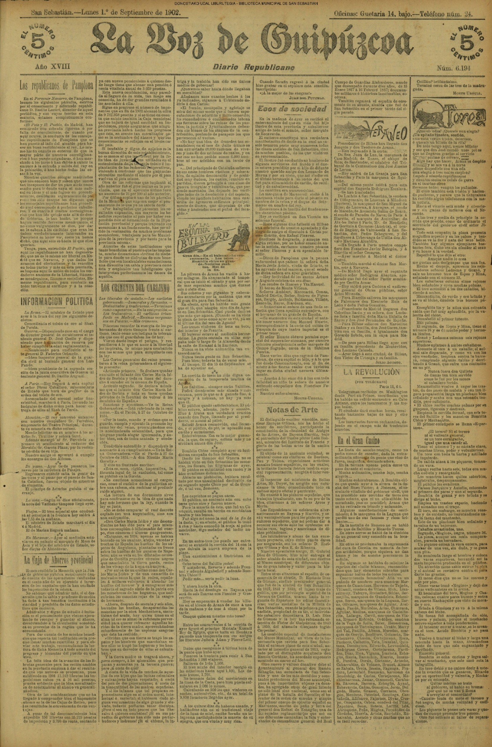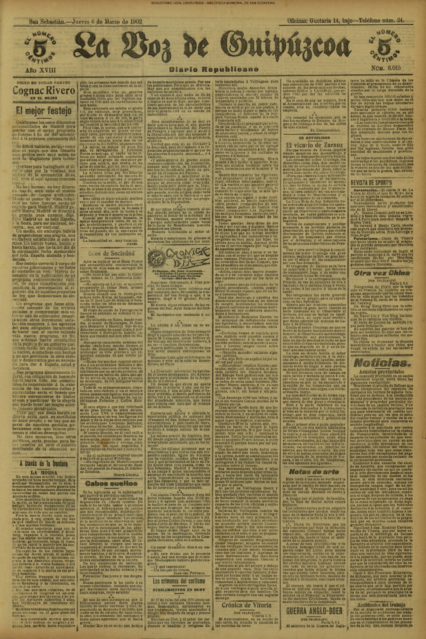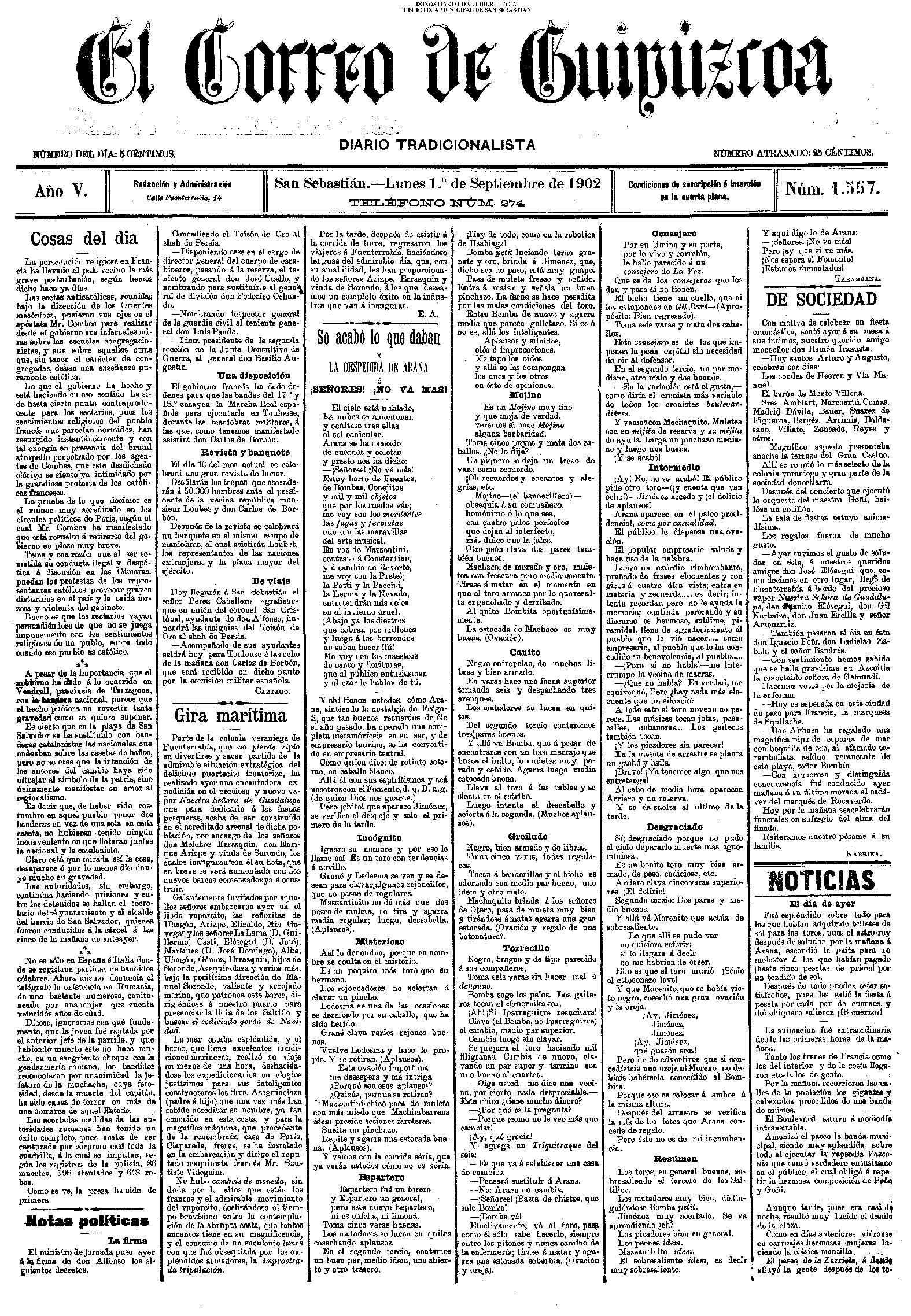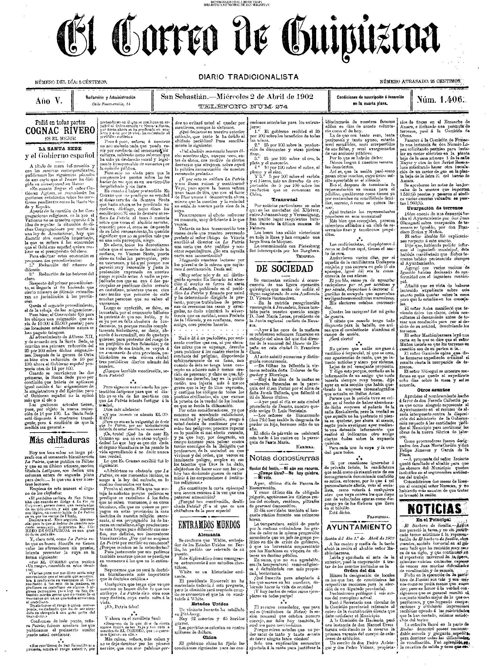Uno de estos niños apareció el 9 de diciembre de 1902... en un confesonario de la parroquia de San Vicente, el que normalmente ocupaba el reverendo Iturrioz. Representaba tener unos ocho días de vida, siendo su constitución buena. En sus ojos aparecían unas pequeñas placas purulentas que denotaban que su madre había padecido alguna enfermedad. La criatura estaba envuelta en unos pañales, y a juzgar por la forma que se hallaba vestido se creyó que la madre sería extranjera, pues no era usual aquí aquella manera de empañar al recién nacido.