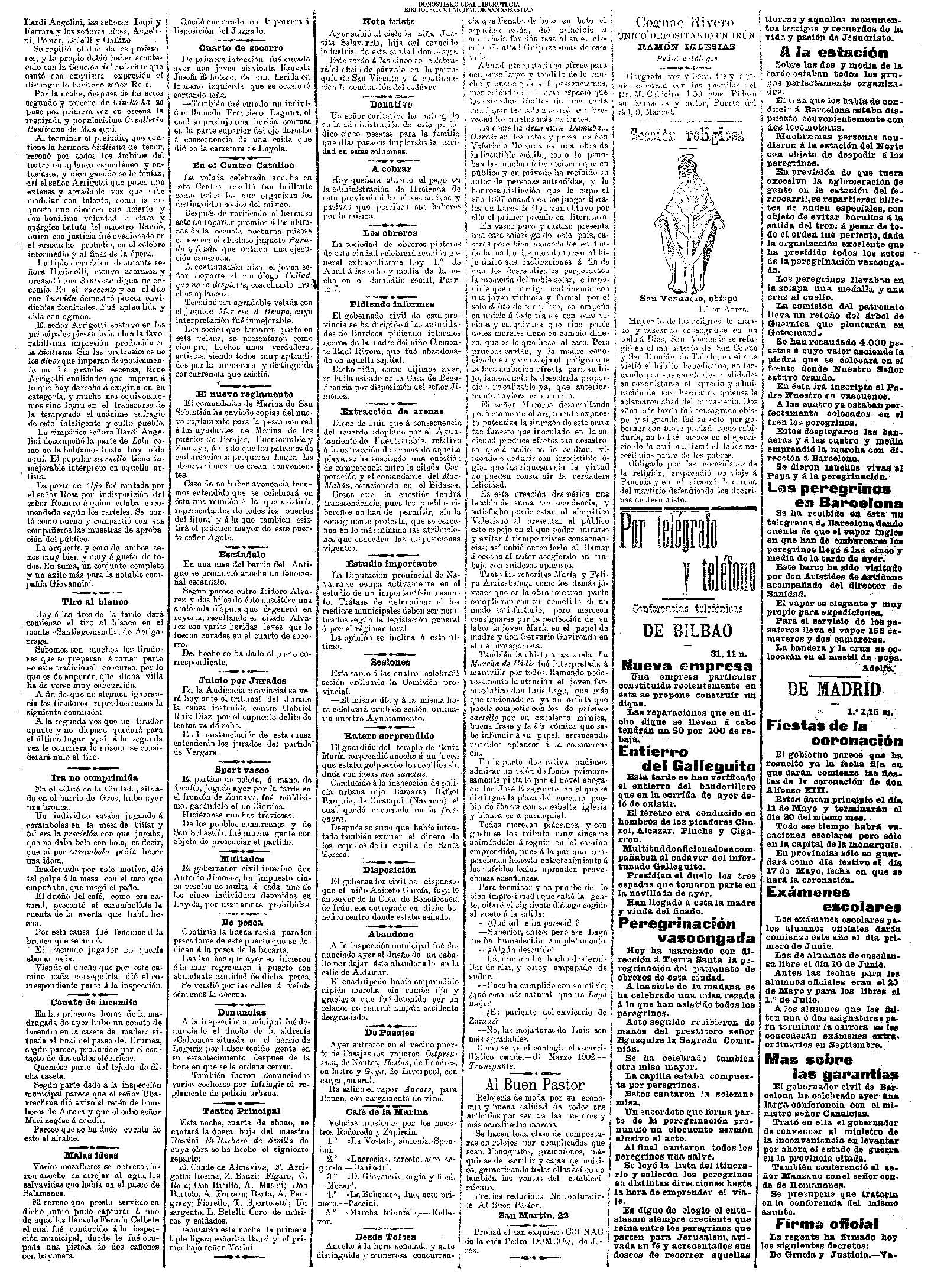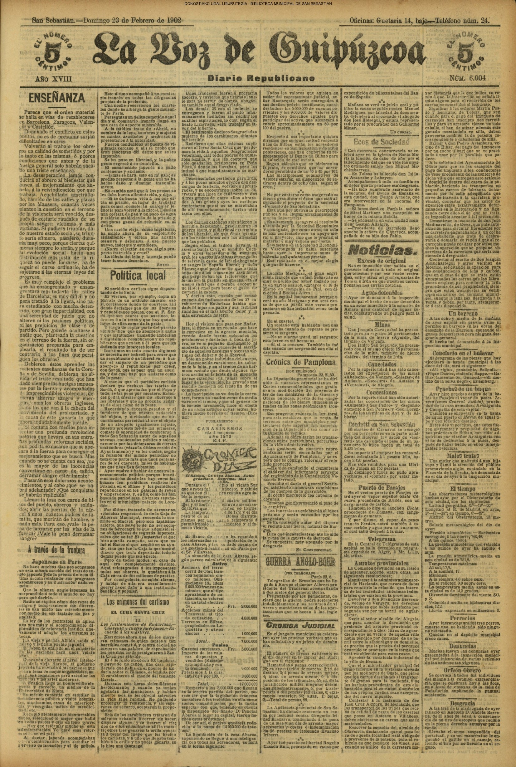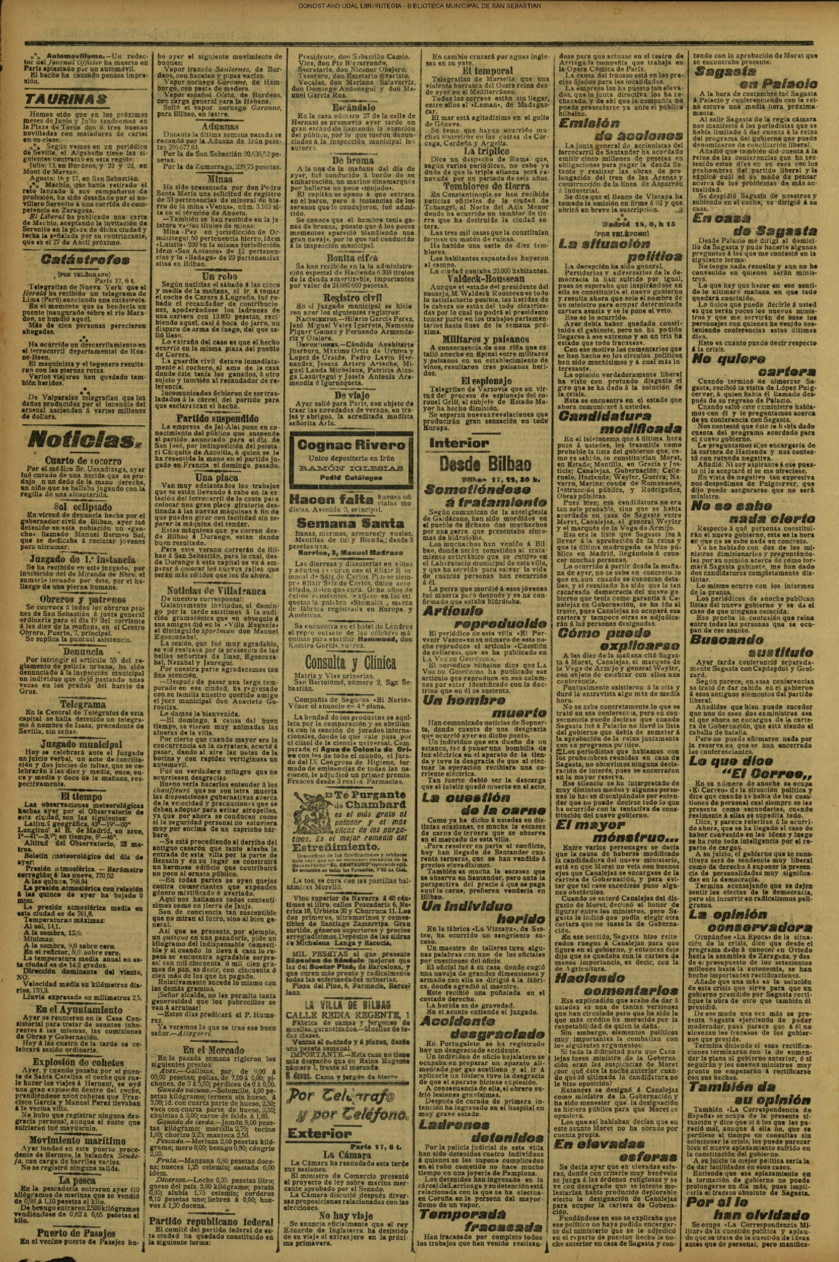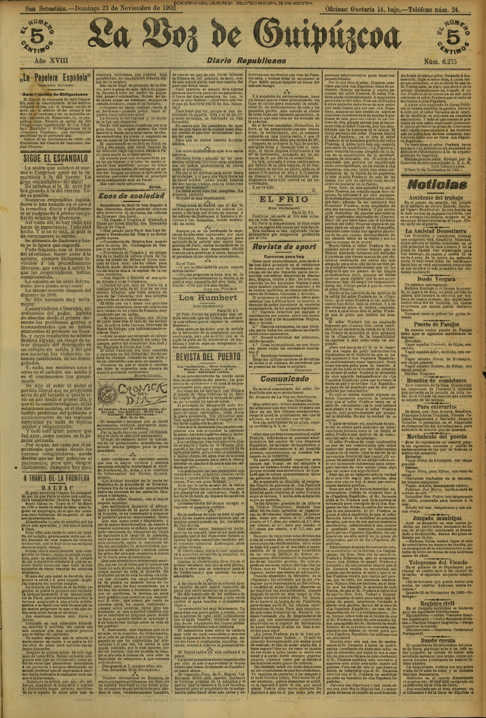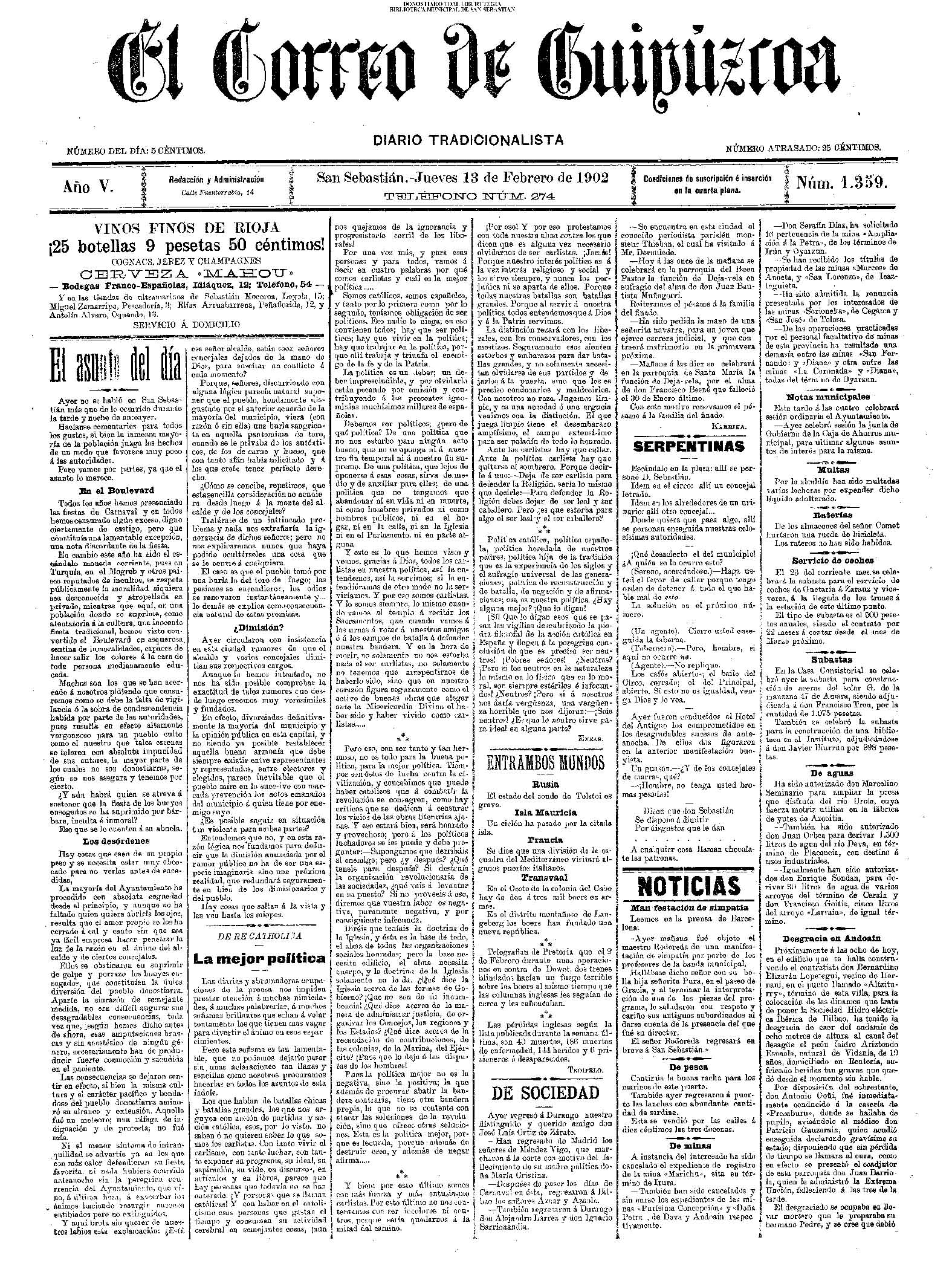 Uno de estos niños apareció el 9 de diciembre de 1902... en un confesonario de la parroquia de San Vicente, el que normalmente ocupaba el reverendo Iturrioz. Representaba tener unos ocho días de vida, siendo su constitución buena. En sus ojos aparecían unas pequeñas placas purulentas que denotaban que su madre había padecido alguna enfermedad. La criatura estaba envuelta en unos pañales, y a juzgar por la forma que se hallaba vestido se creyó que la madre sería extranjera, pues no era usual aquí aquella manera de empañar al recién nacido.