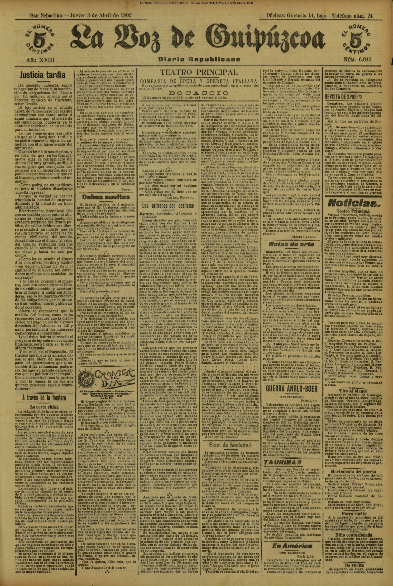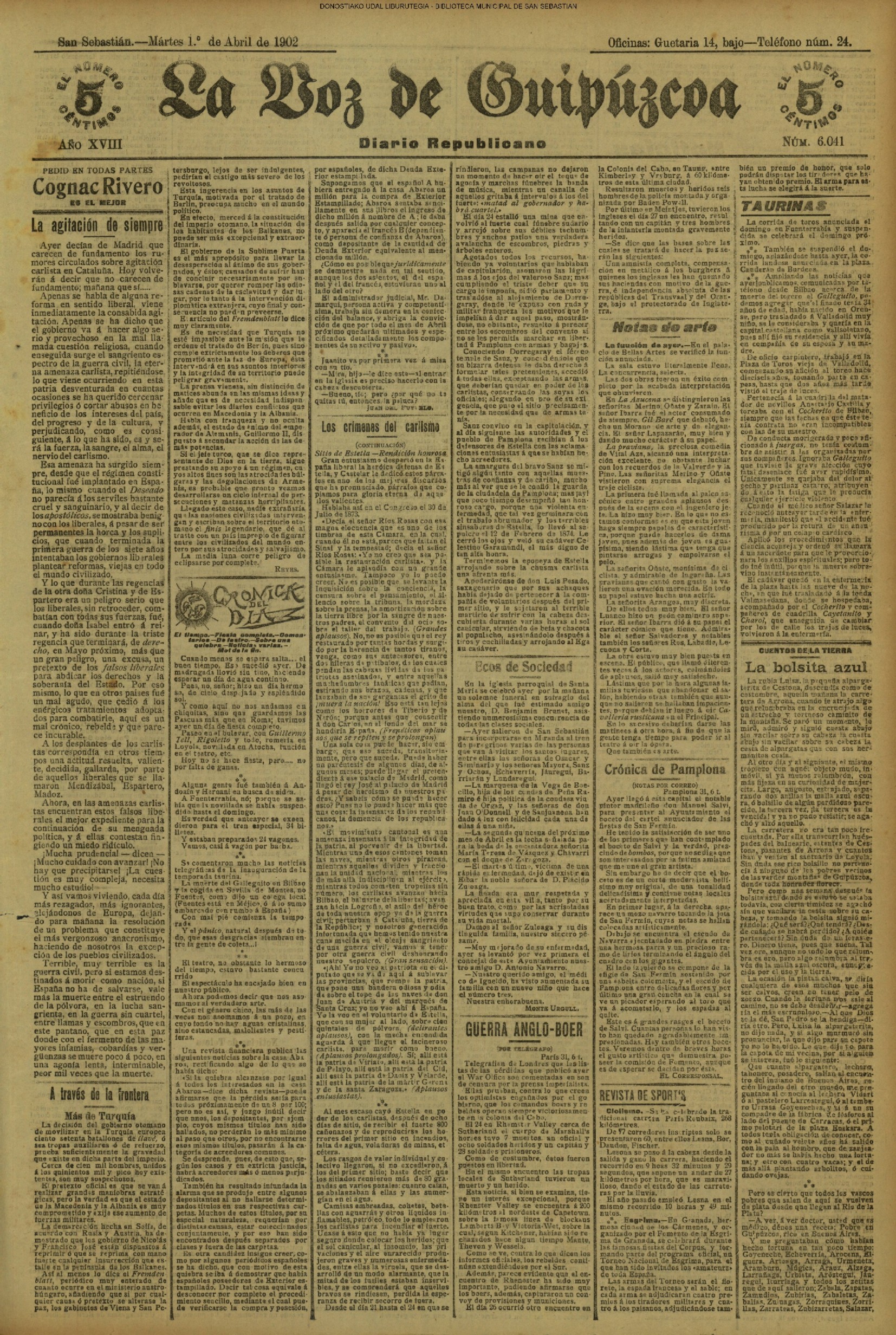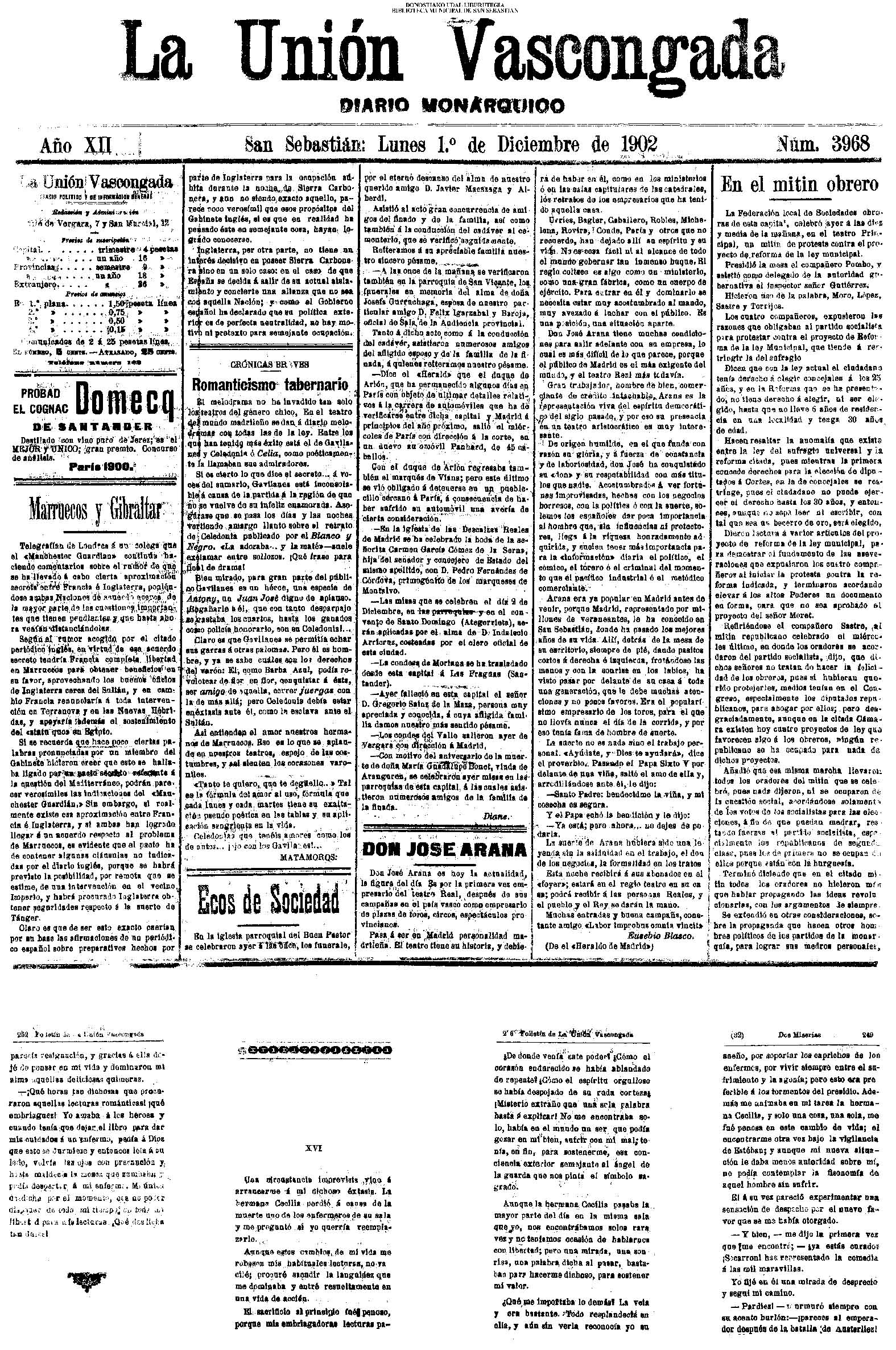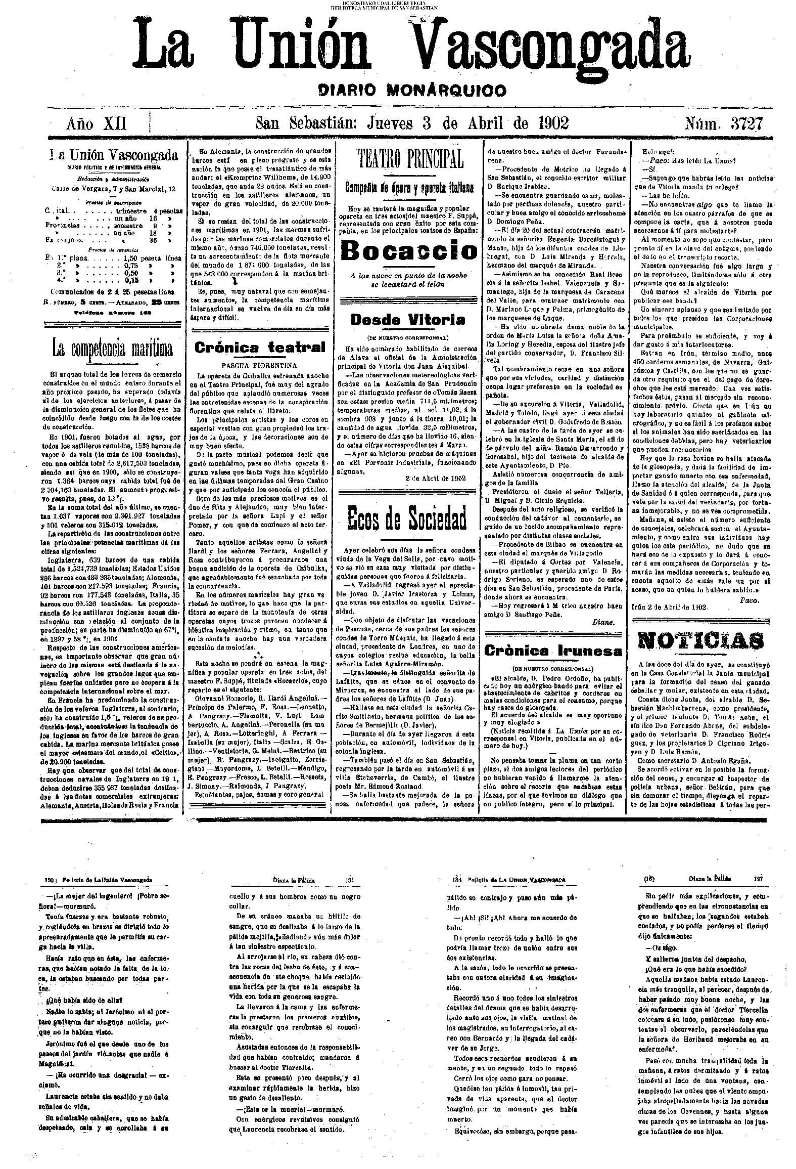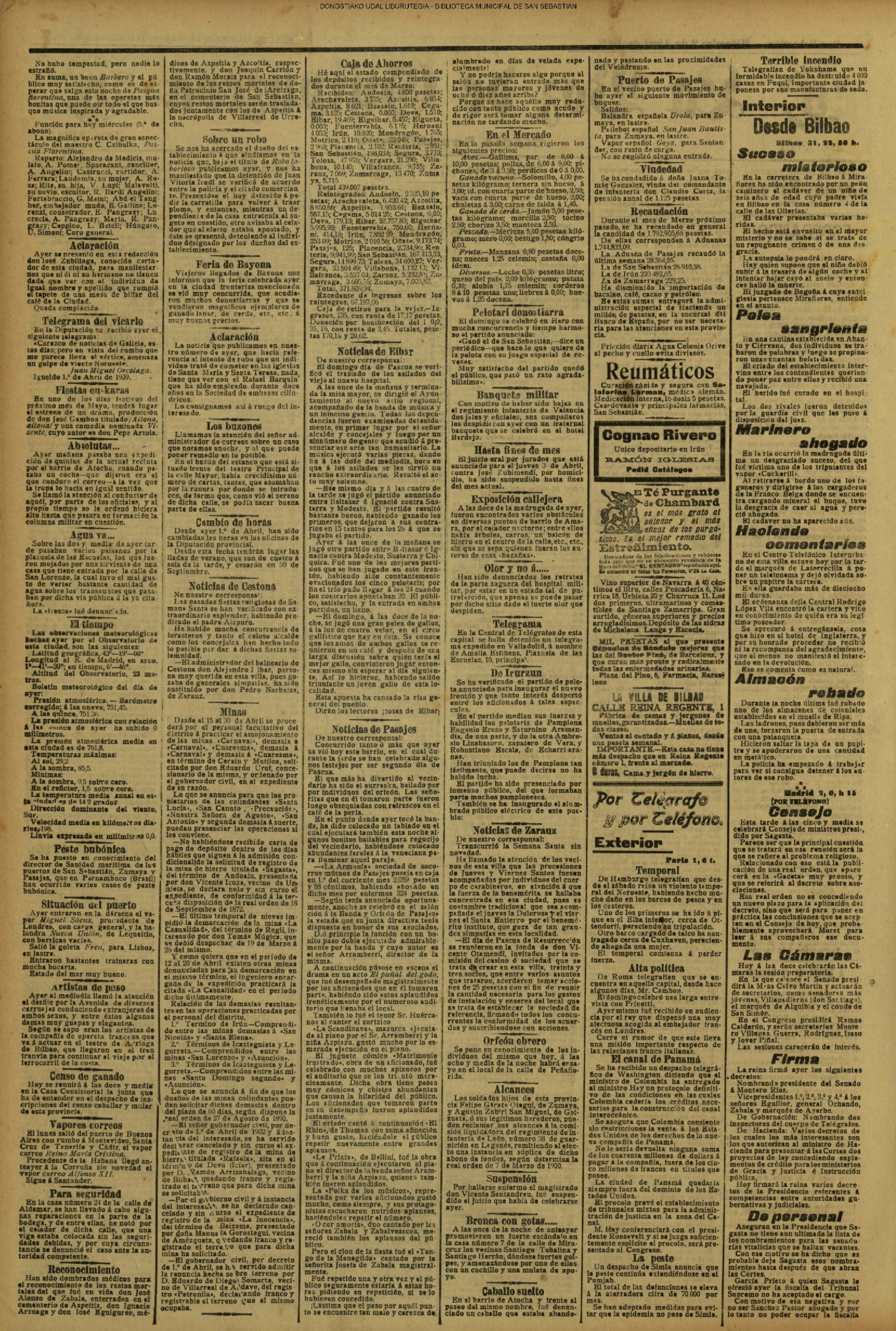 Uno de estos niños apareció el 9 de diciembre de 1902... en un confesonario de la parroquia de San Vicente, el que normalmente ocupaba el reverendo Iturrioz. Representaba tener unos ocho días de vida, siendo su constitución buena. En sus ojos aparecían unas pequeñas placas purulentas que denotaban que su madre había padecido alguna enfermedad. La criatura estaba envuelta en unos pañales, y a juzgar por la forma que se hallaba vestido se creyó que la madre sería extranjera, pues no era usual aquí aquella manera de empañar al recién nacido.