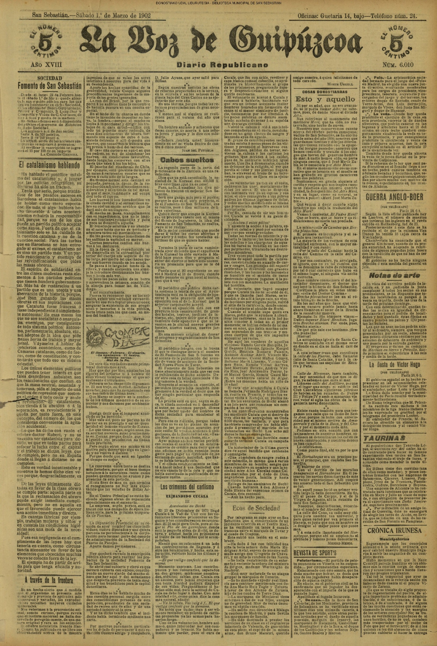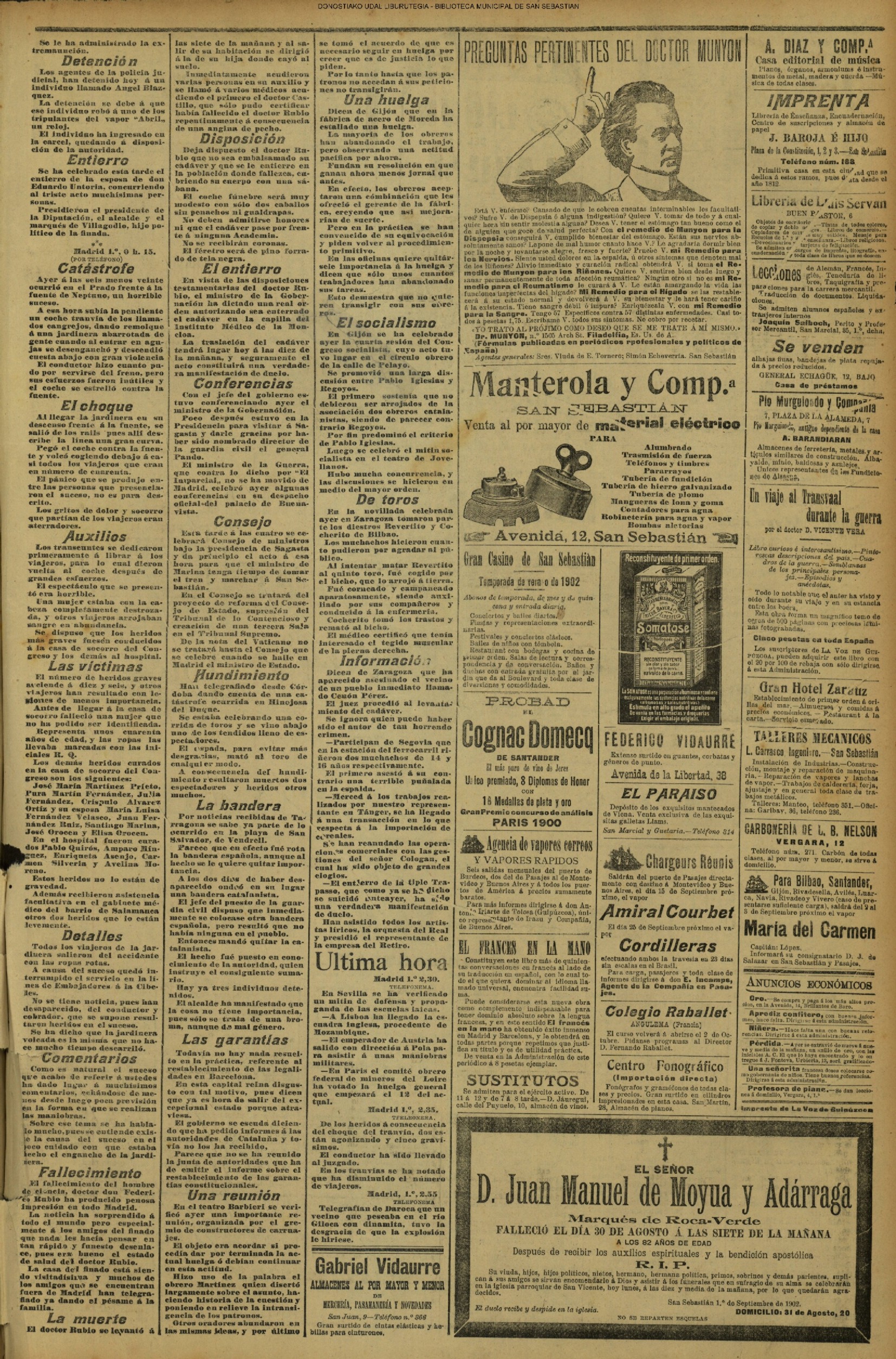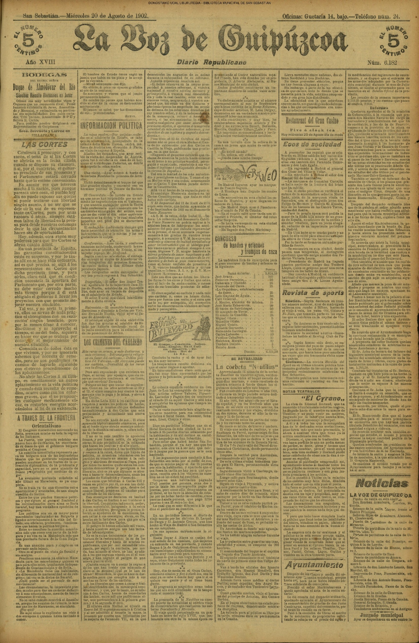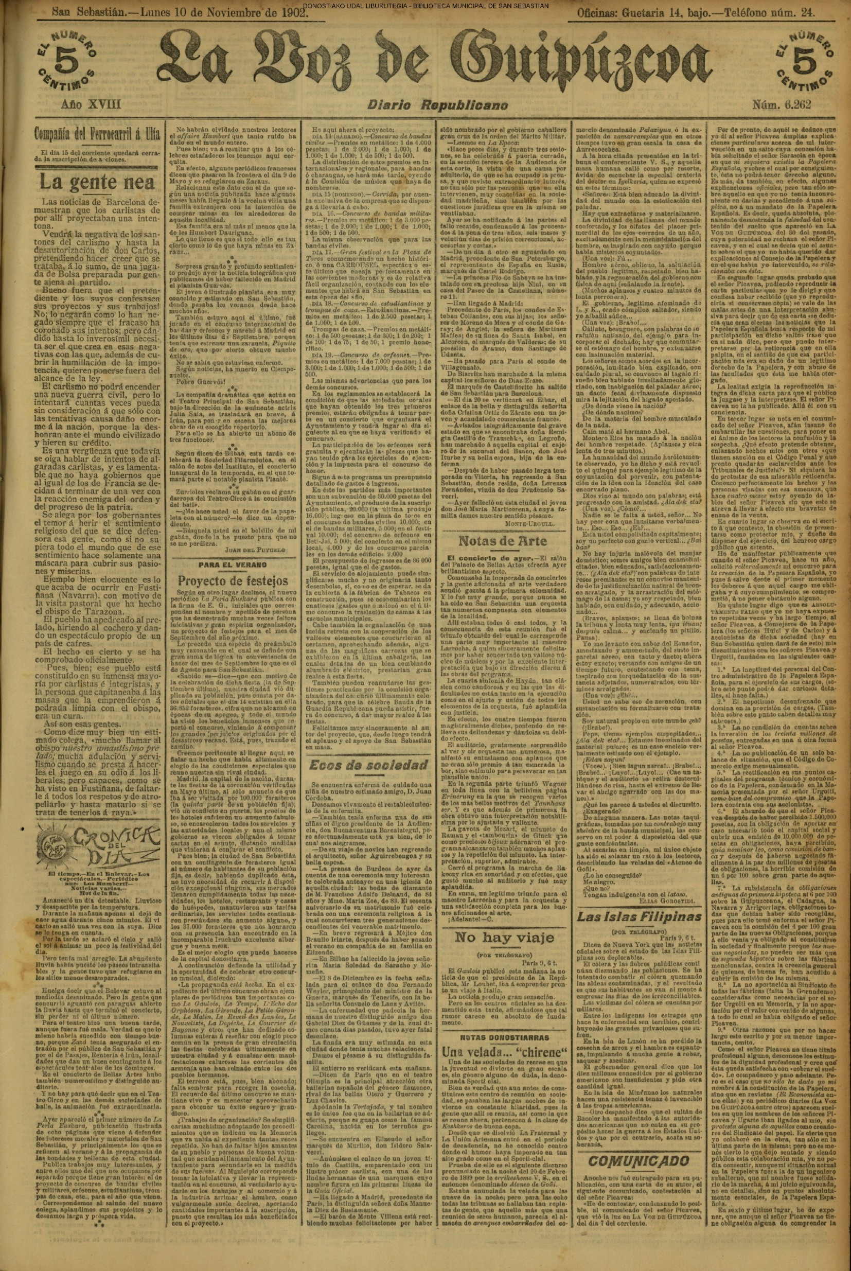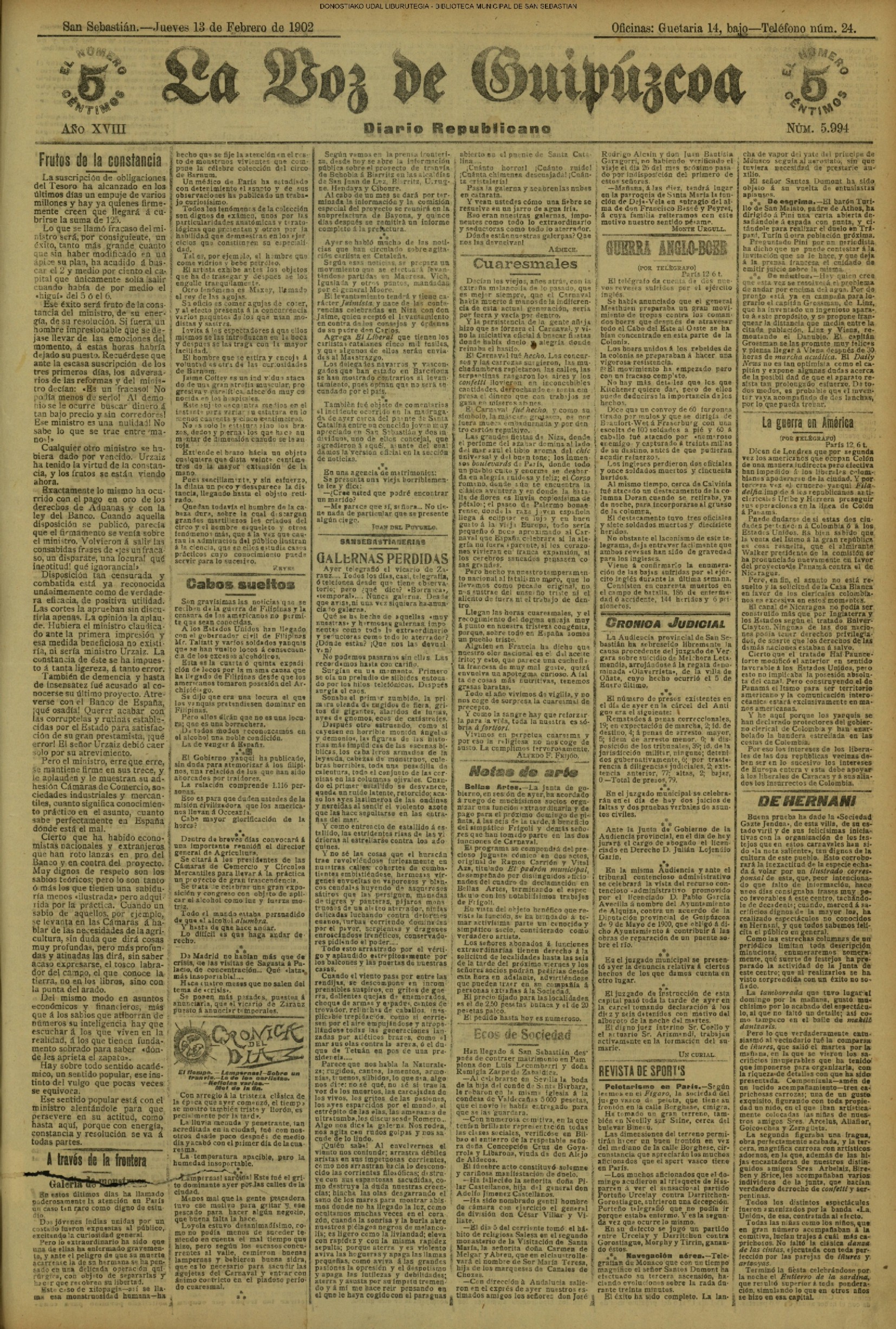 Uno de estos niños apareció el 9 de diciembre de 1902... en un confesonario de la parroquia de San Vicente, el que normalmente ocupaba el reverendo Iturrioz. Representaba tener unos ocho días de vida, siendo su constitución buena. En sus ojos aparecían unas pequeñas placas purulentas que denotaban que su madre había padecido alguna enfermedad. La criatura estaba envuelta en unos pañales, y a juzgar por la forma que se hallaba vestido se creyó que la madre sería extranjera, pues no era usual aquí aquella manera de empañar al recién nacido.