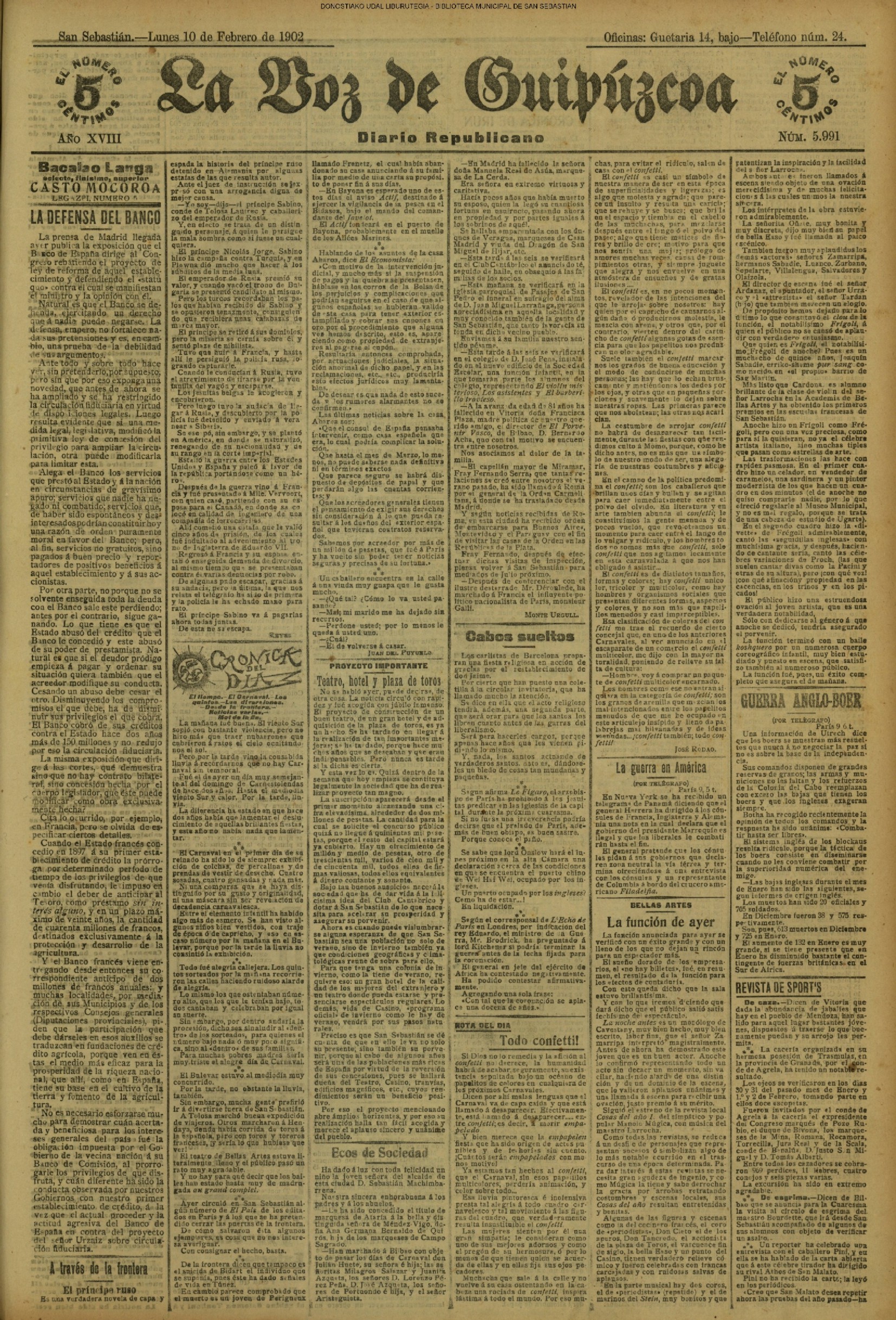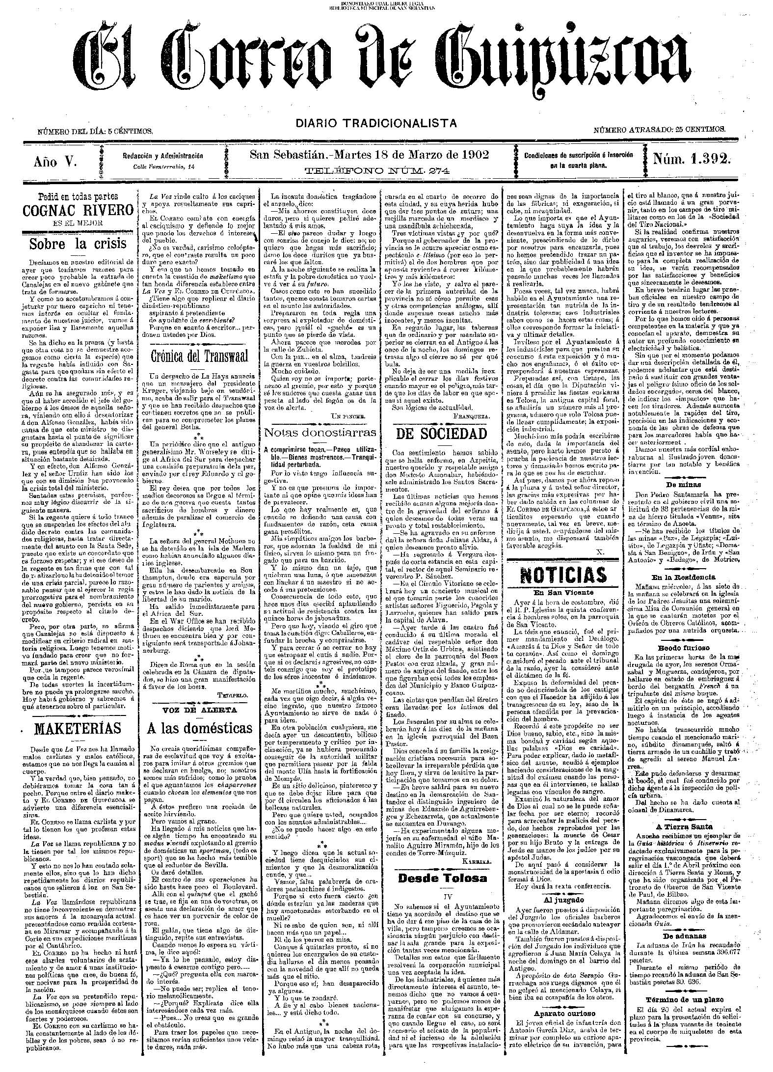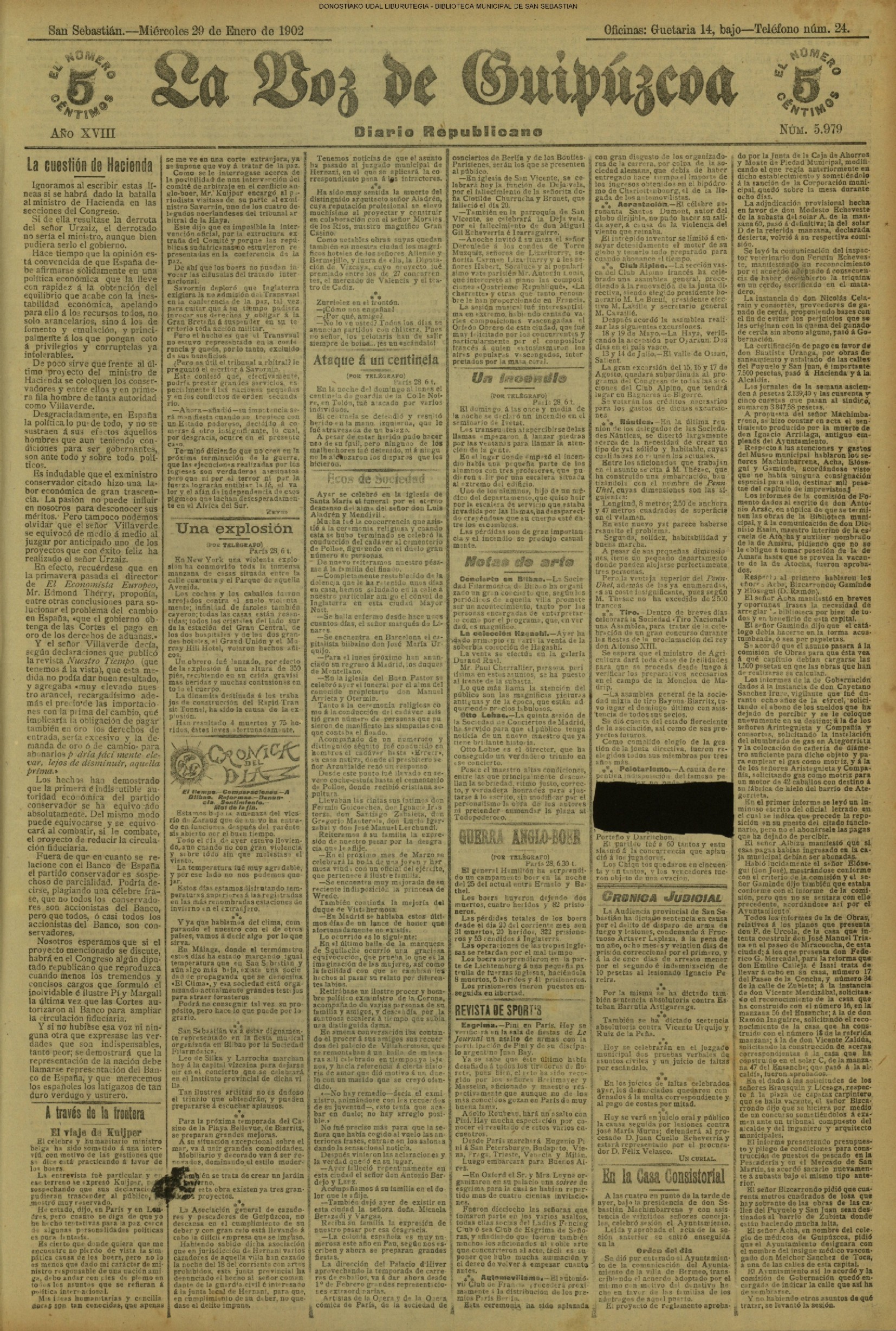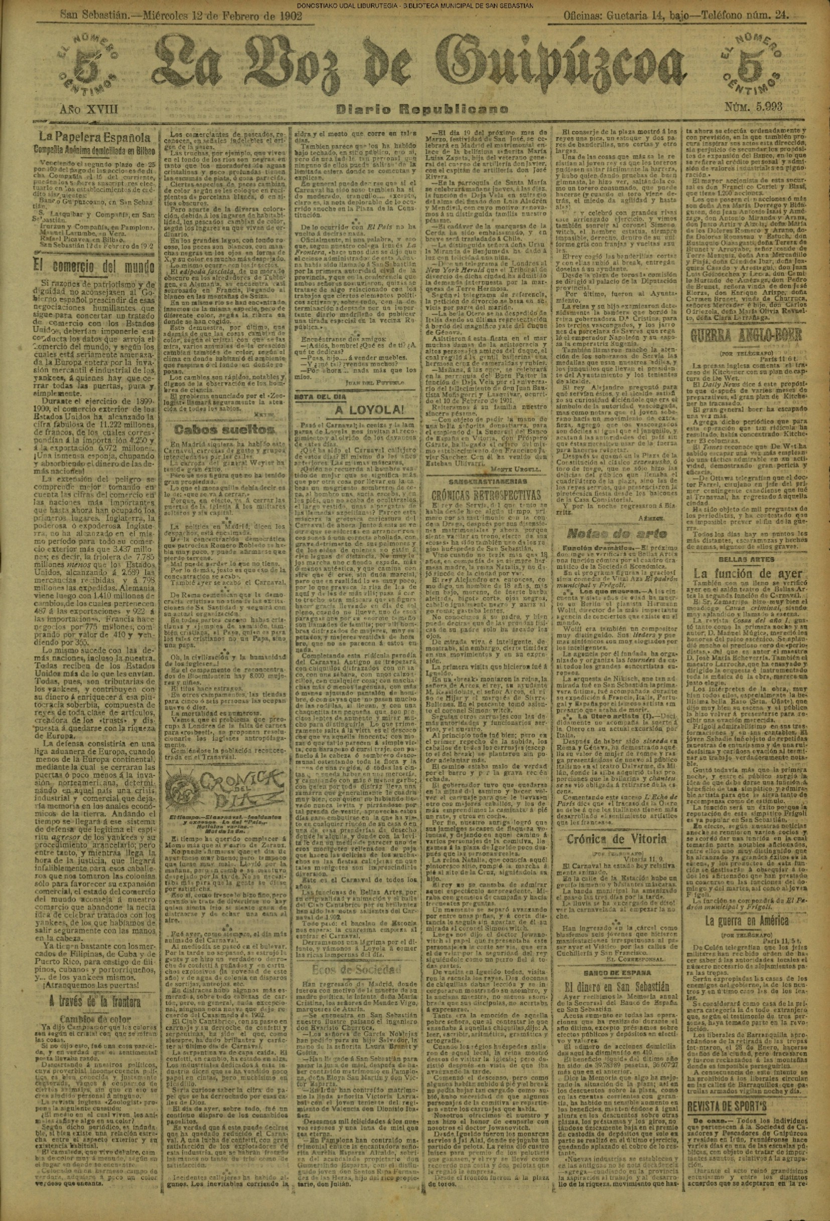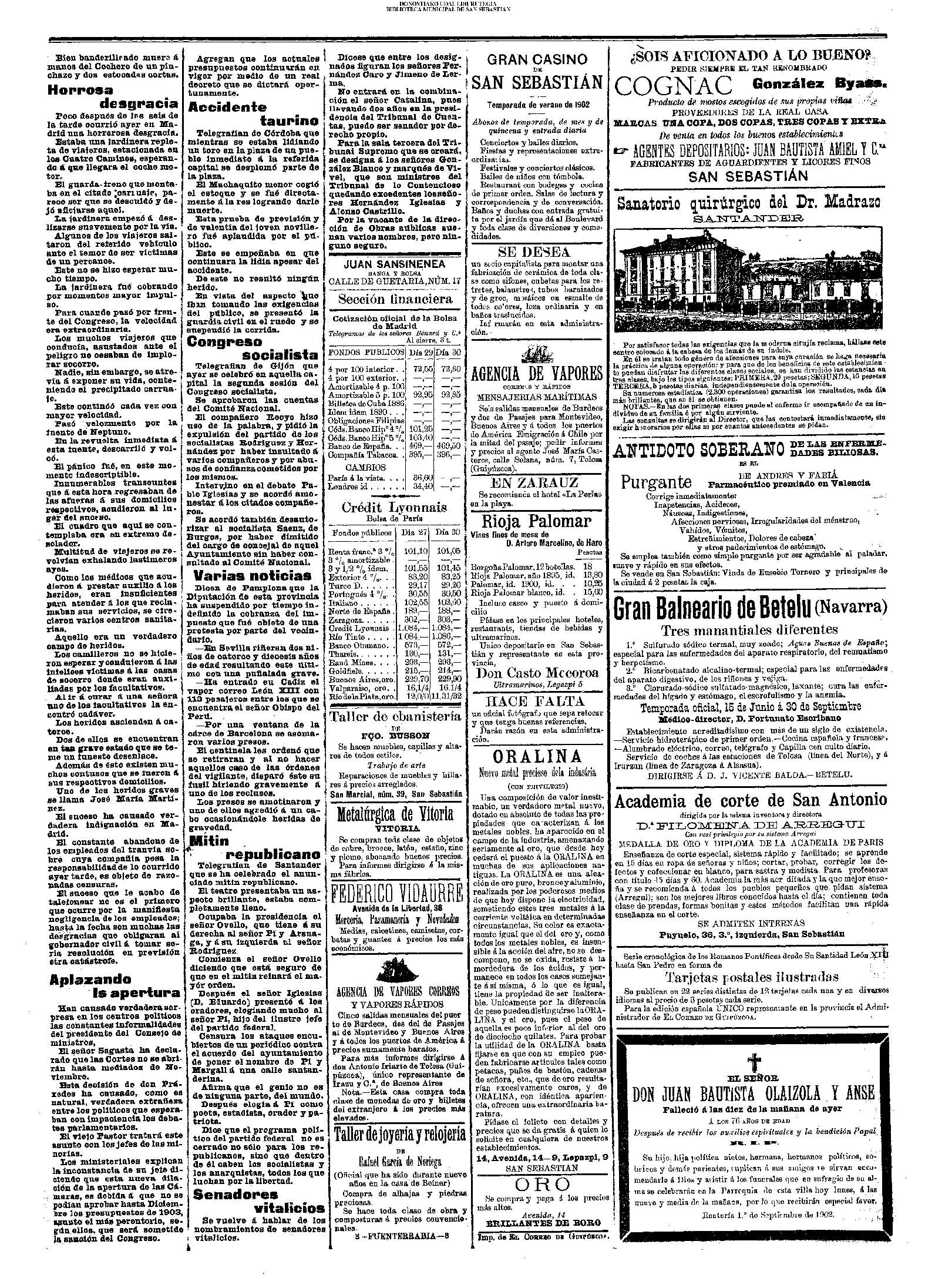 Uno de estos niños apareció el 9 de diciembre de 1902... en un confesonario de la parroquia de San Vicente, el que normalmente ocupaba el reverendo Iturrioz. Representaba tener unos ocho días de vida, siendo su constitución buena. En sus ojos aparecían unas pequeñas placas purulentas que denotaban que su madre había padecido alguna enfermedad. La criatura estaba envuelta en unos pañales, y a juzgar por la forma que se hallaba vestido se creyó que la madre sería extranjera, pues no era usual aquí aquella manera de empañar al recién nacido.