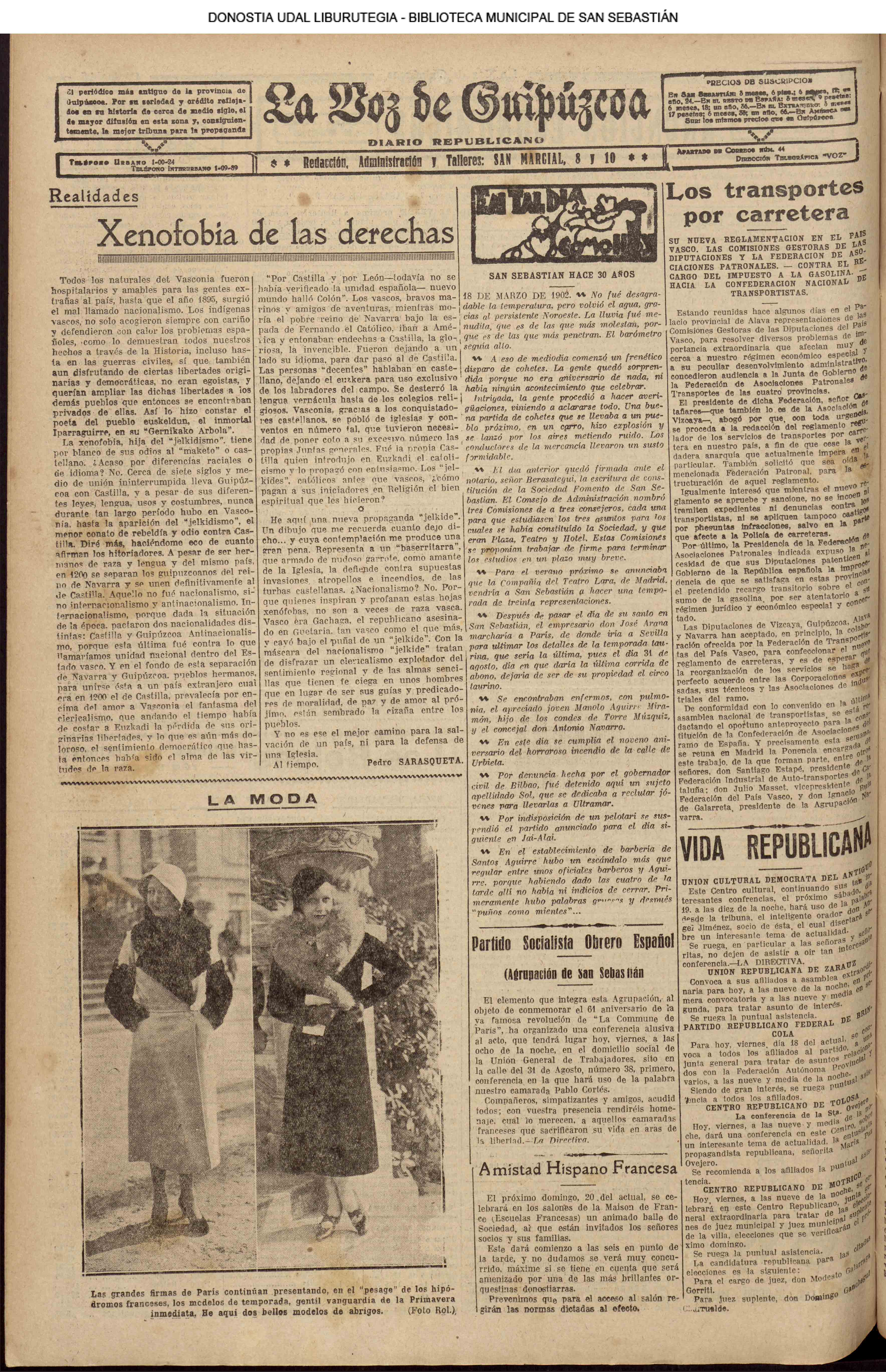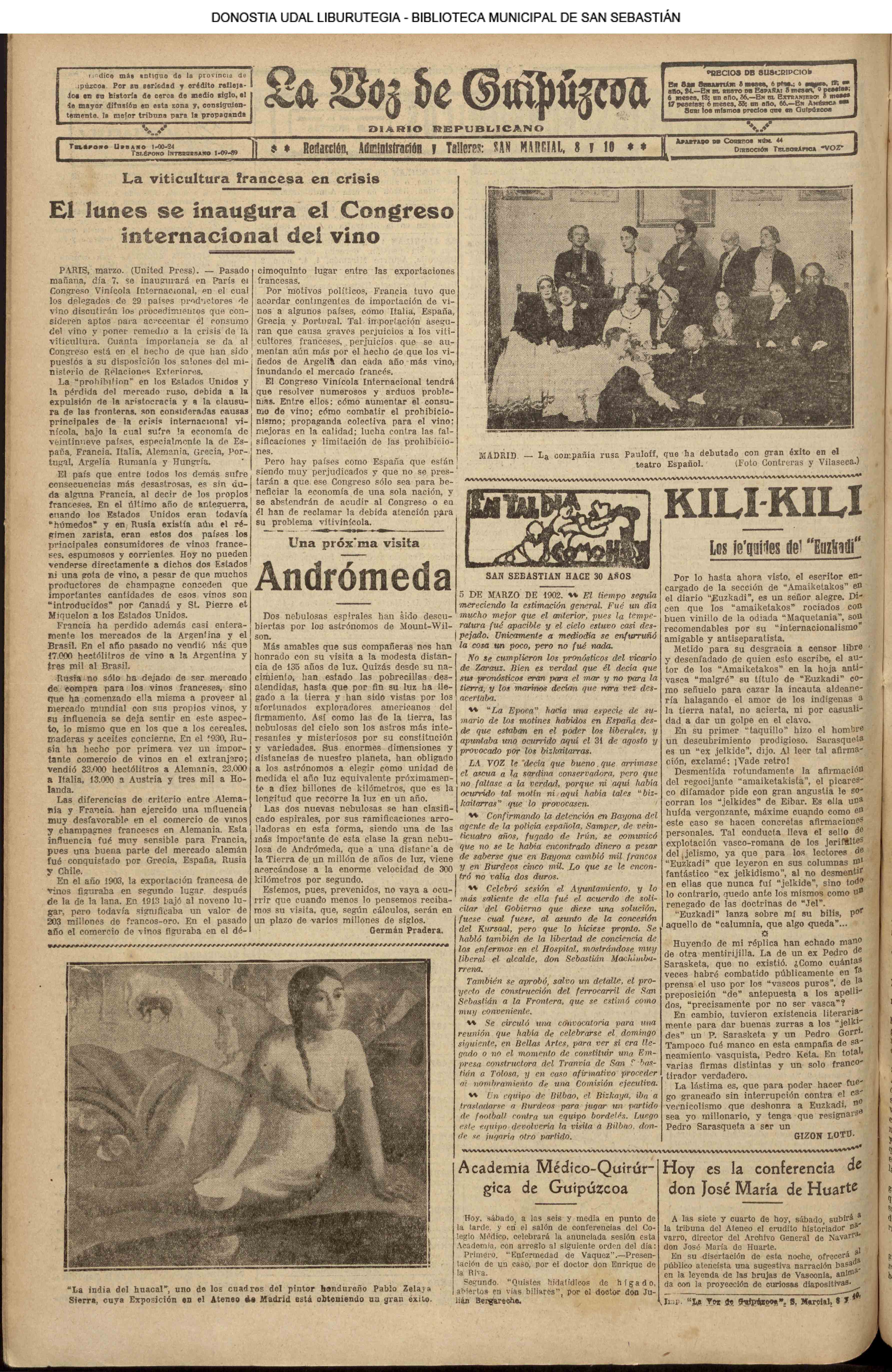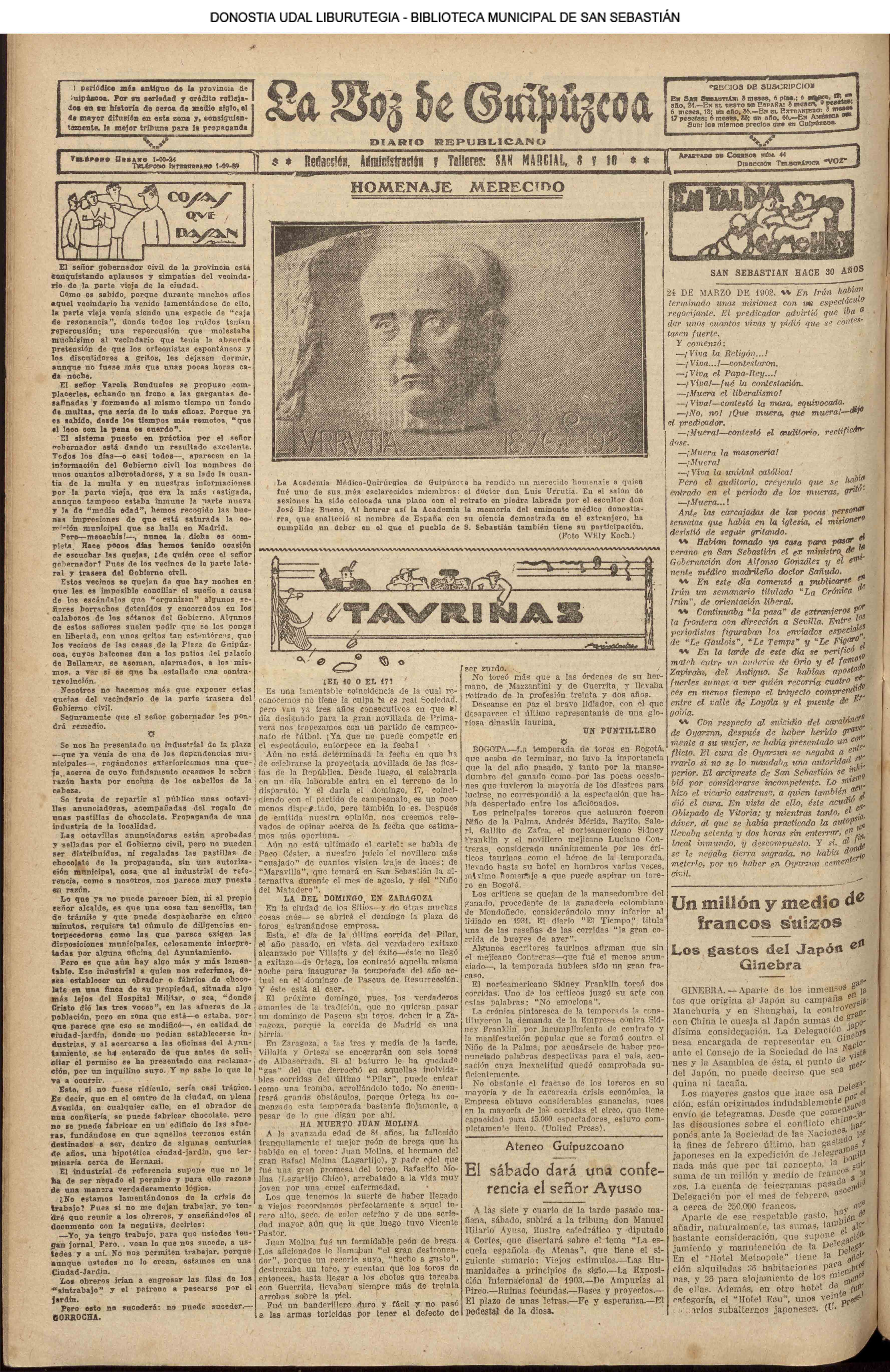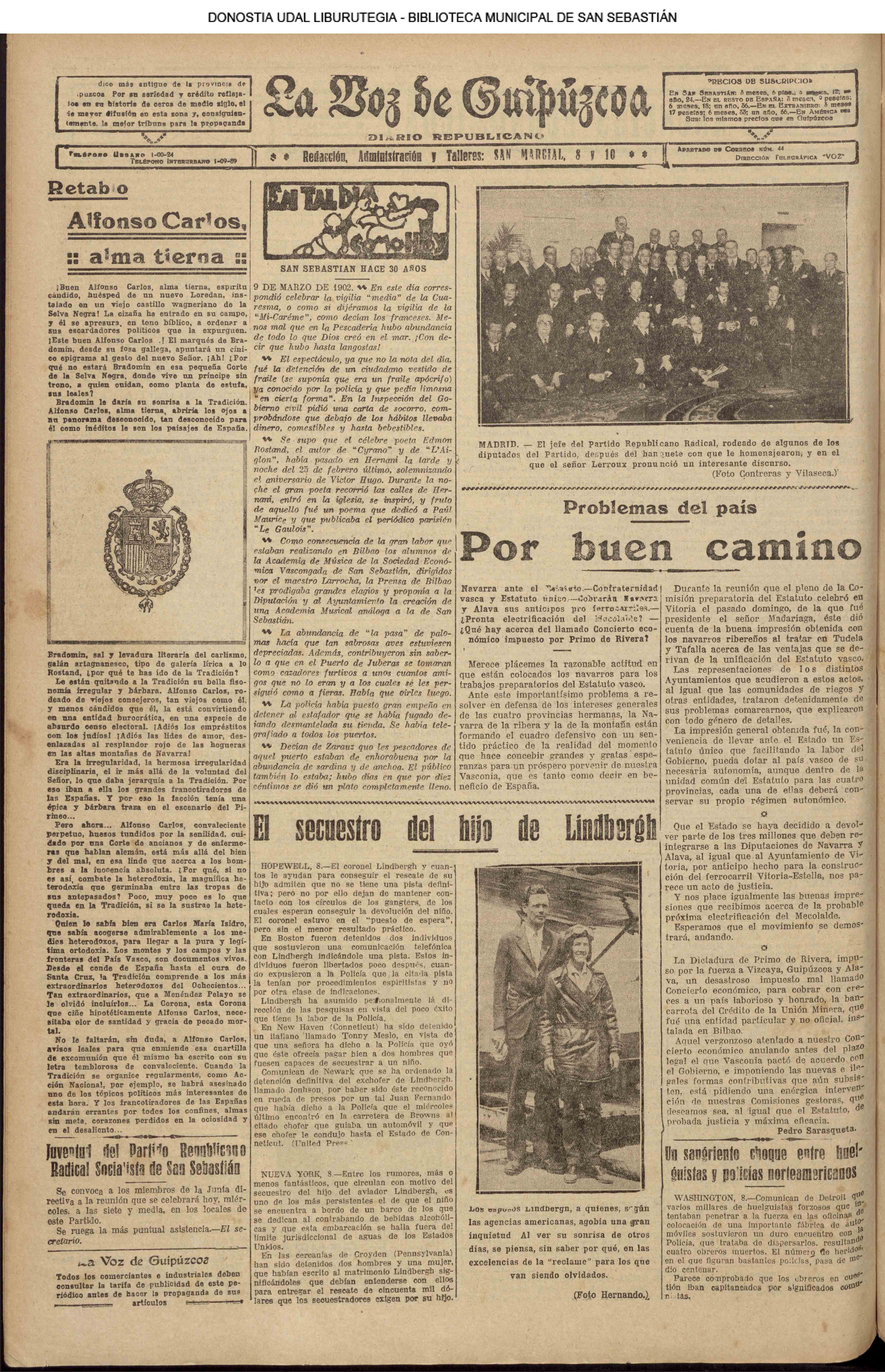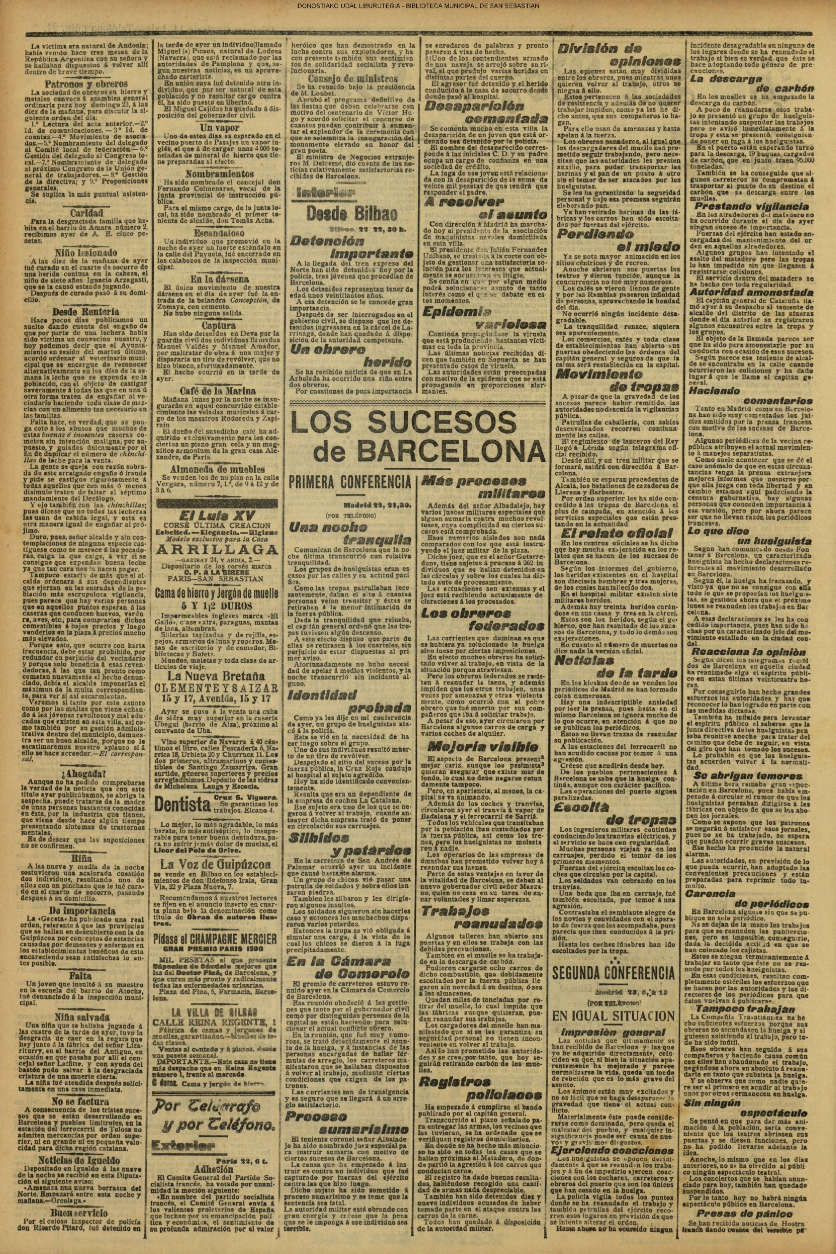 Uno de estos niños apareció el 9 de diciembre de 1902... en un confesonario de la parroquia de San Vicente, el que normalmente ocupaba el reverendo Iturrioz. Representaba tener unos ocho días de vida, siendo su constitución buena. En sus ojos aparecían unas pequeñas placas purulentas que denotaban que su madre había padecido alguna enfermedad. La criatura estaba envuelta en unos pañales, y a juzgar por la forma que se hallaba vestido se creyó que la madre sería extranjera, pues no era usual aquí aquella manera de empañar al recién nacido.
