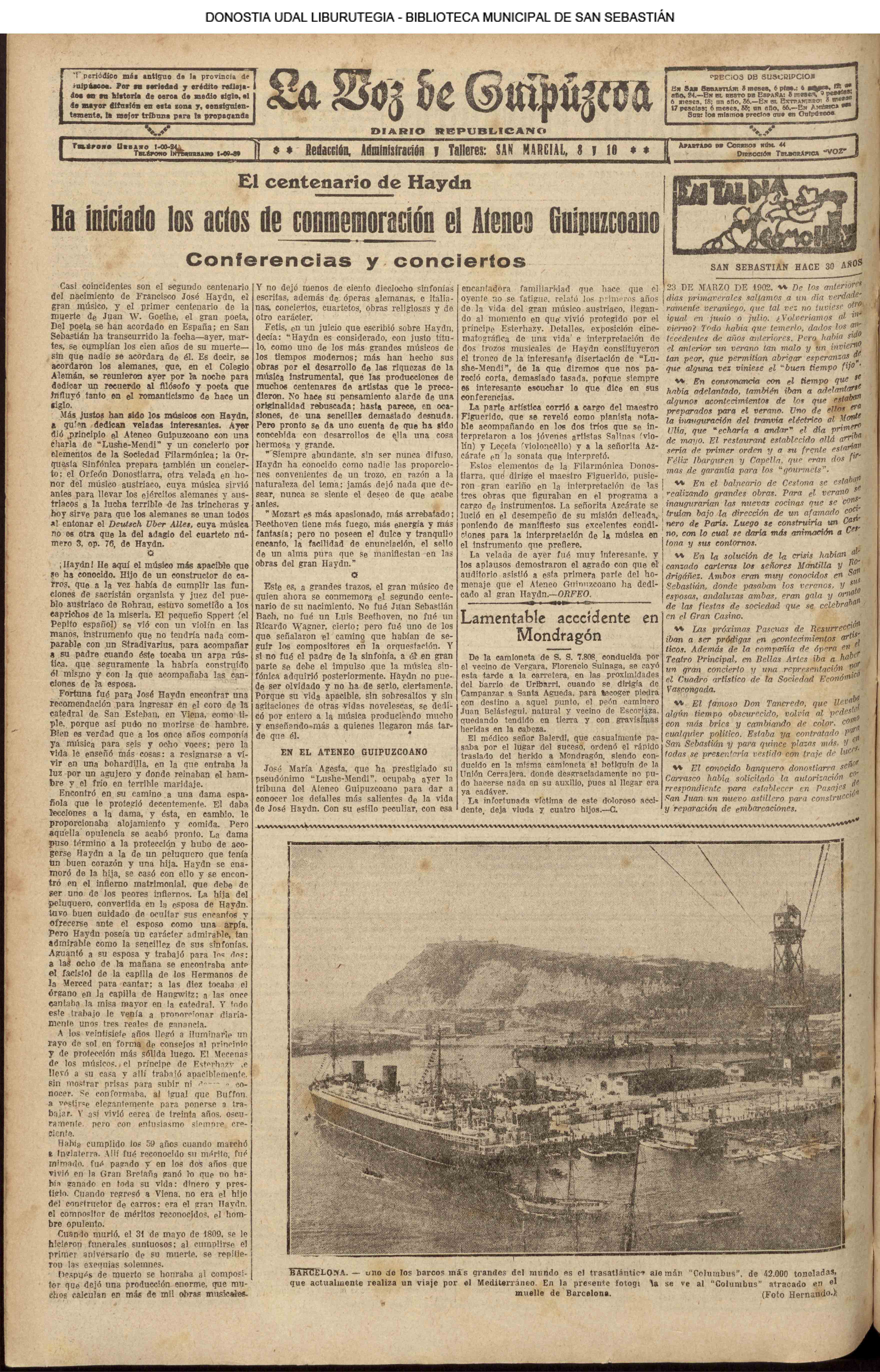 Por entonces había unos pequeños astilleros en el muelle donostiarra, en la zona denominada Cai-Arriba, y cada vez que se terminaba de construir un barco, acudía mucha gente a la botadura. Iban a ver como el casco resbalaba sobre las gradas "haciéndolas crugir como si exhalaran ayes de dolor al separarse del que hasta entonces guardaron en su regazo, y su caída majestuosa y solemne sobre las aguas que se agitan,revuelven y saltan como asustadas o enfurecidas por el atrevimiento con que llegó a turbar su reposo el neófito; todo eso, que es el nacimiento del nuevo barco, y los hurras y vítores y aplausos y lágrimas de alegría con que se recibe al recién venido, es altamente poético, profundamenteconmovedor",escribió un cronista local al ser botado el Ederrena el 11 de diciembre de 1902.