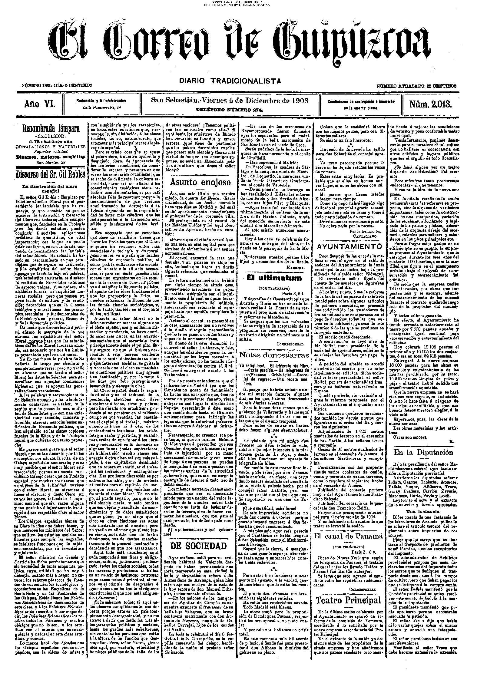 Cuando el Ayuntamiento de San Sebastián acordó construir un nuevo puente sobre el Urumea, frente a la estación del Norte, convocó un concurso de proyectos con fecha 15 de setiembre de 1903. Los datos para estudiar el proyecto eran: distancia 88 m. entre los muelles, 20 m. de latitud del puente, y 2,30 de altura del paseo del Urumea de la margen izquierda sobre la pleamar equinoccial. El material resistente de los arcos debía ser de sillería, sillaréjo o de hormigón armado, desechándose el hierro y el acero. Si se adoptase cemento armado tenía que quedar oculto en los paramentos principales y recubierto con azulejos, mármoles u otros .elementos decorativos. El presuesto no podía pasar de 500.000 pesetas, costeando directamente el Ayuntamiento los gastos de címentación. "El plazo para entregar los proyectos finalizaba el 15 de noviembre. Se establecía un premio de 5.000 pesetas al autor del proyecto que a juicío del jurado fuera el que reuniese las cualidades de solidez, economía y belleza, y otro de 3.000 pesetas al autor del estudio que le siga en méritos. Nada menos que catorce proyetos se presentaron, la mayoría bajo lemas como. «Piedra y hierro», «Zubieta 1813», «Laurak bat», «Donostiari», «Izurun», «Zabalzubí», "Trabajo", "Uná idea" y «Olarso» El jurado, formado por don Pablo de Alzola, don Evaristo Chu rruca, don Enrique Gadea, dón Recaredo Uhagón y don Marcelo Sarasola acordó el 5 de dicíembre proponer, al Ayuntamiento el proyecto presentado por el ingeniero de caminos don Jose Eugenio de Ribera con la colaboración del arquitecto don Julio María Zapata". El proyecto de Ribera era un puente de tres arcos escarzanos de .24m de luz y 1:11,4 de rebajamiento ejecutados en hormigon armado en su cuerpo y con sillería en sus frentes.El pavimento era horizontal.a la altura del paséo y los arranquesde los arcos penetraban 0,44 m. en agua en momentos de pleamares equinocciales. Los cálculos de las vigas principales se habían ejecutado por el método gráfico de las líneas dé presiones de Mery y las démas se calcularon analíticamente. El presupuesto de contrata, se dividía en dos partidas: presupuesto del puente propiamente dicho con sus faroles, etc. 378;694 pesetas, Decoración formada por dos arcos de entrada 120.340 pesetas. En el fallo del jurado se decía que los señores Ribera y Zapata habían sabido armonizar los preceptos de la ciencia del ingeniero, con la experiéncia del constructor y las galanurás dél arte. «El alzado del proyecto resulta armonioso en sus líneas generales y bello en sus detalles, habiéndose sacado el partido posible de las condiciones fijadas en el programa para darle un aspecto grandioso y monumental". En las bases del concurso se exigía que el autor del proyecto prémiado presentase én el plazo de quince días desde la fécha en que se le notificase la concesi6n del premio, un contratista responsable que ejecutase la obra. EI señor Ribera presentaba a la Compañía de Construcciones Hidráulicas y Civiles, de la que era director. El puente, que en un principio iba a llamarse de los Fueros, fue bautizado con el nombre de María Cristina en homenaje a la Reina Madre, benefactora de la ciudad, y fue inaugurado el 20 de enero de 1905. |