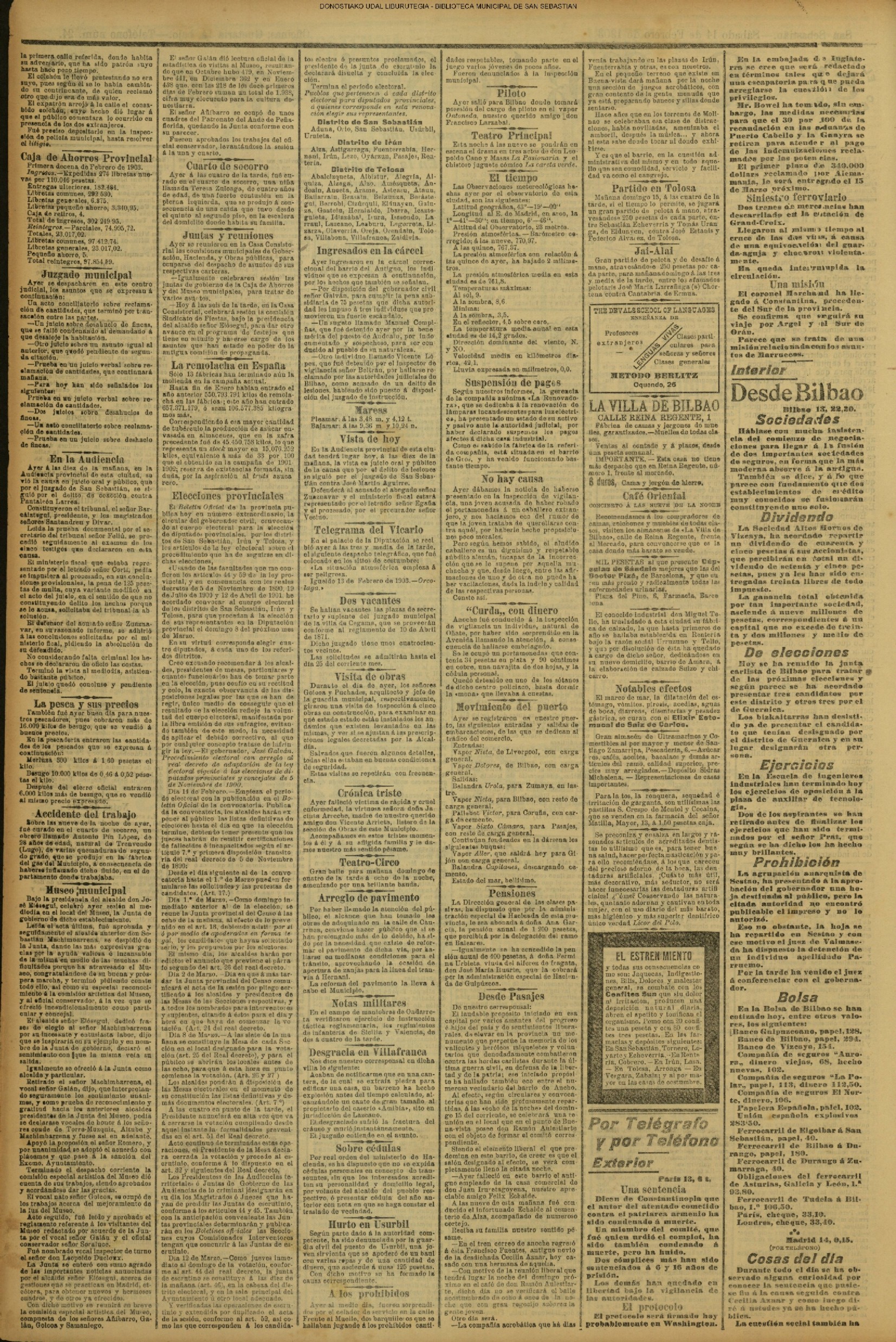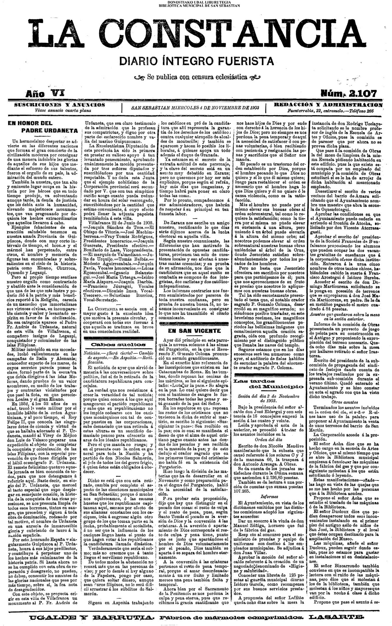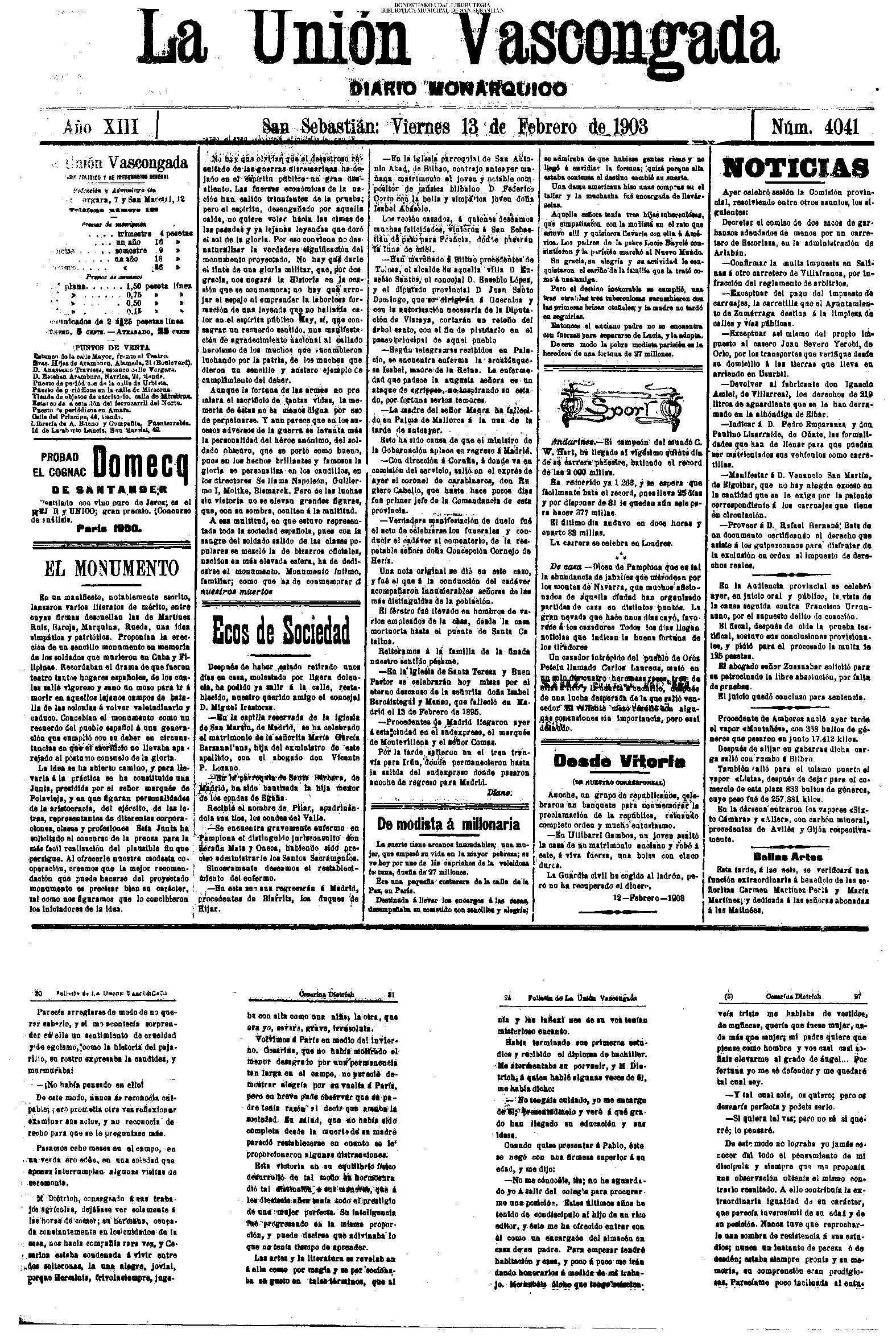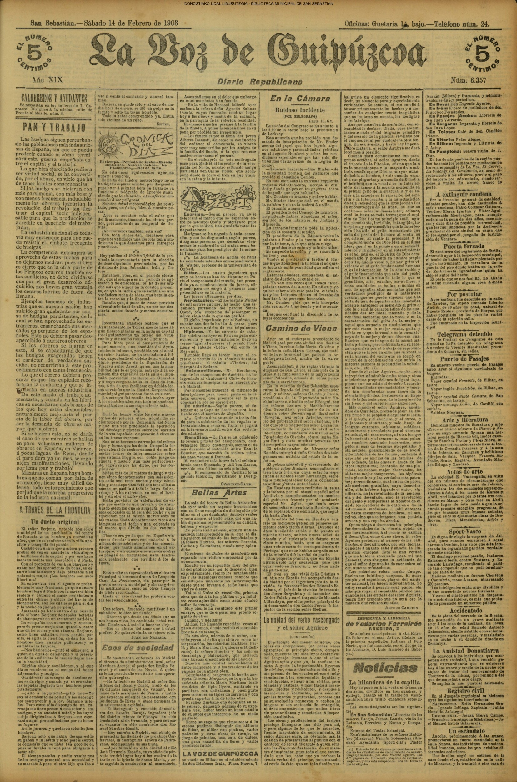 | # DOS PROYECTOS IMPORTANTES EN SAN SEBASTIÁN Se van-á llevar á cabo en la hermosa capital donostiarra dos obras de importancia, gracias á la benéfica institución titulada «La Caja de ahorros municipal», que ha ofrecido al Ayuntamiento de San Sebastián las sumas necesarias para la construcción de casas para obreros, en condiciones que puedan ser arrendadas á éstos por módicos alquileres, que al cabo de cierto número de afios, suficientes para resarcirse del capital, les hagan propietarios de la casa, y para la ejecución del proyectado puente que substituya al actual de madera que une con la estación del Norte el paseo de los Fueros, construcción verdaderamente necesaria, dado el desarrollo que la población va adquiriendo por los terrenos de Amara y las dificultades de la circulación, cada día más creciente, por la única vía hoy útil para i-nir al casco de la ciudad con la importantísima barriada de más allá del Urumea. ("LA CONSTRUCCIÓN MODERNA". 01.09.1903. núm.16)(p.17) |