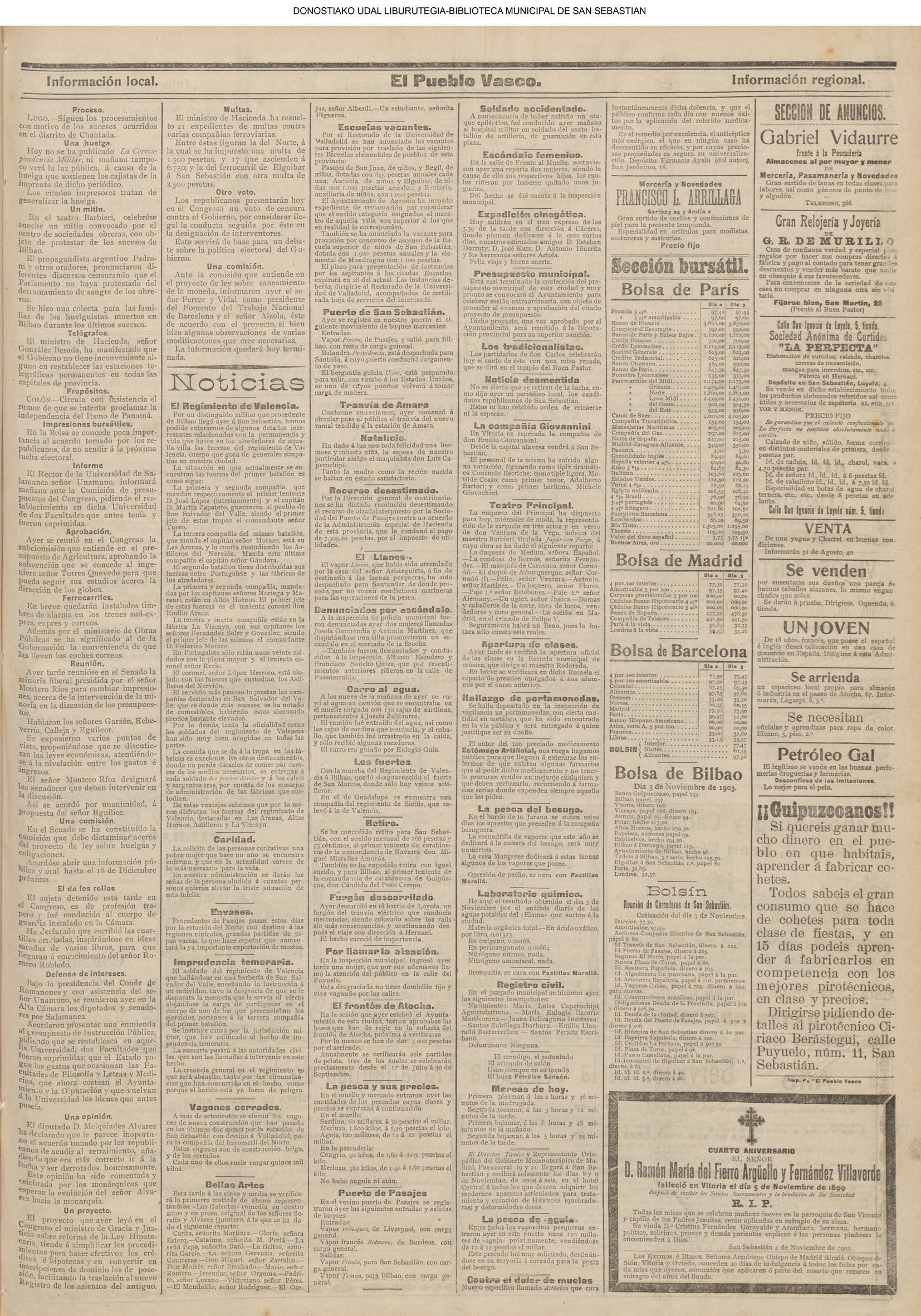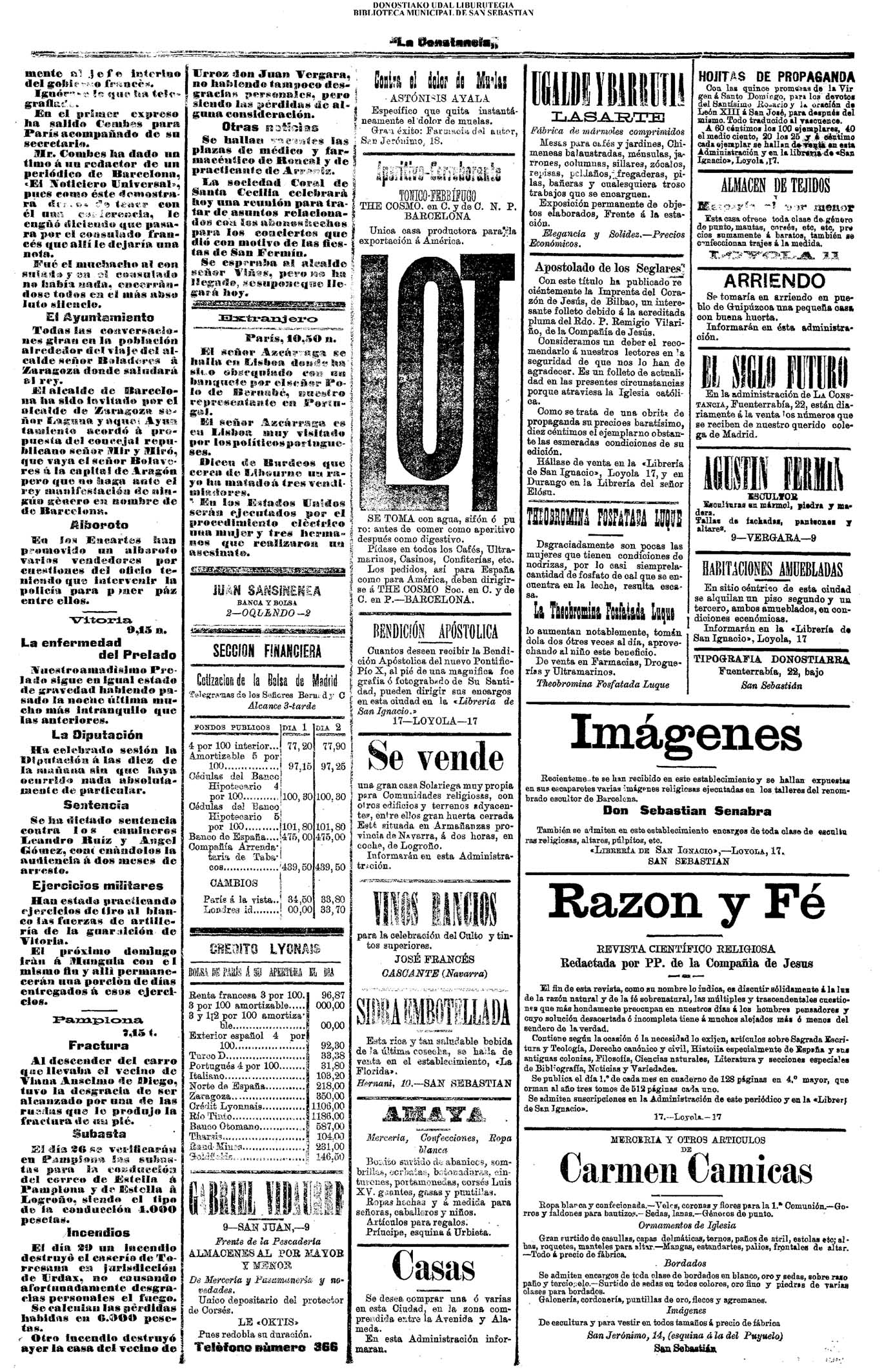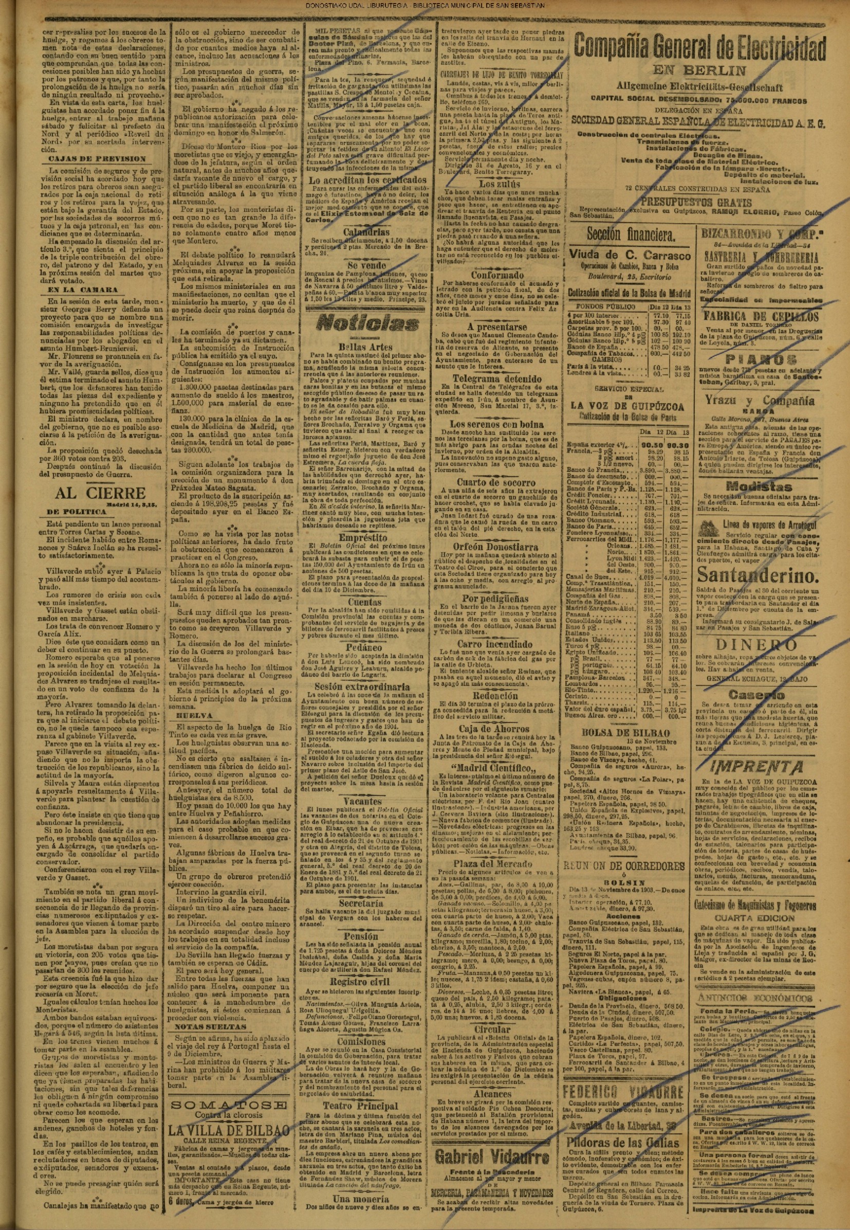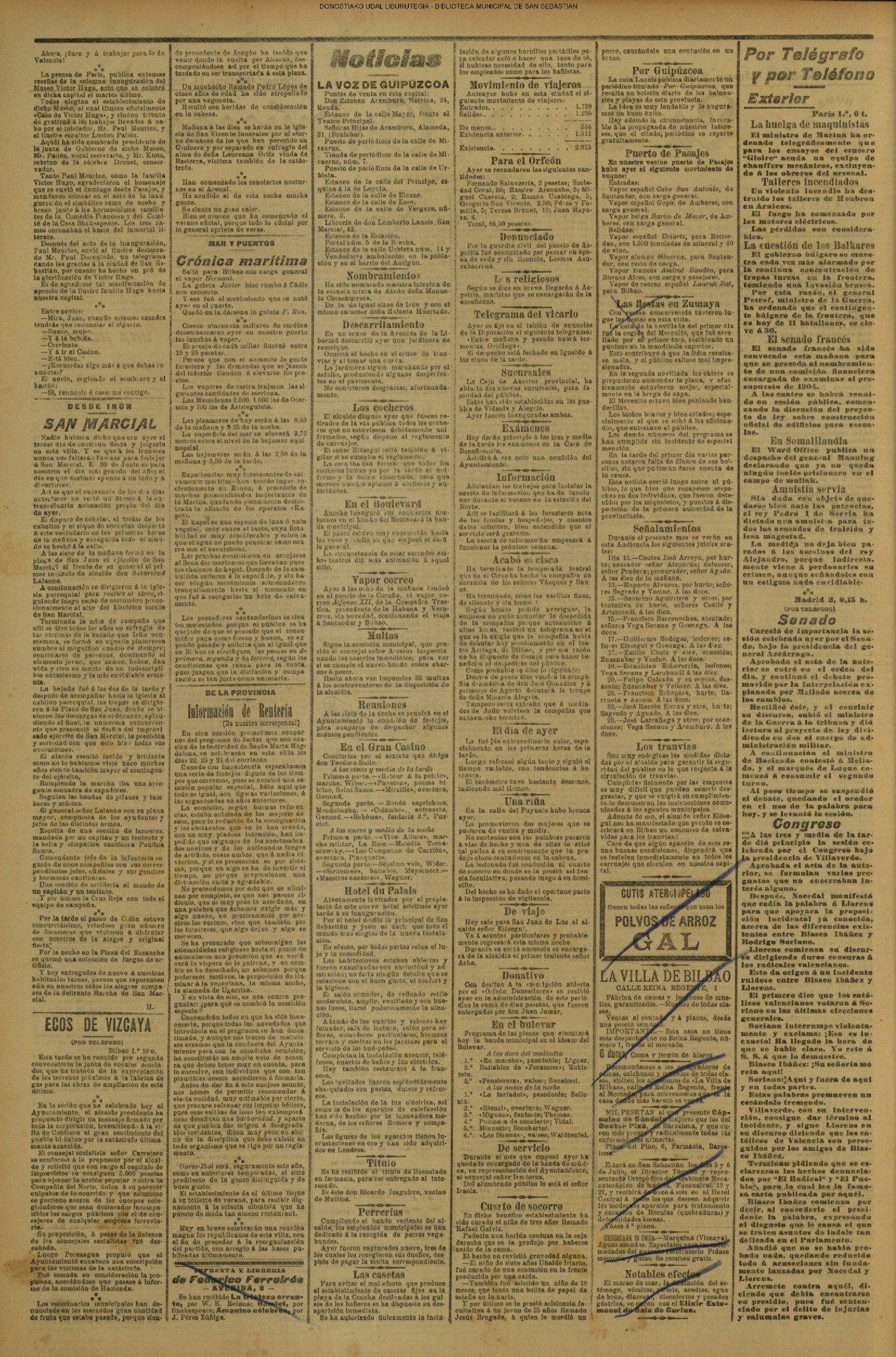 | # DOS PROYECTOS IMPORTANTES EN SAN SEBASTIÁN Se van-á llevar á cabo en la hermosa capital donostiarra dos obras de importancia, gracias á la benéfica institución titulada «La Caja de ahorros municipal», que ha ofrecido al Ayuntamiento de San Sebastián las sumas necesarias para la construcción de casas para obreros, en condiciones que puedan ser arrendadas á éstos por módicos alquileres, que al cabo de cierto número de afios, suficientes para resarcirse del capital, les hagan propietarios de la casa, y para la ejecución del proyectado puente que substituya al actual de madera que une con la estación del Norte el paseo de los Fueros, construcción verdaderamente necesaria, dado el desarrollo que la población va adquiriendo por los terrenos de Amara y las dificultades de la circulación, cada día más creciente, por la única vía hoy útil para i-nir al casco de la ciudad con la importantísima barriada de más allá del Urumea. ("LA CONSTRUCCIÓN MODERNA". 01.09.1903. núm.16)(p.17) |