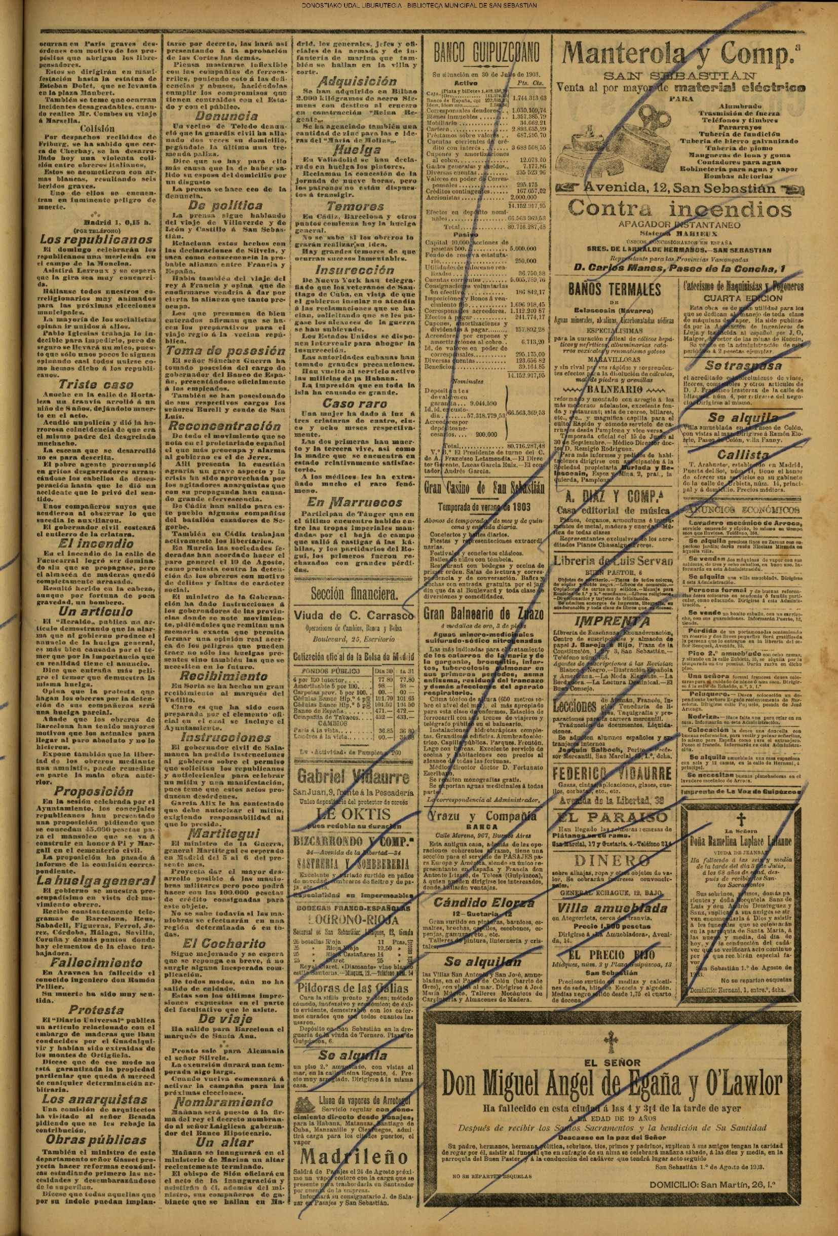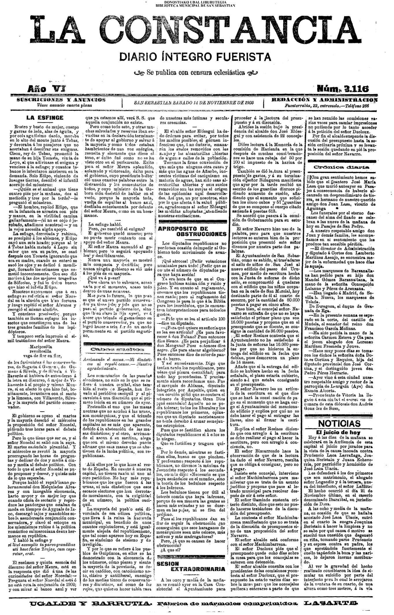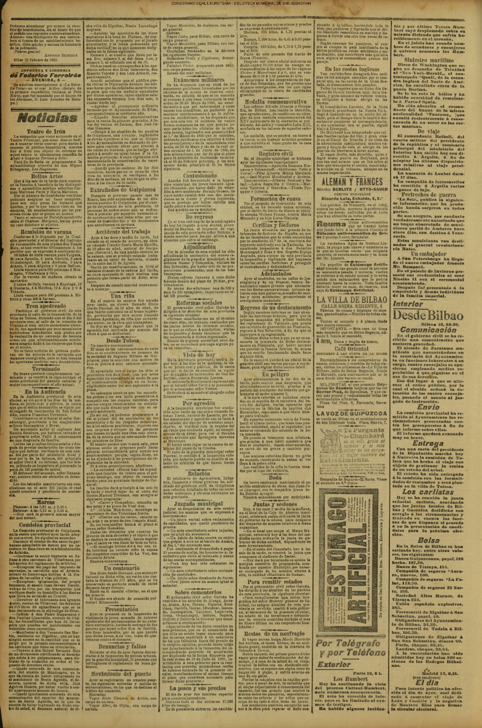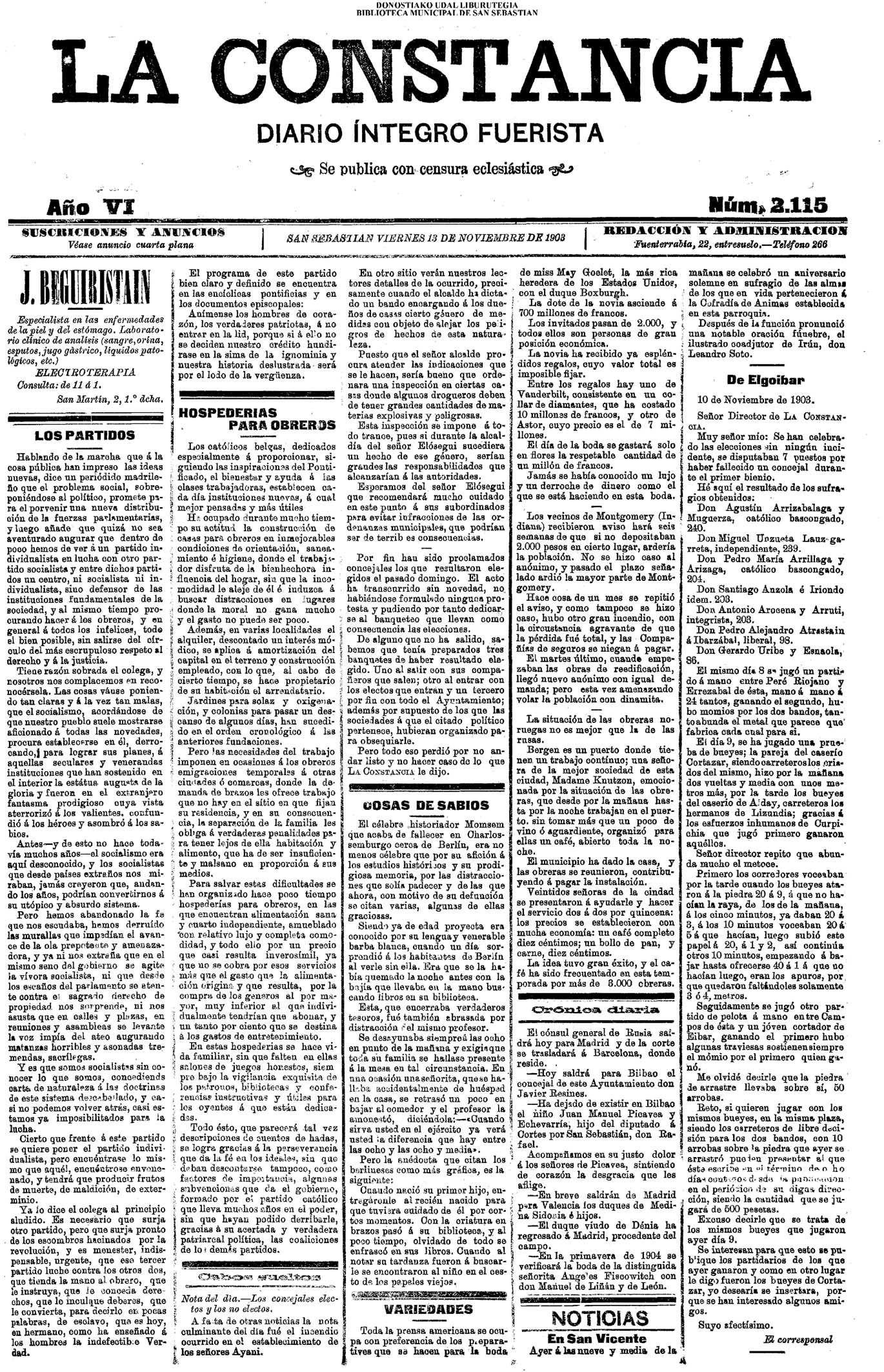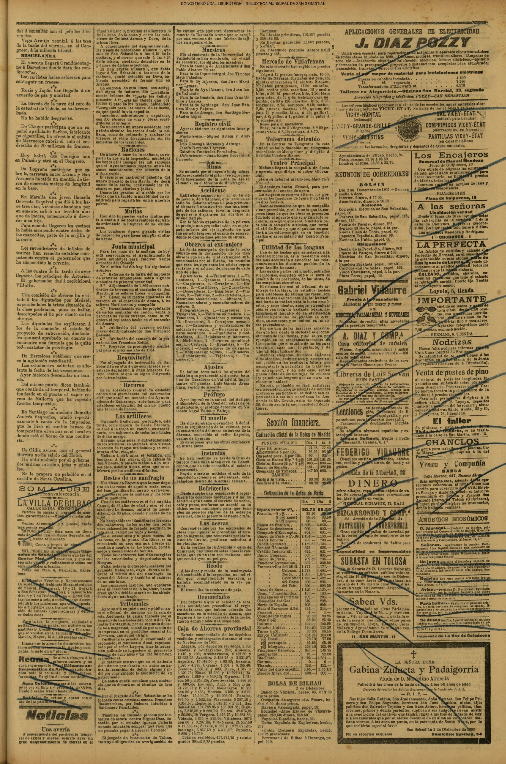 | # DOS PROYECTOS IMPORTANTES EN SAN SEBASTIÁN Se van-á llevar á cabo en la hermosa capital donostiarra dos obras de importancia, gracias á la benéfica institución titulada «La Caja de ahorros municipal», que ha ofrecido al Ayuntamiento de San Sebastián las sumas necesarias para la construcción de casas para obreros, en condiciones que puedan ser arrendadas á éstos por módicos alquileres, que al cabo de cierto número de afios, suficientes para resarcirse del capital, les hagan propietarios de la casa, y para la ejecución del proyectado puente que substituya al actual de madera que une con la estación del Norte el paseo de los Fueros, construcción verdaderamente necesaria, dado el desarrollo que la población va adquiriendo por los terrenos de Amara y las dificultades de la circulación, cada día más creciente, por la única vía hoy útil para i-nir al casco de la ciudad con la importantísima barriada de más allá del Urumea. ("LA CONSTRUCCIÓN MODERNA". 01.09.1903. núm.16)(p.17) |