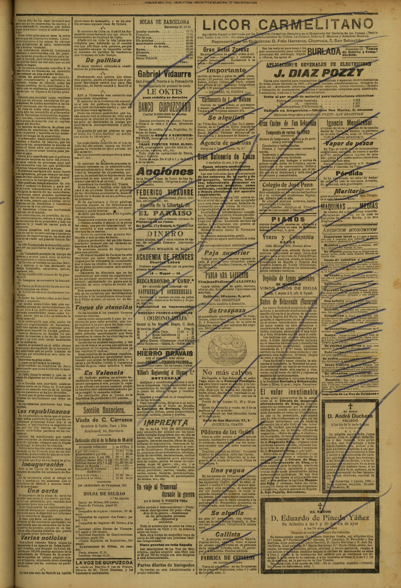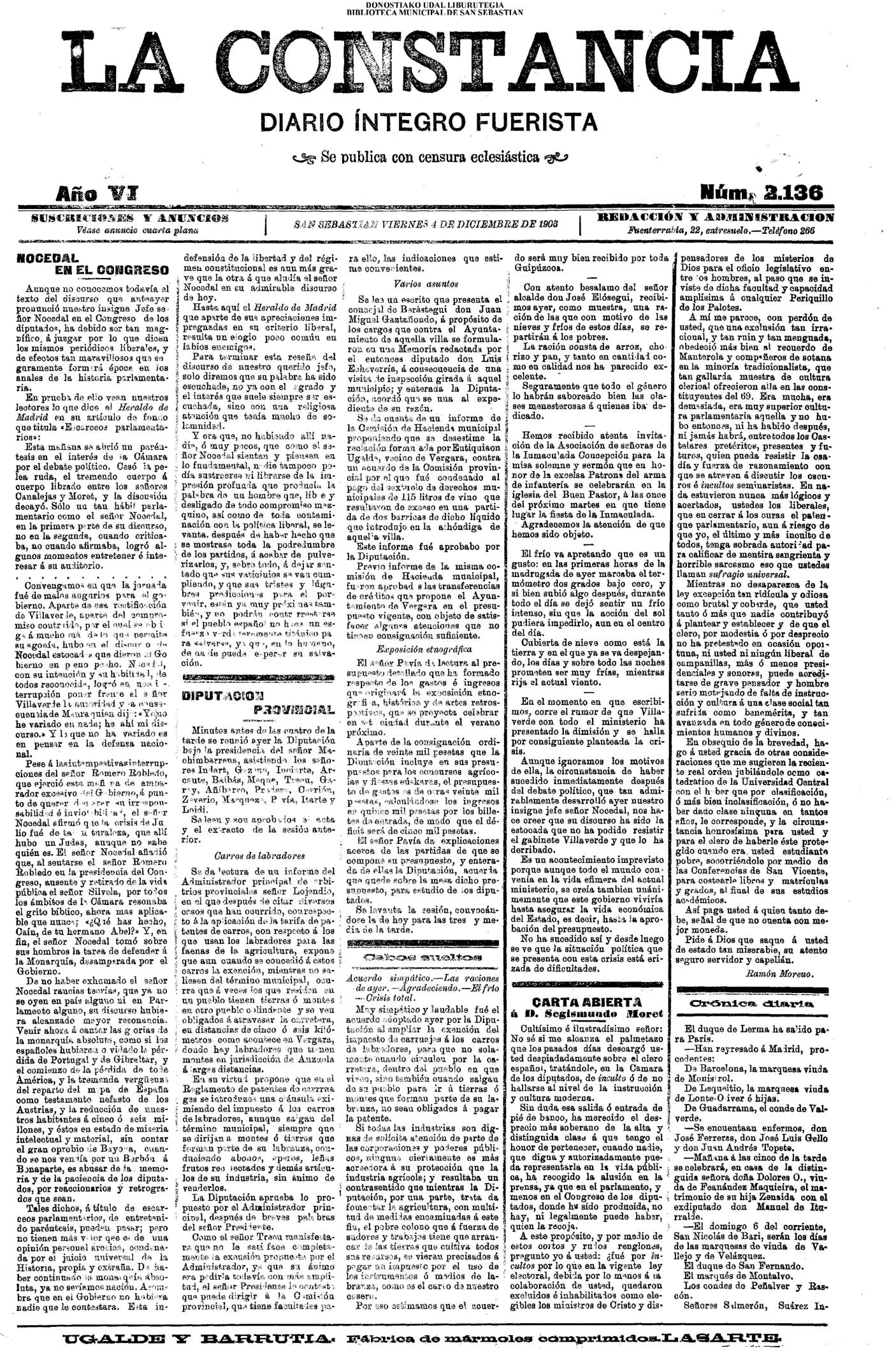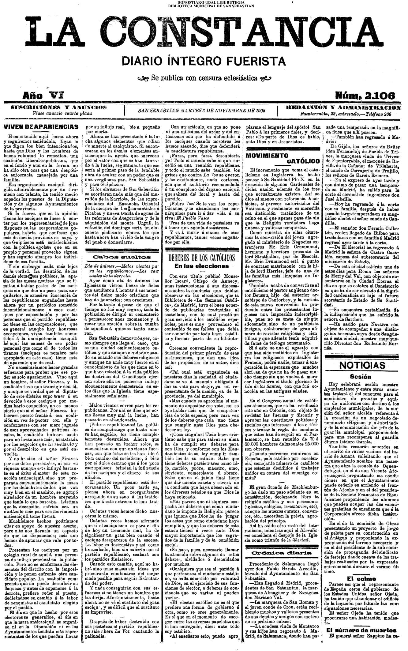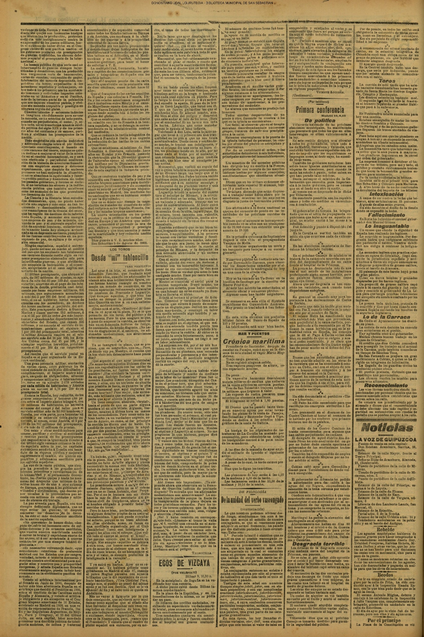 | # DOS PROYECTOS IMPORTANTES EN SAN SEBASTIÁN Se van-á llevar á cabo en la hermosa capital donostiarra dos obras de importancia, gracias á la benéfica institución titulada «La Caja de ahorros municipal», que ha ofrecido al Ayuntamiento de San Sebastián las sumas necesarias para la construcción de casas para obreros, en condiciones que puedan ser arrendadas á éstos por módicos alquileres, que al cabo de cierto número de afios, suficientes para resarcirse del capital, les hagan propietarios de la casa, y para la ejecución del proyectado puente que substituya al actual de madera que une con la estación del Norte el paseo de los Fueros, construcción verdaderamente necesaria, dado el desarrollo que la población va adquiriendo por los terrenos de Amara y las dificultades de la circulación, cada día más creciente, por la única vía hoy útil para i-nir al casco de la ciudad con la importantísima barriada de más allá del Urumea. ("LA CONSTRUCCIÓN MODERNA". 01.09.1903. núm.16)(p.17) |