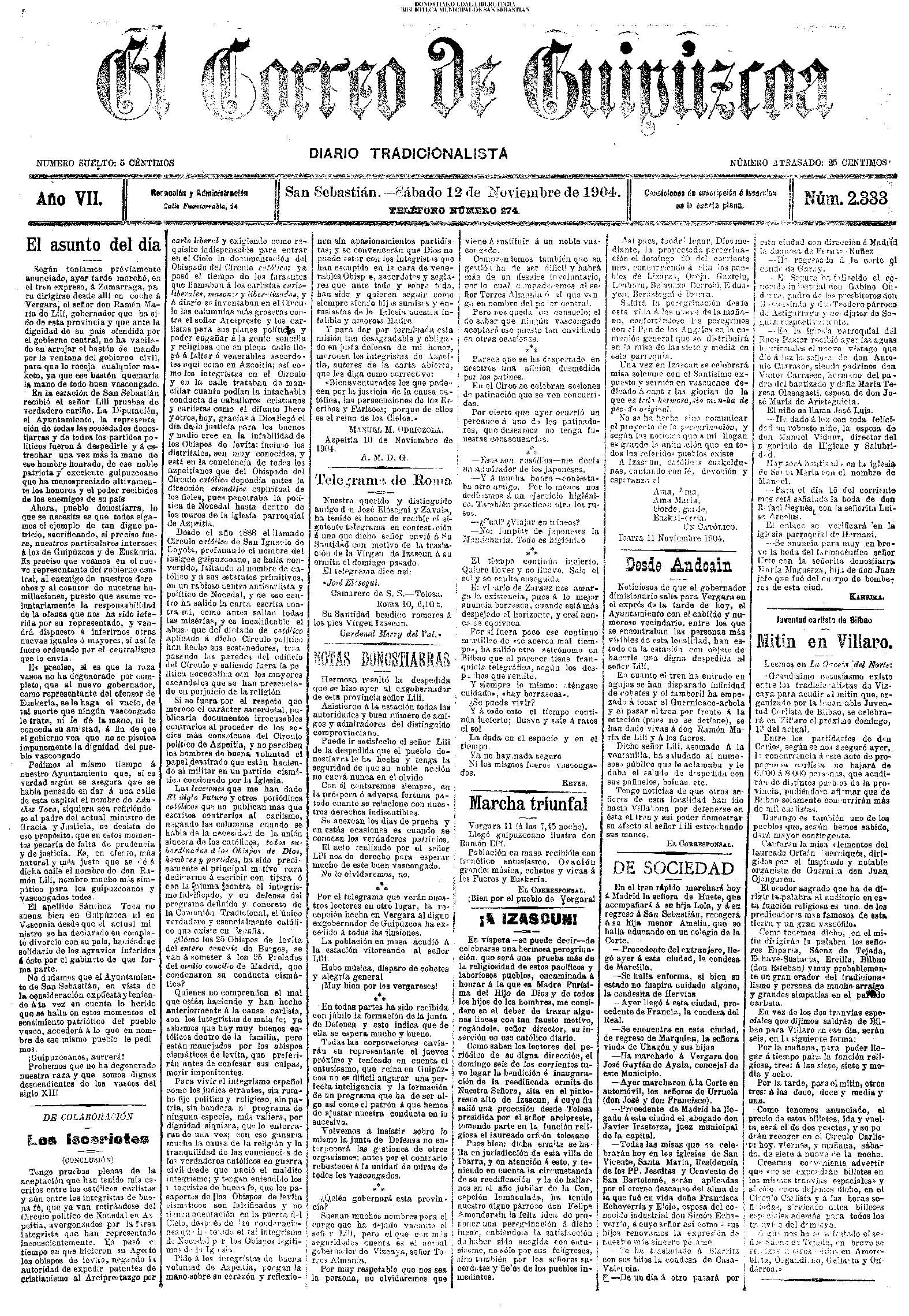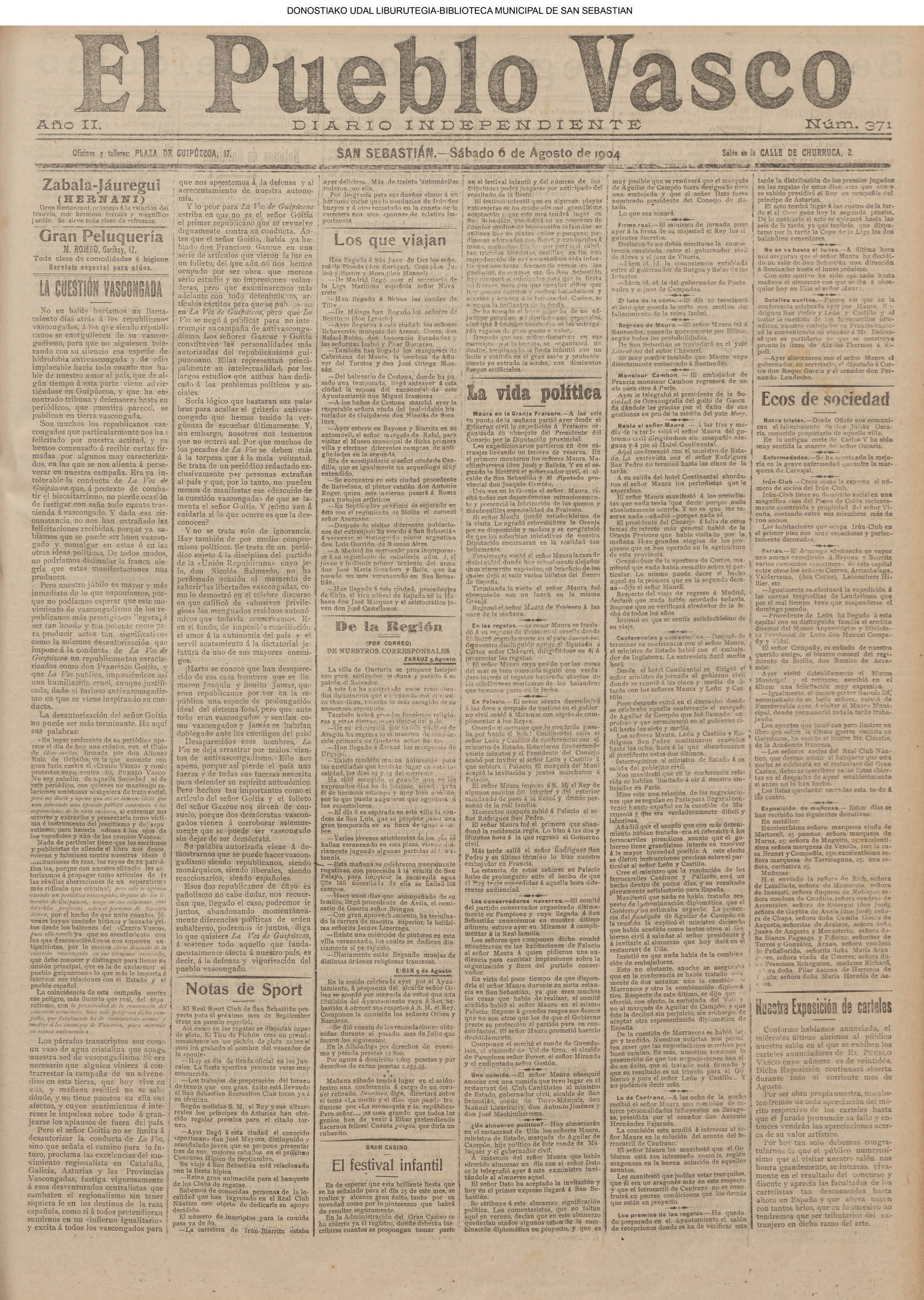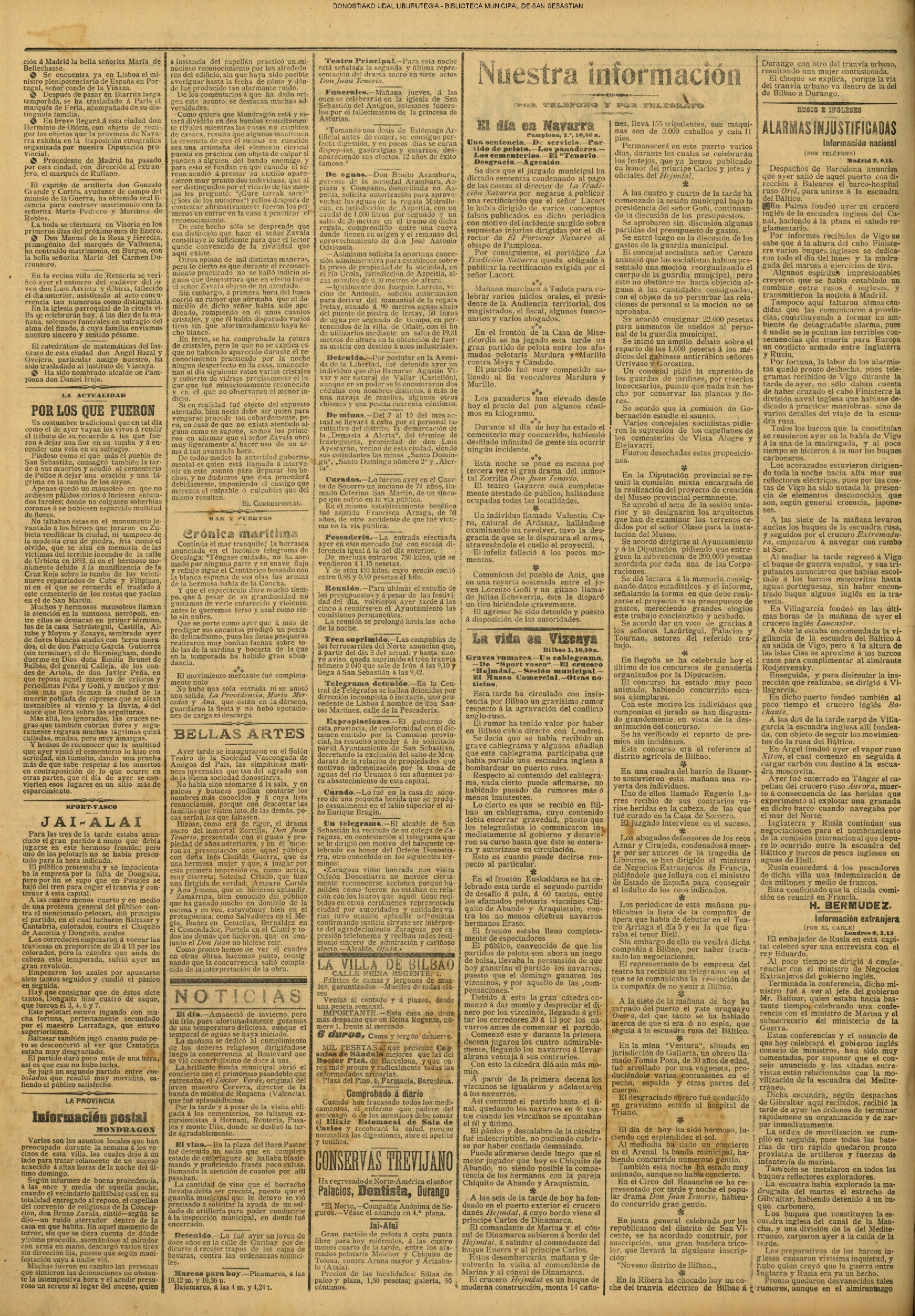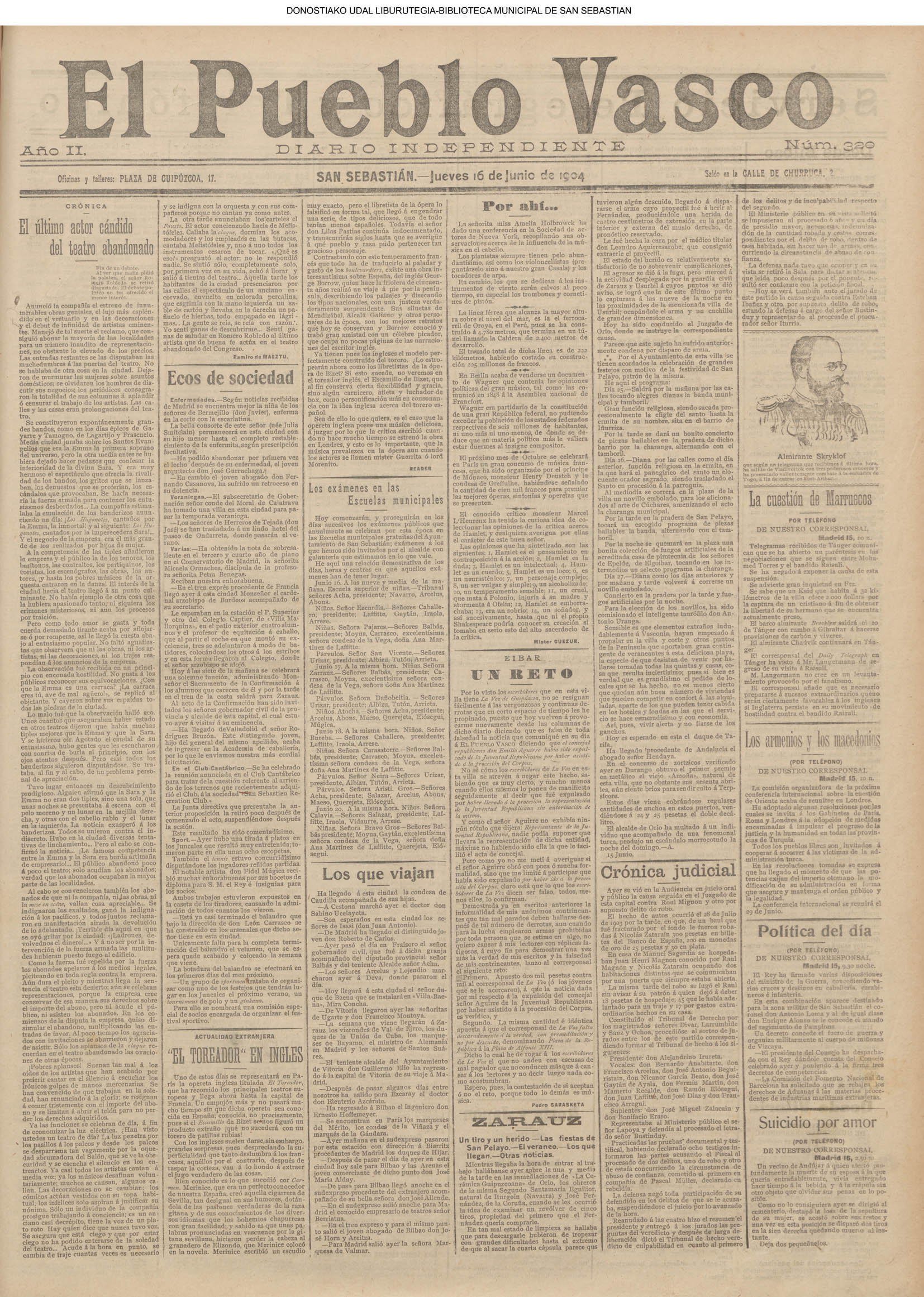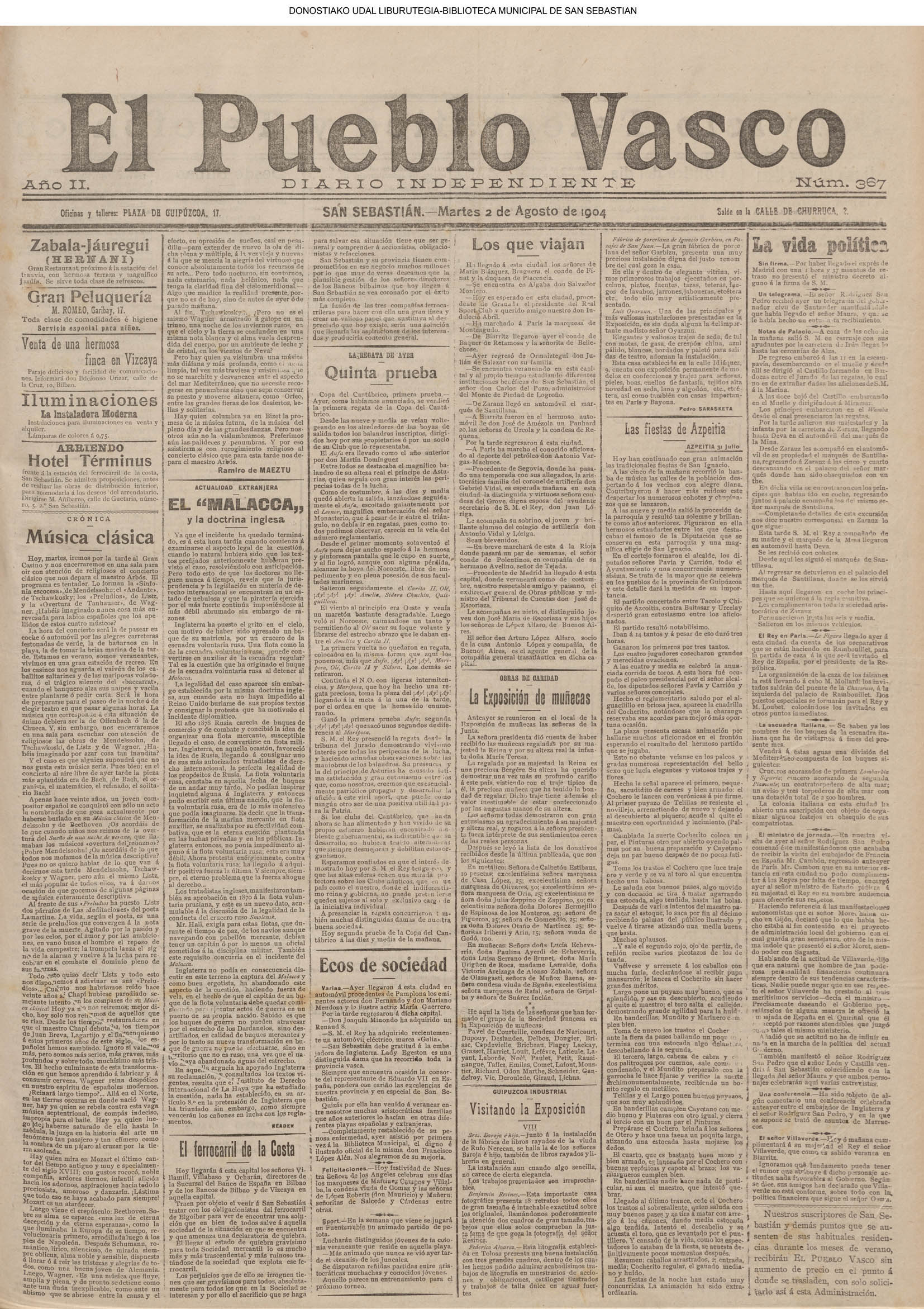 Construcción de un puente.—D. Ramón Cendoya, vecino de Hernani, ha solicitado licencia para construir un puente de fábrica sobre el río Urola, en el término de Cestona, para poner en comunicación la carretera de este pueblo á Azpeitia con la casa de máquinas que en la margen izquierda del río se va á edificar por cuenta de don Gracián Alberdi. (La Construcción moderna. 30/7/1904, n.º 14)(22)