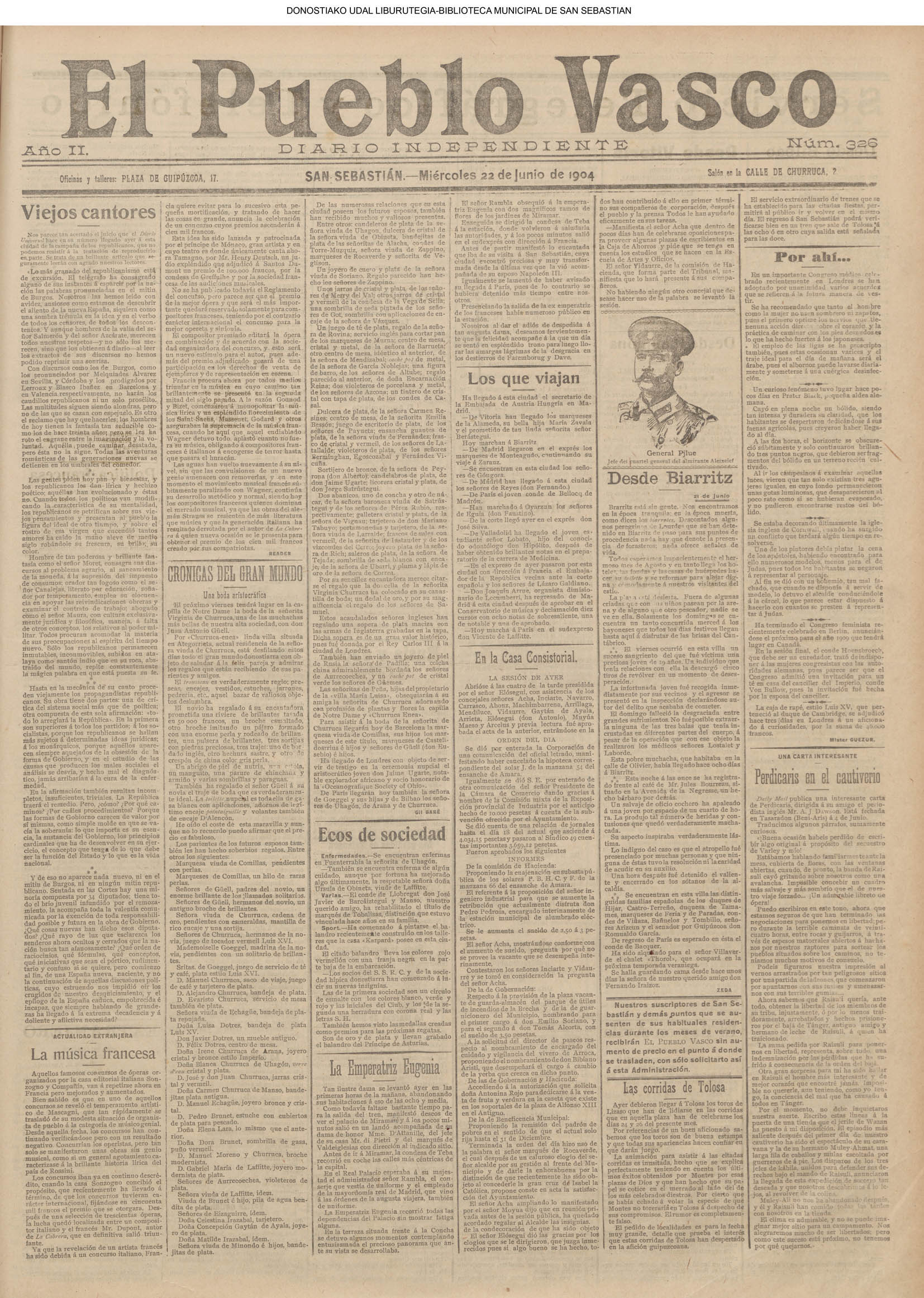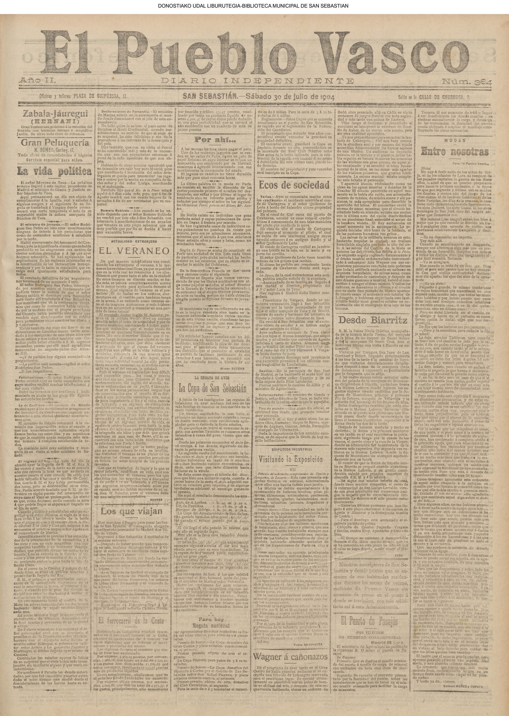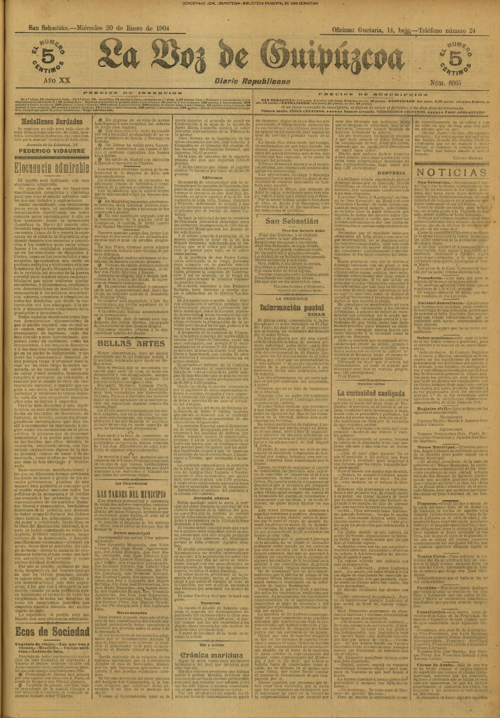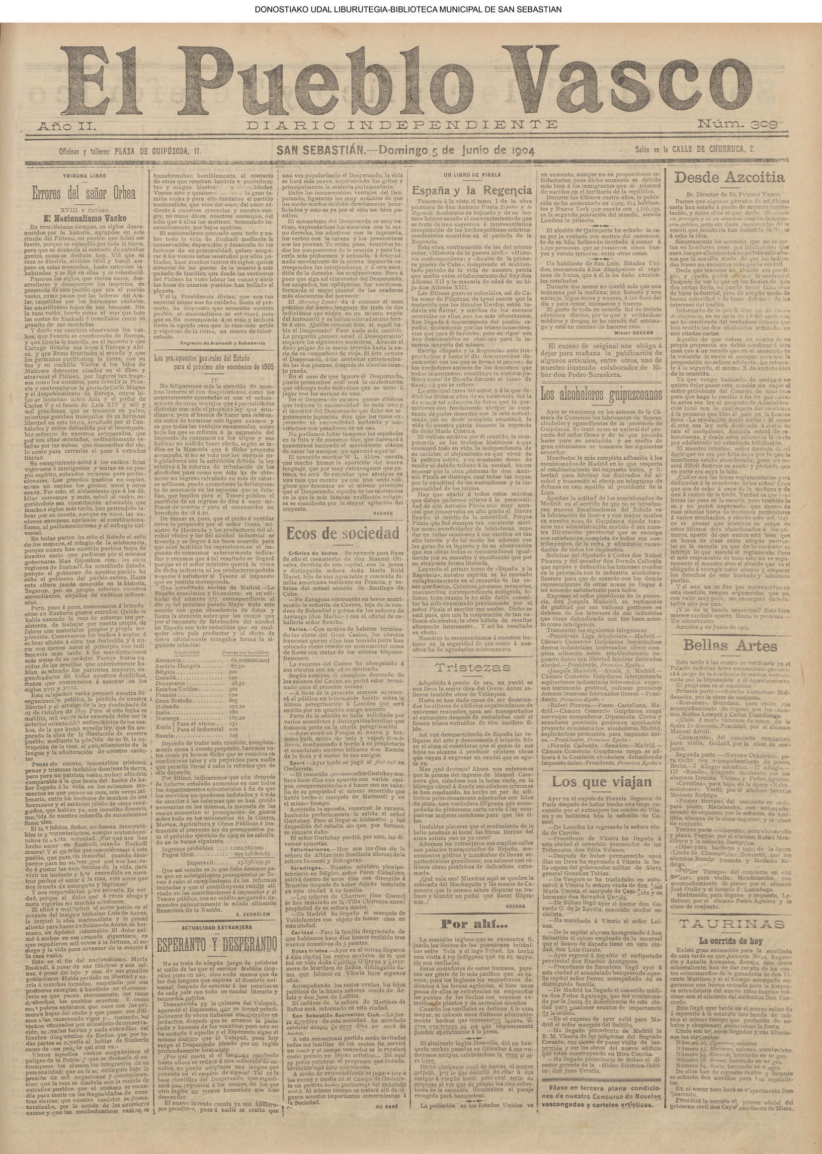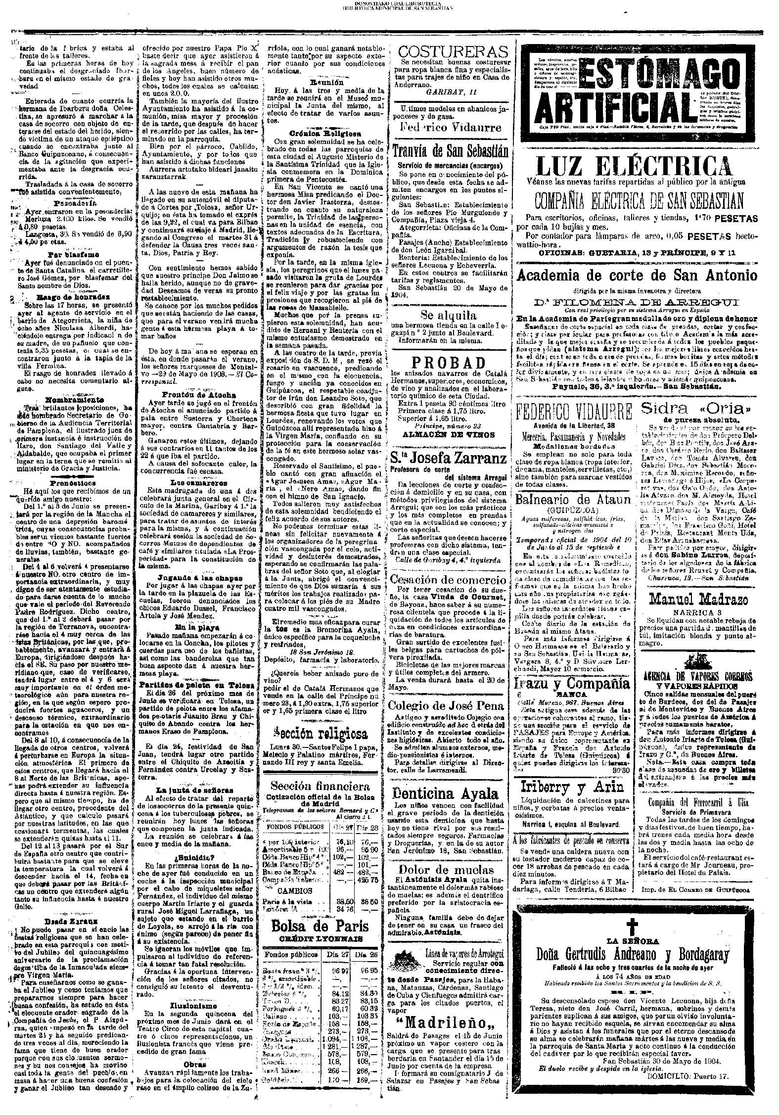 Construcción de un puente.—D. Ramón Cendoya, vecino de Hernani, ha solicitado licencia para construir un puente de fábrica sobre el río Urola, en el término de Cestona, para poner en comunicación la carretera de este pueblo á Azpeitia con la casa de máquinas que en la margen izquierda del río se va á edificar por cuenta de don Gracián Alberdi. (La Construcción moderna. 30/7/1904, n.º 14)(22)