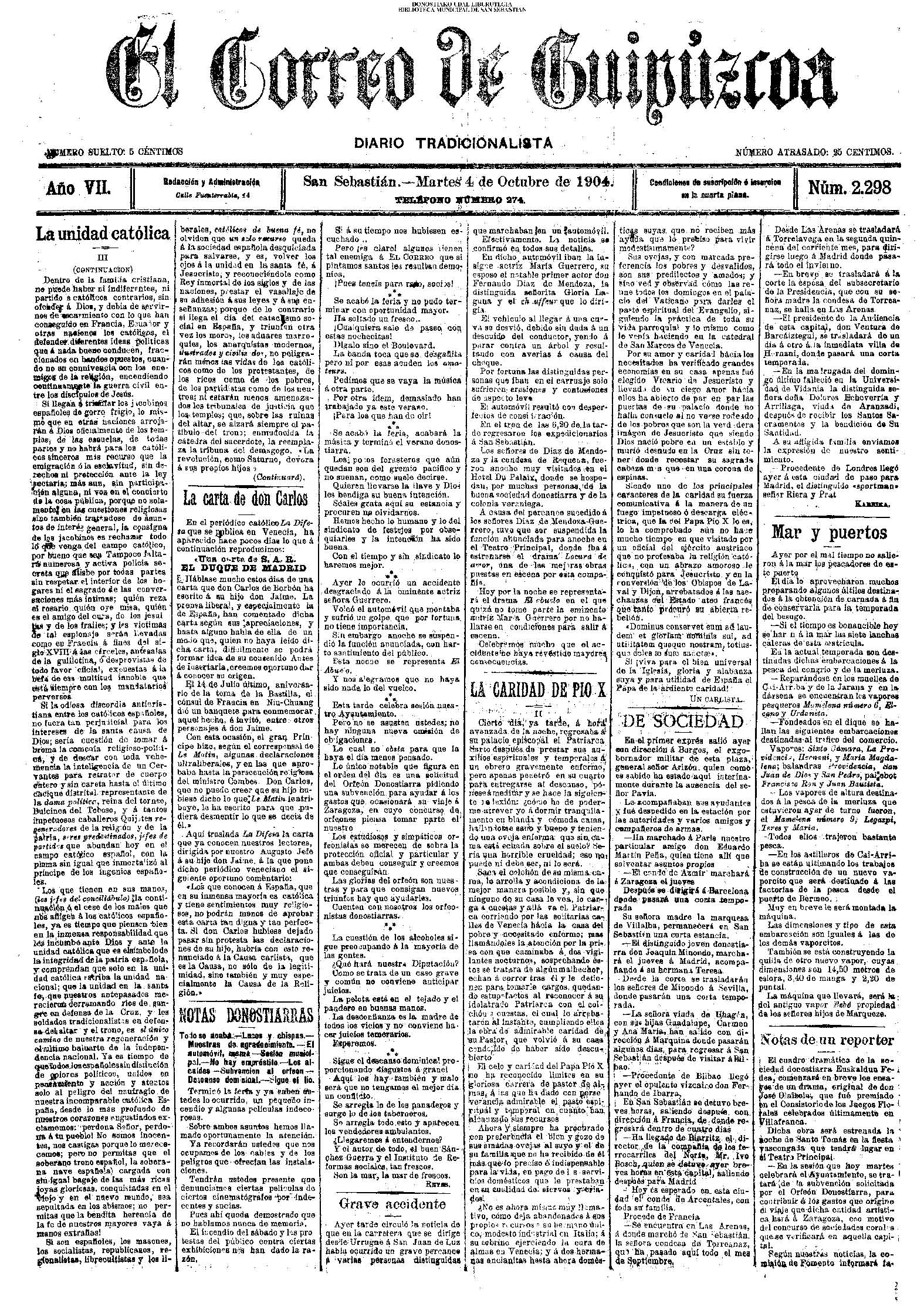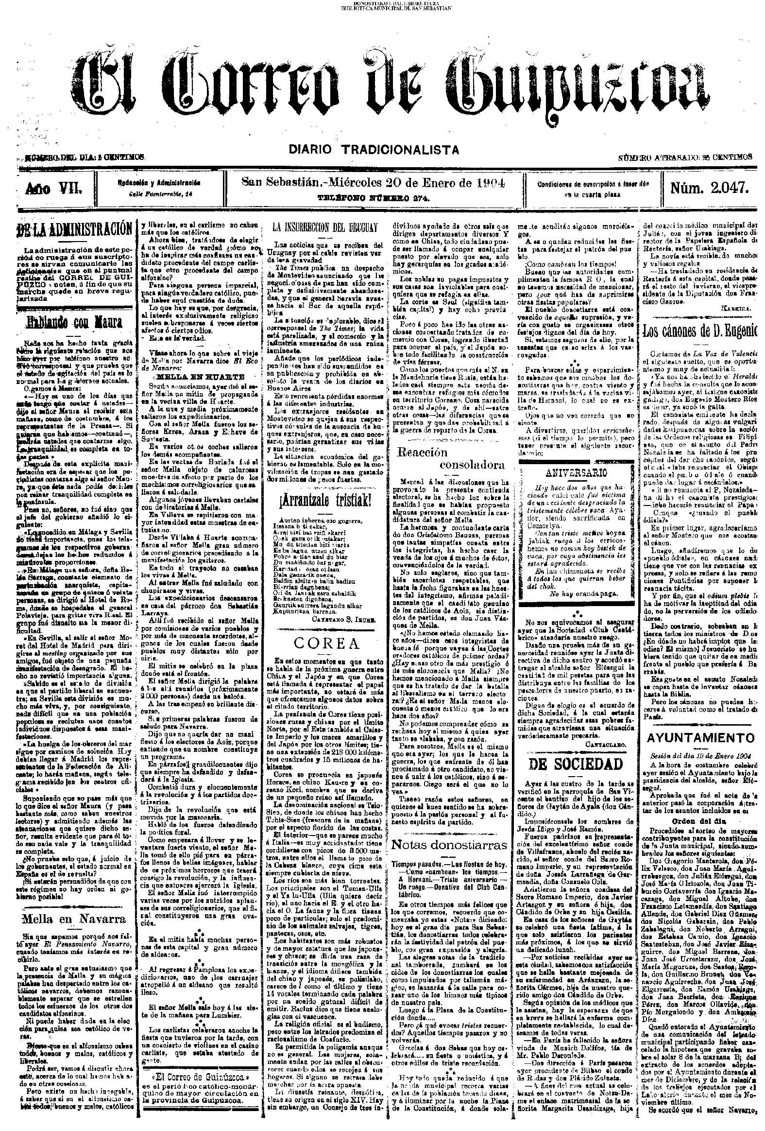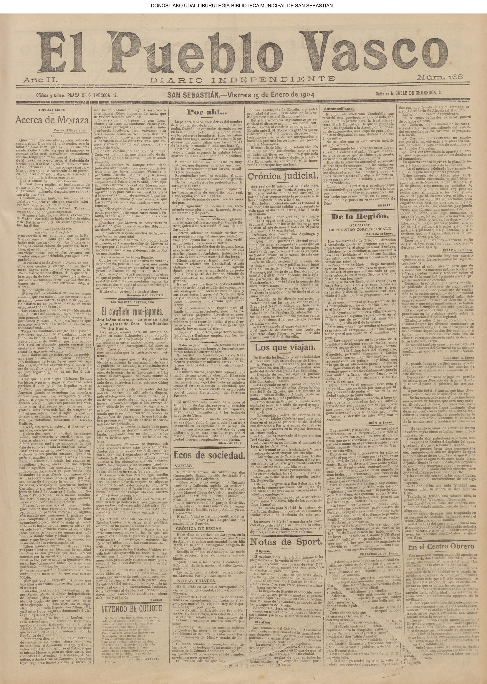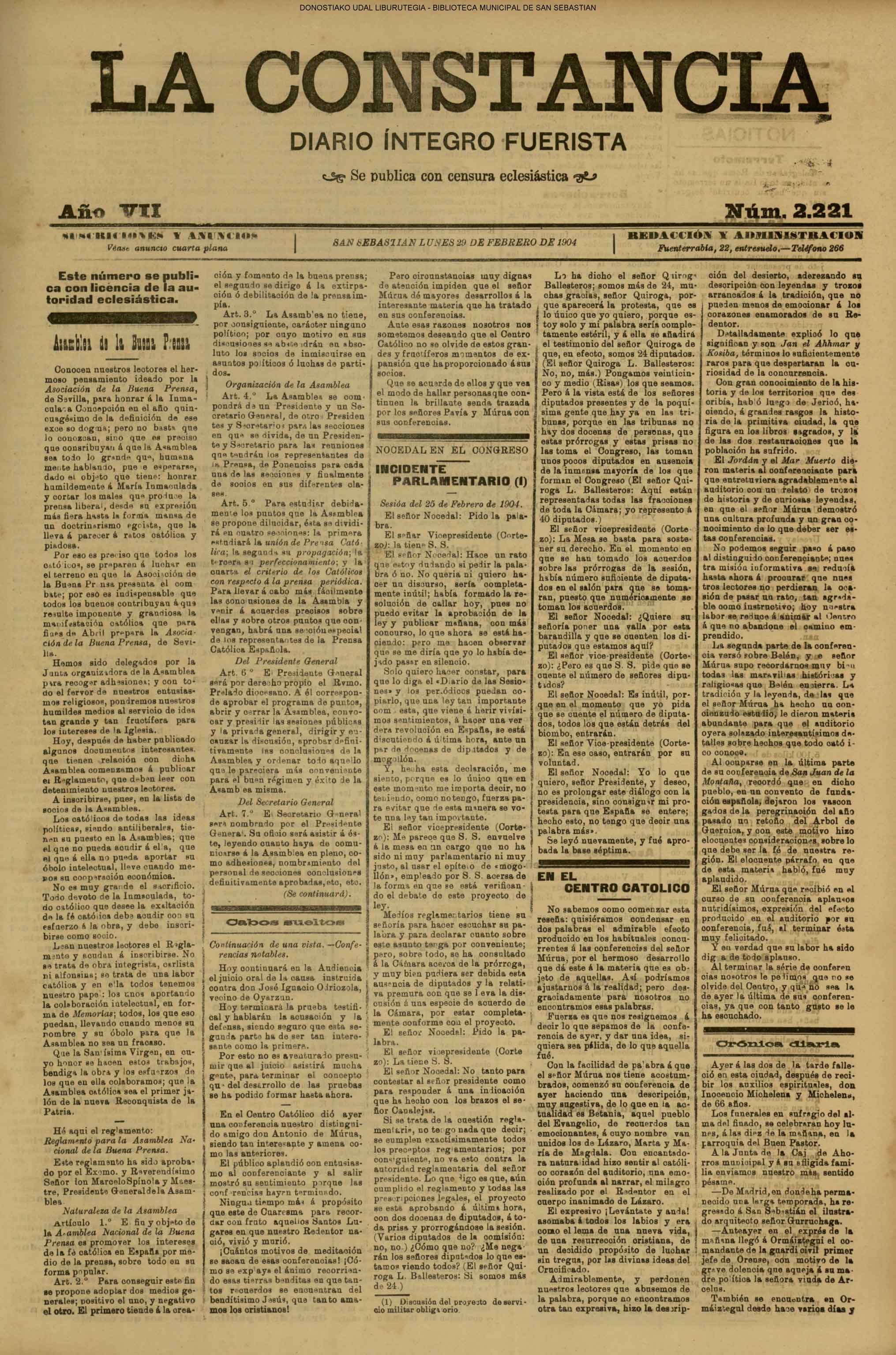Construcción de un puente.—D. Ramón Cendoya, vecino de Hernani, ha solicitado licencia para construir un puente de fábrica sobre el río Urola, en el término de Cestona, para poner en comunicación la carretera de este pueblo á Azpeitia con la casa de máquinas que en la margen izquierda del río se va á edificar por cuenta de don Gracián Alberdi. (La Construcción moderna. 30/7/1904, n.º 14)(22)