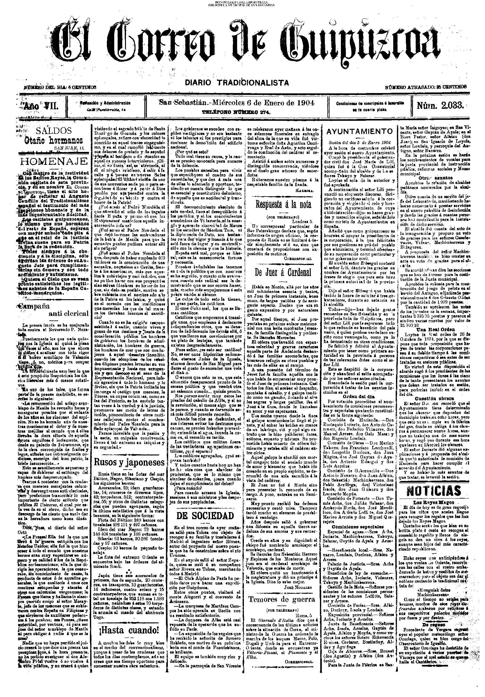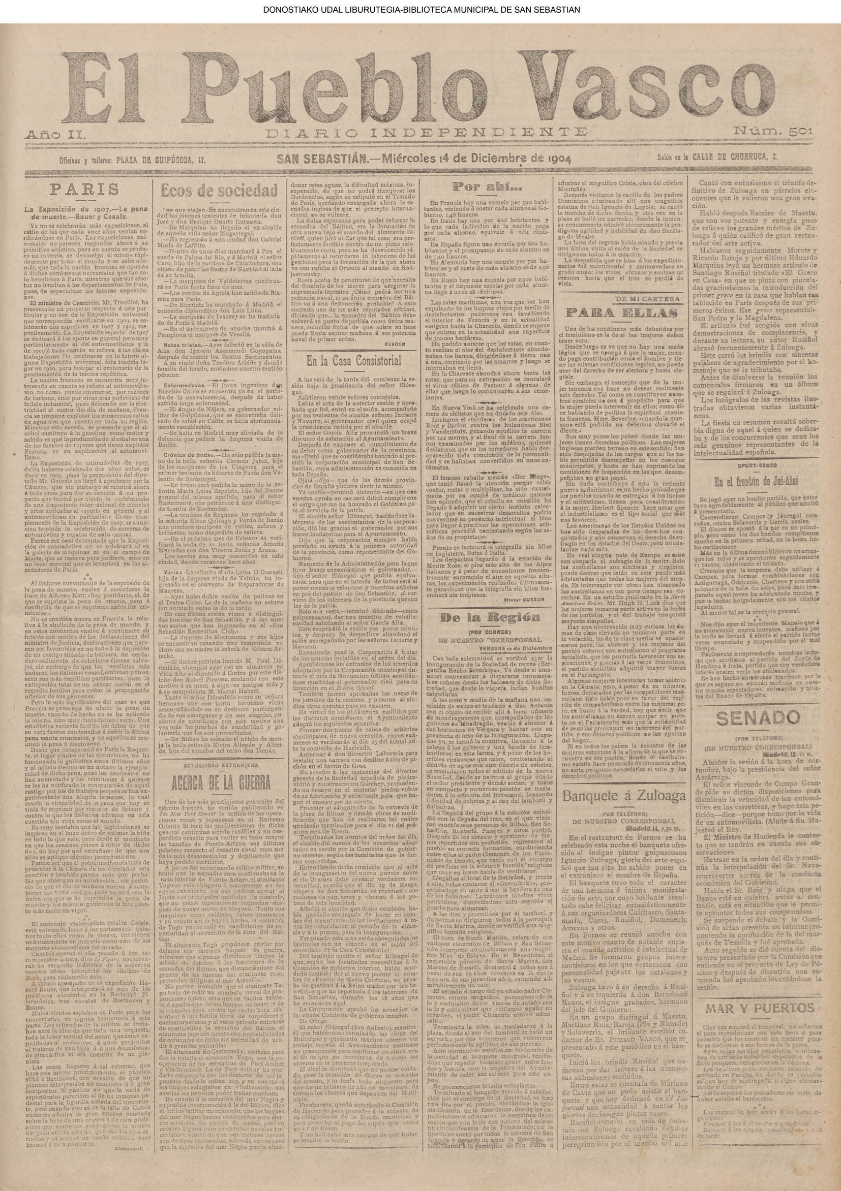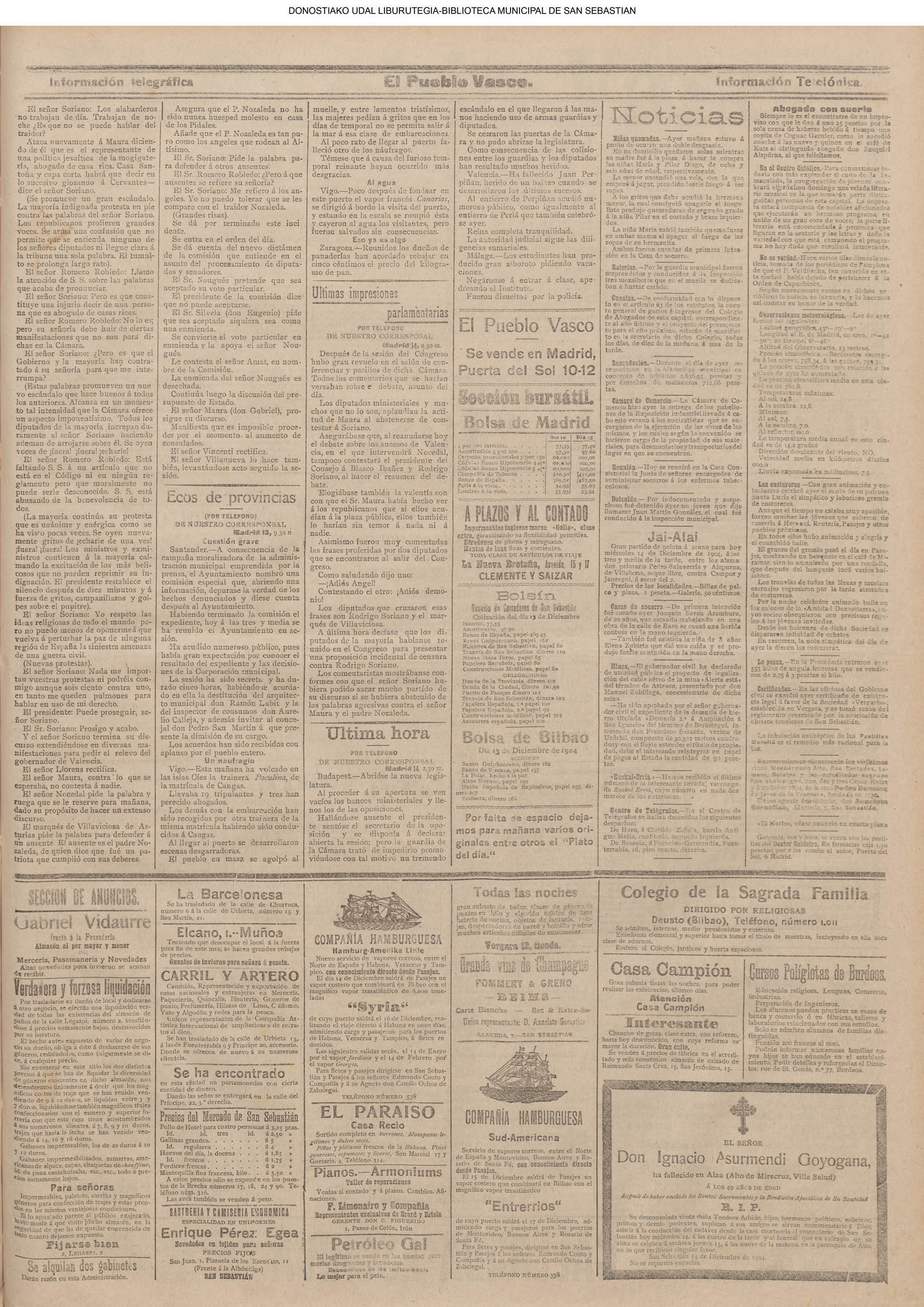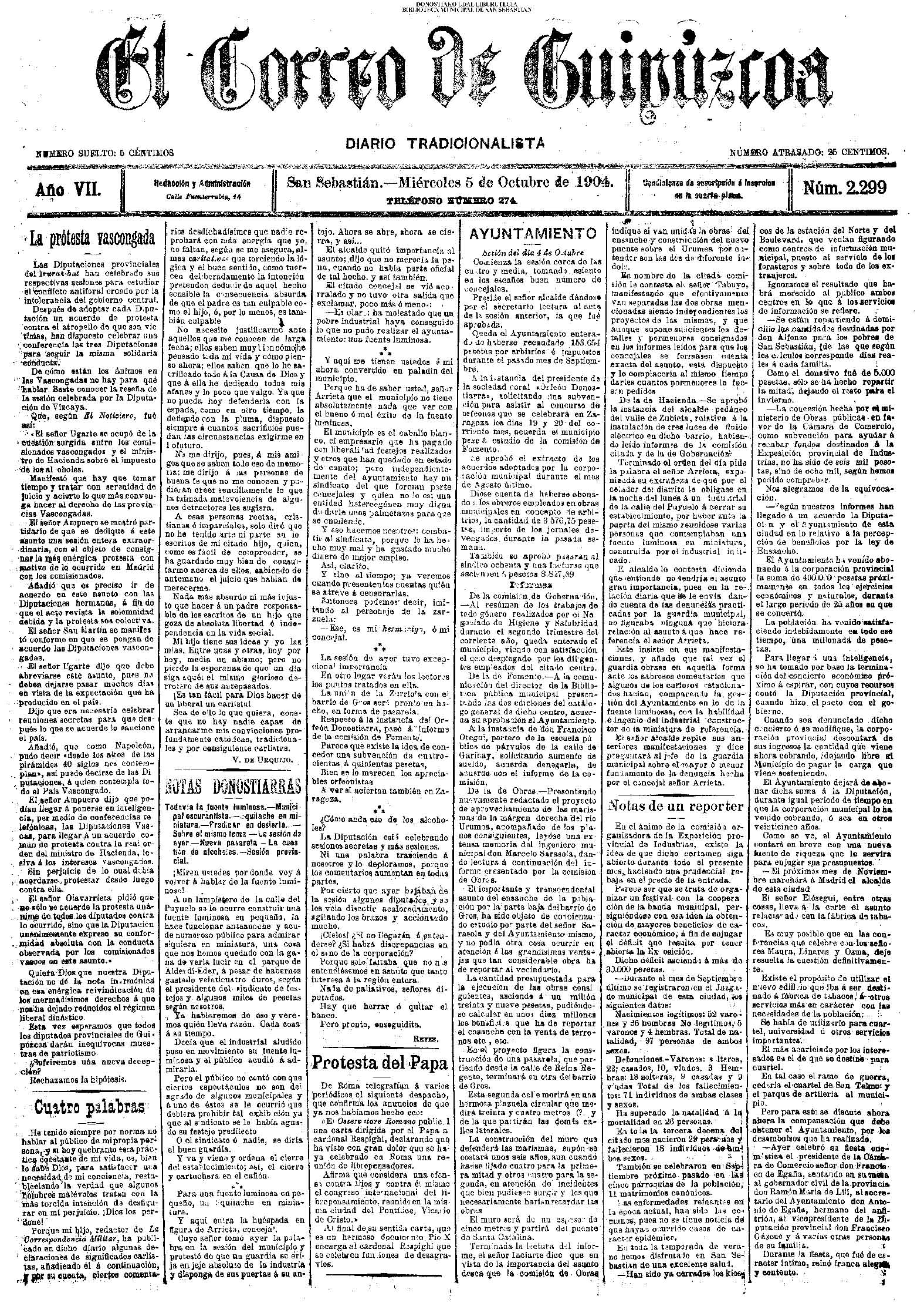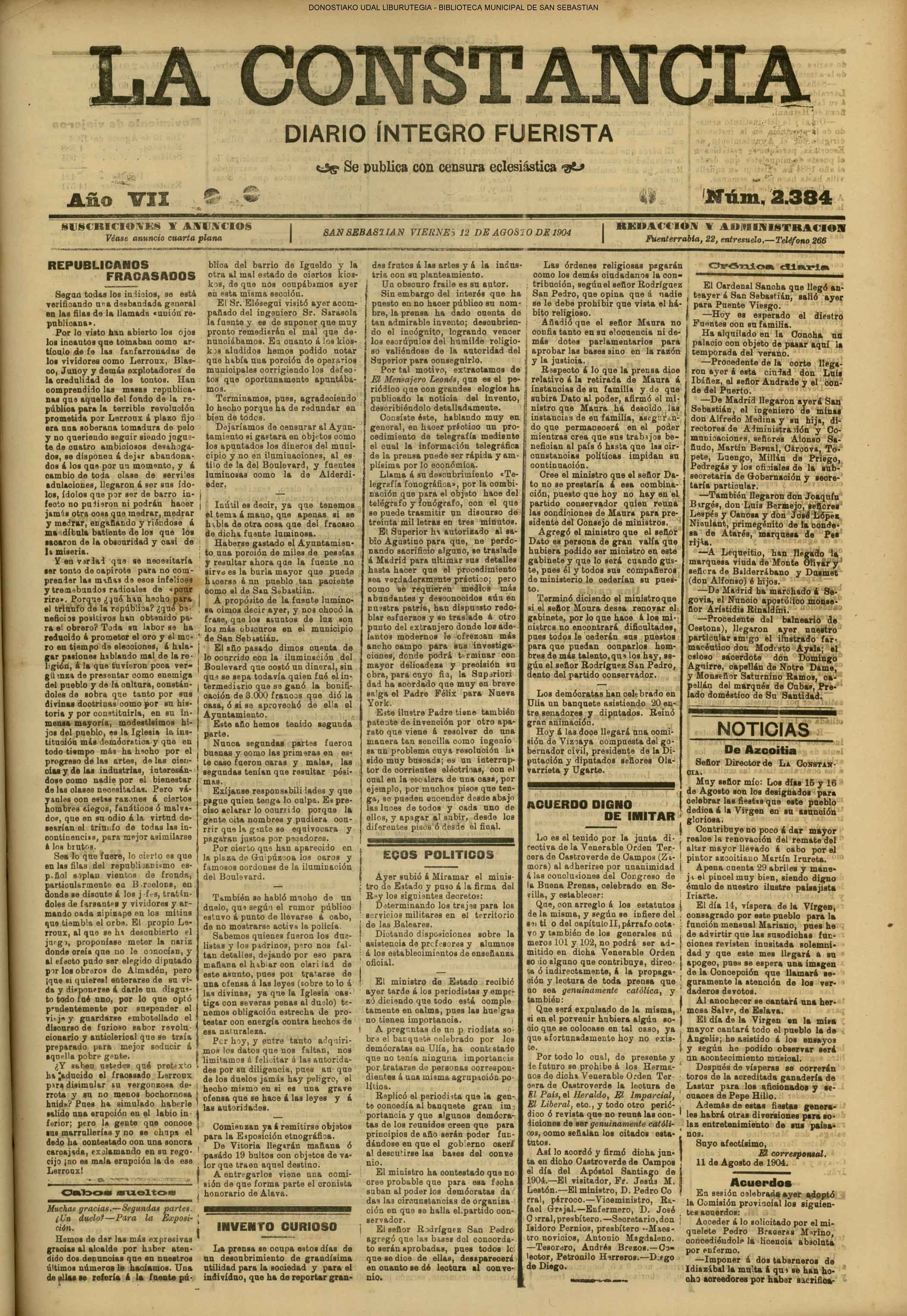 Construcción de un puente.—D. Ramón Cendoya, vecino de Hernani, ha solicitado licencia para construir un puente de fábrica sobre el río Urola, en el término de Cestona, para poner en comunicación la carretera de este pueblo á Azpeitia con la casa de máquinas que en la margen izquierda del río se va á edificar por cuenta de don Gracián Alberdi. (La Construcción moderna. 30/7/1904, n.º 14)(22)