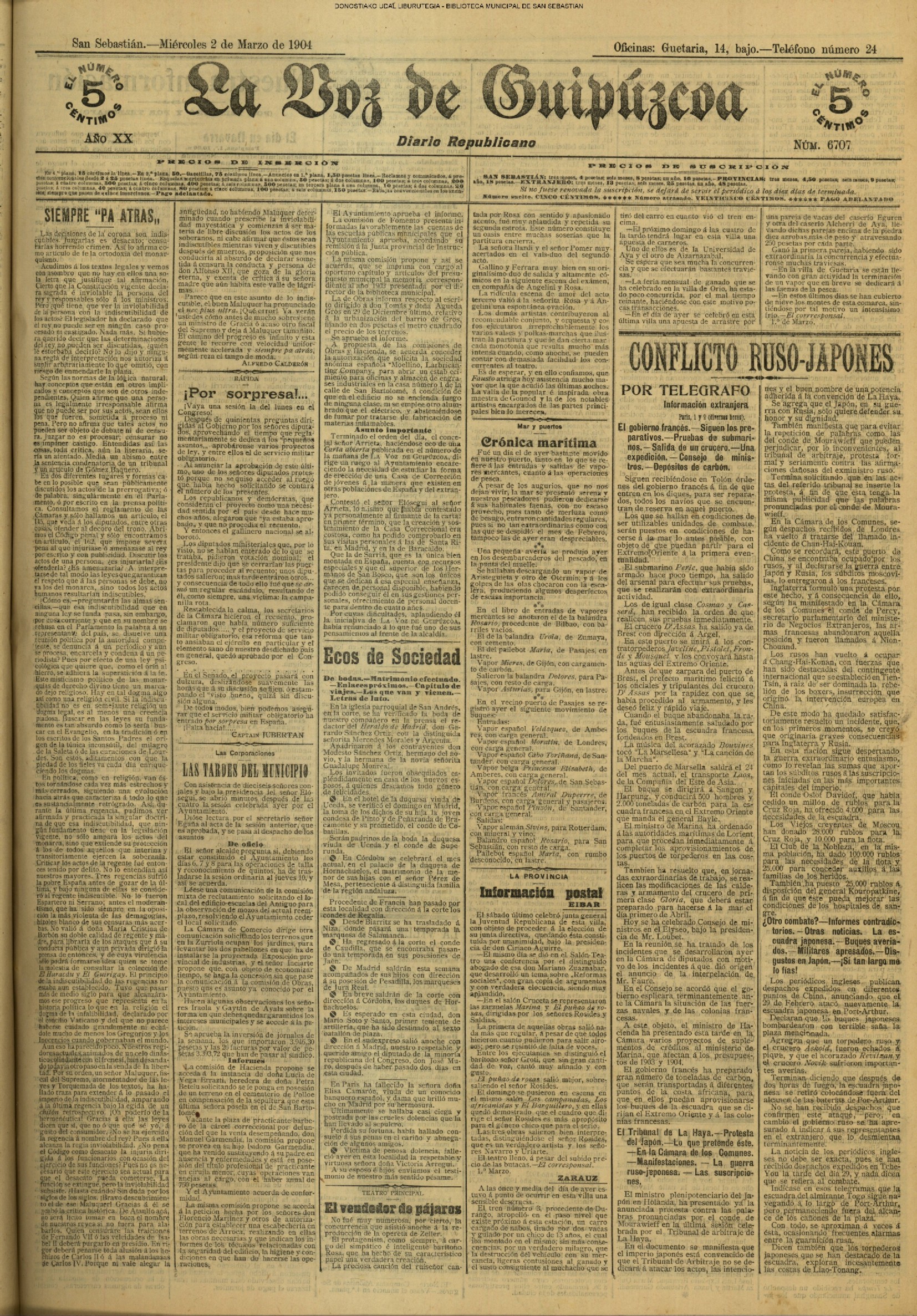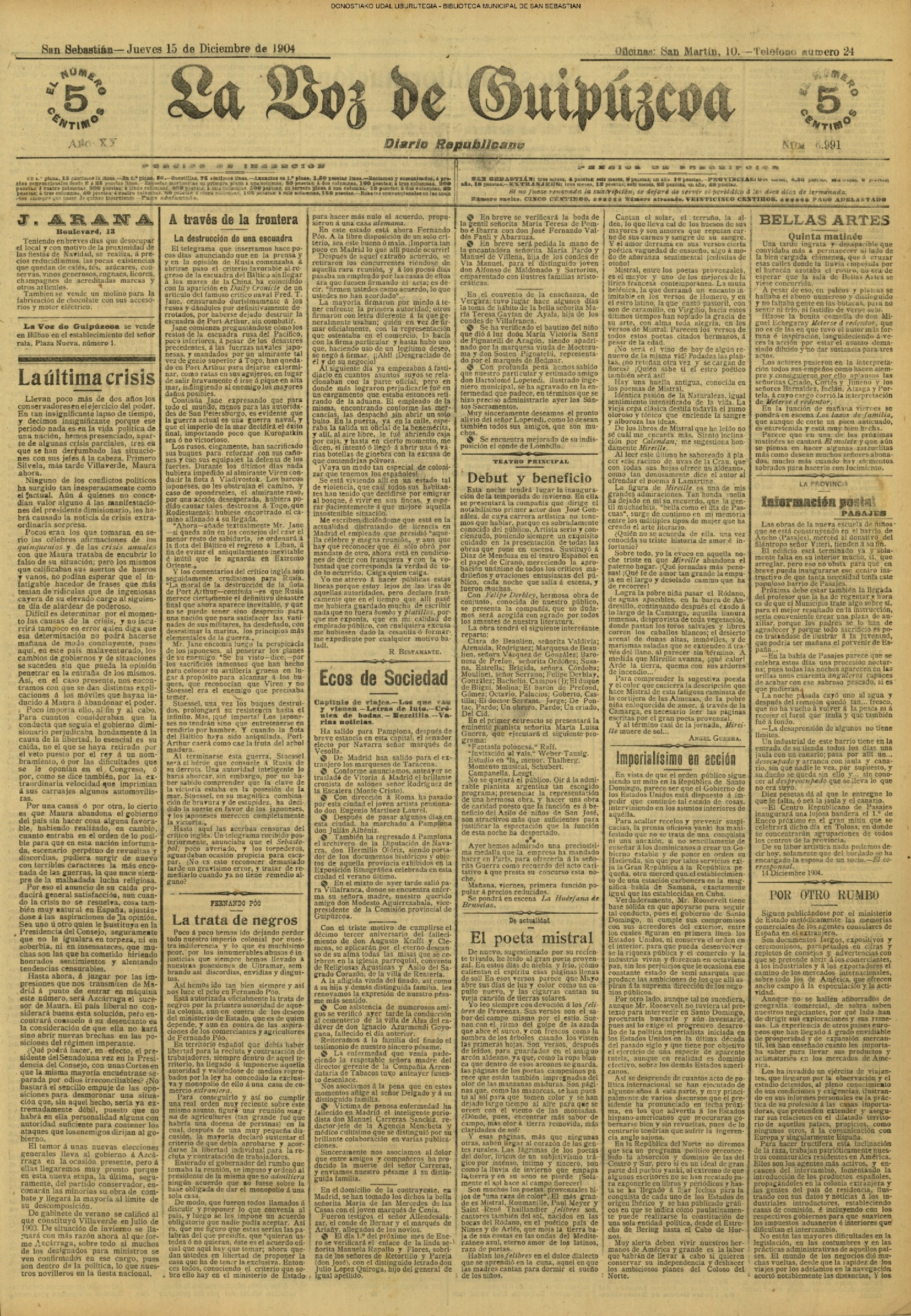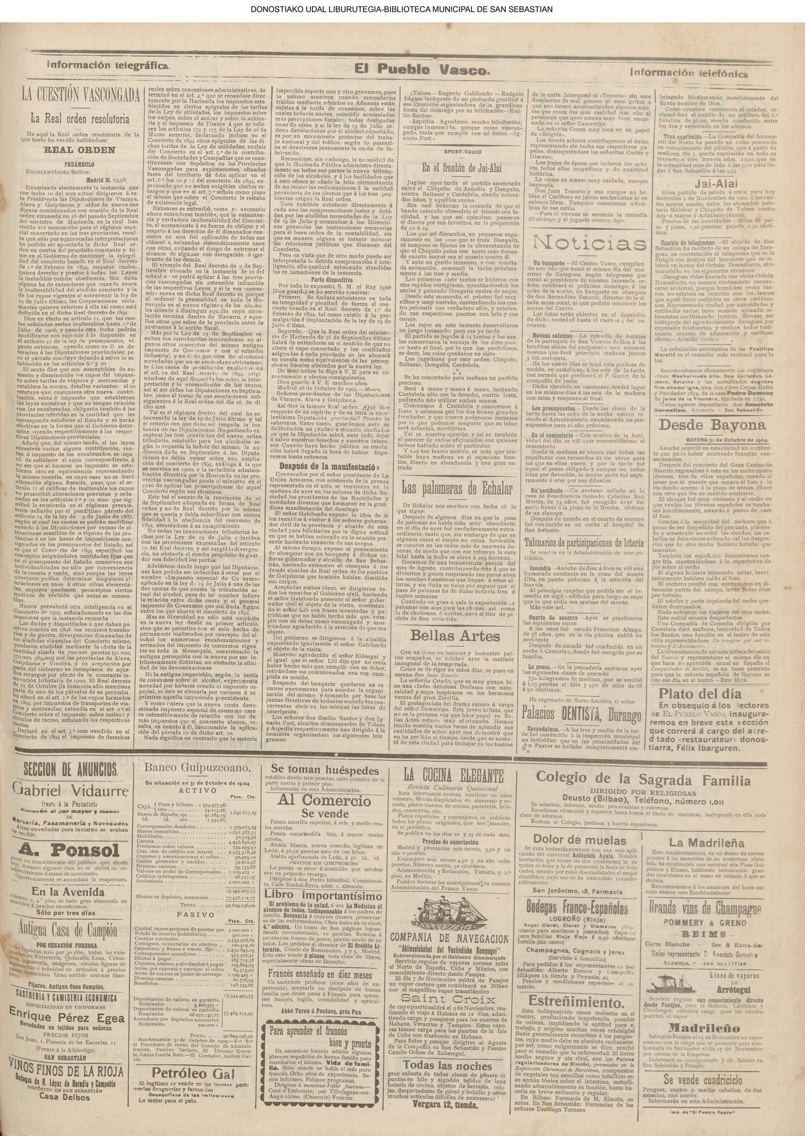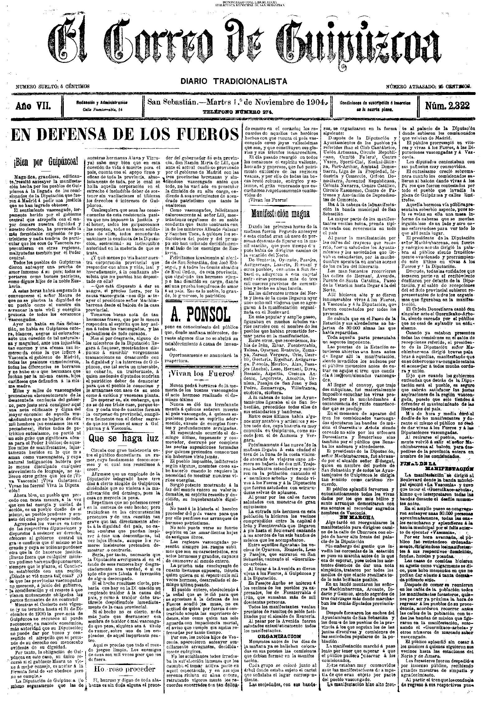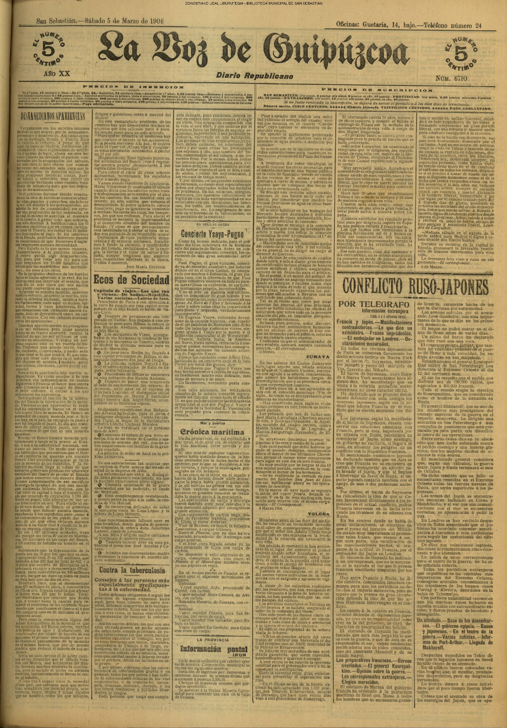 Construcción de un puente.—D. Ramón Cendoya, vecino de Hernani, ha solicitado licencia para construir un puente de fábrica sobre el río Urola, en el término de Cestona, para poner en comunicación la carretera de este pueblo á Azpeitia con la casa de máquinas que en la margen izquierda del río se va á edificar por cuenta de don Gracián Alberdi. (La Construcción moderna. 30/7/1904, n.º 14)(22)