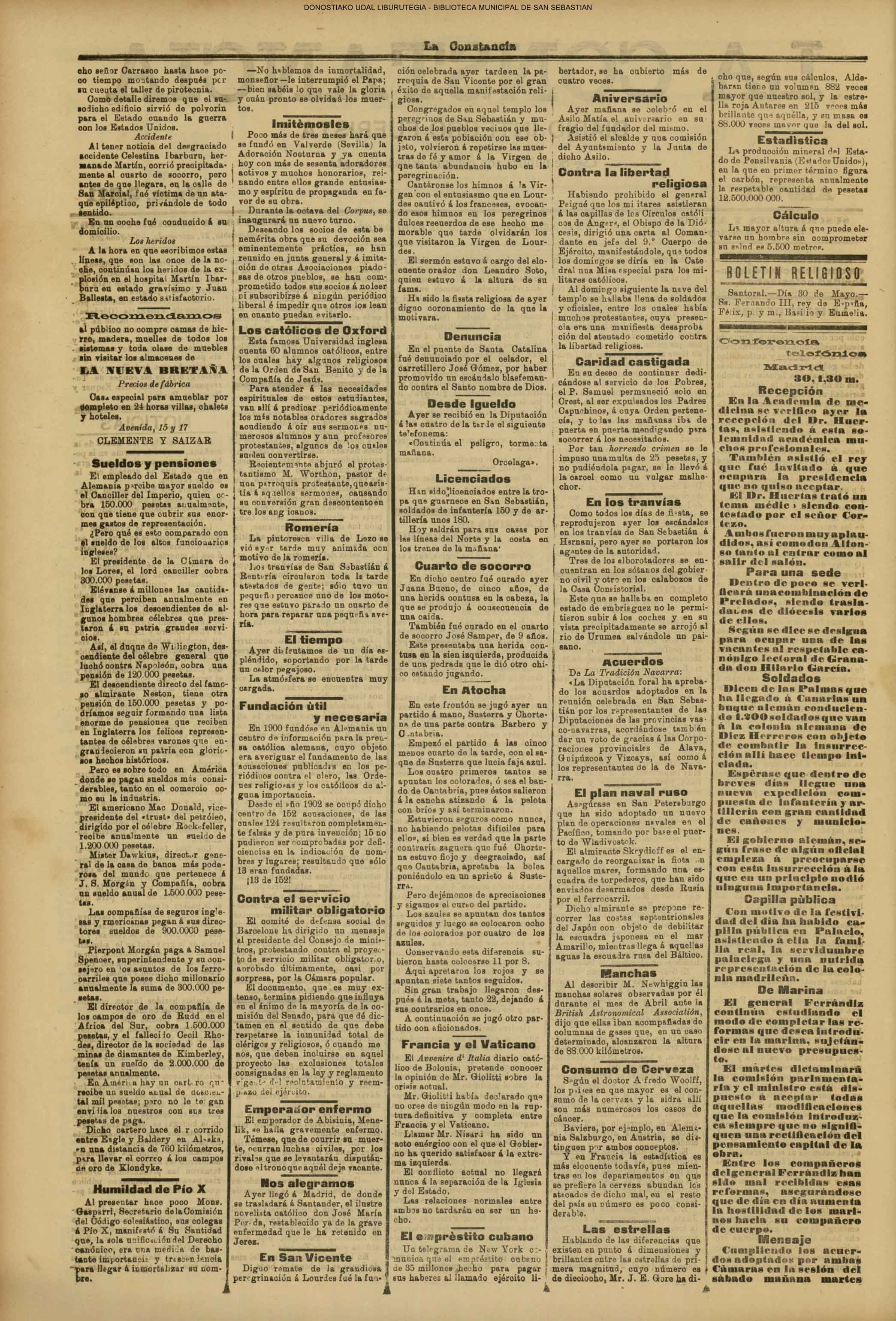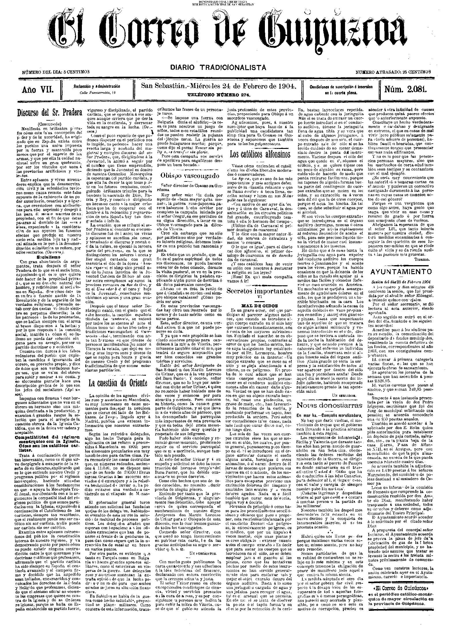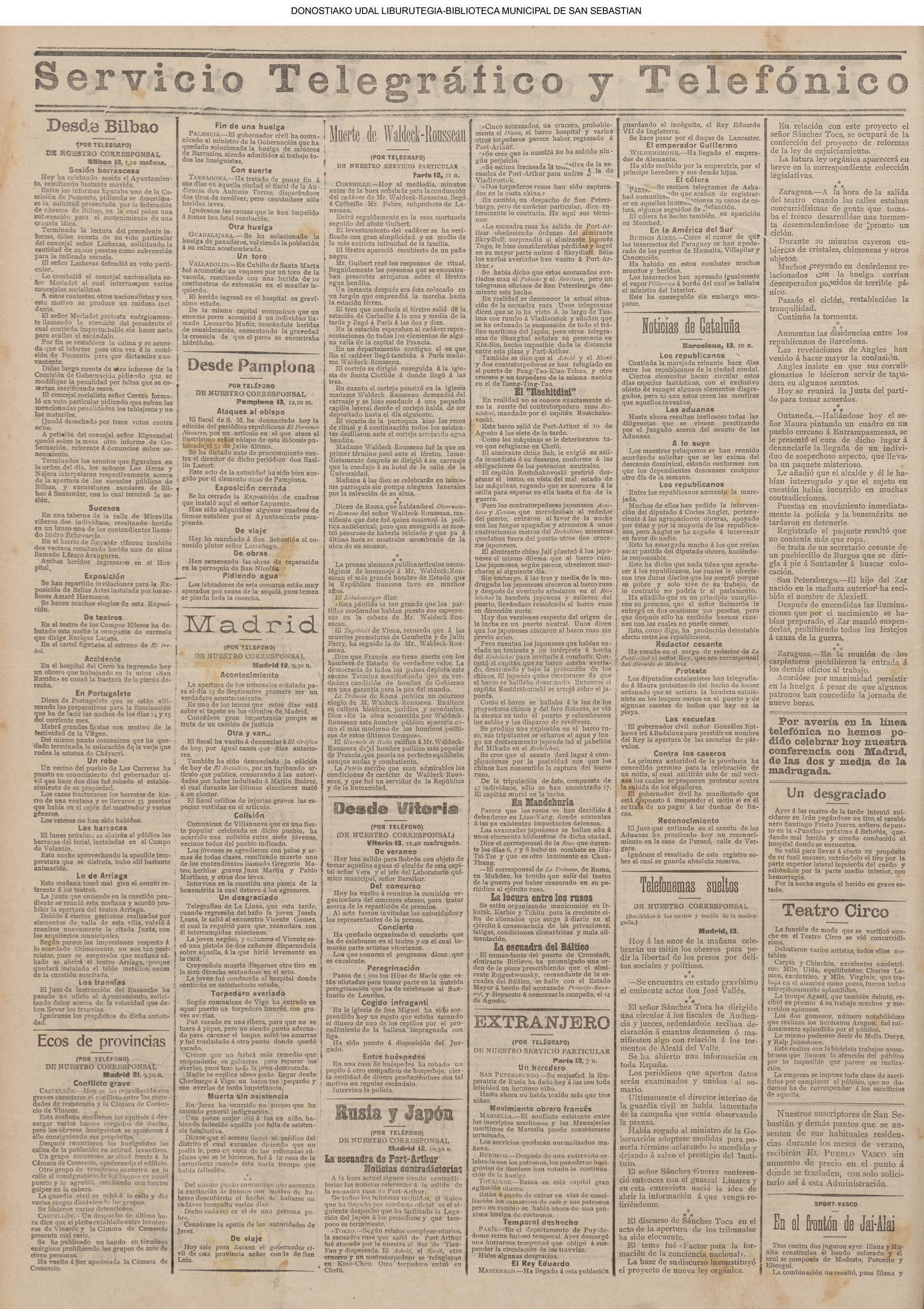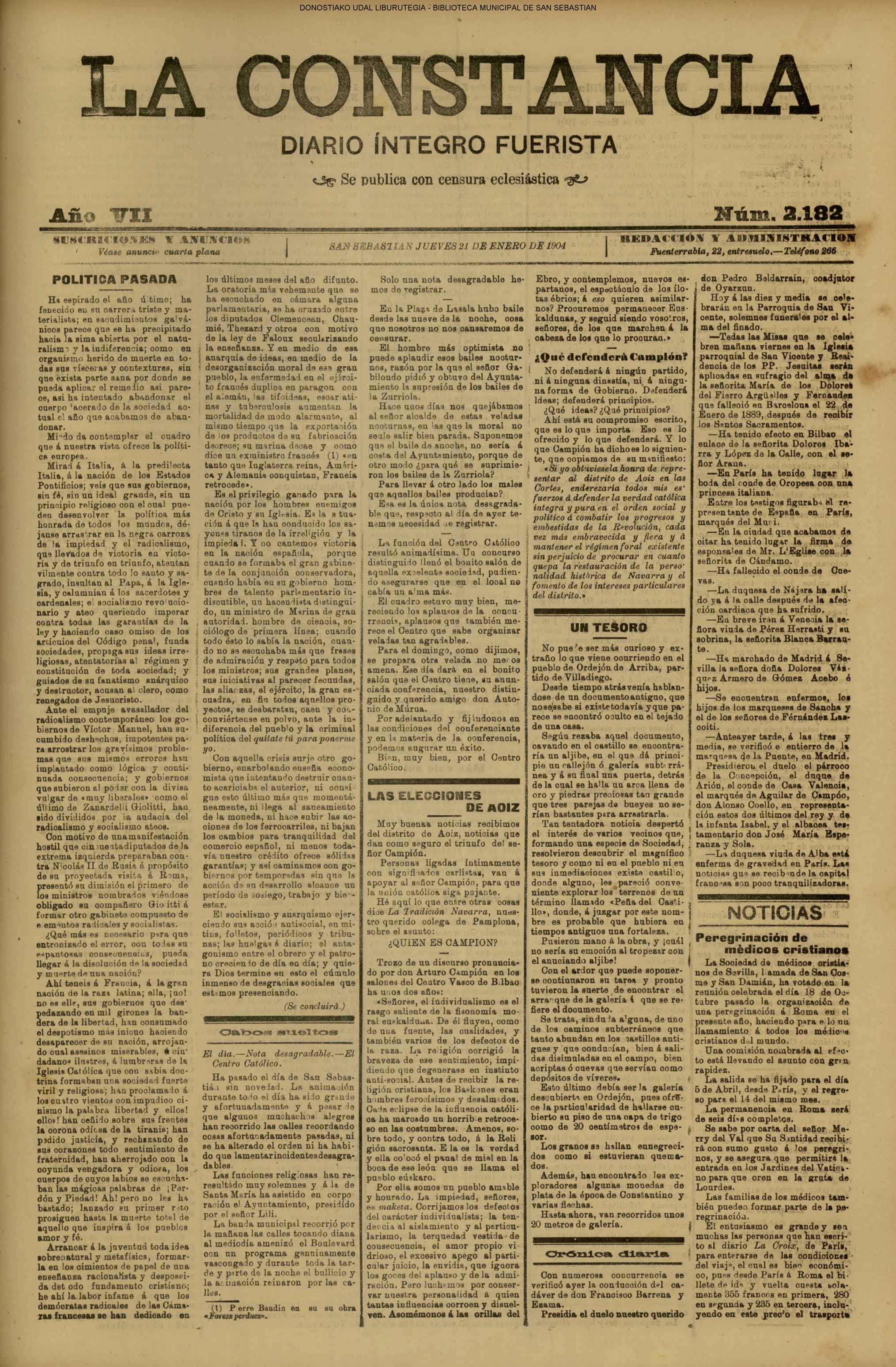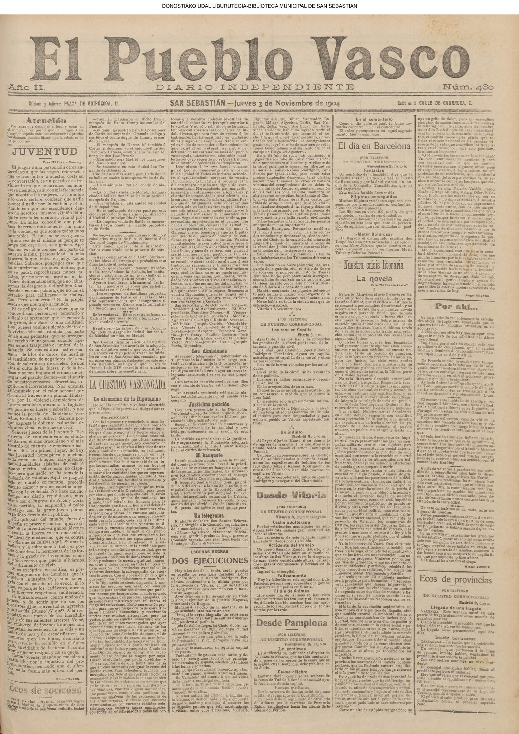 Construcción de un puente.—D. Ramón Cendoya, vecino de Hernani, ha solicitado licencia para construir un puente de fábrica sobre el río Urola, en el término de Cestona, para poner en comunicación la carretera de este pueblo á Azpeitia con la casa de máquinas que en la margen izquierda del río se va á edificar por cuenta de don Gracián Alberdi. (La Construcción moderna. 30/7/1904, n.º 14)(22)
