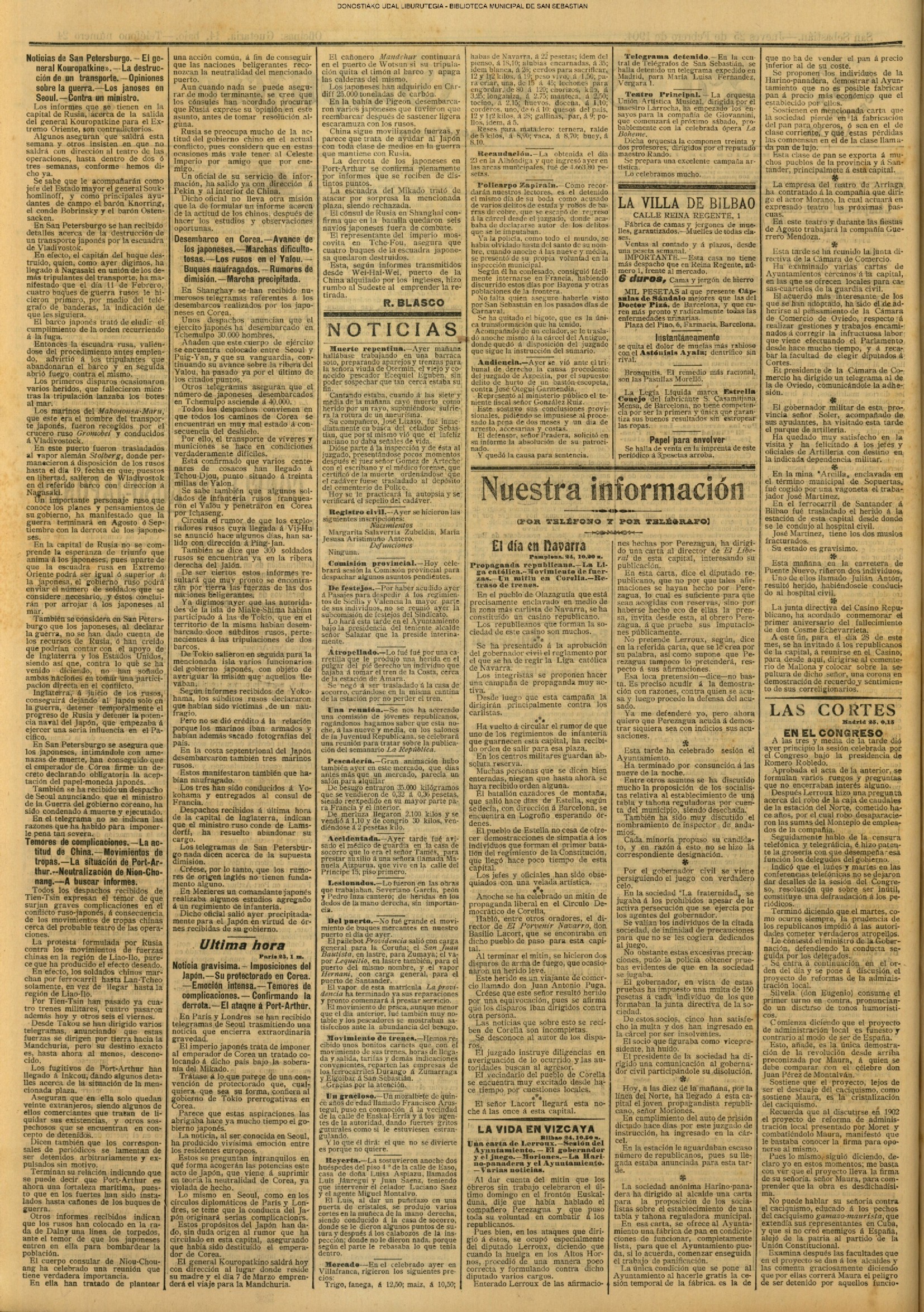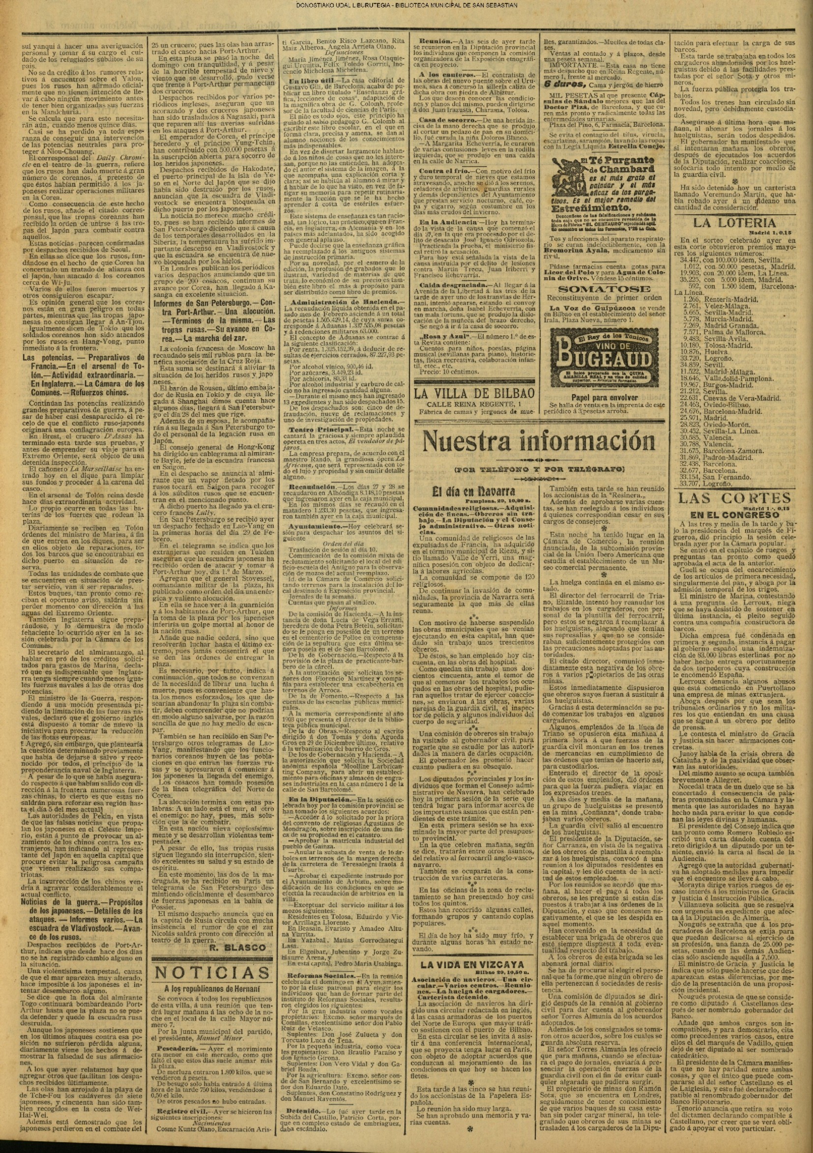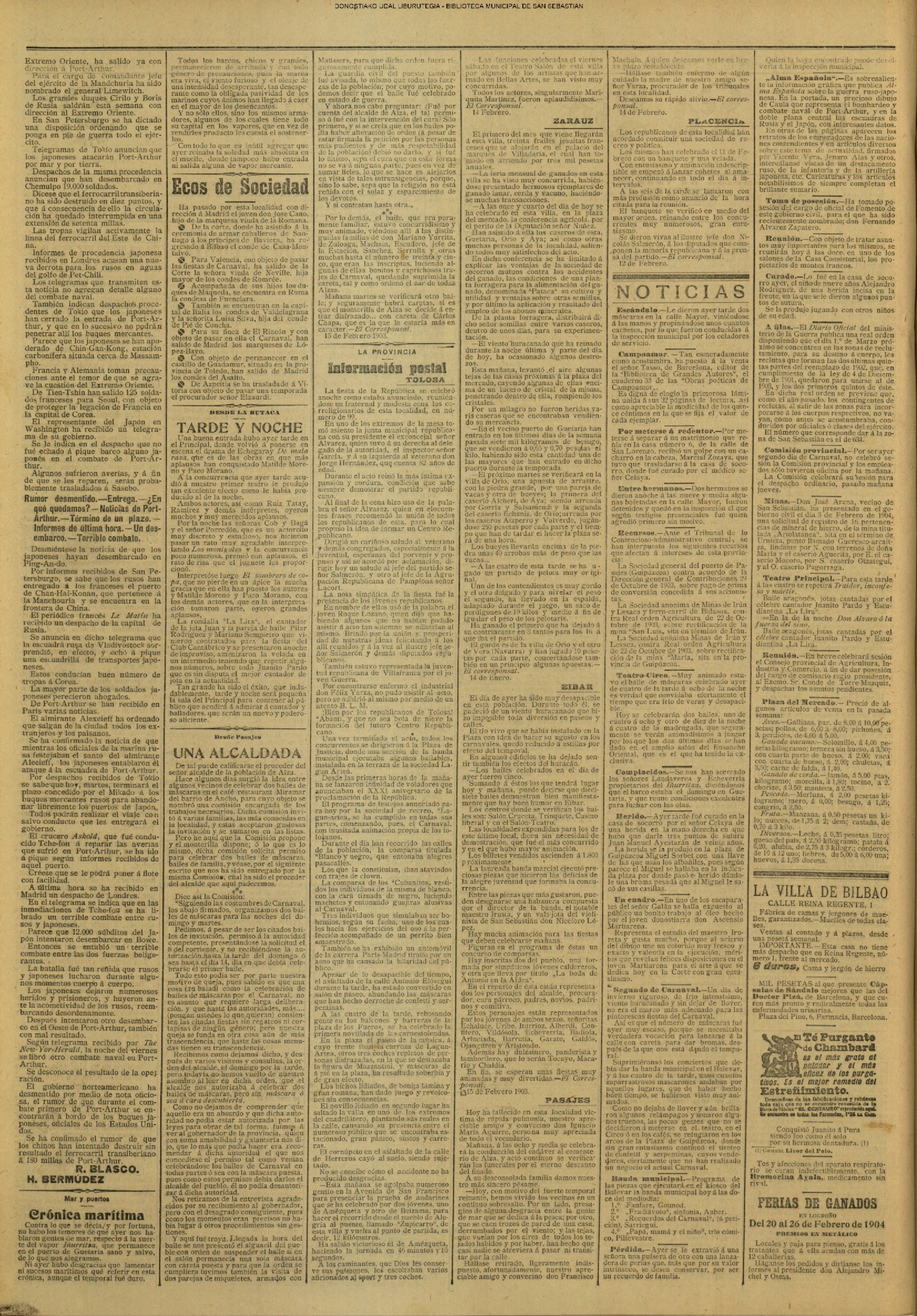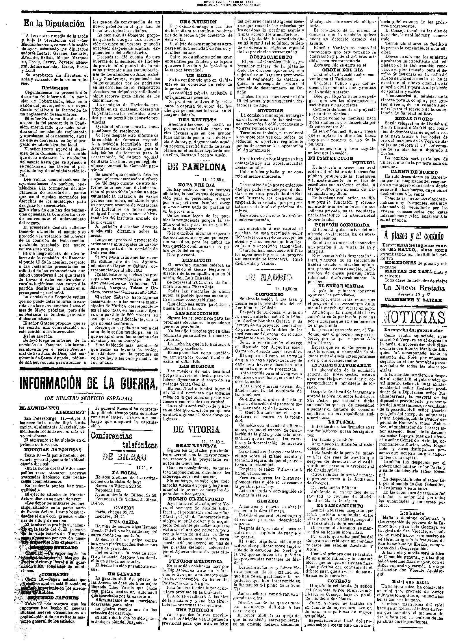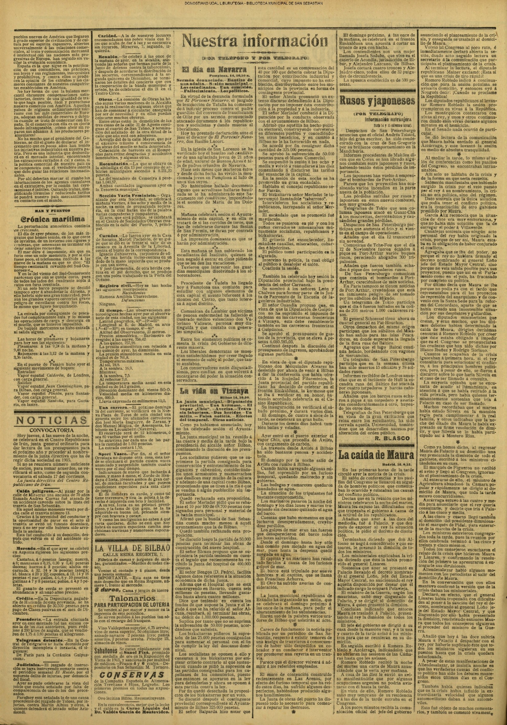 El puente sobre el Urumea en San Sebastián. —Según la prensa de la capital donostiarra, continúan rápidamente las obras del puente que je está construyendo sobre el río Urumea. Han terminado ya los cimientos de tres estribos, habiéndose empezado el cuarto. Se ha empezado también á construir un arco de los tres que ha de llevar. (La Construcción moderna. 30/7/1904, n.º 14)(22)
