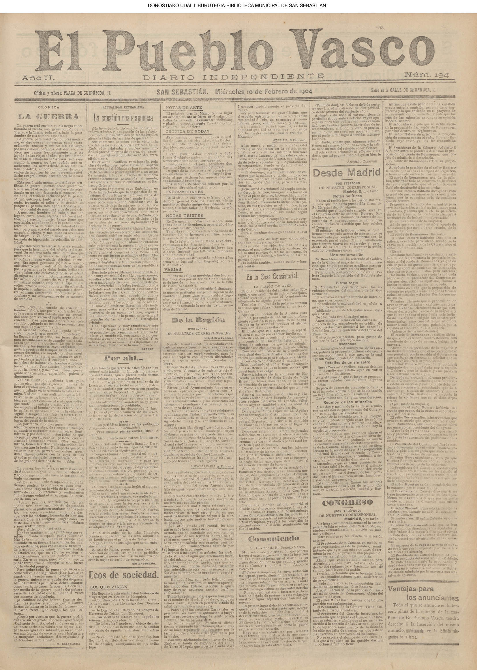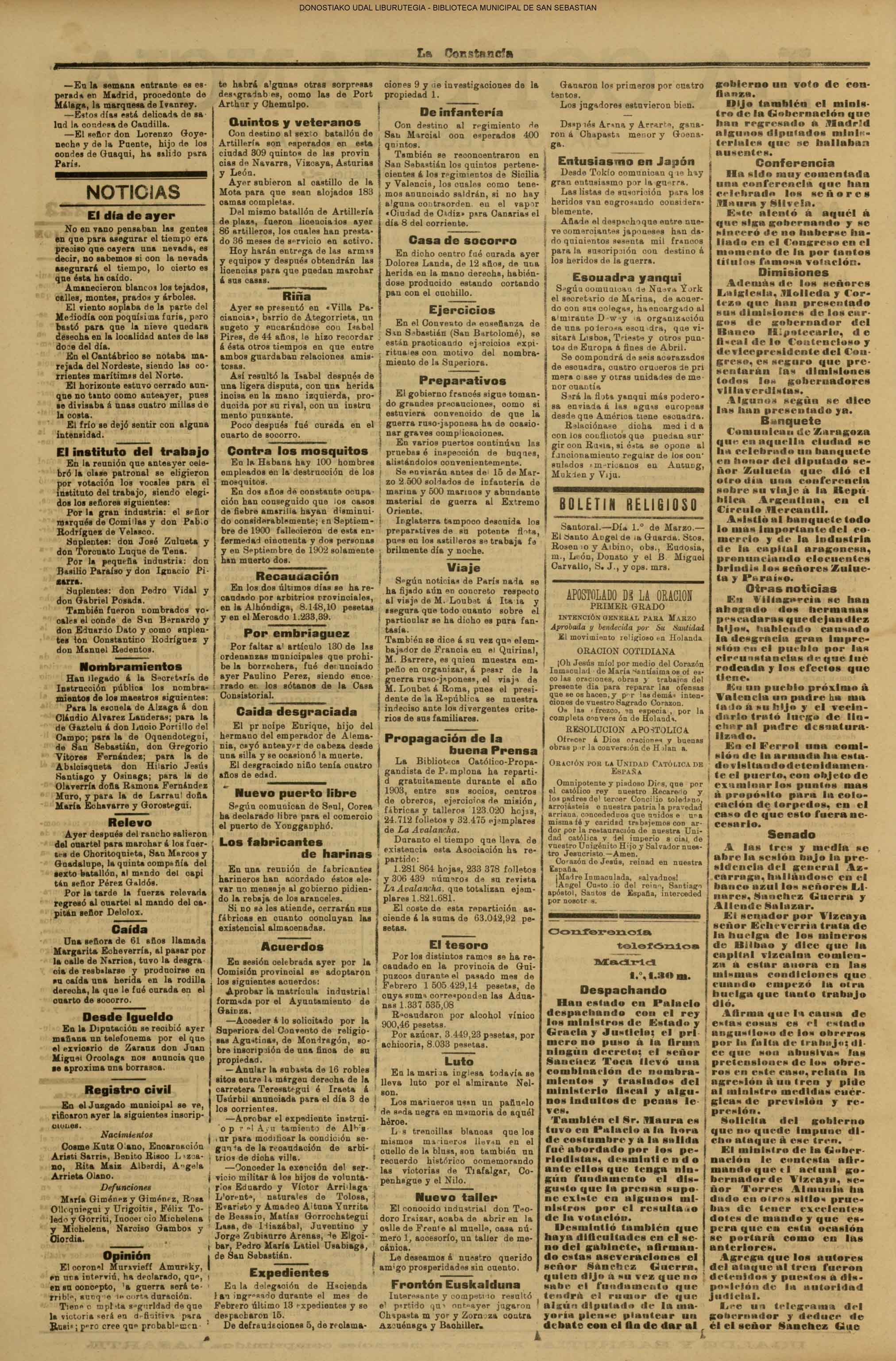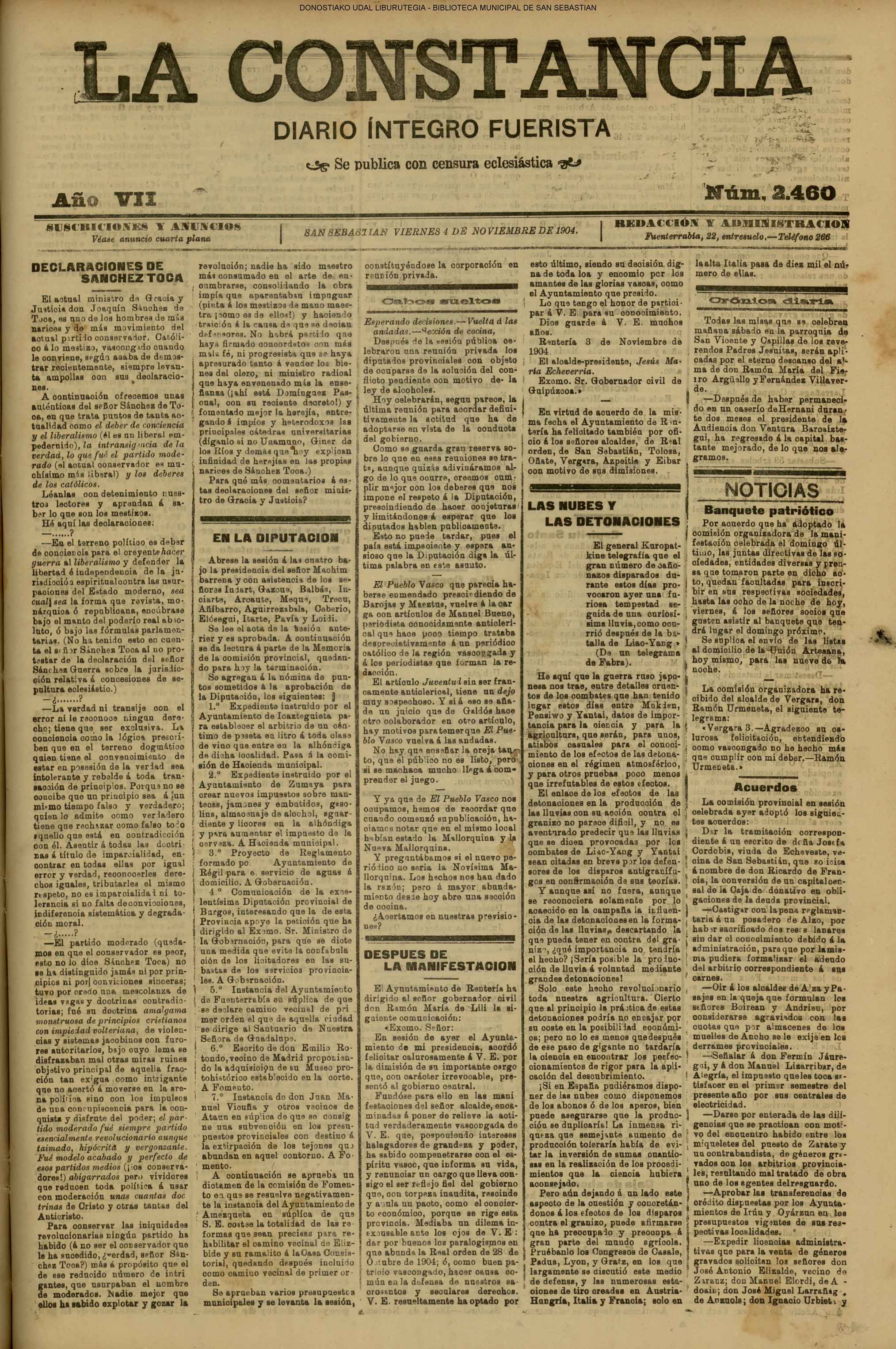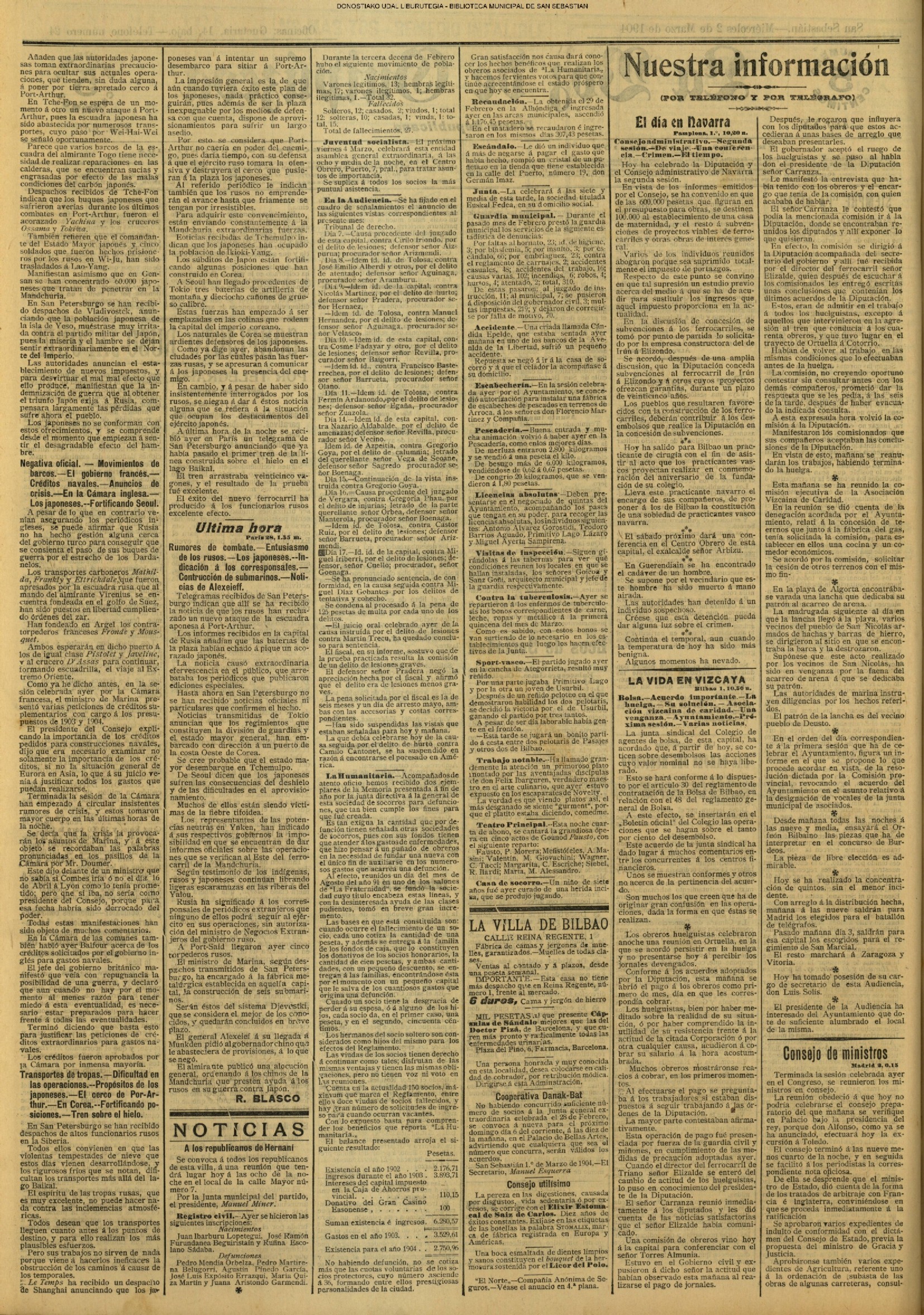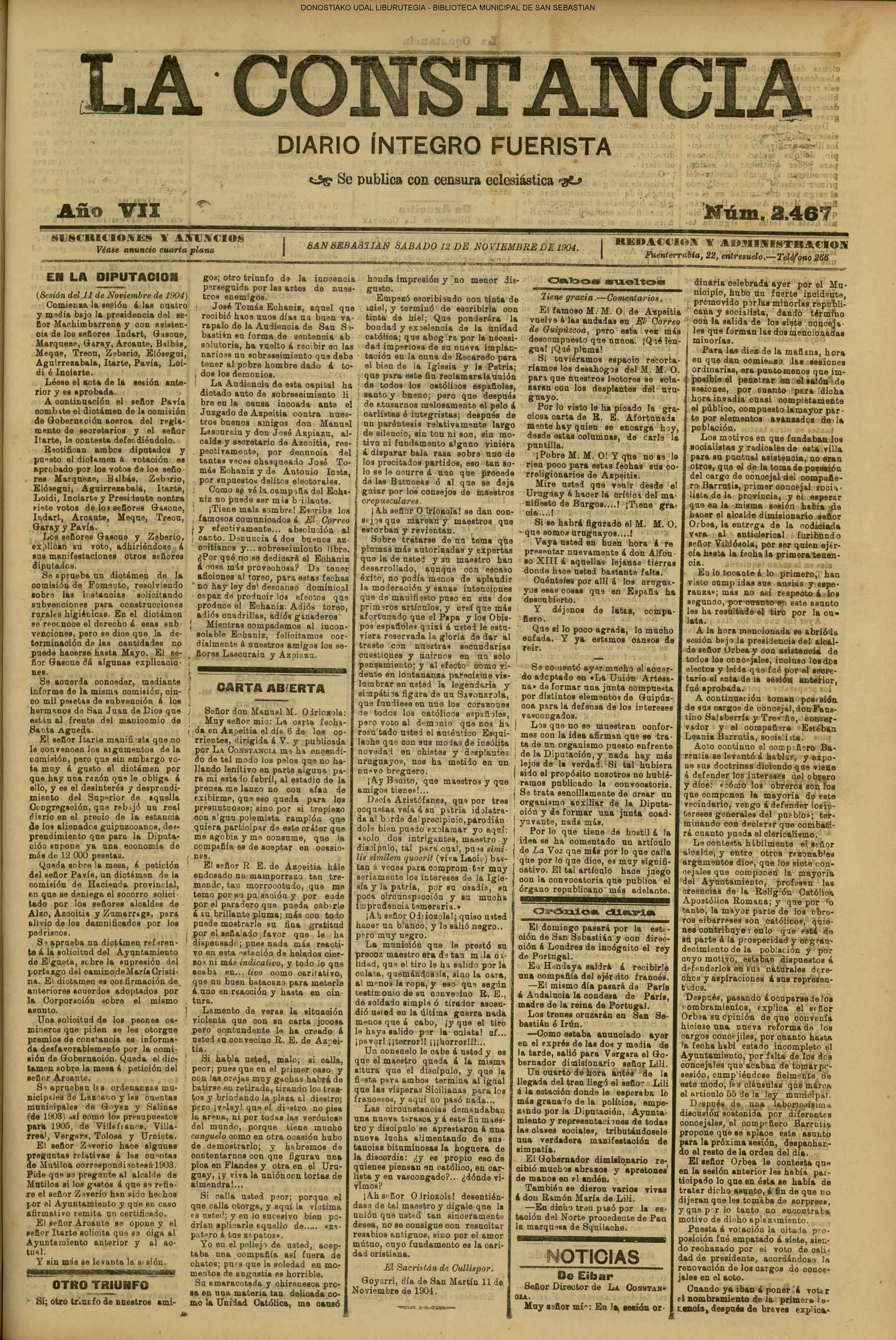 El puente sobre el Urumea en San Sebastián. —Según la prensa de la capital donostiarra, continúan rápidamente las obras del puente que je está construyendo sobre el río Urumea. Han terminado ya los cimientos de tres estribos, habiéndose empezado el cuarto. Se ha empezado también á construir un arco de los tres que ha de llevar. (La Construcción moderna. 30/7/1904, n.º 14)(22)