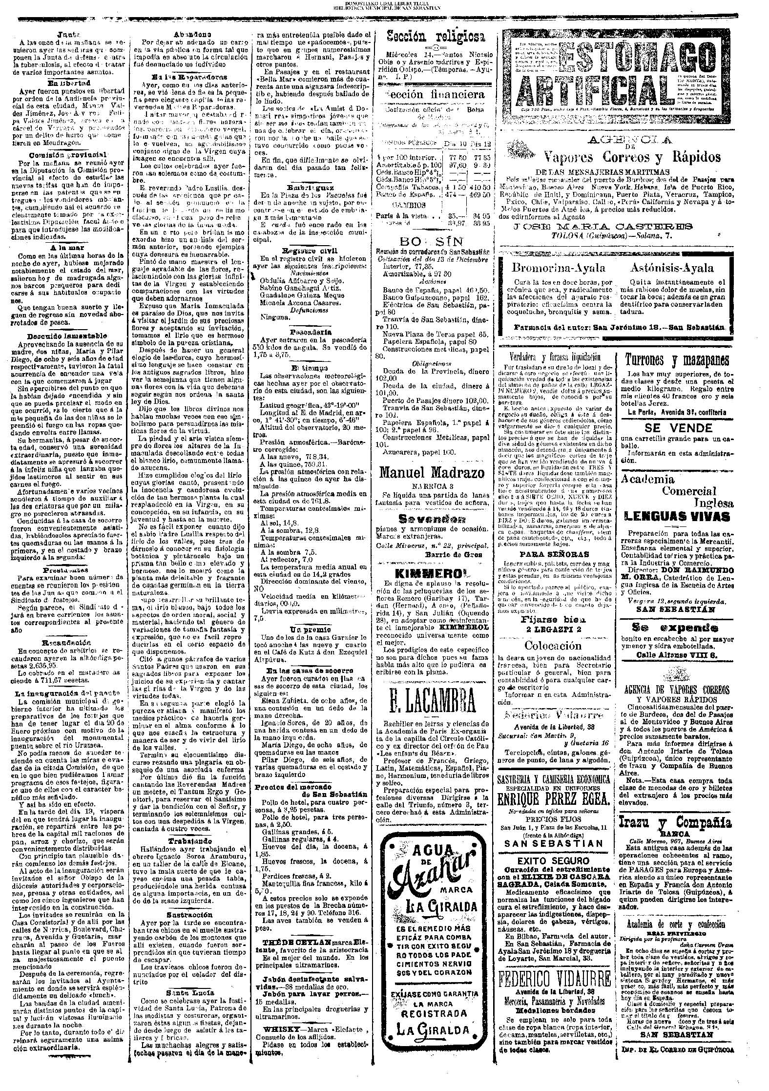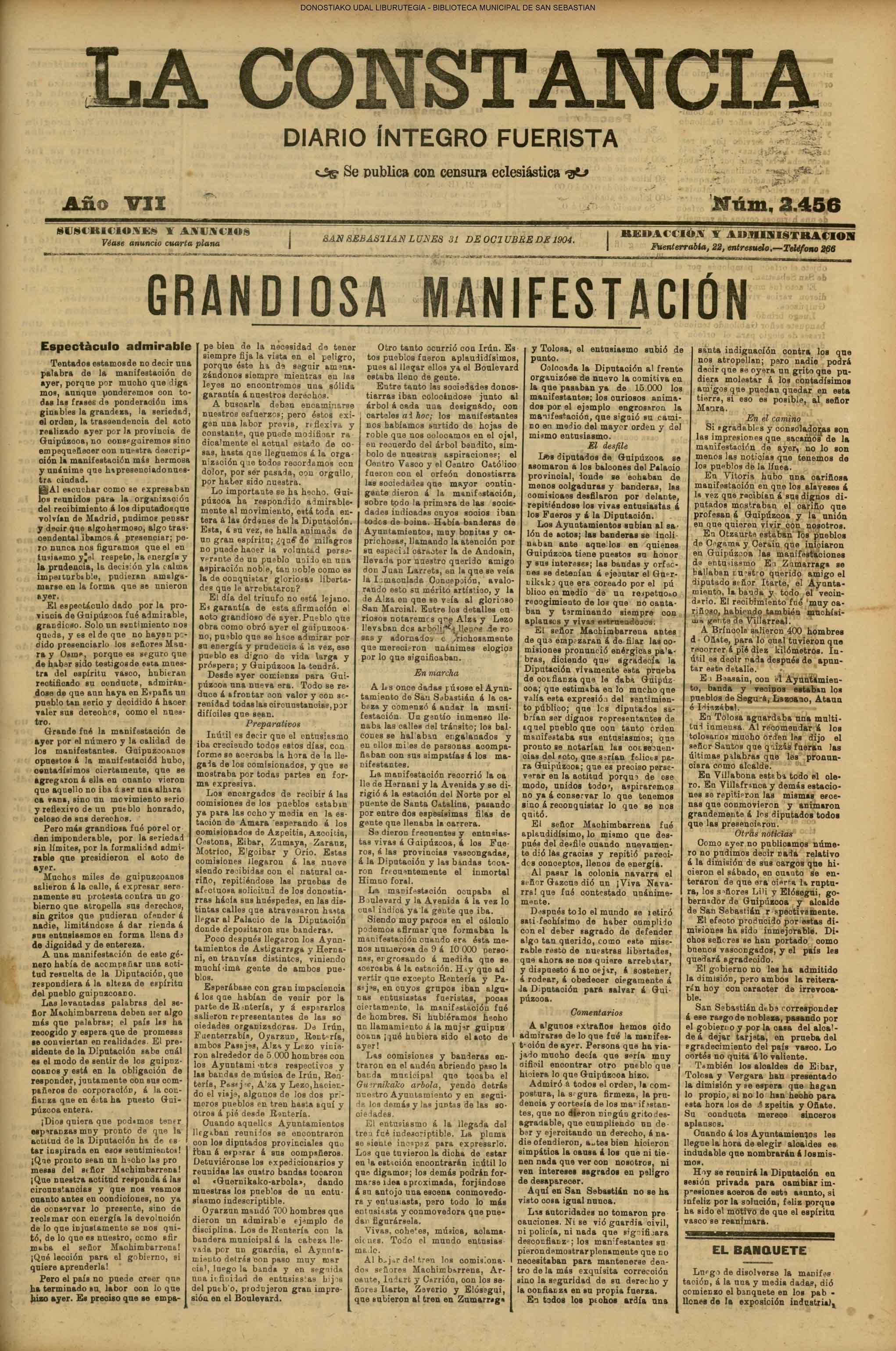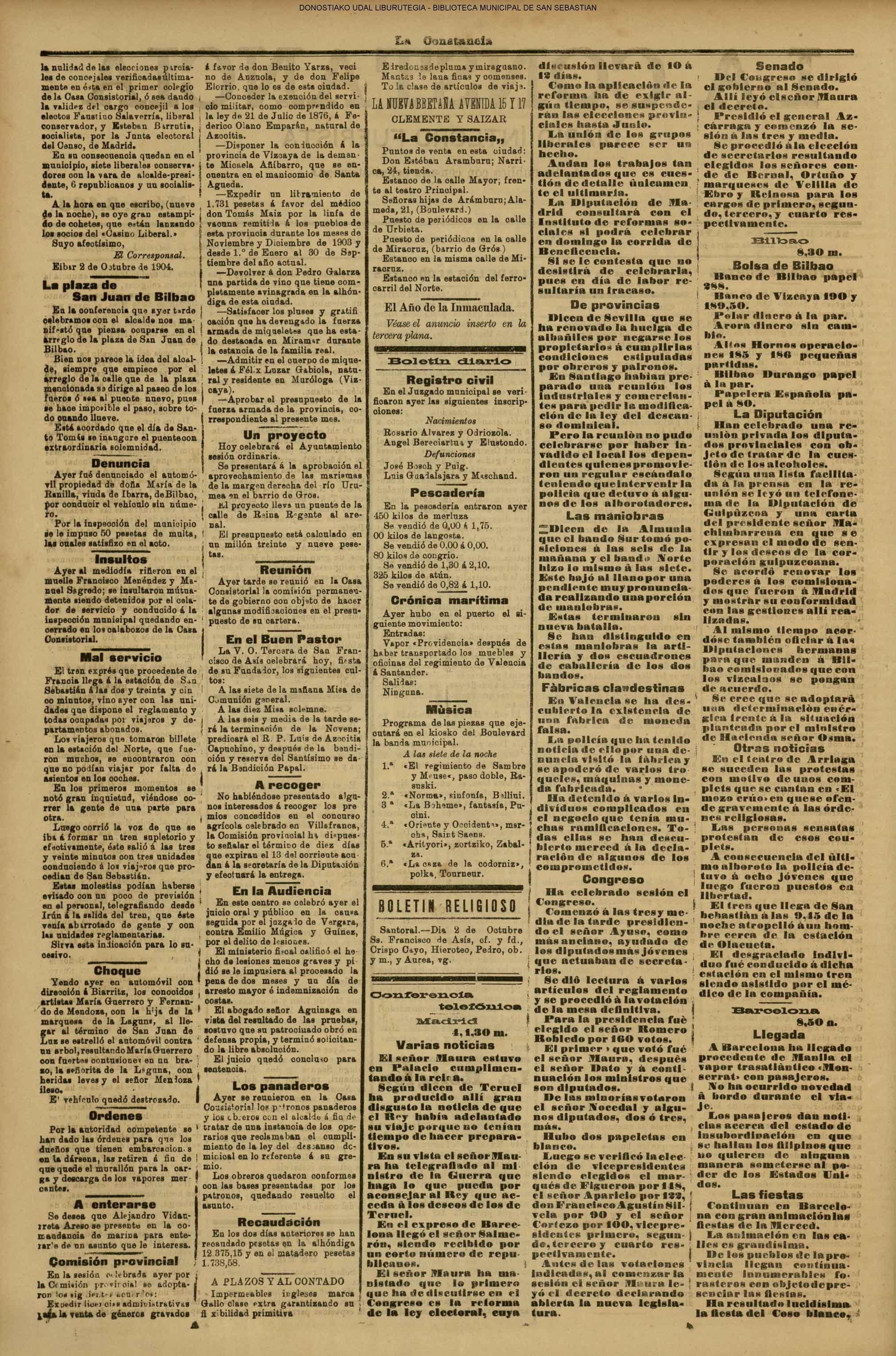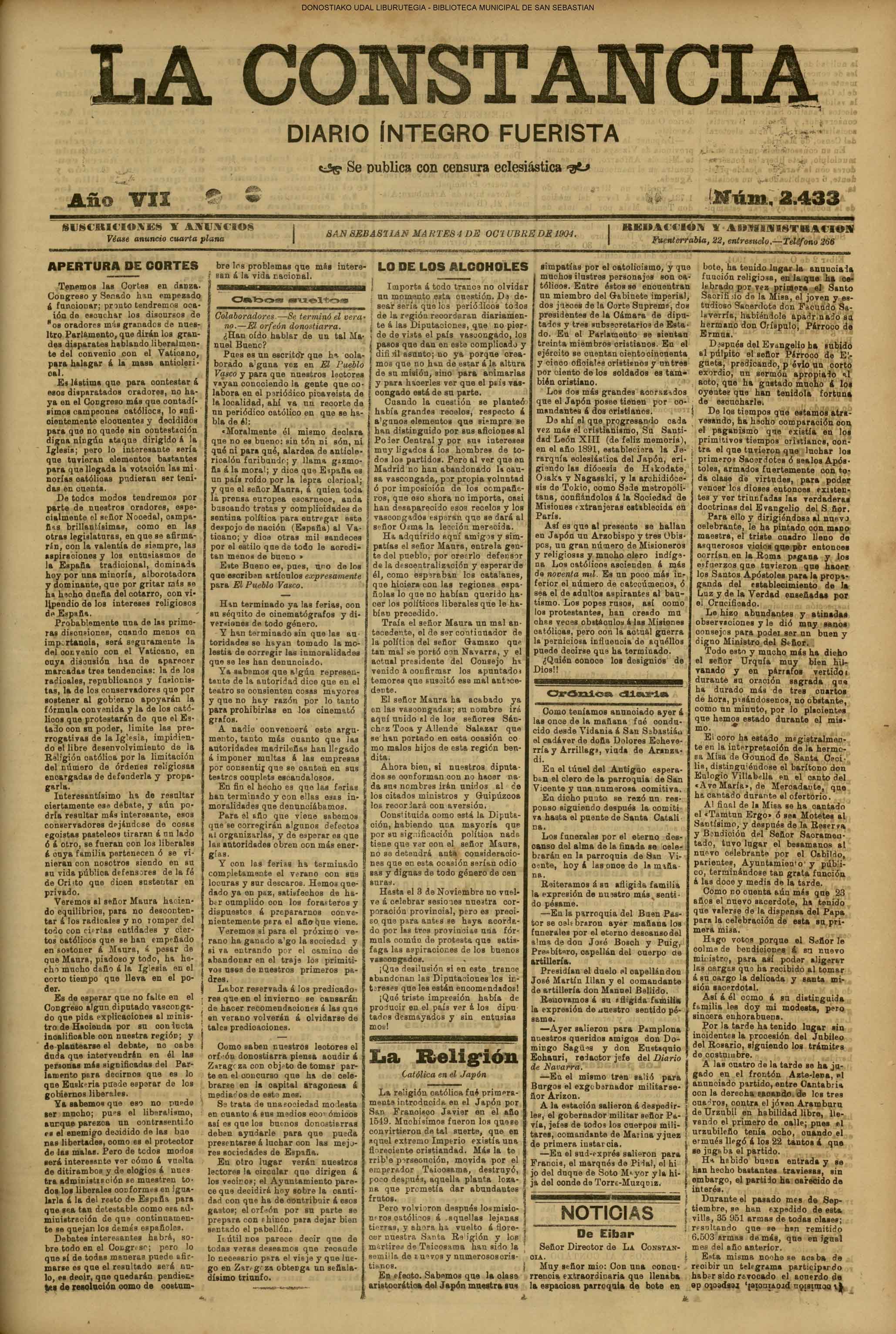 El puente sobre el Urumea en San Sebastián. —Según la prensa de la capital donostiarra, continúan rápidamente las obras del puente que je está construyendo sobre el río Urumea. Han terminado ya los cimientos de tres estribos, habiéndose empezado el cuarto. Se ha empezado también á construir un arco de los tres que ha de llevar. (La Construcción moderna. 30/7/1904, n.º 14)(22)