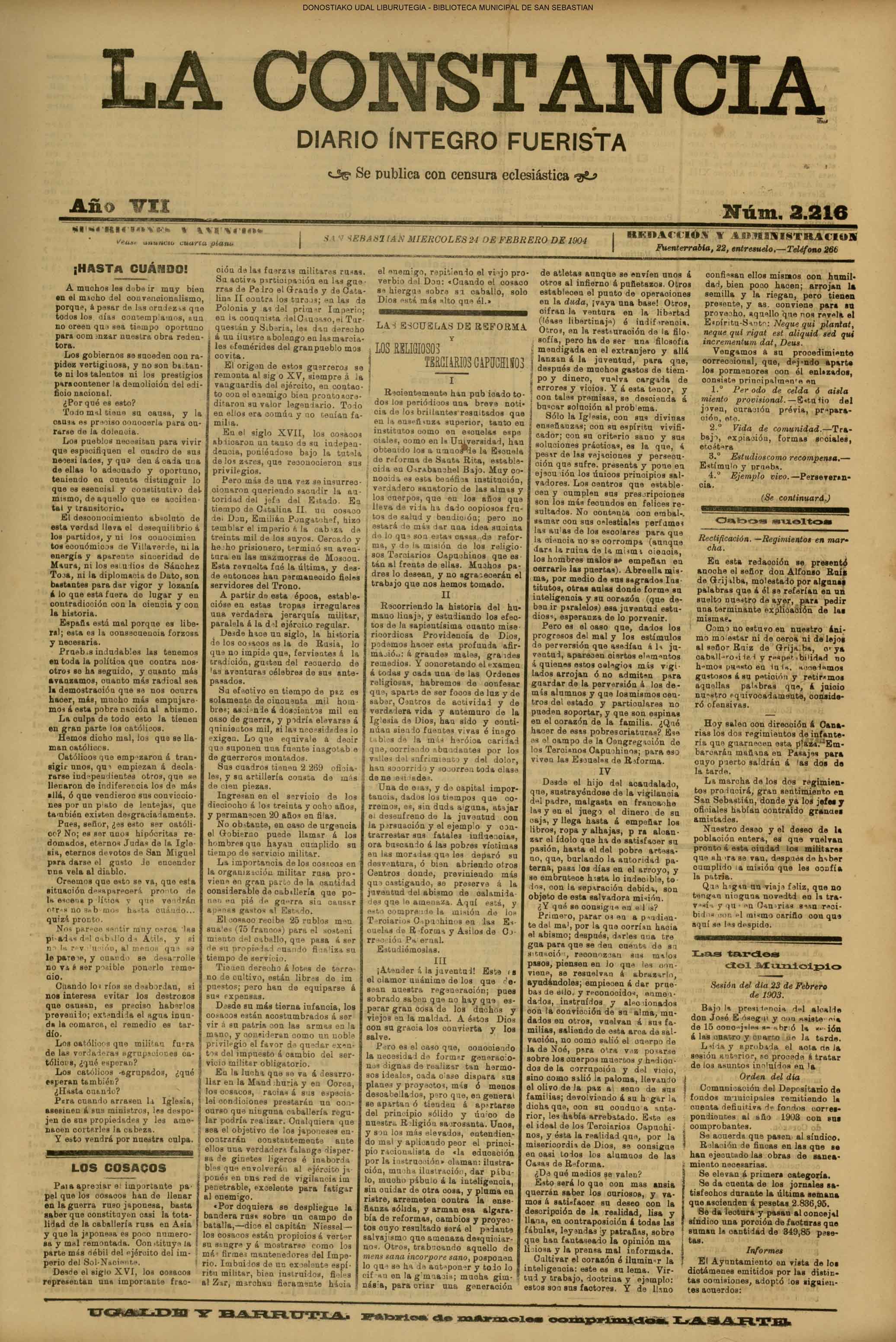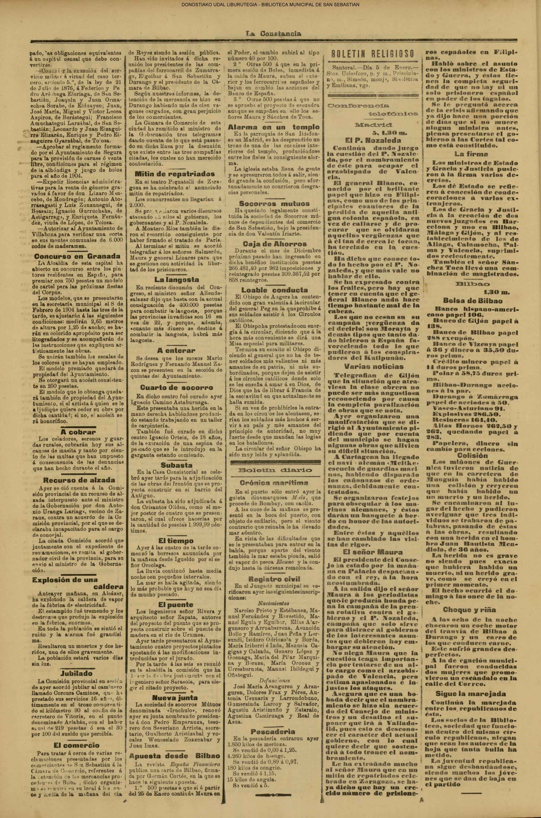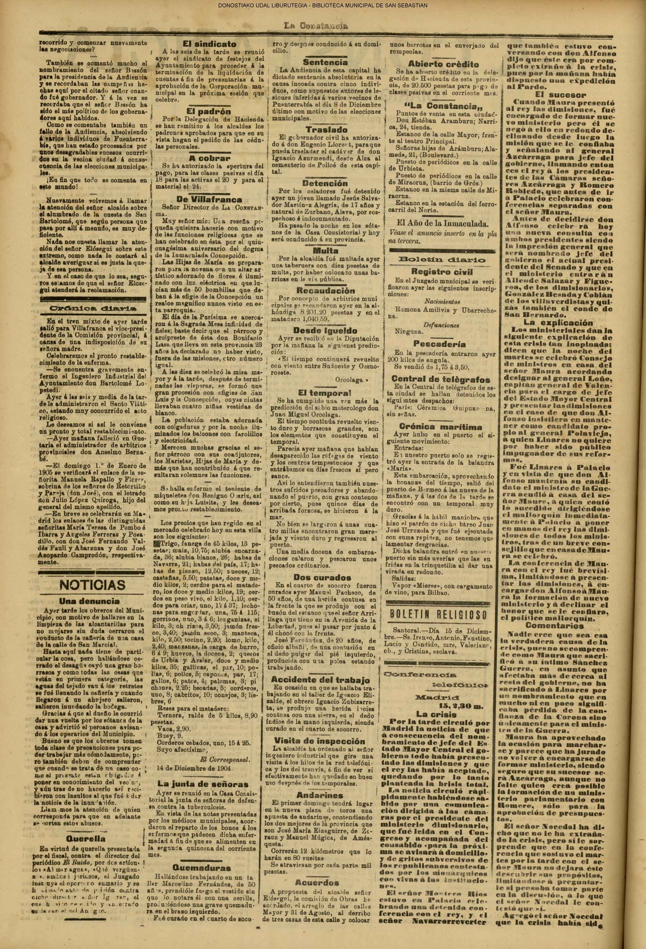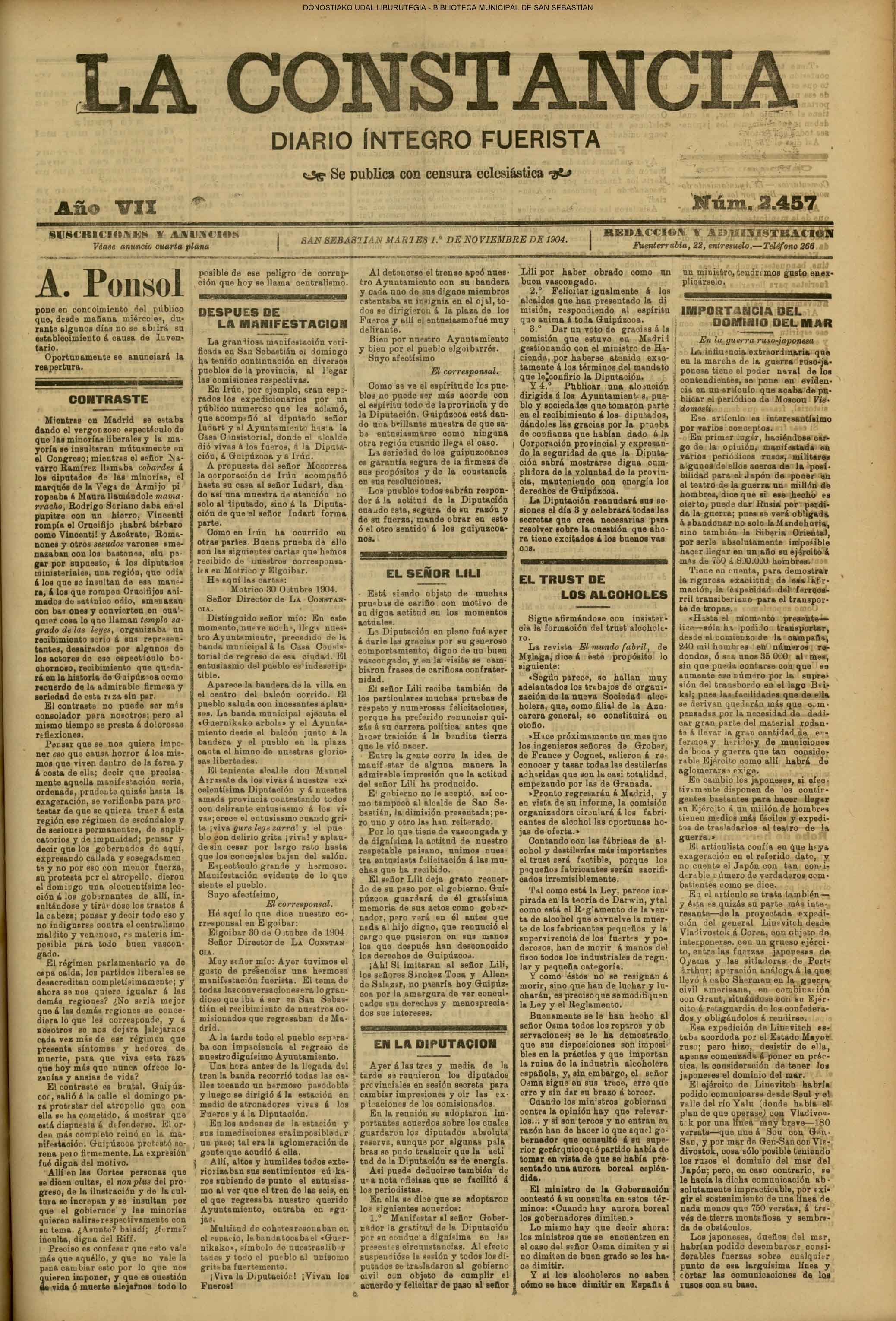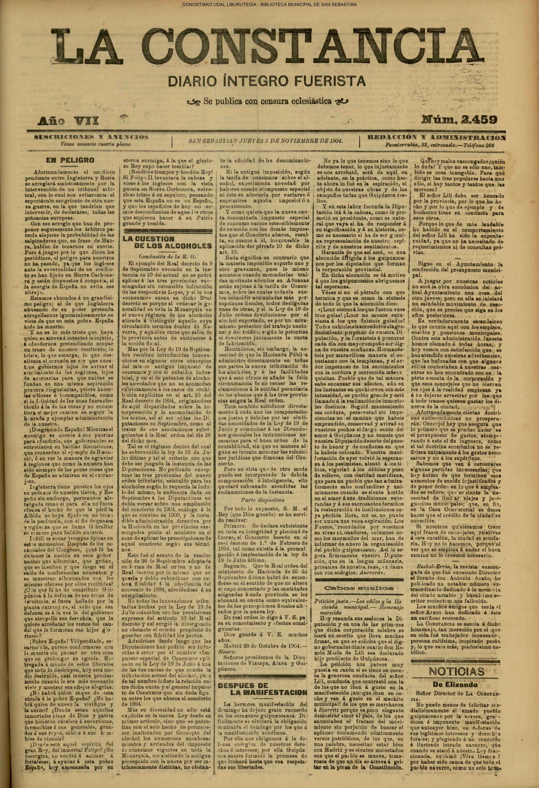 El puente sobre el Urumea en San Sebastián. —Según la prensa de la capital donostiarra, continúan rápidamente las obras del puente que je está construyendo sobre el río Urumea. Han terminado ya los cimientos de tres estribos, habiéndose empezado el cuarto. Se ha empezado también á construir un arco de los tres que ha de llevar. (La Construcción moderna. 30/7/1904, n.º 14)(22)