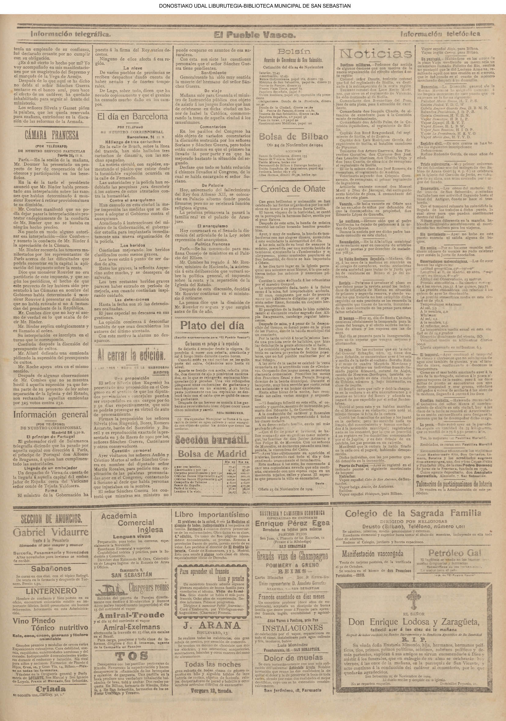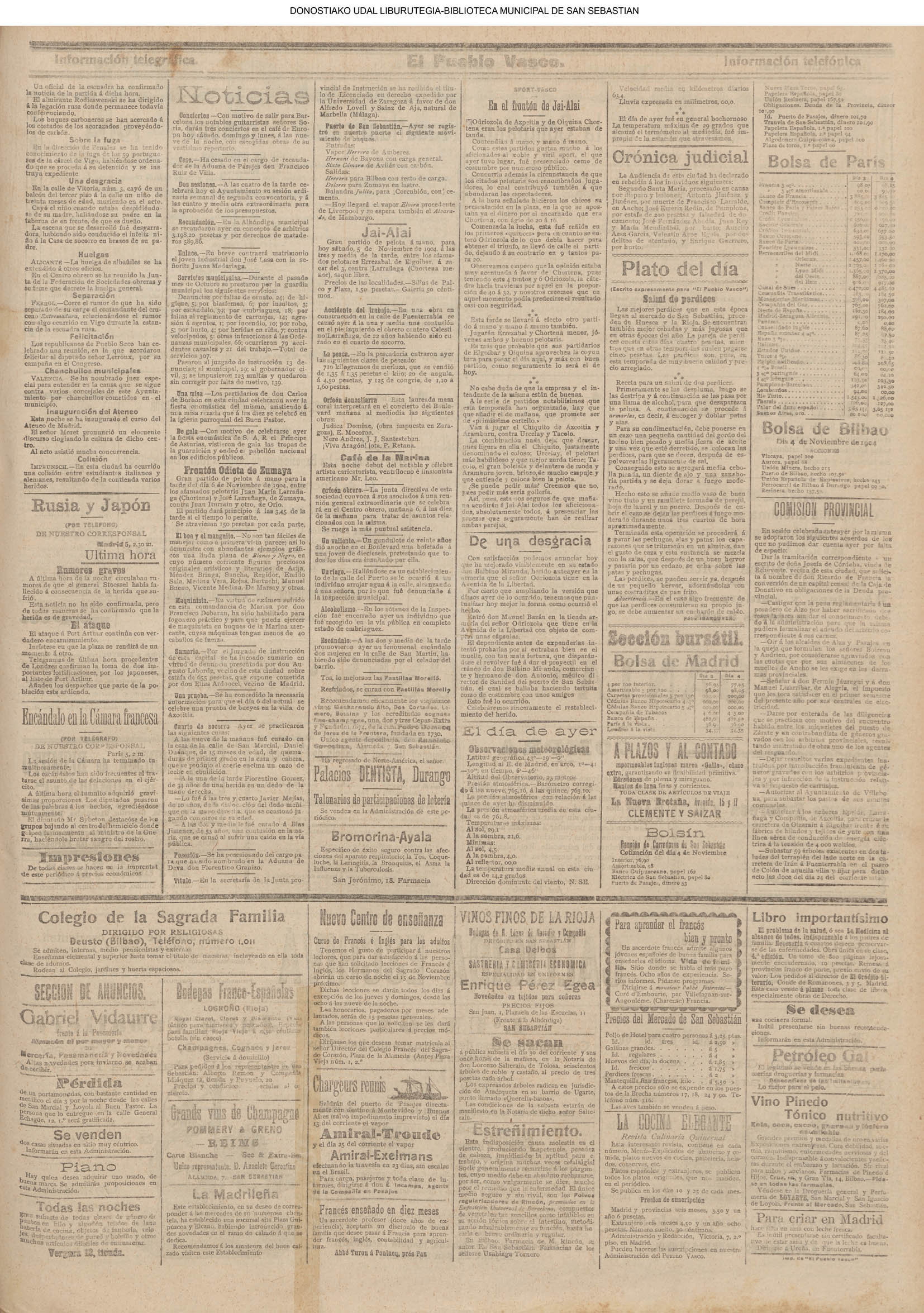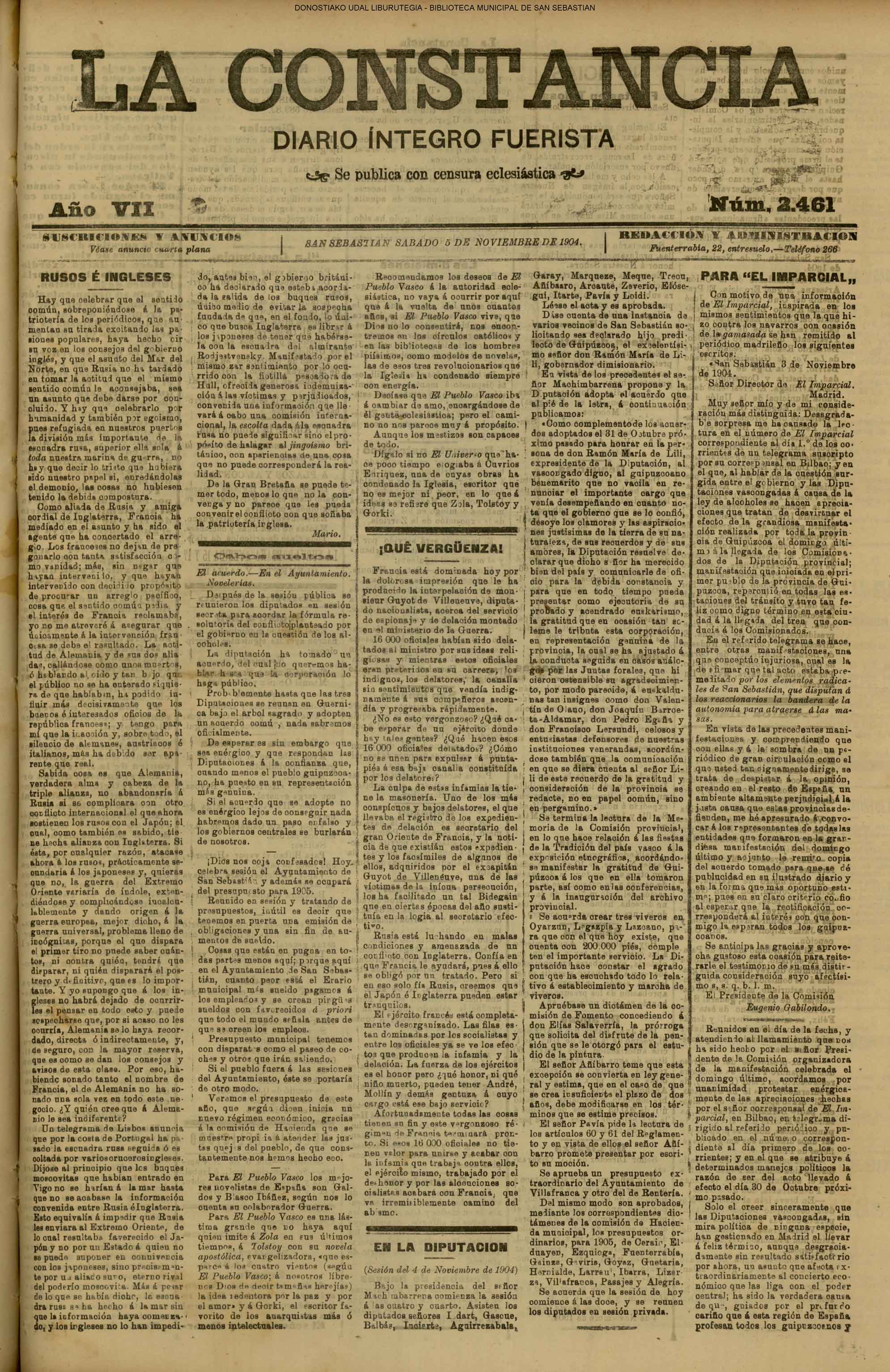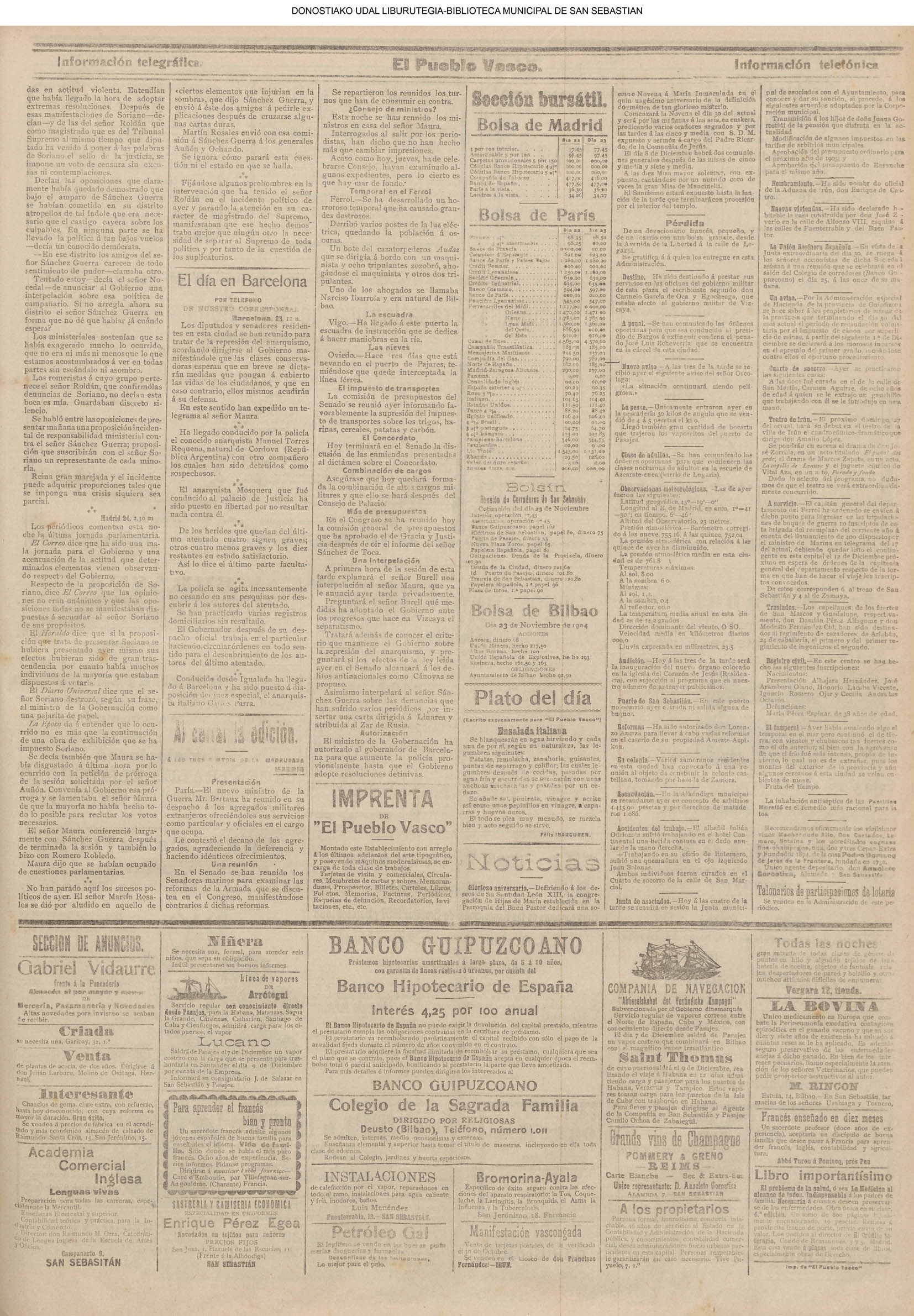 Subastas Guipúzcoa (Vergara).—El 6 de Julio, á las once horas de la mañana.—Obras de un edificio con destino á Sanatorio.—Presupuesto, 14.561,72 pesetas.—Fianza, 728 pesetas. La subasta s •: celebrará en el Ayuntamiento de Vergara, en cuya Secretaría se hallan de manifiesto las condiciones. Las proposiciones se presentarán en pliegos cerrados. (La Construcción moderna. 30/6/1904, n.º 12)(27)