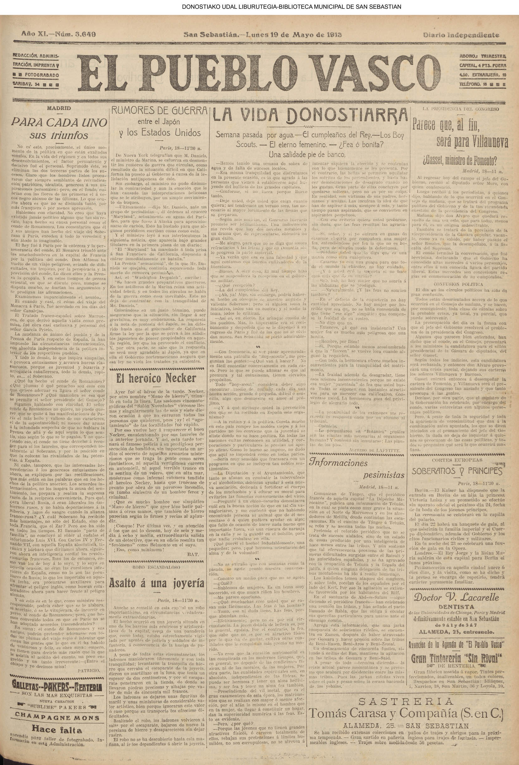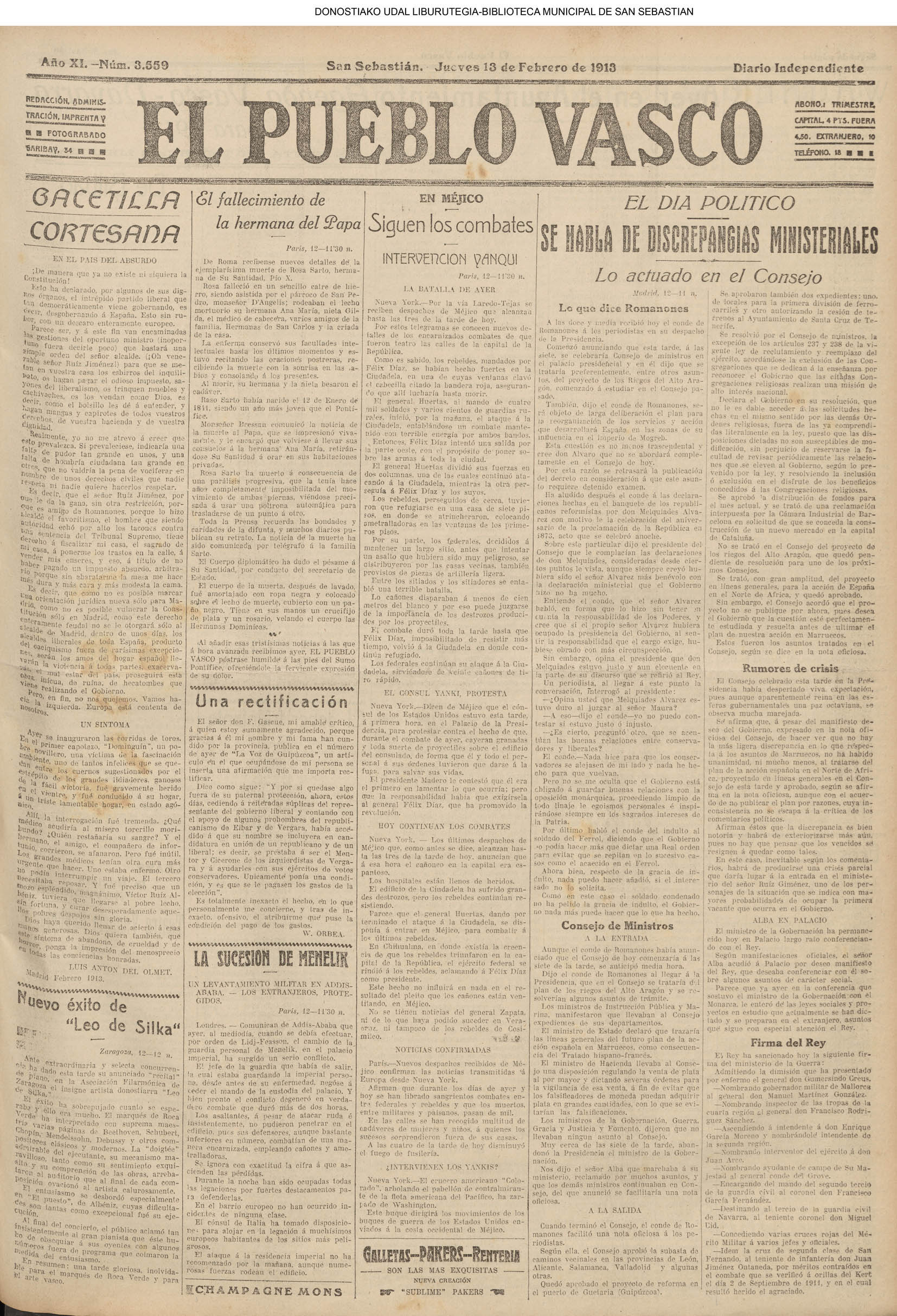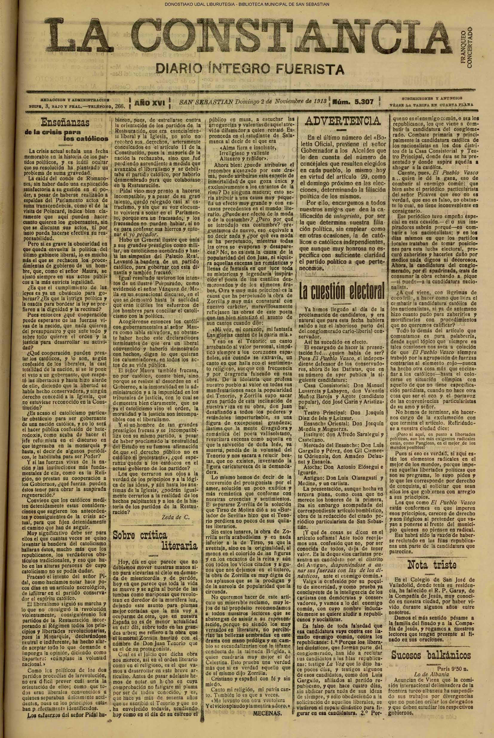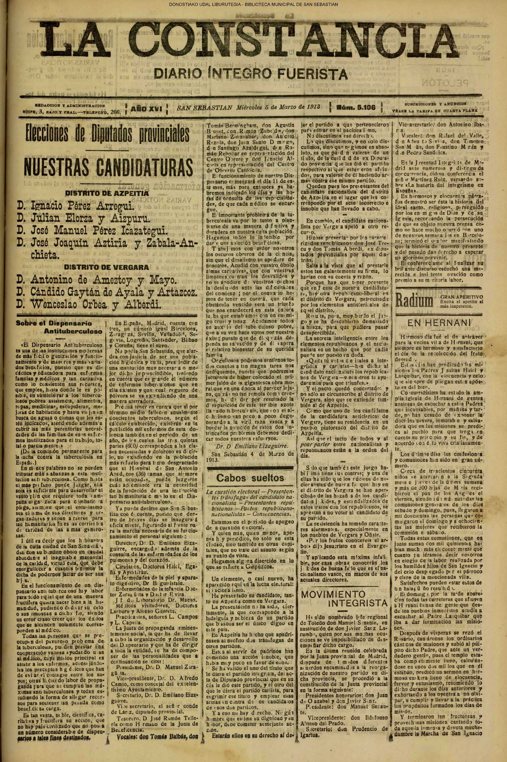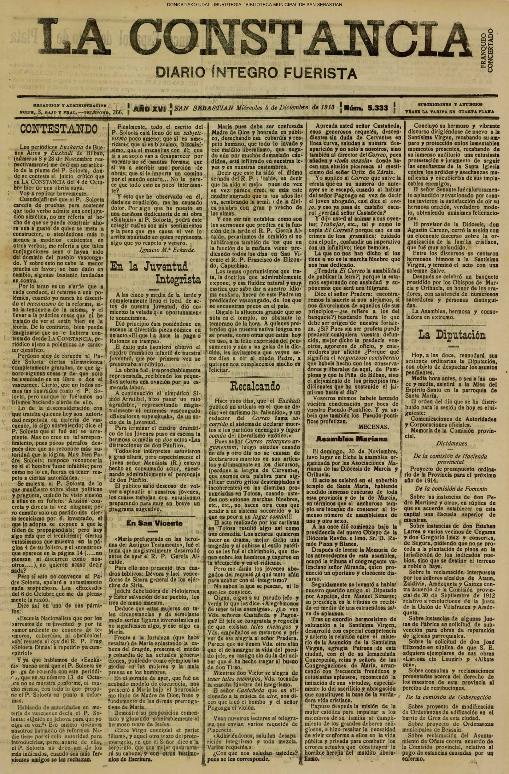 | # LA CONSTANCIA # NOVEDADES #EL PUEBLO VASCO #LA VOZ DE GUIPUZCOA | ||