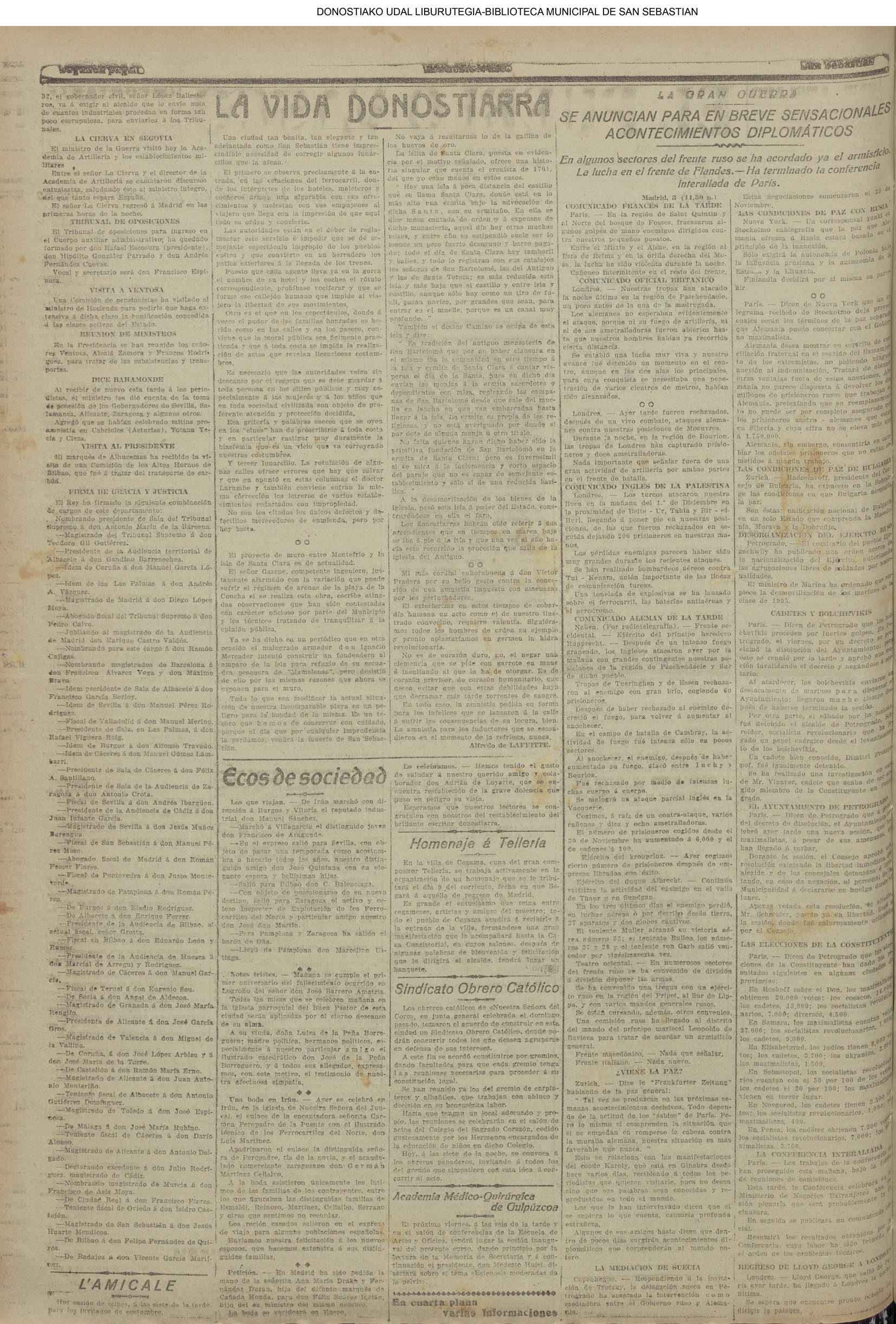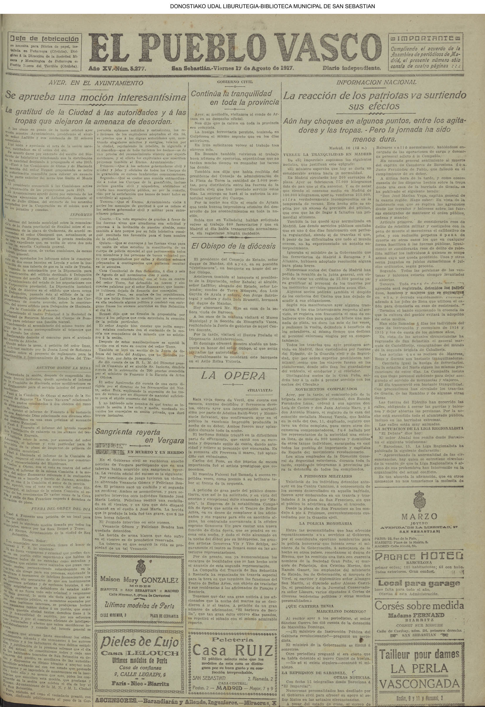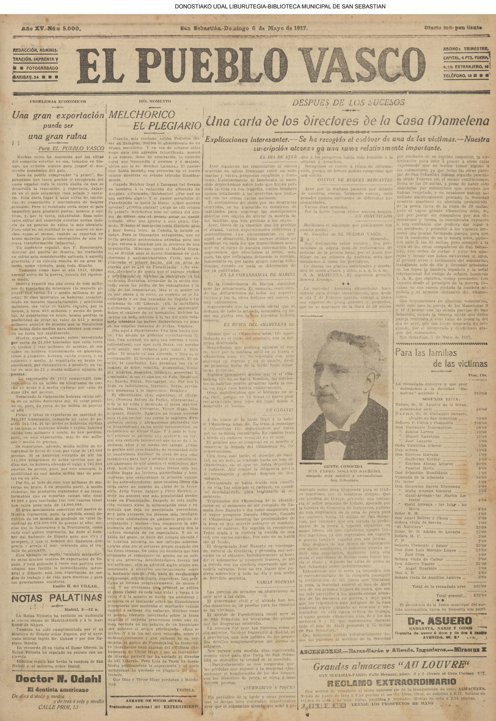 1917 Se aprueba el presupuesto para construir el Ensanche de Amara.